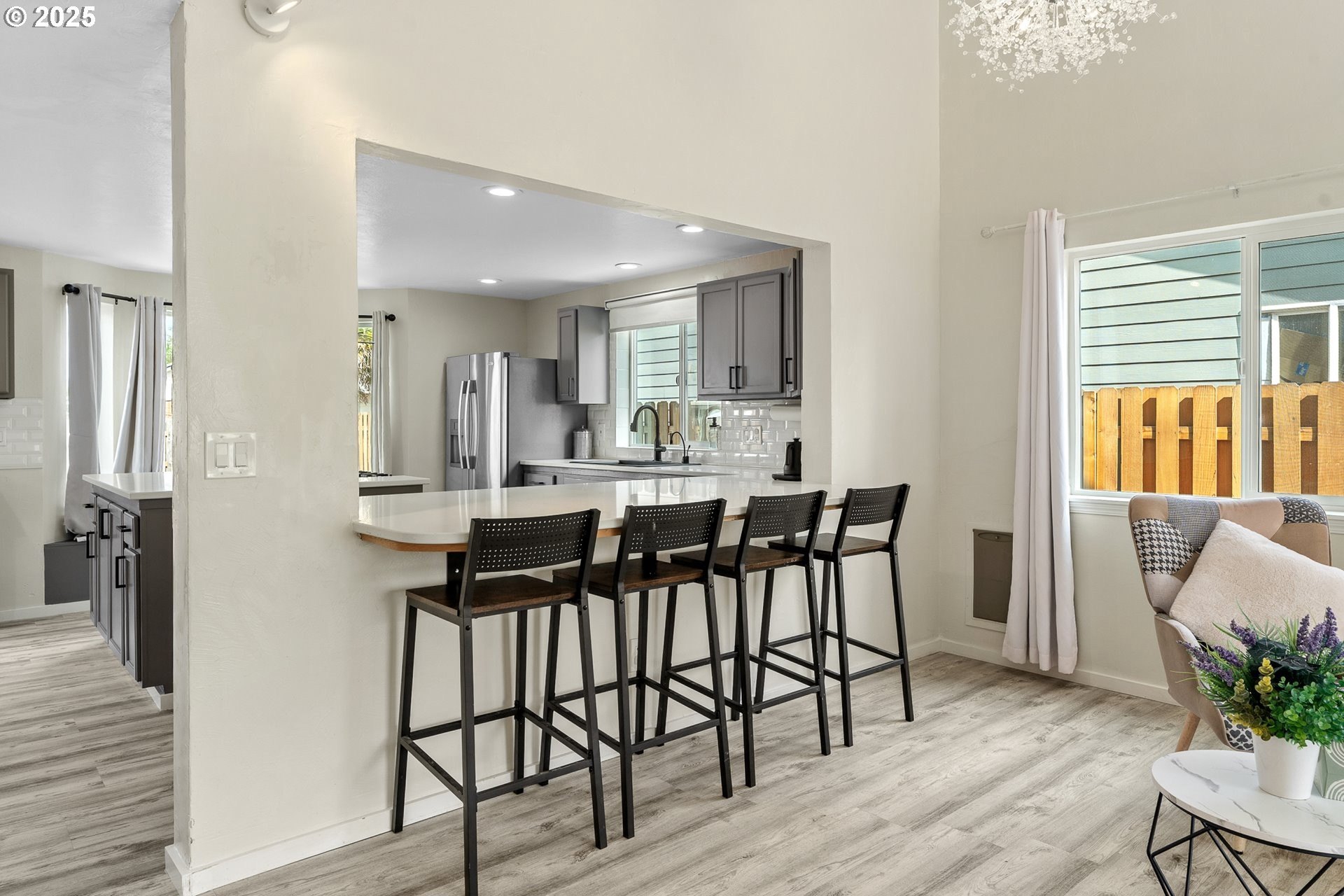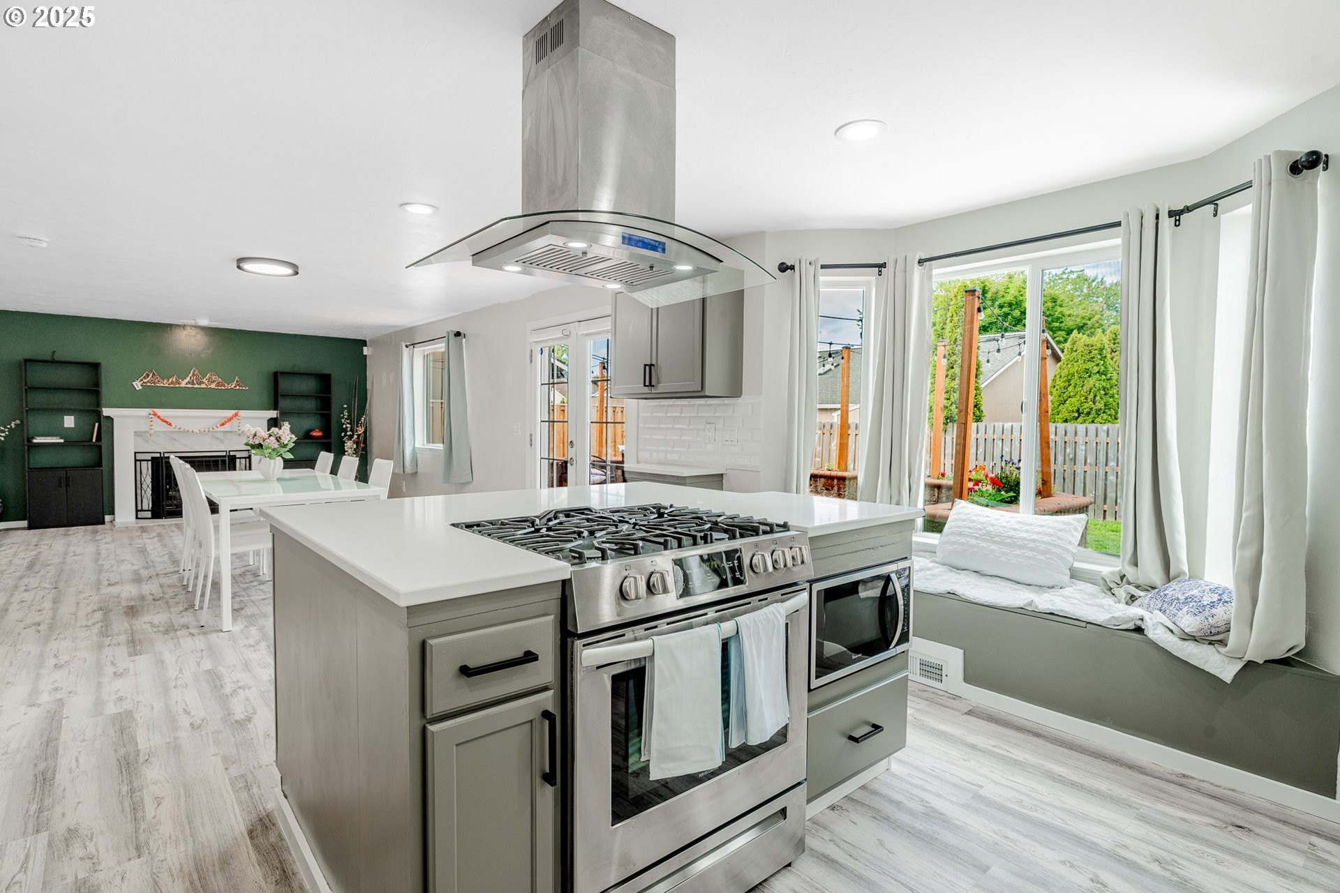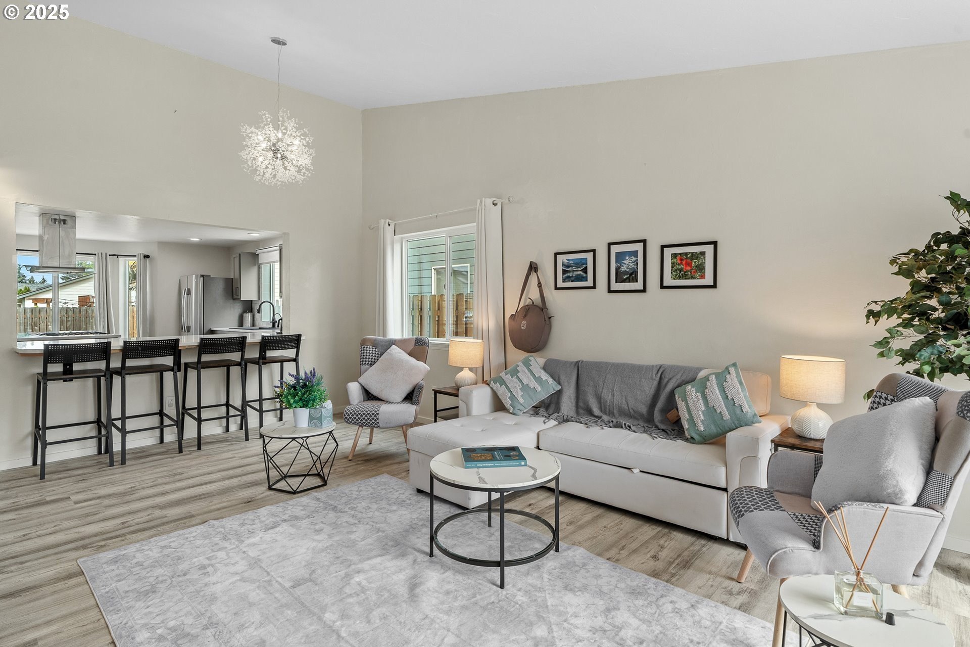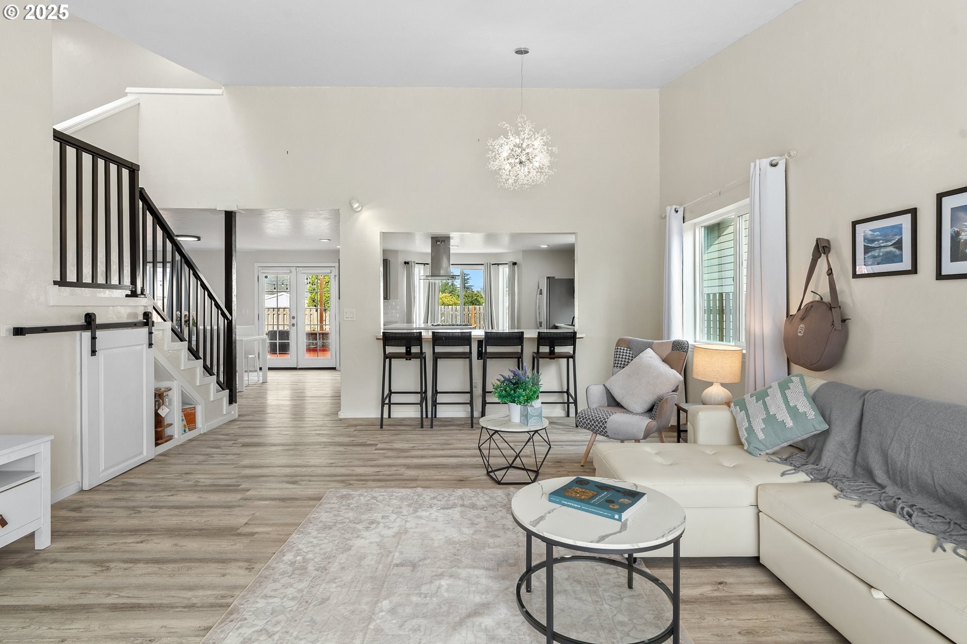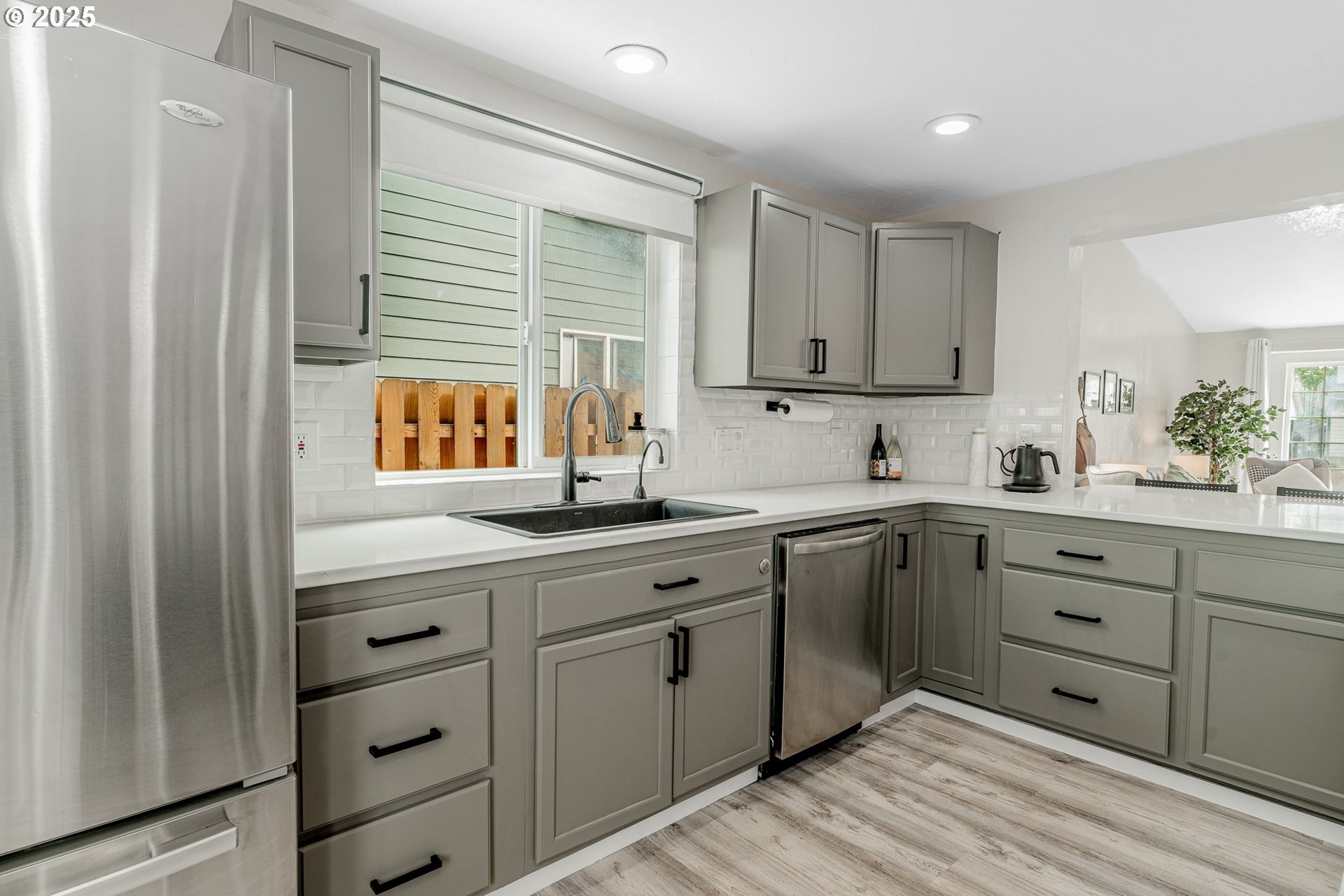 Welcome to this beautifully updated four-bedroom home designed for both comfortable living and effortless entertaining. With a thoughtful floor plan, vaulted ceilings, and a two-car attached garage, this home offers the perfect combination of style and functionality. Equipped with solar panels, this home provides energy efficiency and cost savings, making it as eco-friendly as it is elegant. The spacious, light-filled kitchen features elegant quartz countertops, a gas range with an electric stove, a built-in dishwasher, microwave, and a full-size refrigerator. A large island provides ample space for meal prep, casual dining, and lively gatherings. The kitchen flows seamlessly into the cozy family room with a gas fireplace, while the vaulted ceilings in the living room add an airy, open feel. Dual French doors lead to the backyard, creating a perfect setting for entertaining and relaxing. The primary suite is a true retreat with vaulted ceilings, a spacious walk-in closet, and a spa-like en-suite bathroom featuring dual sinks, a soaking tub, and a glass shower. Three additional bedrooms offer plenty of space and comfort for family or guests, complemented by a shared full bath, a main-level half bath, and a dedicated laundry room with washer and dryer for convenience. Outside, the private, fully fenced backyard provides an inviting oasis, complete with an expansive wood deck ideal for al fresco dining, BBQs, and enjoying the beautiful Pacific Northwest weather. Perfectly located near top-rated schools, lush parks, shopping, and major employers like Nike and Intel, this home makes commuting simple — even by bike or on foot. With luxury vinyl plank flooring throughout the main level, high-end fixtures, thoughtful updates, and the added benefit of solar energy, this home offers low-maintenance living with modern comfort and style. Don’t miss your chance to make it yours — schedule a private tour today! [Home Energy Score = 8. HES Report at https://rpt.greenbuildingregistry.com/hes/OR10241044]