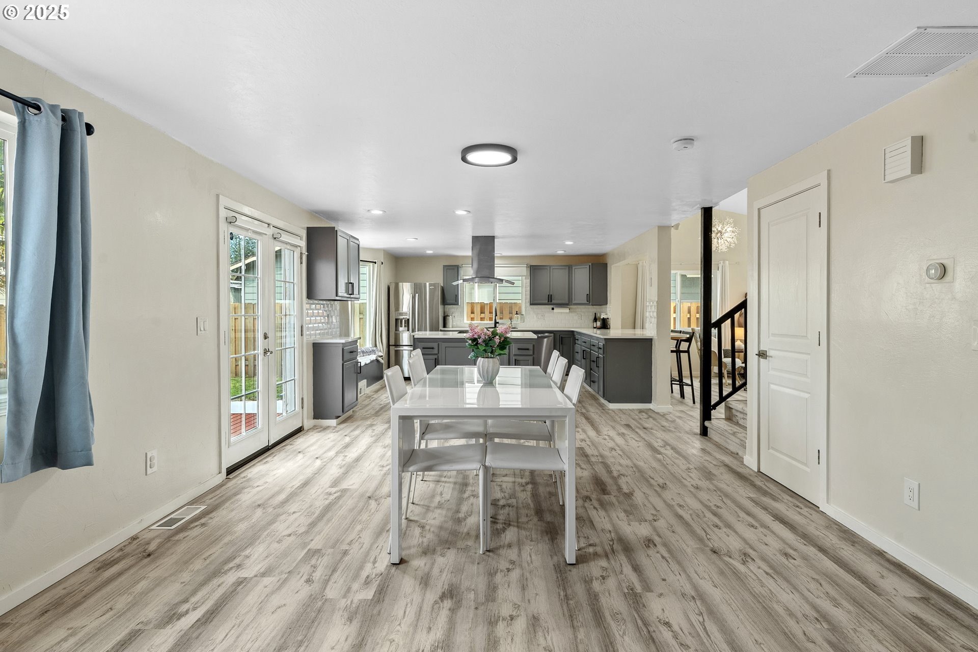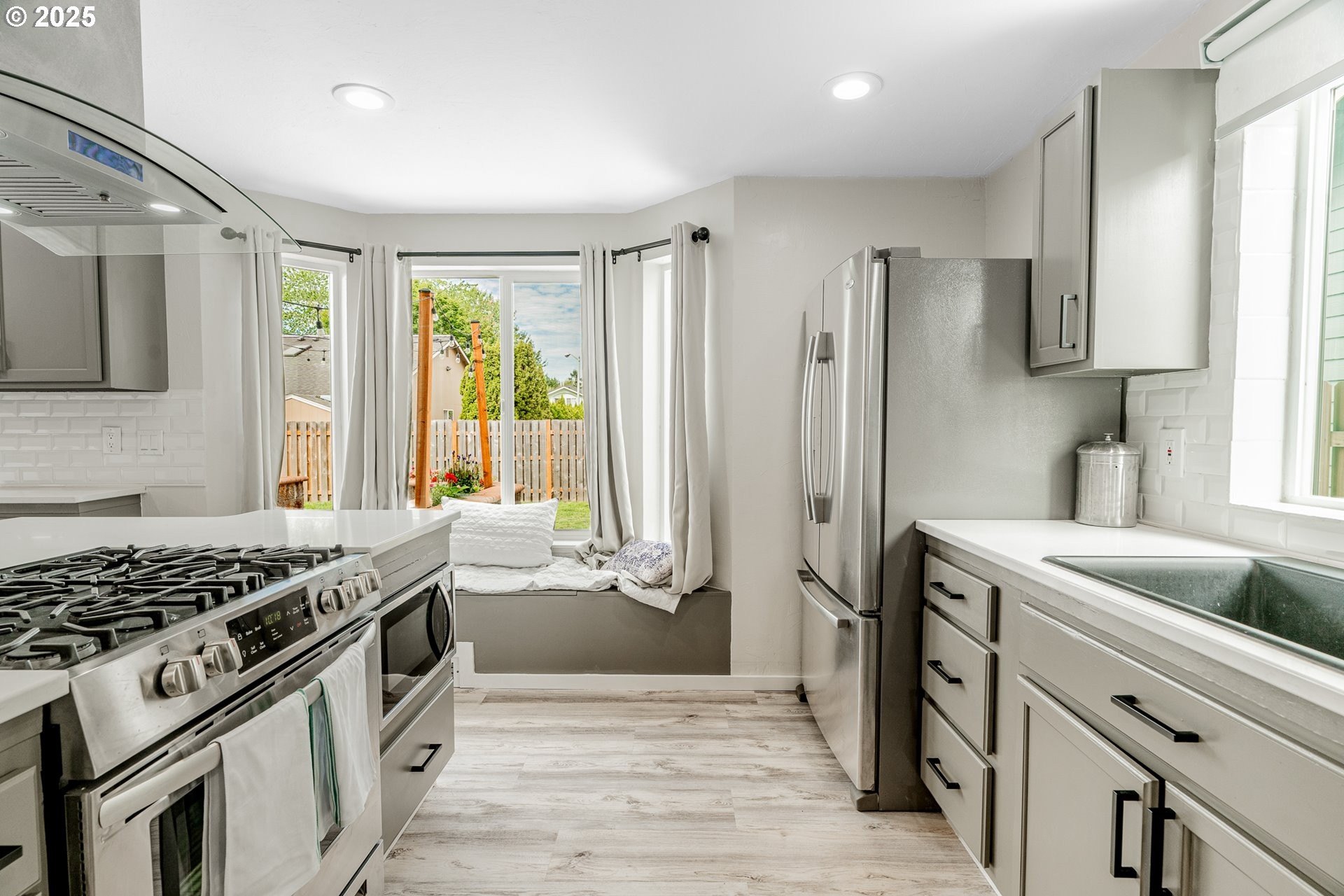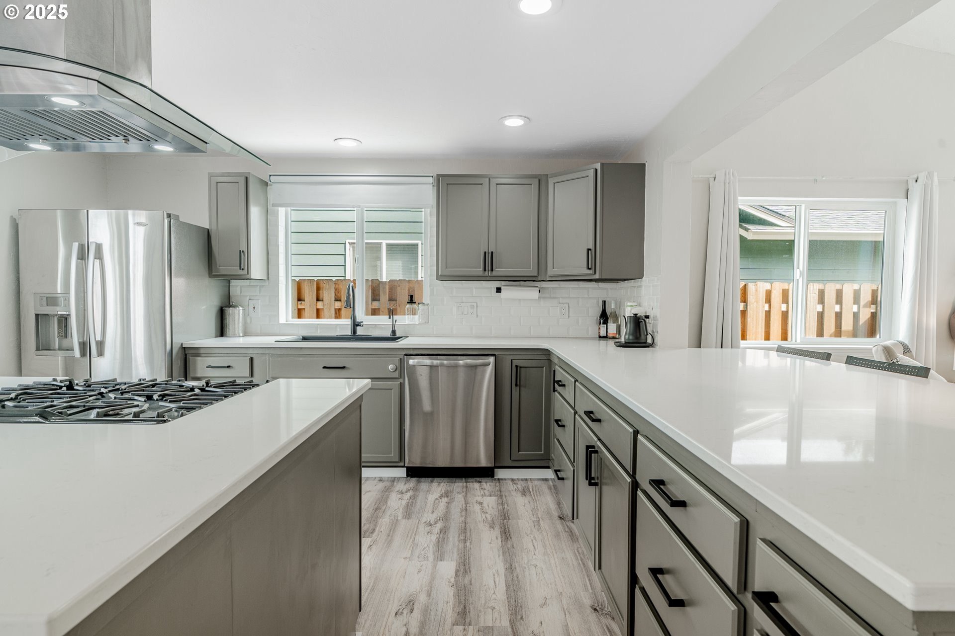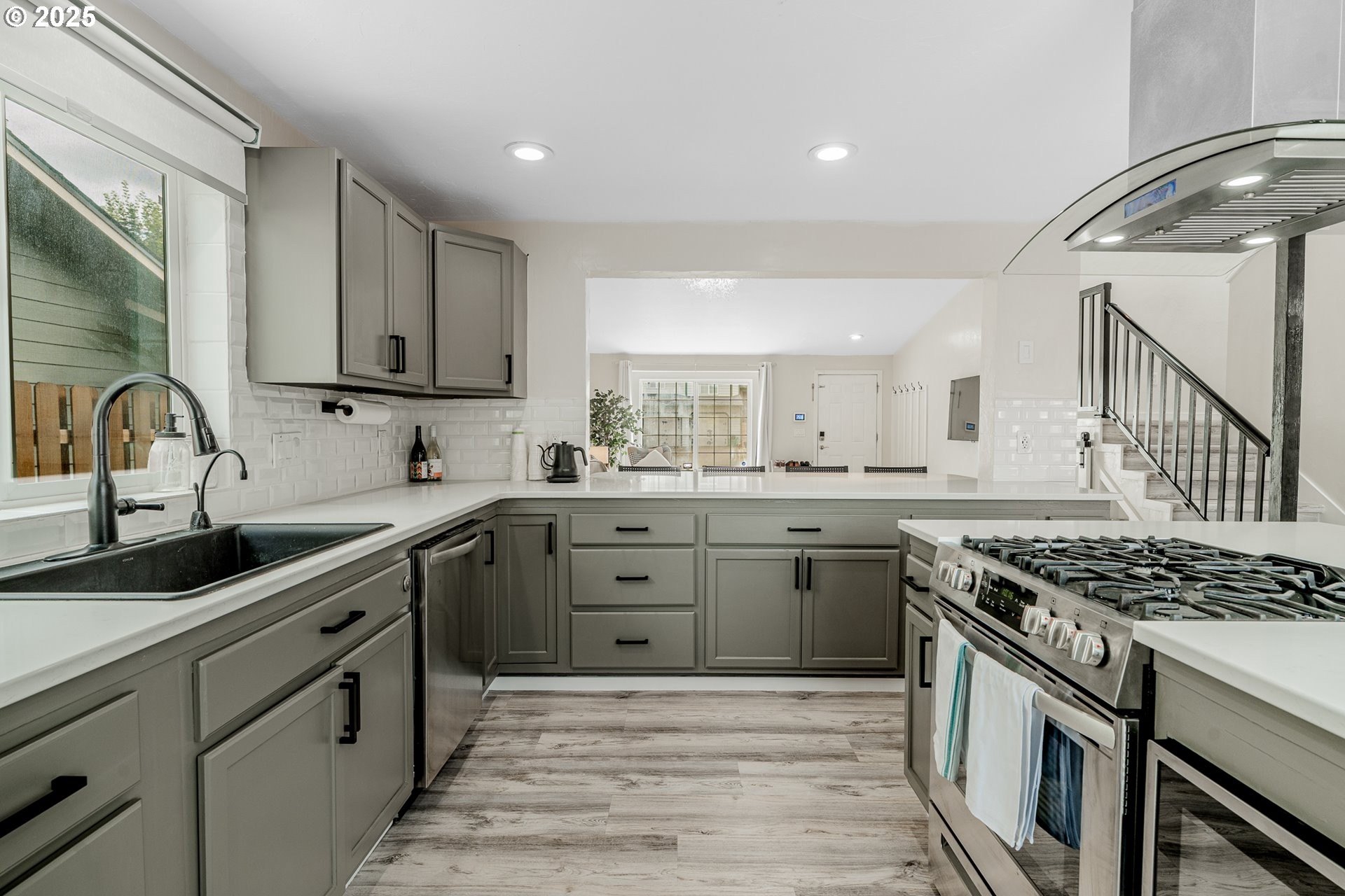 Welcome to this beautifully updated four-bedroom home designed for both comfortable living and effortless entertaining. With a thoughtful floor plan, vaulted ceilings, and a two-car attached garage, this home offers the perfect combination of style and functionality. Equipped with solar panels, this home provides energy efficiency and cost savings, making it as eco-friendly as it is elegant. The spacious, light-filled kitchen features elegant quartz countertops, a gas range with an electric stove, a built-in dishwasher, microwave, and a full-size refrigerator. A large island provides ample space for meal prep, casual dining, and lively gatherings. The kitchen flows seamlessly into the cozy family room with a gas fireplace, while the vaulted ceilings in the living room add an airy, open feel. Dual French doors lead to the backyard, creating a perfect setting for entertaining and relaxing. The primary suite is a true retreat with vaulted ceilings, a spacious walk-in closet, and a spa-like en-suite bathroom featuring dual sinks, a soaking tub, and a glass shower. Three additional bedrooms offer plenty of space and comfort for family or guests, complemented by a shared full bath, a main-level half bath, and a dedicated laundry room with washer and dryer for convenience. Outside, the private, fully fenced backyard provides an inviting oasis, complete with an expansive wood deck ideal for al fresco dining, BBQs, and enjoying the beautiful Pacific Northwest weather. Perfectly located near top-rated schools, lush parks, shopping, and major employers like Nike and Intel, this home makes commuting simple — even by bike or on foot. With luxury vinyl plank flooring throughout the main level, high-end fixtures, thoughtful updates, and the added benefit of solar energy, this home offers low-maintenance living with modern comfort and style. Don’t miss your chance to make it yours — schedule a private tour today! [Home Energy Score = 8. HES Report at https://rpt.greenbuildingregistry.com/hes/OR10241044]