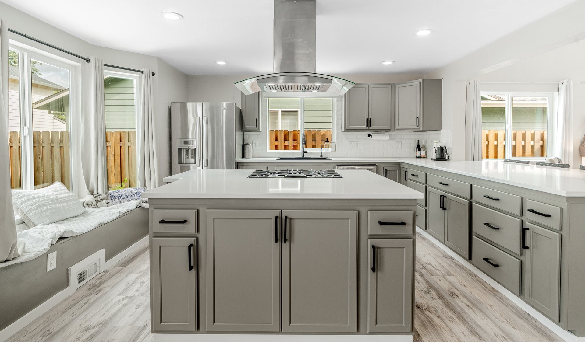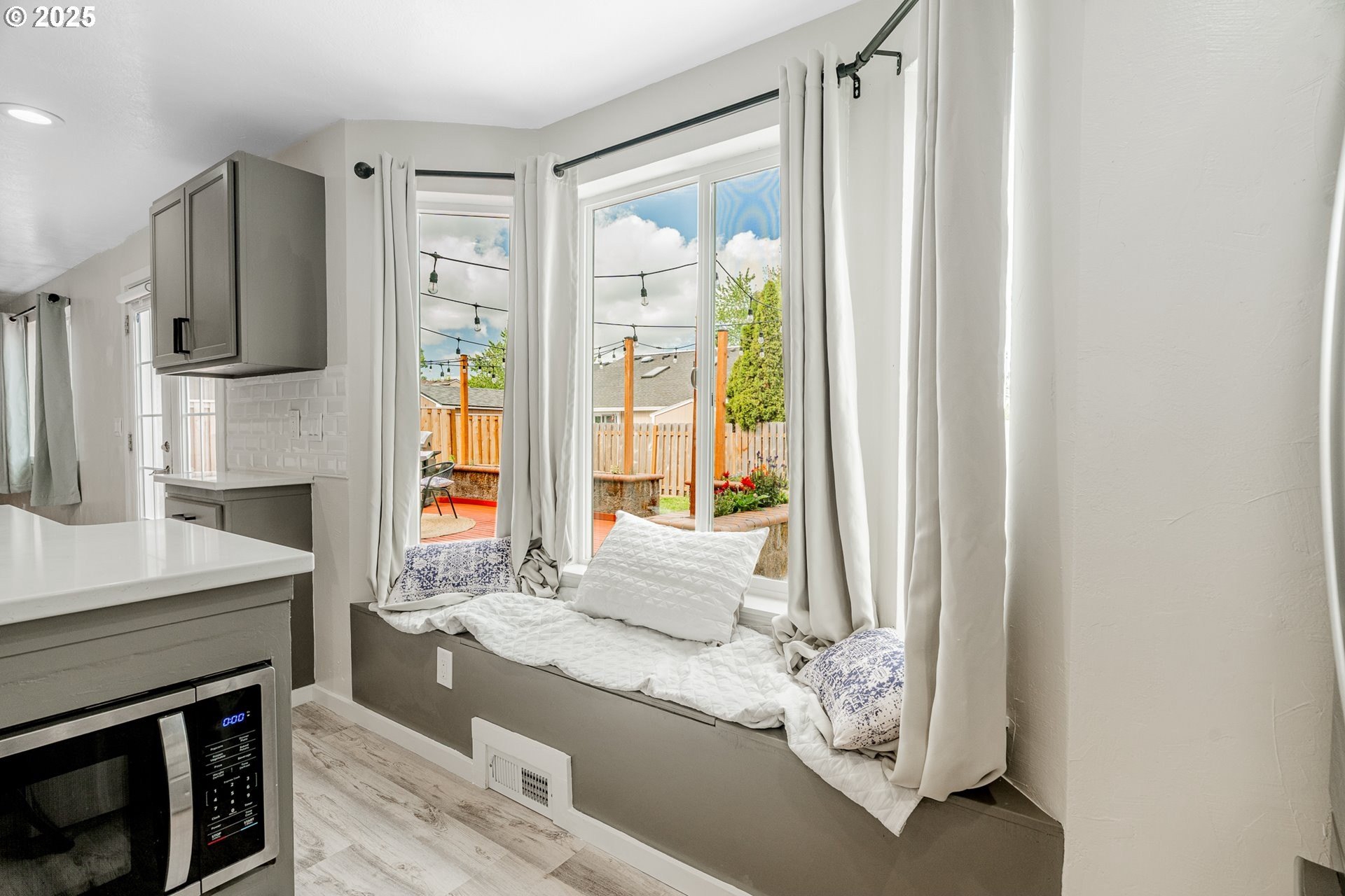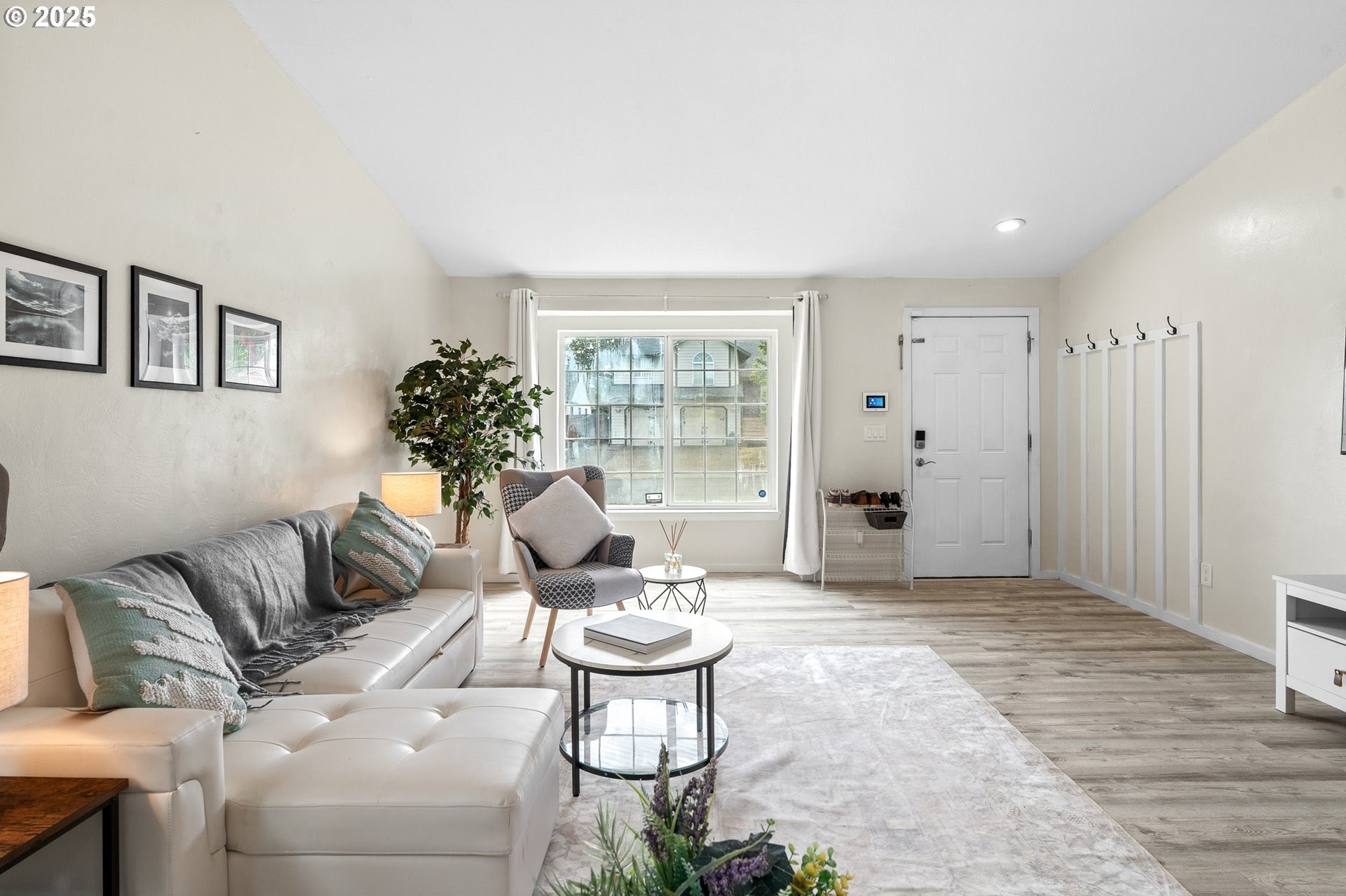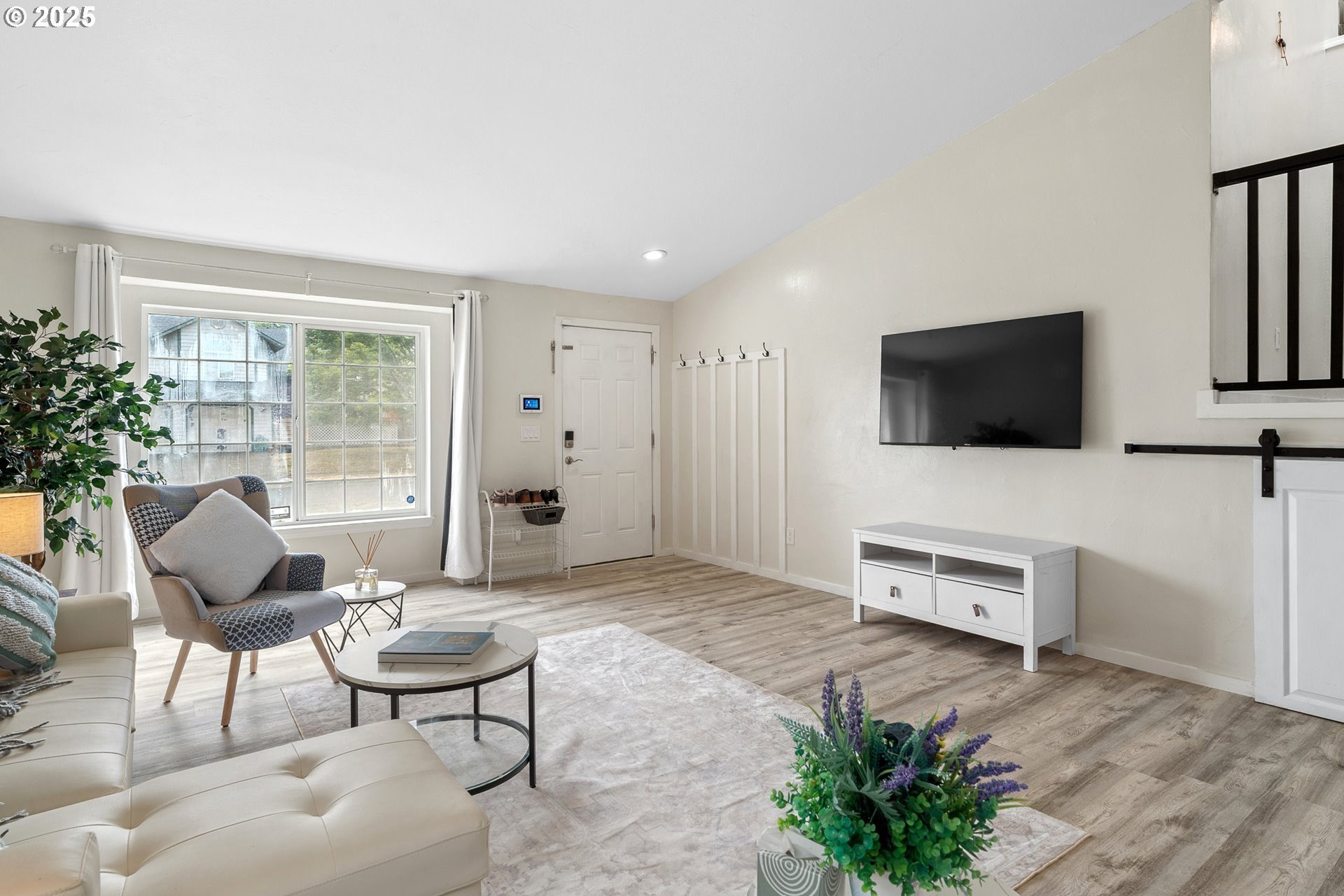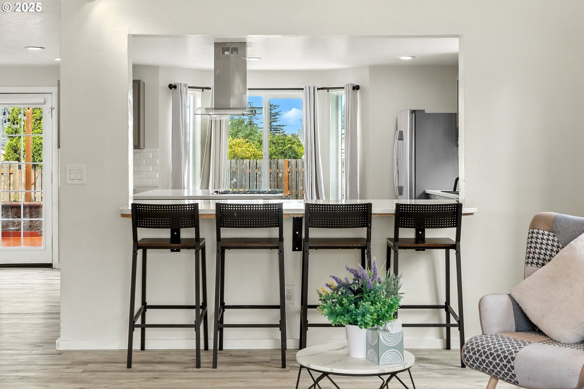 Welcome to this beautifully updated four-bedroom home designed for both comfortable living and effortless entertaining. With a thoughtful floor plan, vaulted ceilings, and a two-car attached garage, this home offers the perfect combination of style and functionality. Equipped with solar panels, this home provides energy efficiency and cost savings, making it as eco-friendly as it is elegant. The spacious, light-filled kitchen features elegant quartz countertops, a gas range with an electric stove, a built-in dishwasher, microwave, and a full-size refrigerator. A large island provides ample space for meal prep, casual dining, and lively gatherings. The kitchen flows seamlessly into the cozy family room with a gas fireplace, while the vaulted ceilings in the living room add an airy, open feel. Dual French doors lead to the backyard, creating a perfect setting for entertaining and relaxing. The primary suite is a true retreat with vaulted ceilings, a spacious walk-in closet, and a spa-like en-suite bathroom featuring dual sinks, a soaking tub, and a glass shower. Three additional bedrooms offer plenty of space and comfort for family or guests, complemented by a shared full bath, a main-level half bath, and a dedicated laundry room with washer and dryer for convenience. Outside, the private, fully fenced backyard provides an inviting oasis, complete with an expansive wood deck ideal for al fresco dining, BBQs, and enjoying the beautiful Pacific Northwest weather. Perfectly located near top-rated schools, lush parks, shopping, and major employers like Nike and Intel, this home makes commuting simple — even by bike or on foot. With luxury vinyl plank flooring throughout the main level, high-end fixtures, thoughtful updates, and the added benefit of solar energy, this home offers low-maintenance living with modern comfort and style. Don’t miss your chance to make it yours — schedule a private tour today! [Home Energy Score = 8. HES Report at https://rpt.greenbuildingregistry.com/hes/OR10241044]