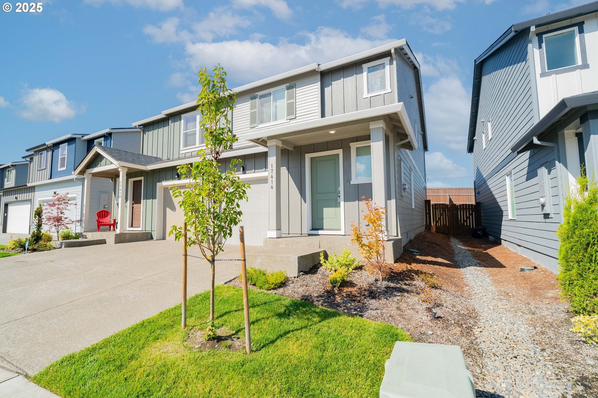 Calling all first-time home buyers and investors! Impeccably maintained and better than new! Built in 2023, this 3 bedroom + loft, 2.1 bathroom townhome offers 1,538 SF of stylish living space in a highly desirable Ridgefield community. Just minutes from I-5 and a short drive to all of Ridgefield’s schools, parks, shops, and restaurants, this location blends small-town charm with commuter-friendly convenience.The open main level features a stunning kitchen with white shaker cabinets, quartz countertops, a large island, and stainless steel appliances. The adjoining living room showcases an upgraded electric fireplace—an inviting focal point for gatherings. Upstairs, a versatile loft offers the perfect flex space, while the primary suite and two additional bedrooms provide comfort and privacy.Unlike new construction, this home already includes upgrades like air conditioning, custom blinds, and the fireplace feature—saving you thousands. The community offers amenities to enjoy year-round, including a dog park, bocce ball courts, and beautifully maintained common spaces. Complete with an attached 1-car garage, this townhome delivers low-maintenance living with style and convenience.