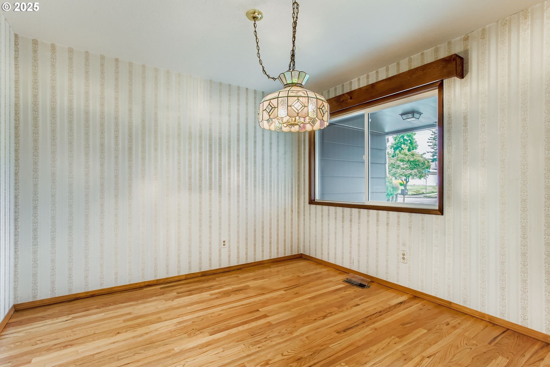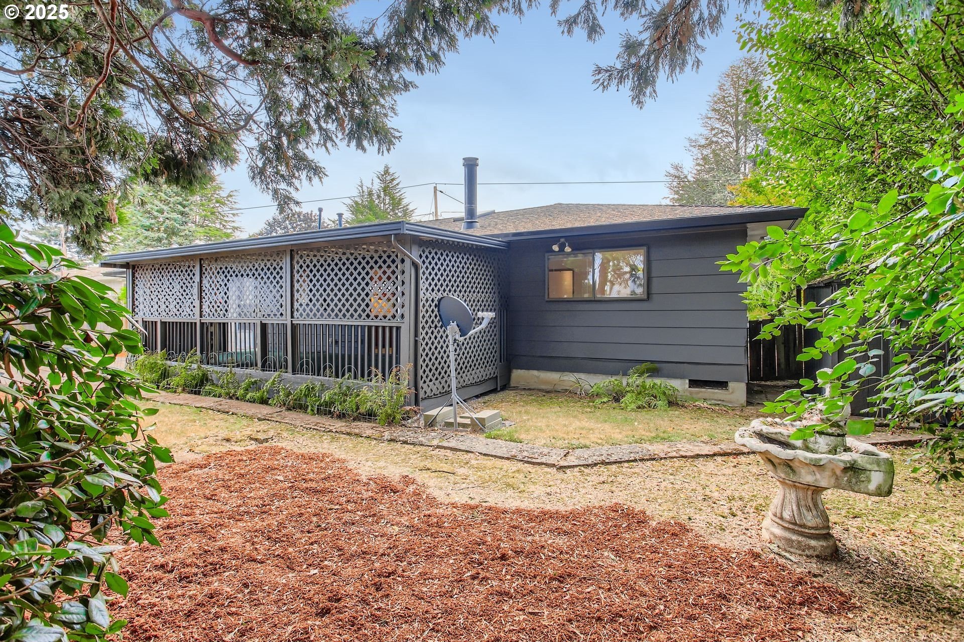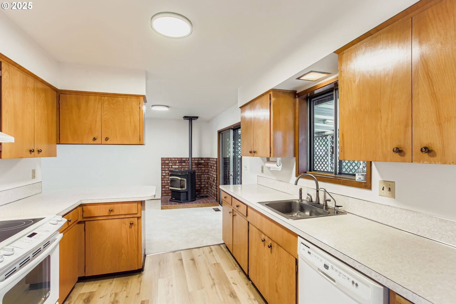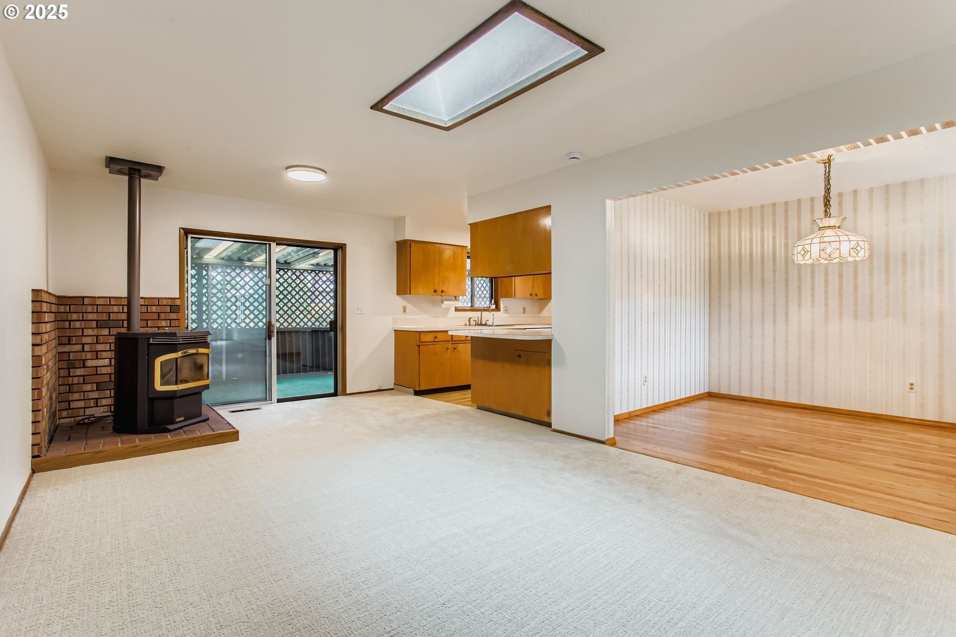 Nicely maintained 1968 ranch-style home with a two-car attached garage, set on a large private lot. The spacious floor plan includes a formal living room anchored by a classic Roman brick fireplace and a large picture window that fills the space with natural light. The kitchen opens to a comfortable family room featuring a pellet stove, skylight and French doors that lead to a covered patio—perfect for year-round enjoyment.A formal dining room showcases original hardwood floors, while three generously sized bedrooms all include large closets. A coveted second bathroom adds convenience and value.This cleam move in ready home is a terrific opportunity in a quiet, well-kept neighborhood with quick access to both Gresham and Portland.