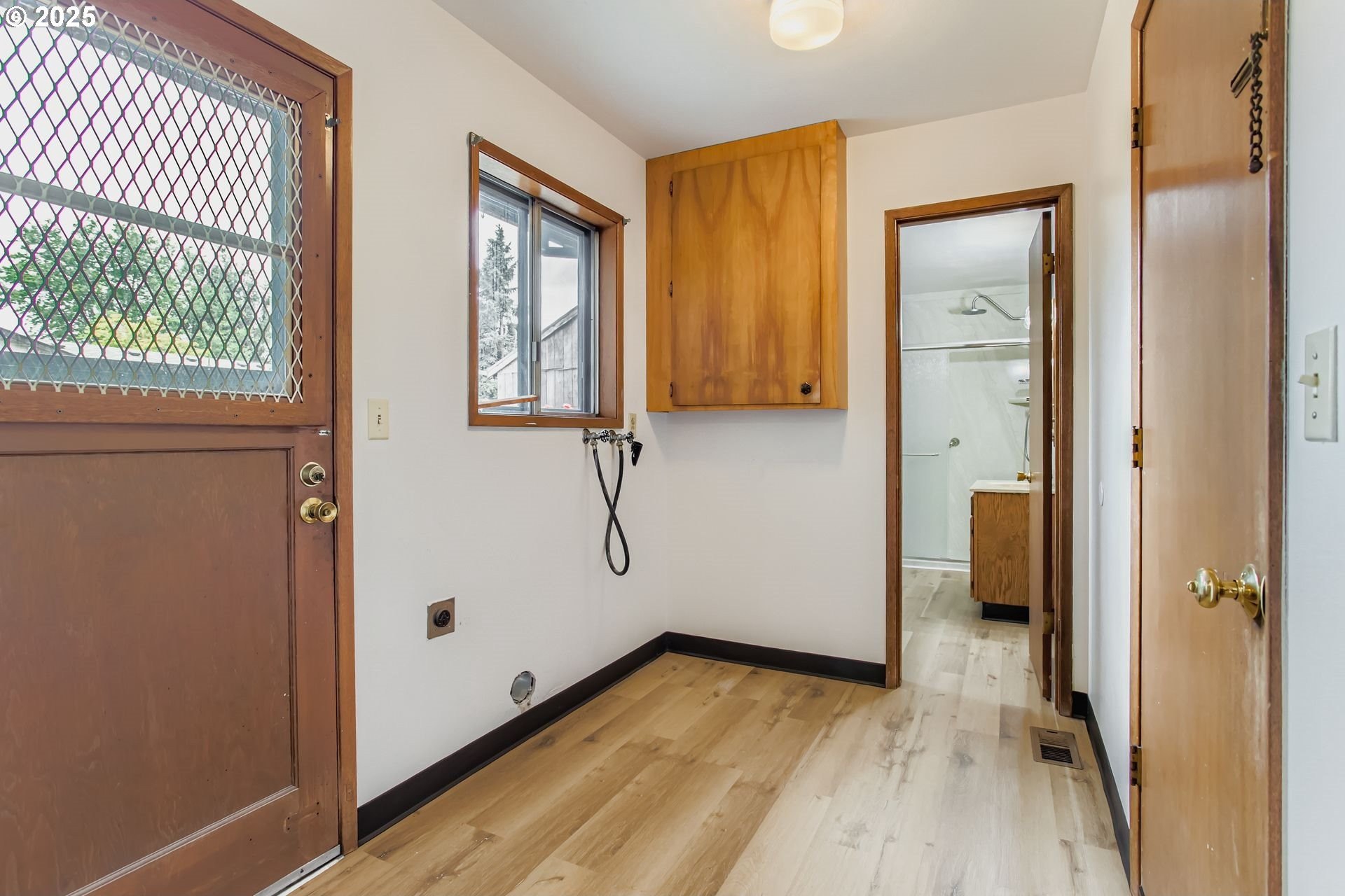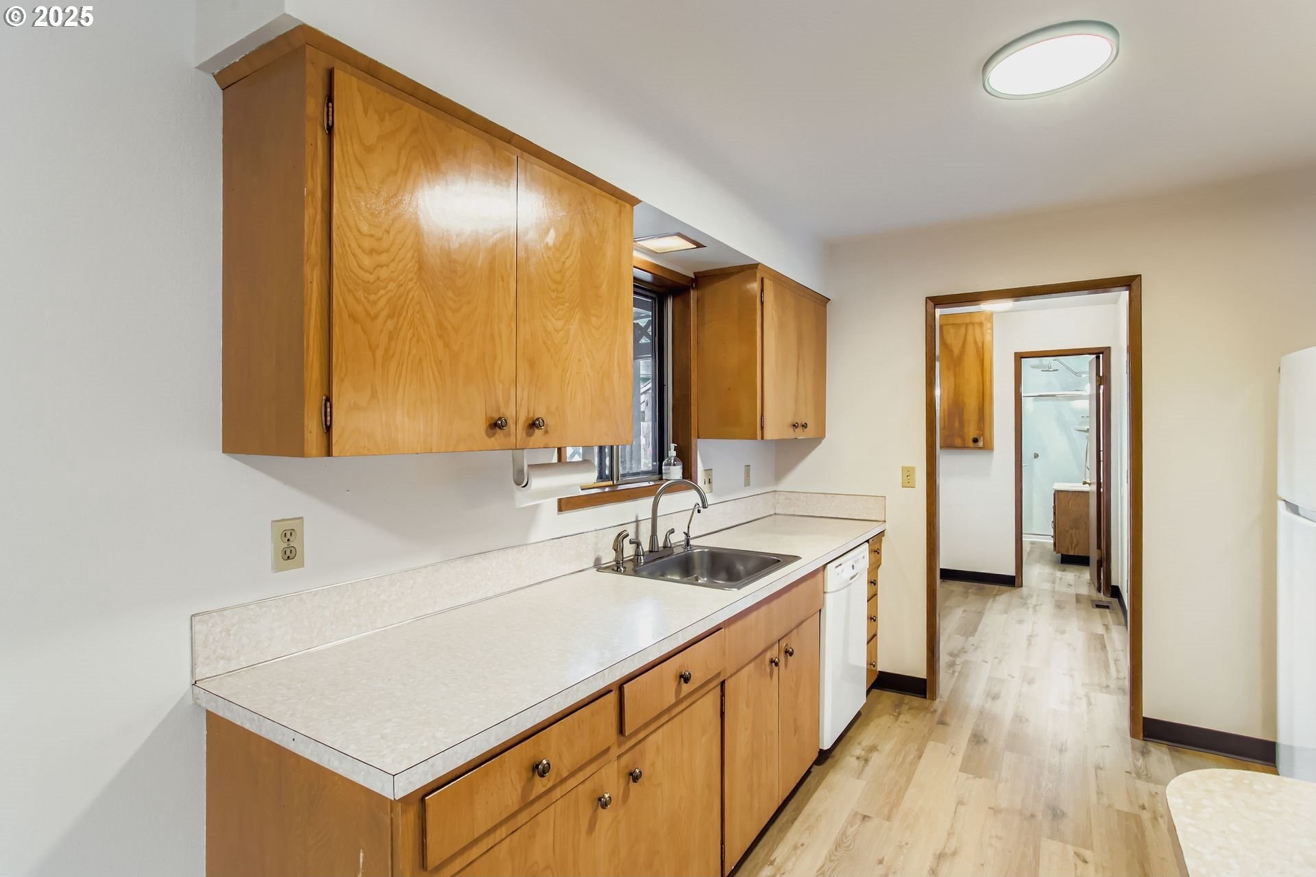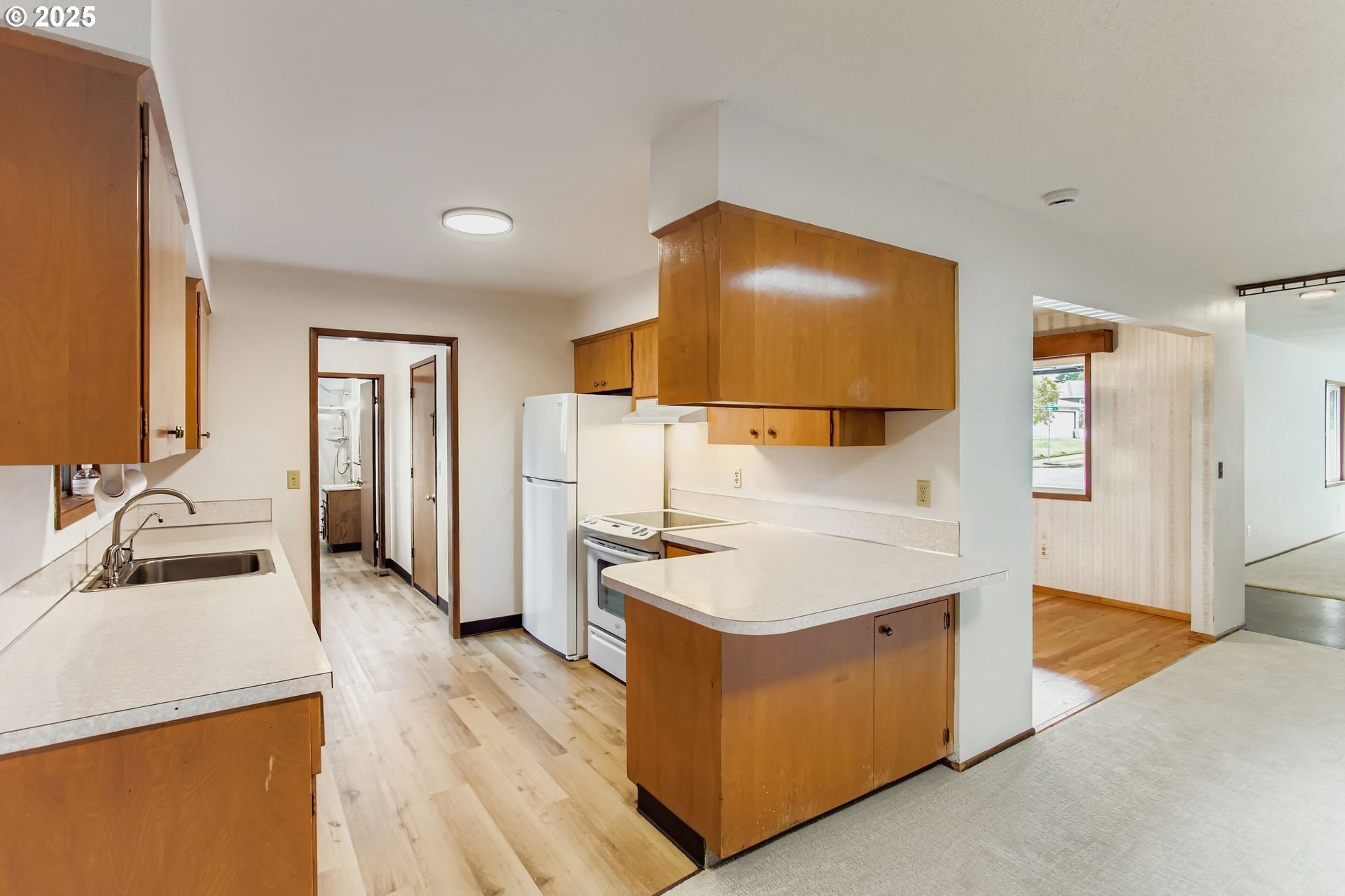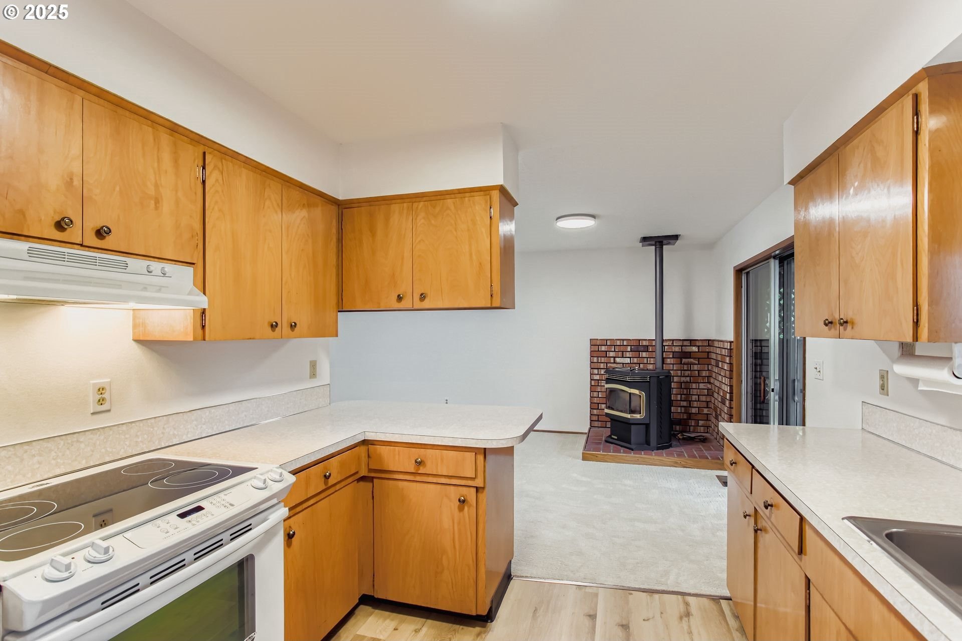 Nicely maintained 1968 ranch-style home with a two-car attached garage, set on a large private lot. The spacious floor plan includes a formal living room anchored by a classic Roman brick fireplace and a large picture window that fills the space with natural light. The kitchen opens to a comfortable family room featuring a pellet stove, skylight and French doors that lead to a covered patio—perfect for year-round enjoyment.A formal dining room showcases original hardwood floors, while three generously sized bedrooms all include large closets. A coveted second bathroom adds convenience and value.This cleam move in ready home is a terrific opportunity in a quiet, well-kept neighborhood with quick access to both Gresham and Portland.