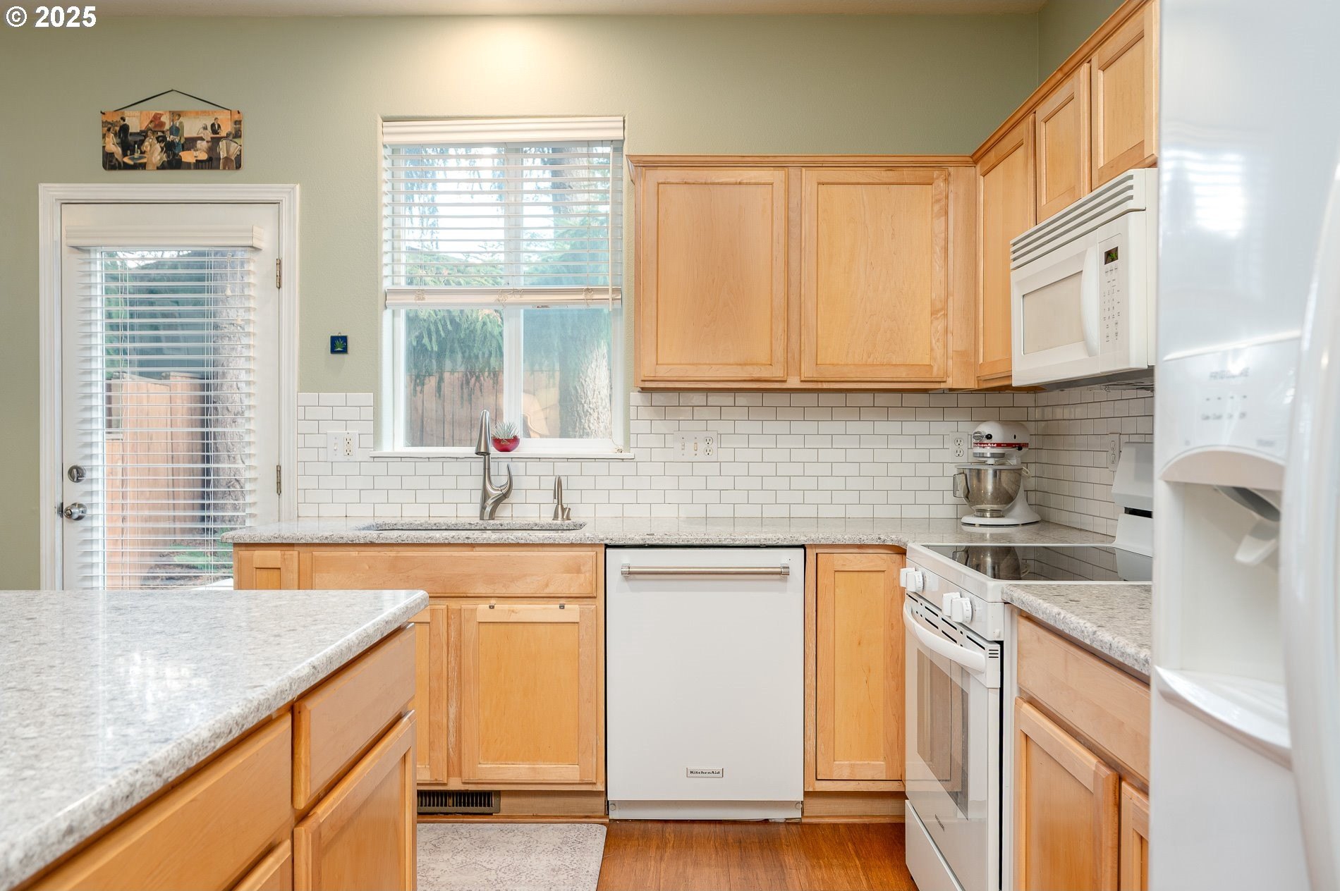 Welcome Home to this beautiful home in the heart of Sherwood that blends comfort, style, and convenience. From the moment you step inside, you’ll notice the thoughtful details and quality finishes that make this property stand out. The main living area features stunning bamboo hardwood floors that bring warmth and character to the space. A cozy fireplace creates the perfect focal point for gatherings or quiet evenings in, while large windows allow natural light throughout the day. The open layout connects seamlessly to the kitchen and dining areas, creating an inviting flow that is ideal for both entertaining and everyday living. The kitchen is well-appointed with quartz countertops, pantry, and plenty of cabinetry, offering a functional space for meal prep and entertaining. Whether you’re cooking for two or hosting friends, this kitchen is designed to meet your needs. Upstairs, the spacious primary suite provides a private retreat with room to unwind. The suite includes a generous walk-in closet and a well-designed bathroom, making it the perfect blend of comfort and practicality. Additional bedrooms are versatile and can easily serve as guest rooms, office space, or creative areas depending on your lifestyle. Step outside to discover your own private backyard oasis. The fully fenced yard offers both security and seclusion, while the patio provides an excellent spot for barbecues, summer evenings, or simply relaxing in the fresh air. With its combination of privacy and functionality, the outdoor space feels like an extension of the home. Additional highlights include central air conditioning for year-round comfort and an ideal location in a desirable Sherwood neighborhood, close to parks, schools, shopping, and local dining.