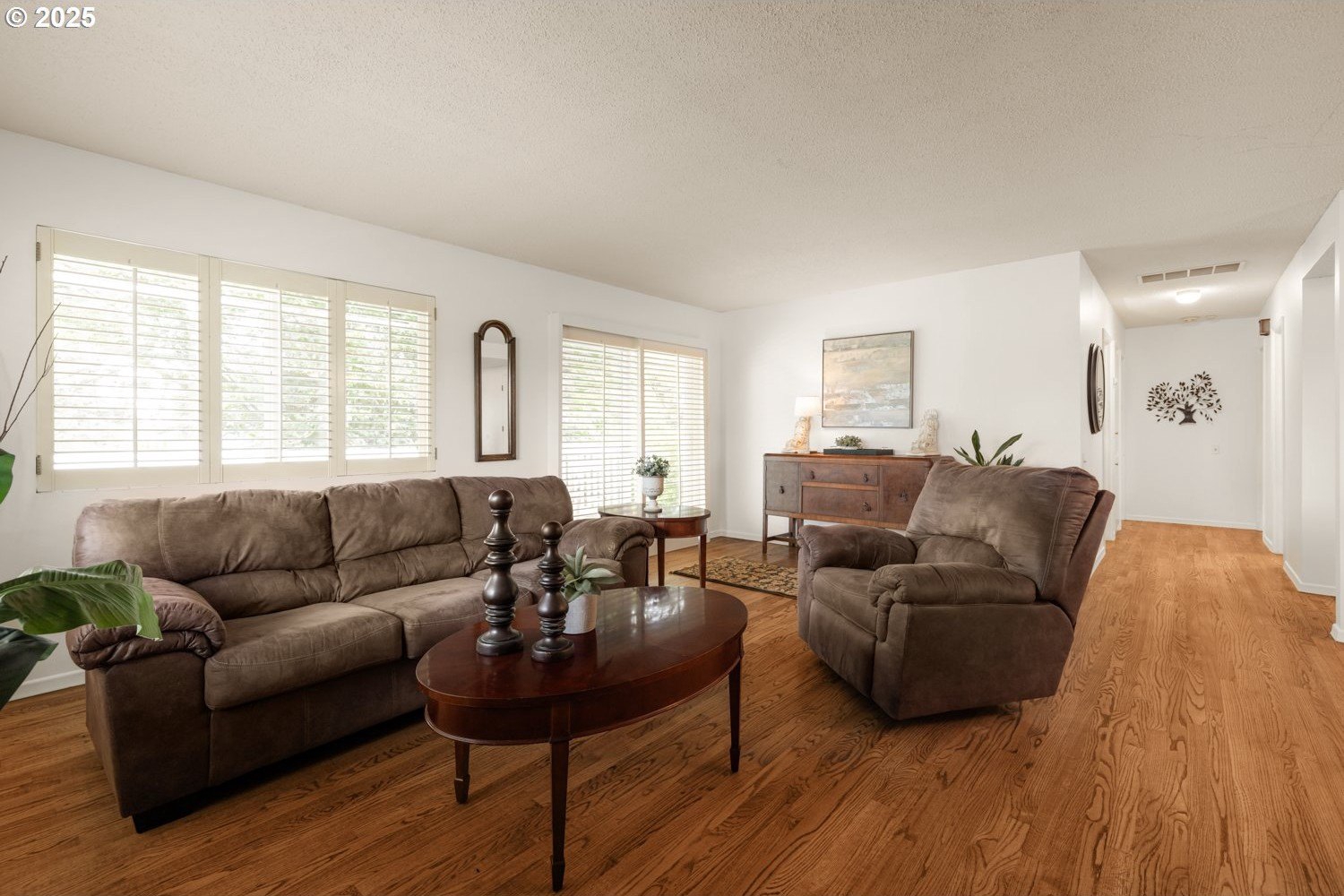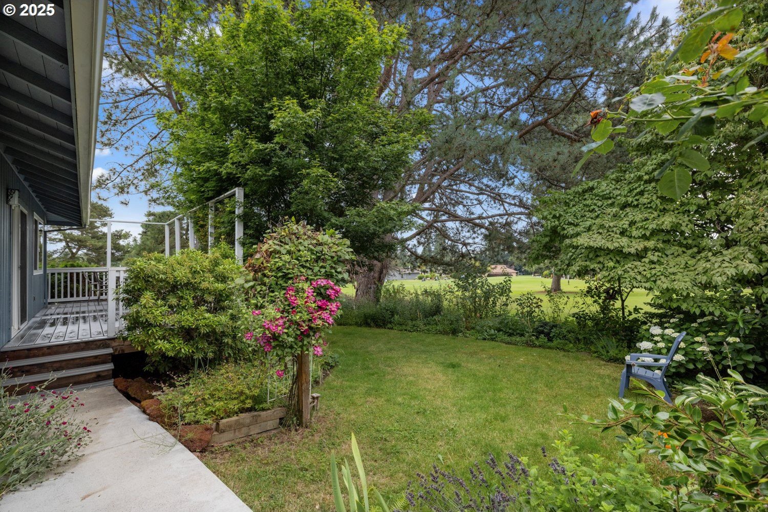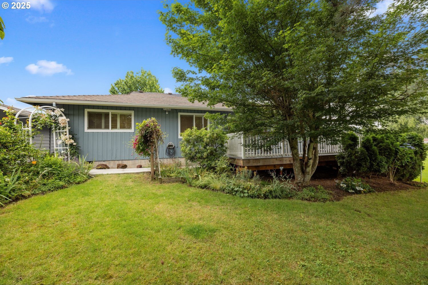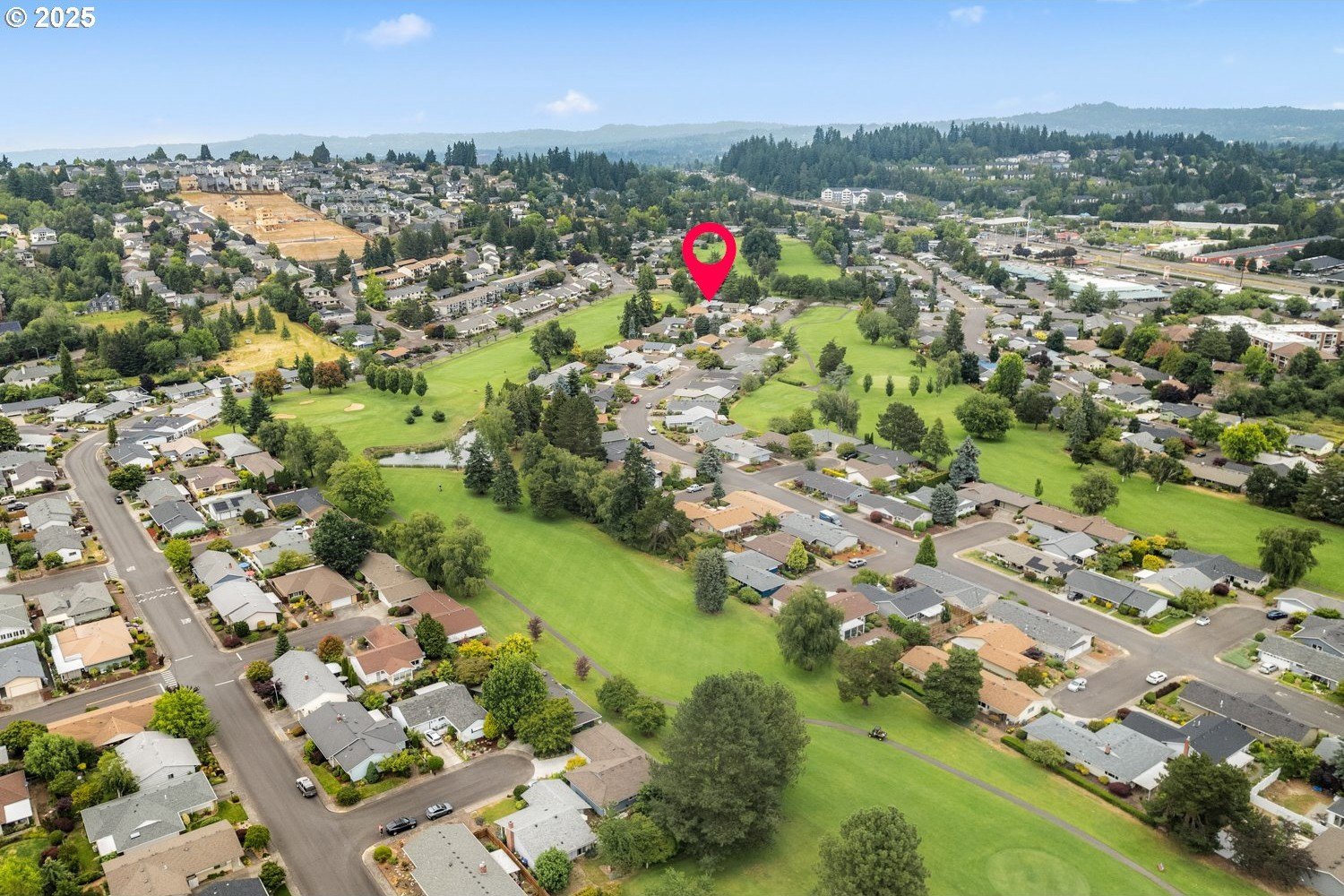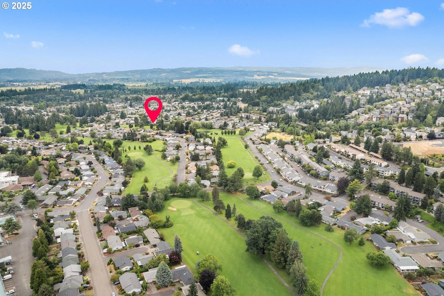 Discover your dream home nestled in a serene cul-de-sac, offering tranquility and privacy yet right on the golf course where you can watch the action and see Mt Hood from your kitchen window. Rare move-in ready gem boasts updated kitchen and baths, with all the modern conveniences. The spacious interior is enhanced with beautiful plantation shutters, adding charm and natural light control. You'll appreciate the hardwood floors, air conditioning, and the washer, dryer and refrigerator are included. Relax in the luxurious walk-in bath spa, perfect for unwinding after a long day. It's well maintained and ready to enjoy! Step outside to your manicured yard and expansive deck, providing breathtaking views of the lush golf course—ideal for entertaining or peaceful mornings. This home is the perfect blend of comfort, style, and location.