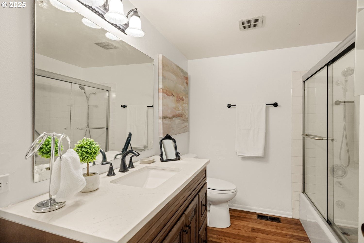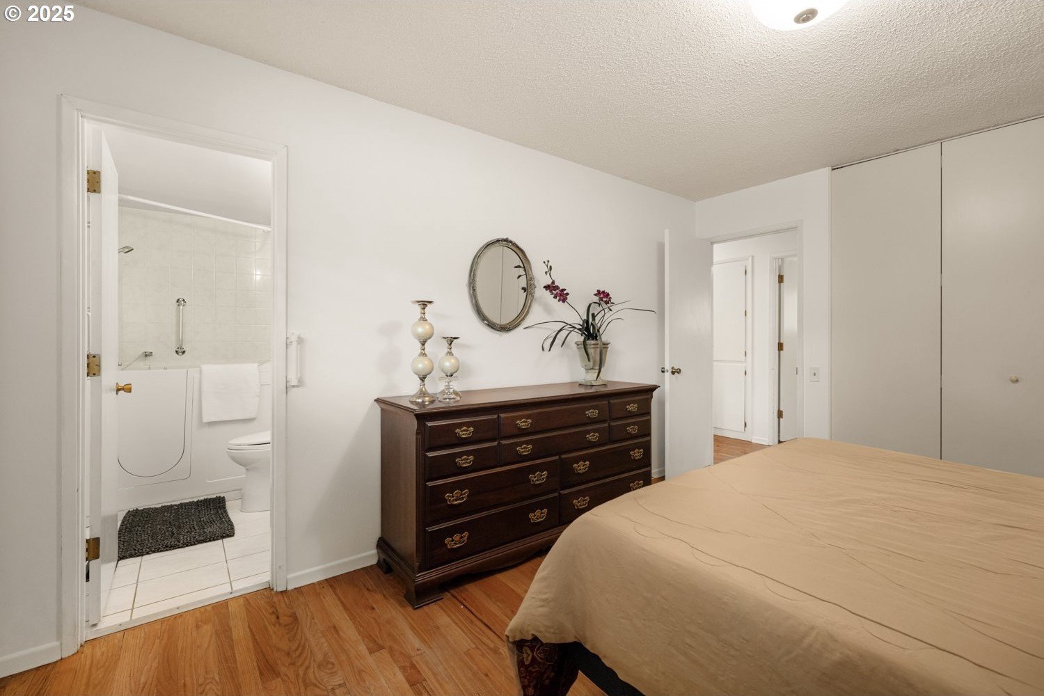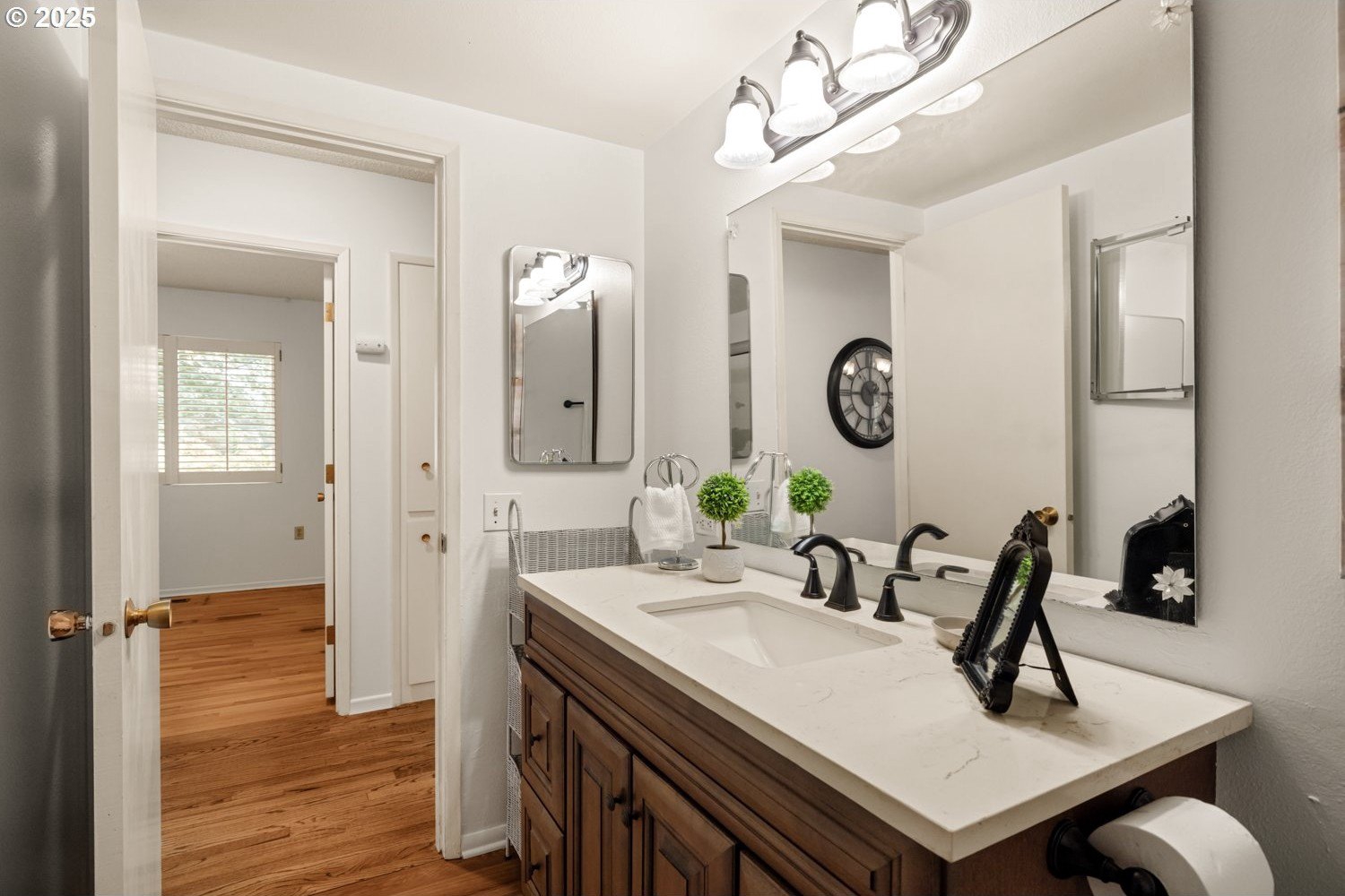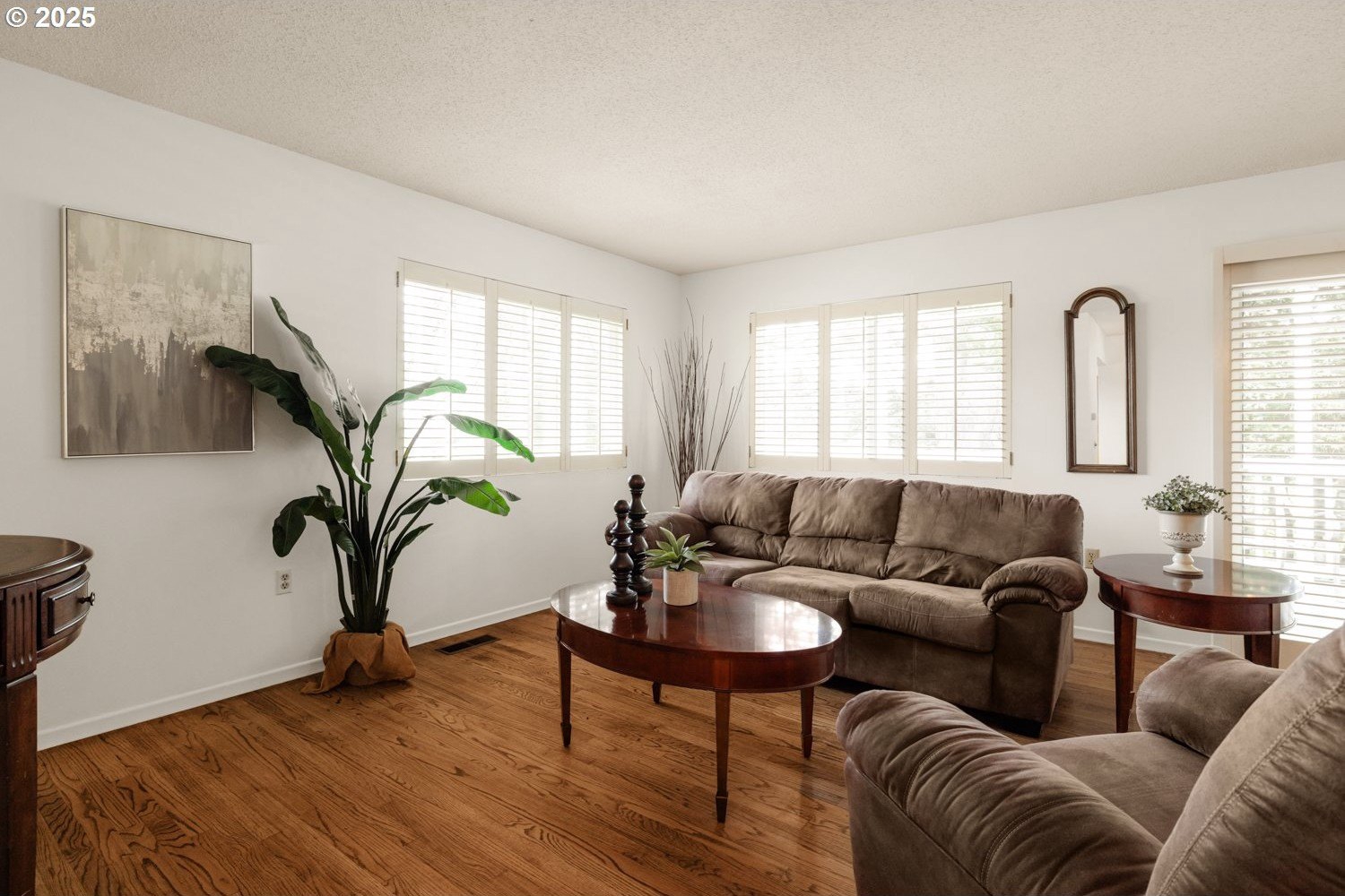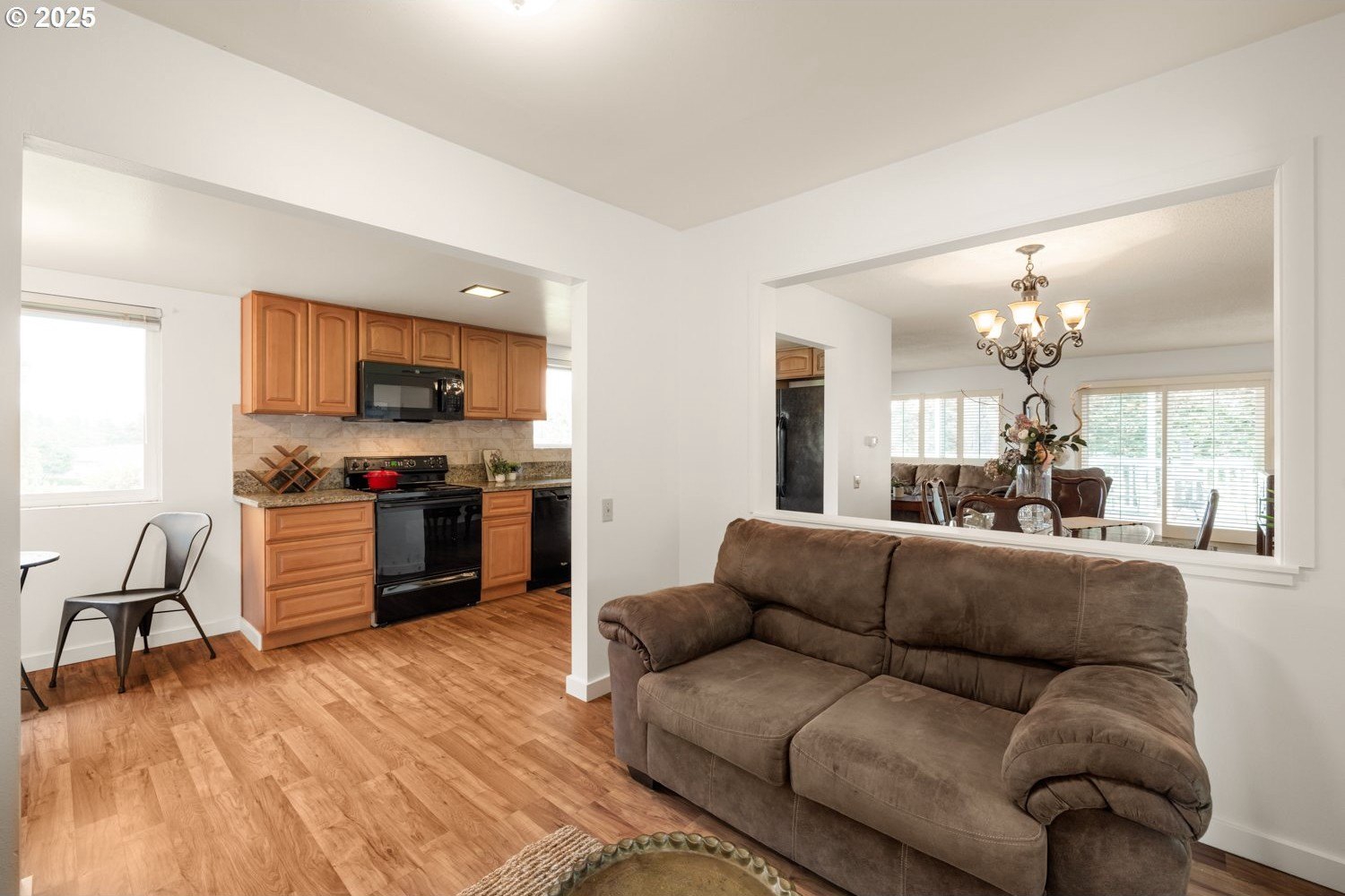 Discover your dream home nestled in a serene cul-de-sac, offering tranquility and privacy yet right on the golf course where you can watch the action and see Mt Hood from your kitchen window. Rare move-in ready gem boasts updated kitchen and baths, with all the modern conveniences. The spacious interior is enhanced with beautiful plantation shutters, adding charm and natural light control. You'll appreciate the hardwood floors, air conditioning, and the washer, dryer and refrigerator are included. Relax in the luxurious walk-in bath spa, perfect for unwinding after a long day. It's well maintained and ready to enjoy! Step outside to your manicured yard and expansive deck, providing breathtaking views of the lush golf course—ideal for entertaining or peaceful mornings. This home is the perfect blend of comfort, style, and location.