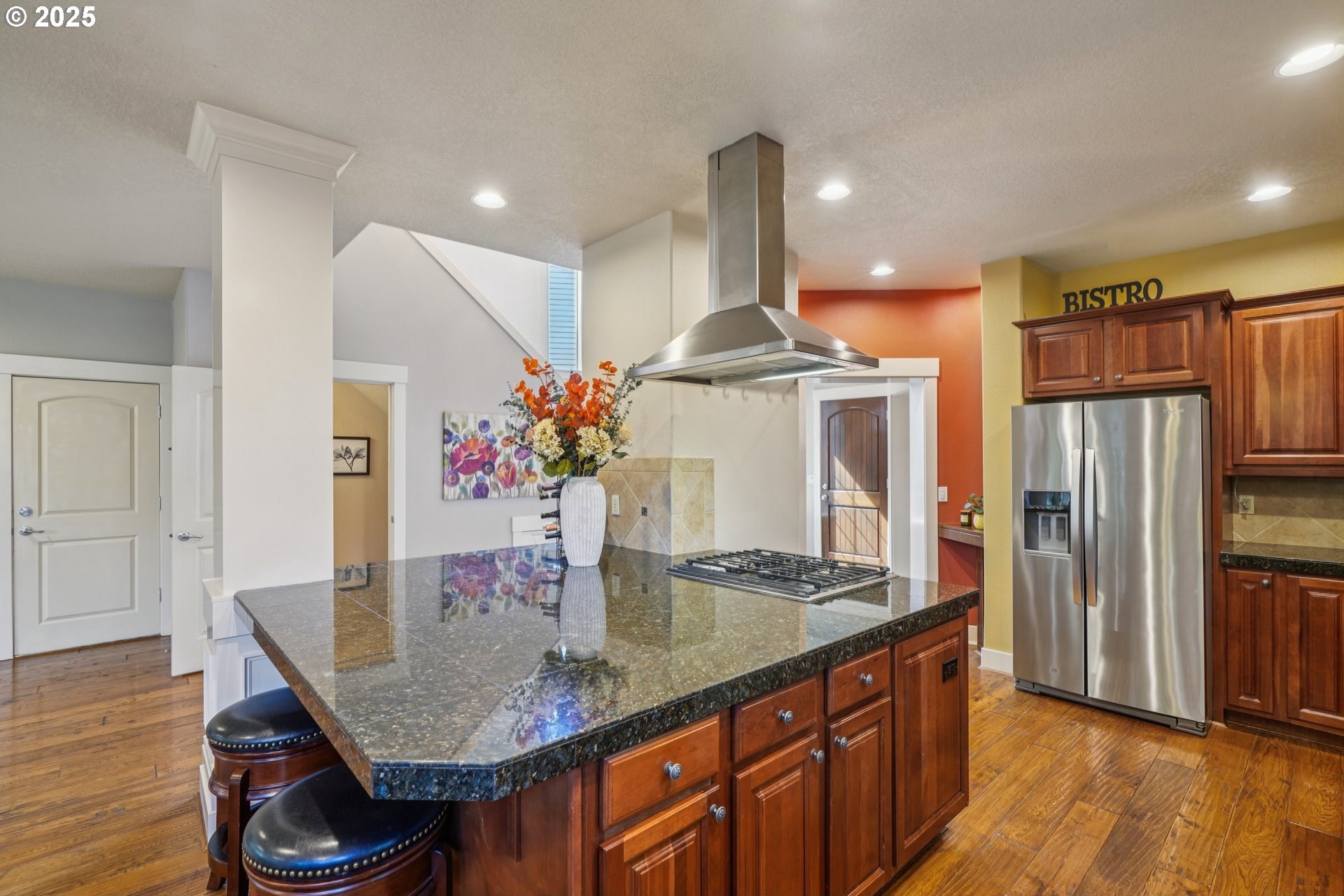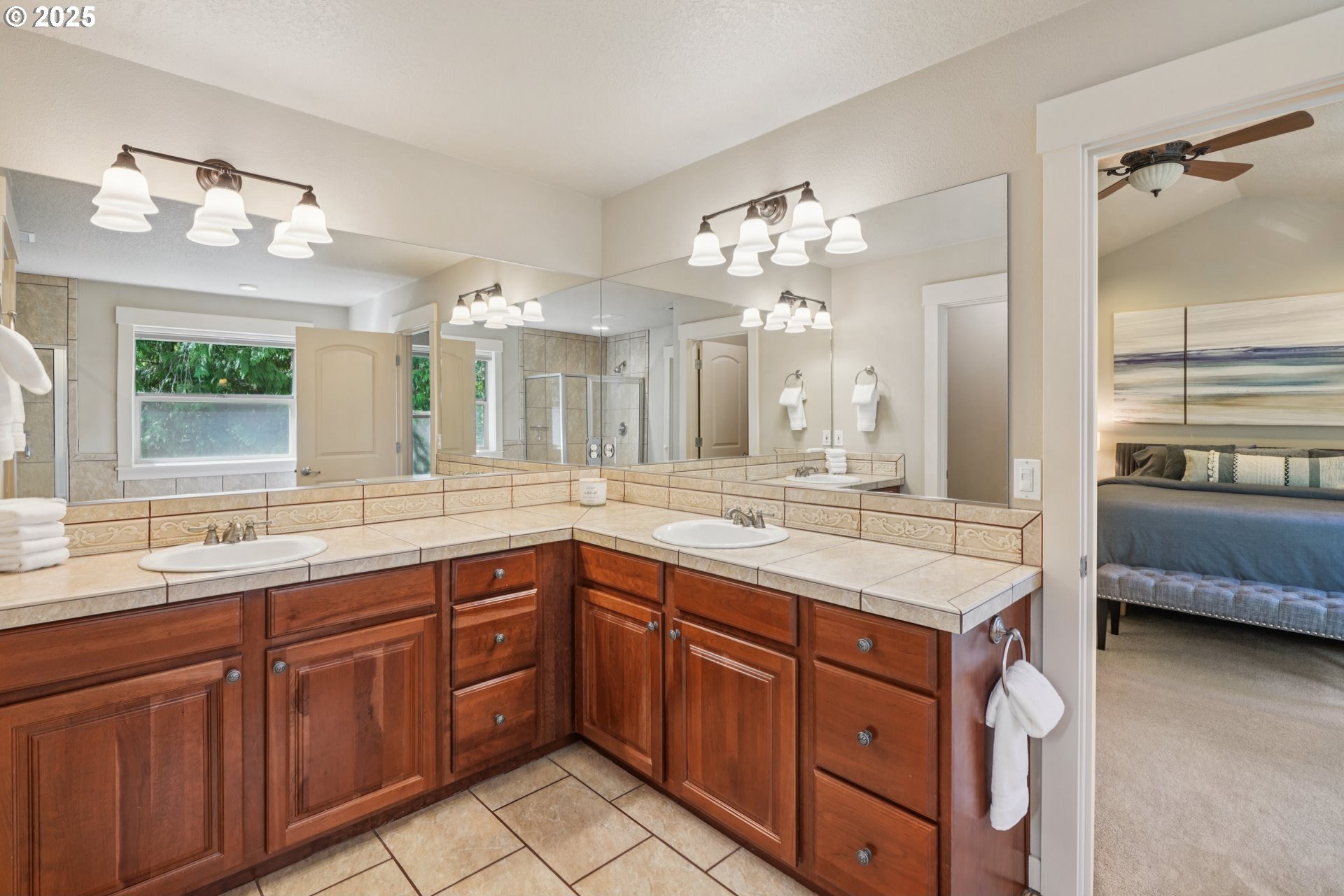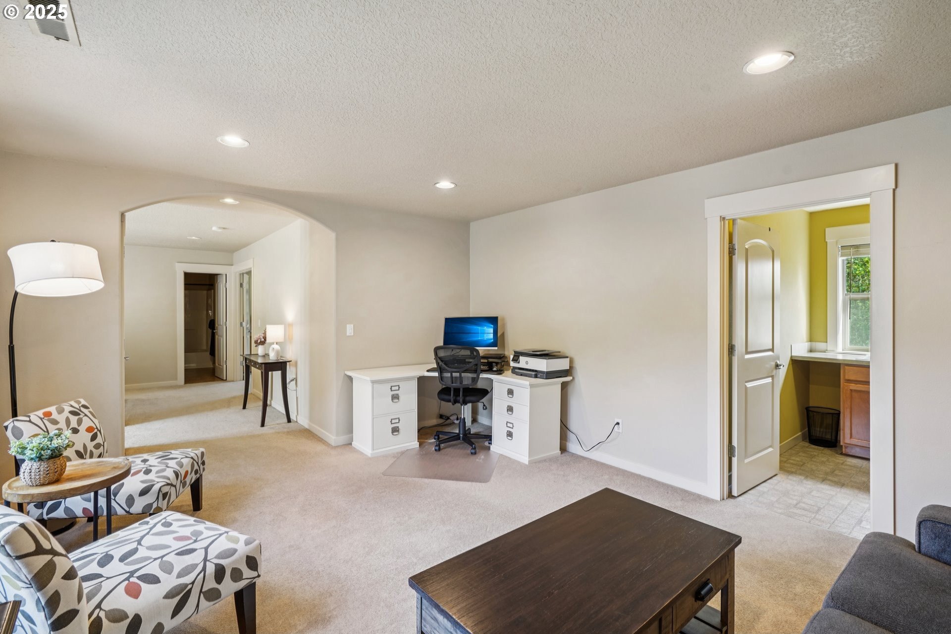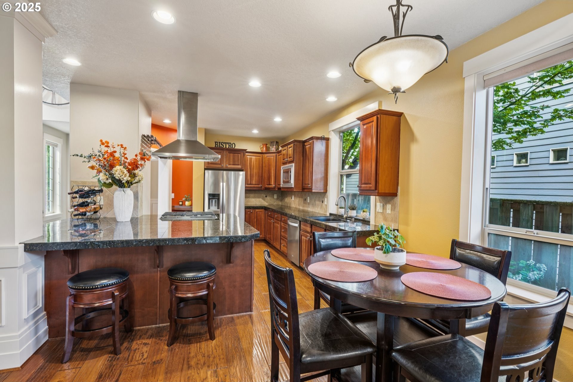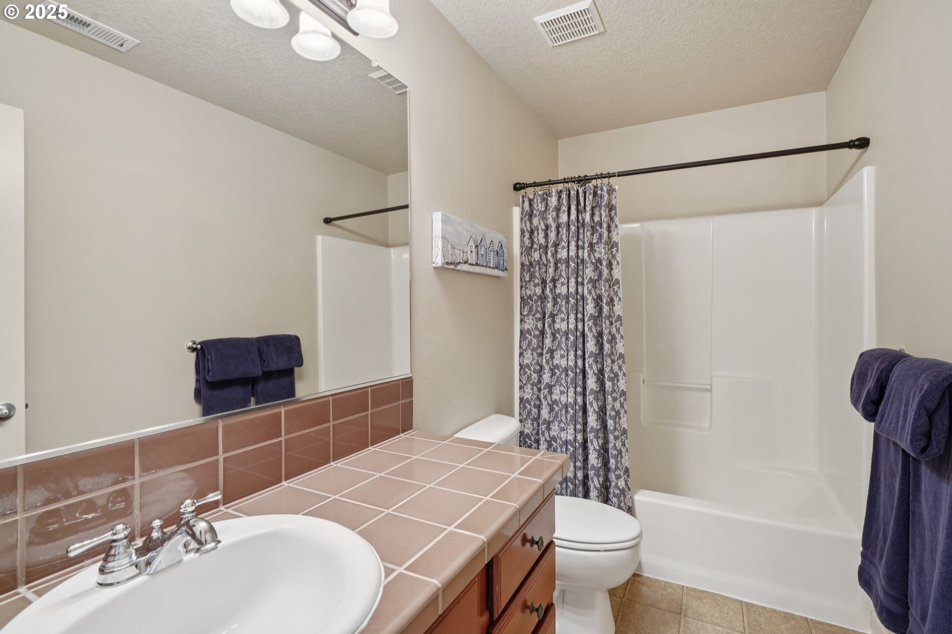 Nestled in a quiet cul-de-sac and backing to lush greenspace, this beautifully maintained home offers comfort, privacy, and sophisticated style. Step into the dramatic two-story foyer, where towering windows flood the space with natural light. The open-concept great room and formal dining area flow seamlessly into a gourmet kitchen with granite counters, tile backsplash, hand-scraped wood floors, and newer stainless appliances.Upstairs features three spacious bedrooms with vaulted ceilings, a versatile bonus room, and 2.5 baths. Premium wood finishes and soaring ceilings throughout create a sense of upscale elegance. The laundry room includes built-in cabinetry for added storage and organization. Modern conveniences include an Alexa-enabled smart thermostat for effortless climate control. Outside, enjoy your own private oasis with mature landscaping, stonework, and raised beds. The covered patio is enhanced by a 20' x 13' electric retractable awning, offering extended year-round enjoyment. Located on a private road with minimal traffic, just a block from Deer Creek Elementary and minutes from King City Community Park, with a playground, athletic fields, sports courts, and access to the beautiful Tualatin River. A rare find—luxury, privacy, and convenience all in one!