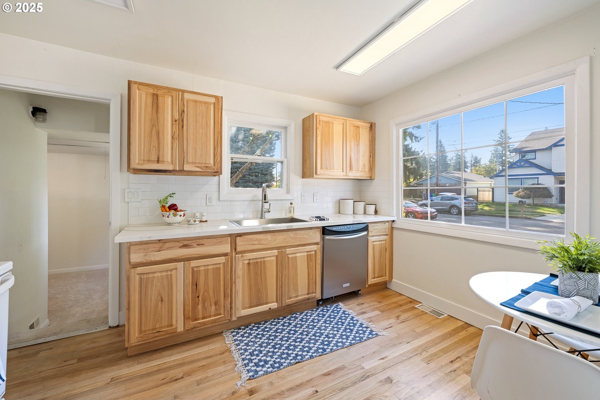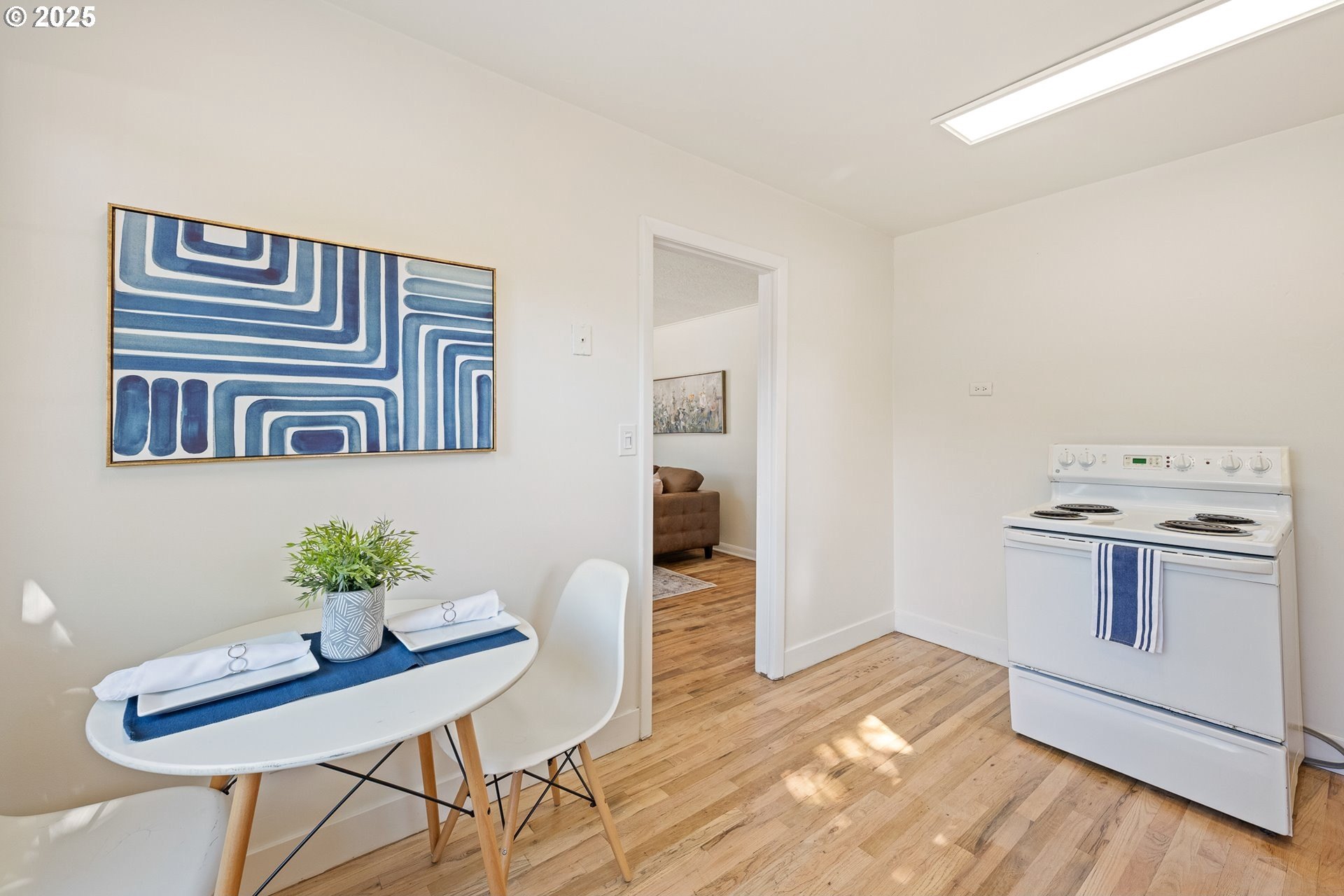 OPEN SAT 8/23 & SUN 8/24 1-3PM! Tucked away on a peaceful street in SE Portland’s Ventura Park neighborhood, this charming, single level bungalow offers comfort, style, and versatility. The main living area is drenched in natural light, highlighting the beautifully refinished hardwood floors, new carpeting, new lighting and fresh interior paint throughout.The newly renovated spacious kitchen features updated cabinetry, quartz countertops, and a modern tile backsplash. Two well-appointed bedrooms are conveniently located off the living room, while the luxurious bathroom showcases contemporary finishes and a chic, tiled walk-in shower.A generous third bedroom/bonus room, located just off the kitchen, includes a large closet—making it ideal for a home office, creative studio, or additional living space. The dedicated laundry room with washer/dryer hookup offers ample shelving and storage for added convenience. With thoughtful updates and flexible living spaces, this home is a true gem!Step outside to a large, level backyard—ready to be transformed into your outdoor retreat. Additional storage available in the attached shed. Recent maintenance includes: HVAC, roof & new front door exterior paint.Enjoy this quiet, well maintained neighborhood- conveniently located near shopping, dining, and Ventura Park, which features multiple playgrounds, a bike area, and scenic walking paths. Don't miss out on this affordable opportunity to experience the energy and charm of SE Portland living! [Home Energy Score = 4. HES Report at https://rpt.greenbuildingregistry.com/hes/OR10241284]
