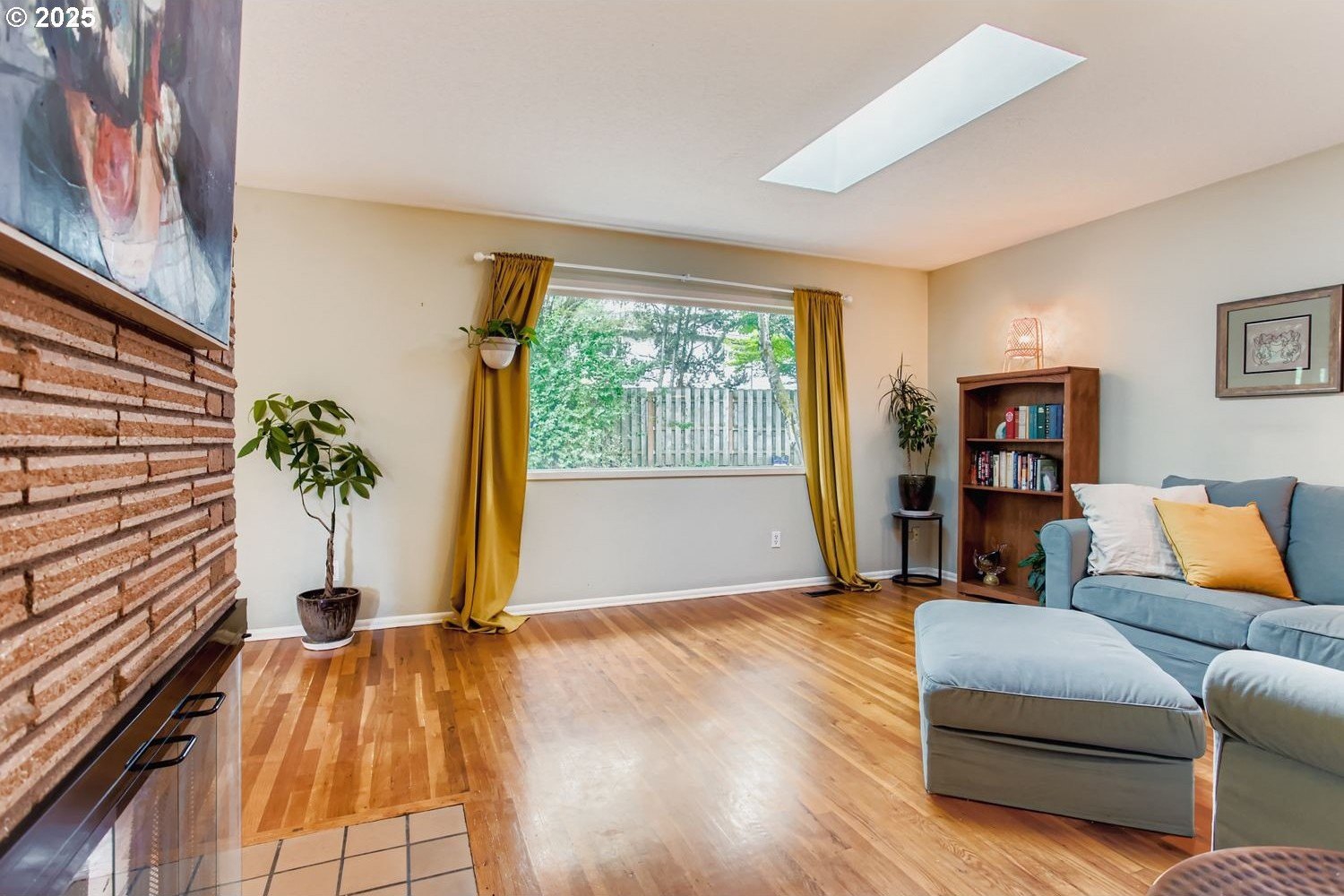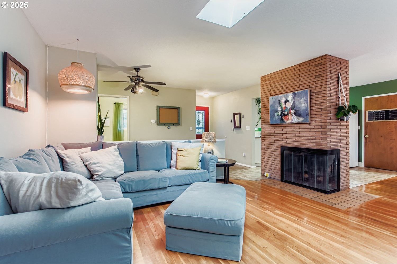 Welcome to this beautifully maintained home that offers comfort, character, and convenience in a peaceful, low traffic setting just 30 minutes from the Columbia Gorge. With a newer roof, recently painted exterior, and radon mitigation system installed in 2021, this home is as practical as it is charming. Step inside to find gorgeous original hardwood floors throughout the main level, a spacious living room with abundant natural light from a skylight, and a cozy fireplace with a classic brick surround. The lower level features a fully finished basement complete with a large family room, bonus room, and its own fireplace, perfect for movie nights, gatherings, or flexible living space. With a full bathroom on each level, this home is designed for convenience. The downstairs also includes a large laundry room with cupboards for storage, while the insulated two-car garage provides year-round comfort. Outside, enjoy the spacious and beautifully landscaped yard—ideal for gardening, entertaining, or simply relaxing. This home blends timeless charm with smart updates and plenty of space to make it your own. [Home Energy Score = 4. HES Report at https://rpt.greenbuildingregistry.com/hes/OR10239749]