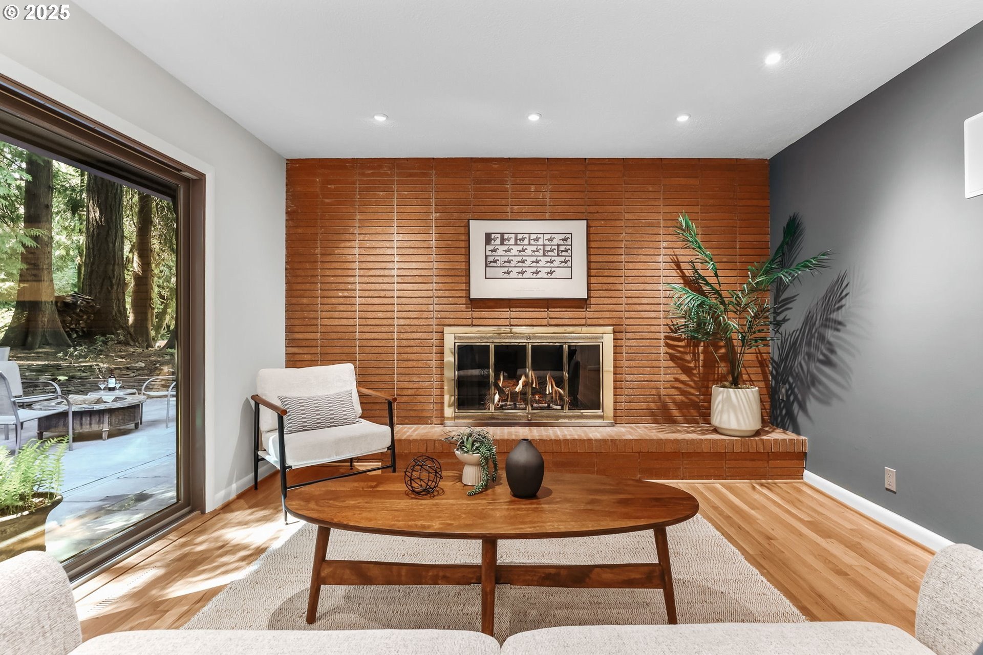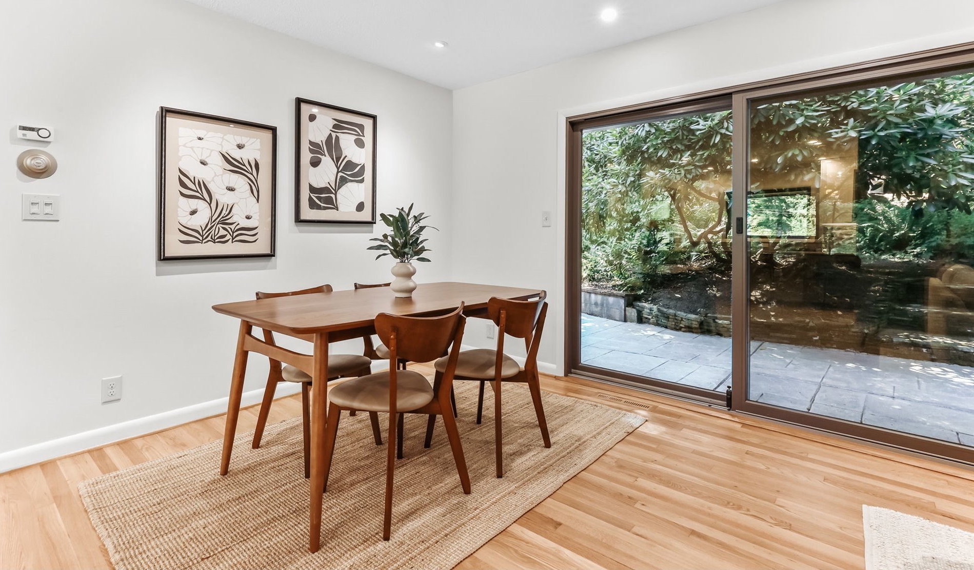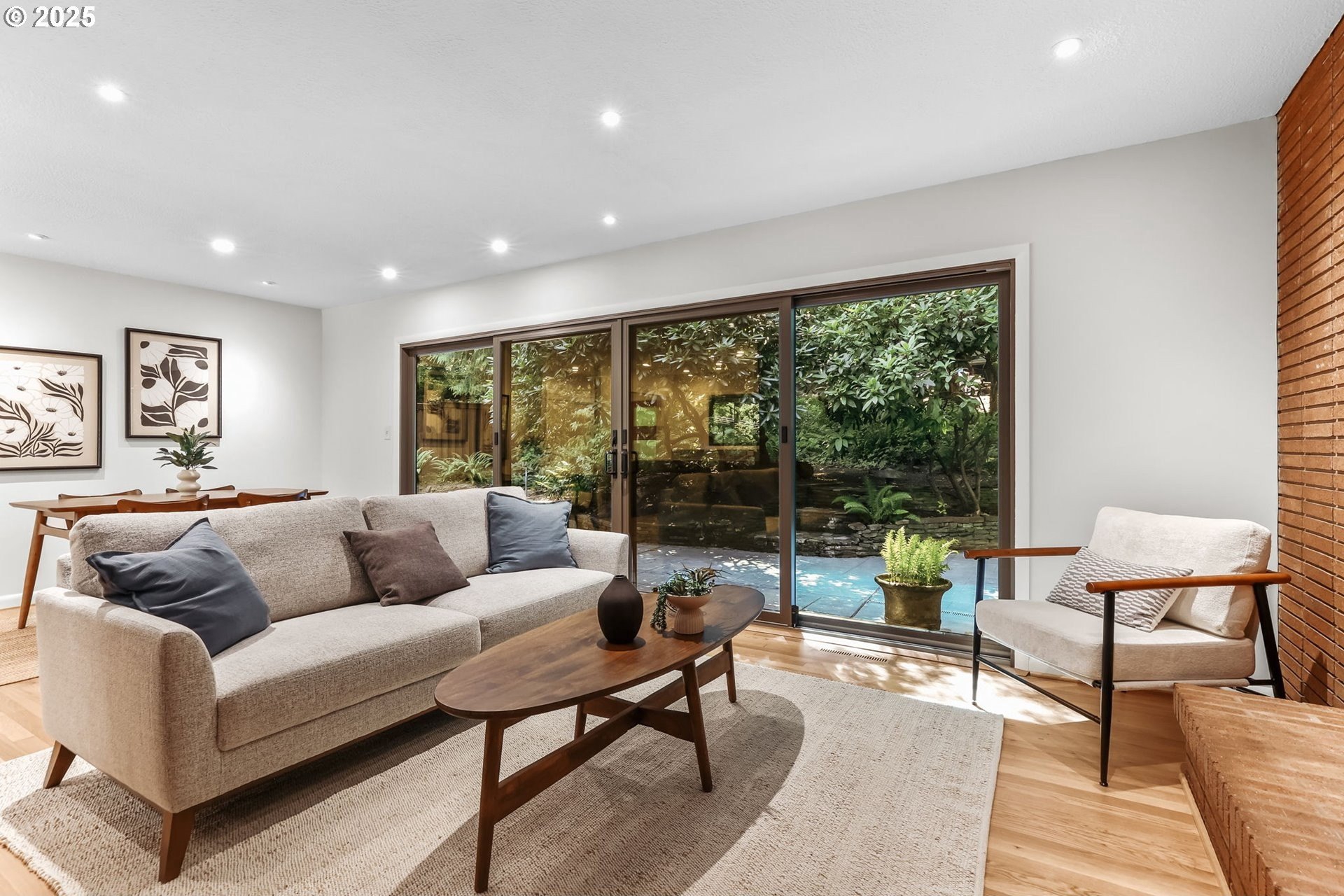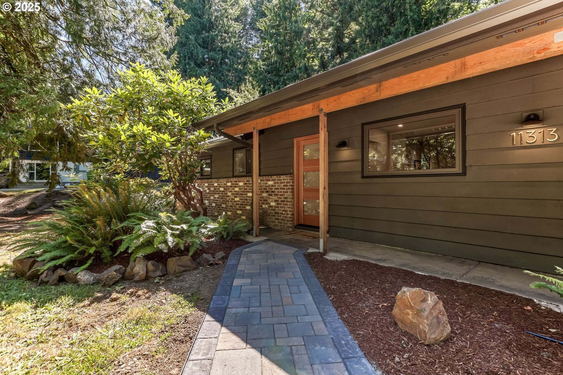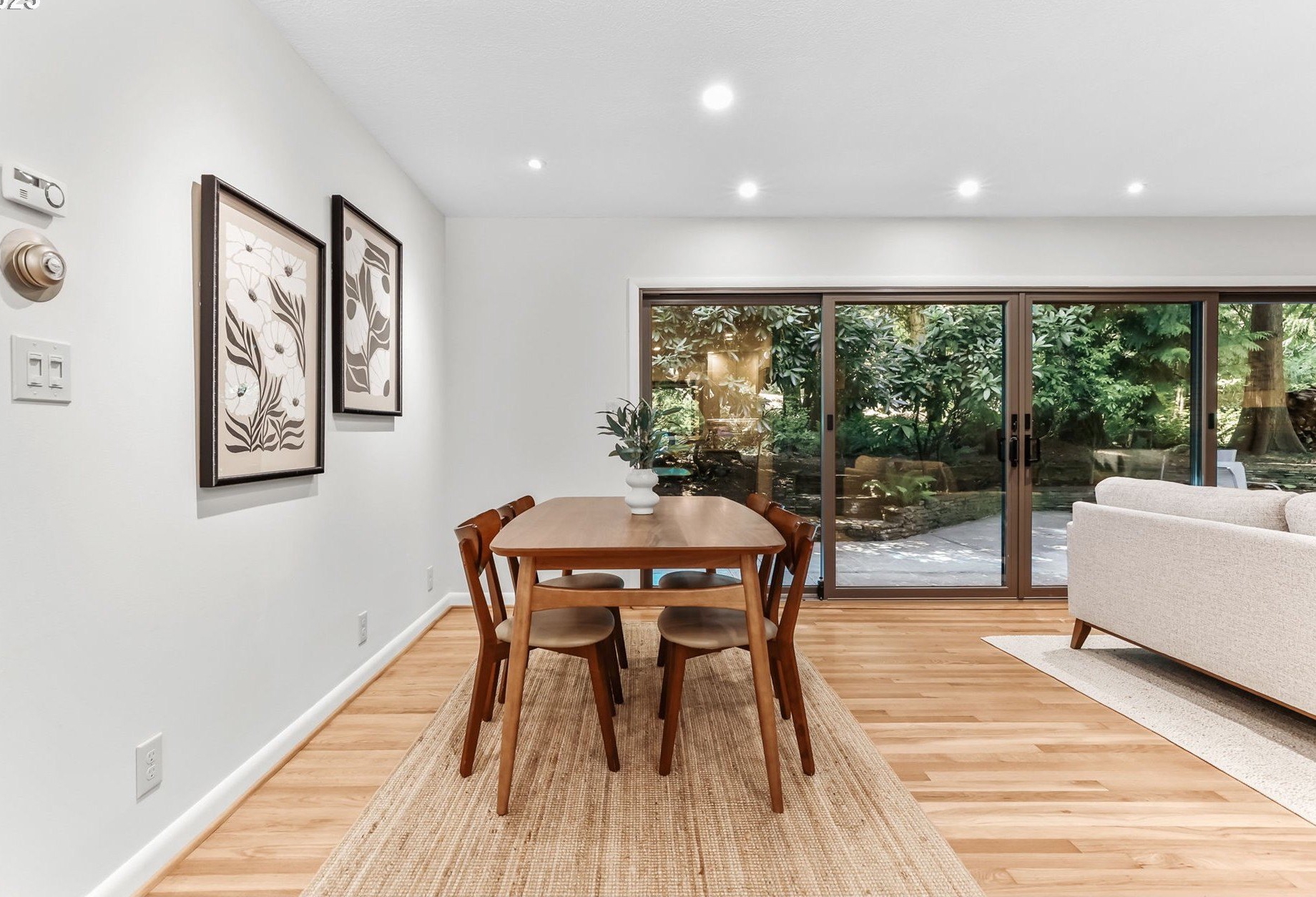 Mid-century modern character meets today’s upgrades in this single-level home on nearly half an acre in SW Portland’s Arnold Creek. At 11313 SW 33rd Ave, quality has been prioritized in every detail— making thoughtful design and craftsmanship the true measure, not square footage. Inside, newly refinished white oak hardwood floors extend through the main living and dining spaces, enhanced by recessed lighting and a classic wood-burning fireplace. A large sliding glass door connects the interior to the outdoors, filling the home with light and opening onto a beautiful stamped concrete patio — an extension of the living space perfect for gatherings or quiet mornings. The kitchen has been fully updated with marble countertops, custom cabinetry, stainless steel refrigerator, induction range with oven, and a built-in wine refrigerator. Every upgrade reflects an investment in durability and timeless appeal rather than trend. The entry features new copper slate flooring, while the updated bathroom includes custom cabinetry, tile work, and modern fixtures. Renewal by Andersen windows and a tankless water heater add efficiency to the home’s comfort. Set on a corner lot just under half an acre, the property offers ample privacy, mature landscaping, and generous off-street parking. The oversized two-car garage provides additional storage and workspace. This home embodies the best of mid-century modern living: single-level design, seamless indoor-outdoor connection, and a focus on materials that last. With updates that rival much larger homes, it delivers a rare combination of style, function, and lot size—all in a sought-after Portland location. [Home Energy Score = 2. HES Report at https://rpt.greenbuildingregistry.com/hes/OR10045171]