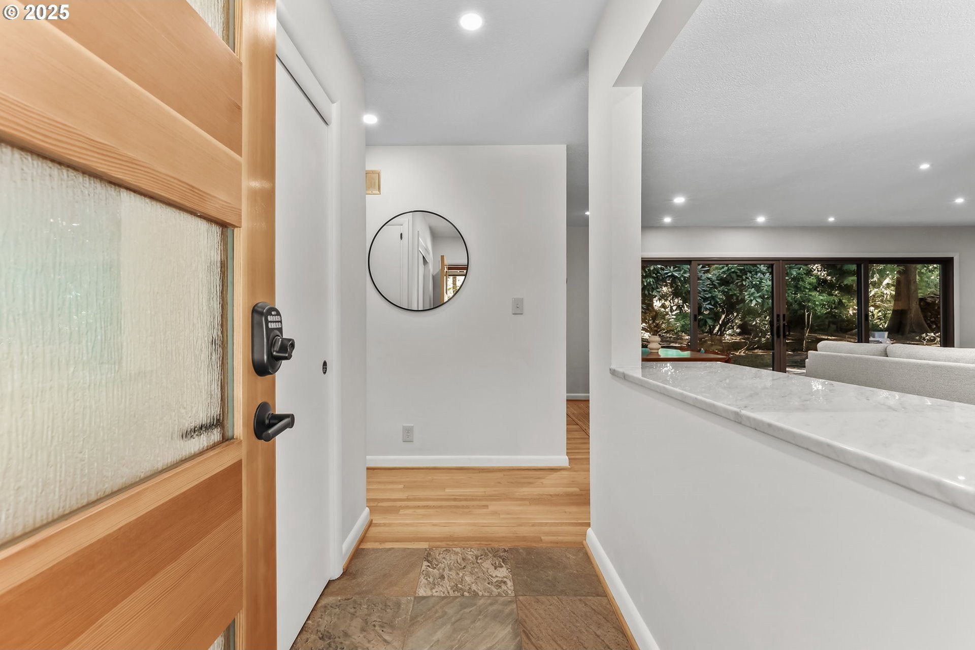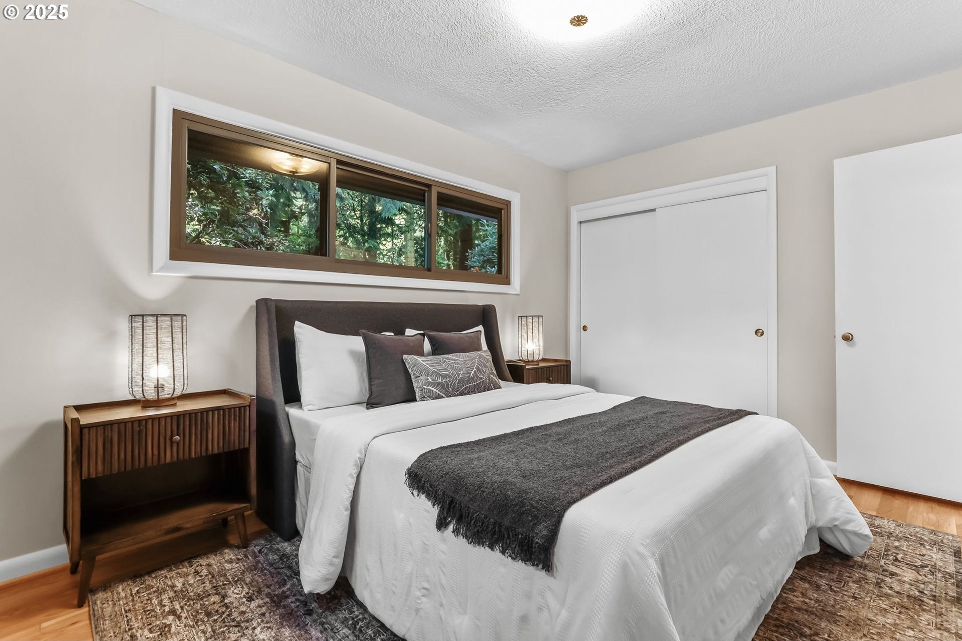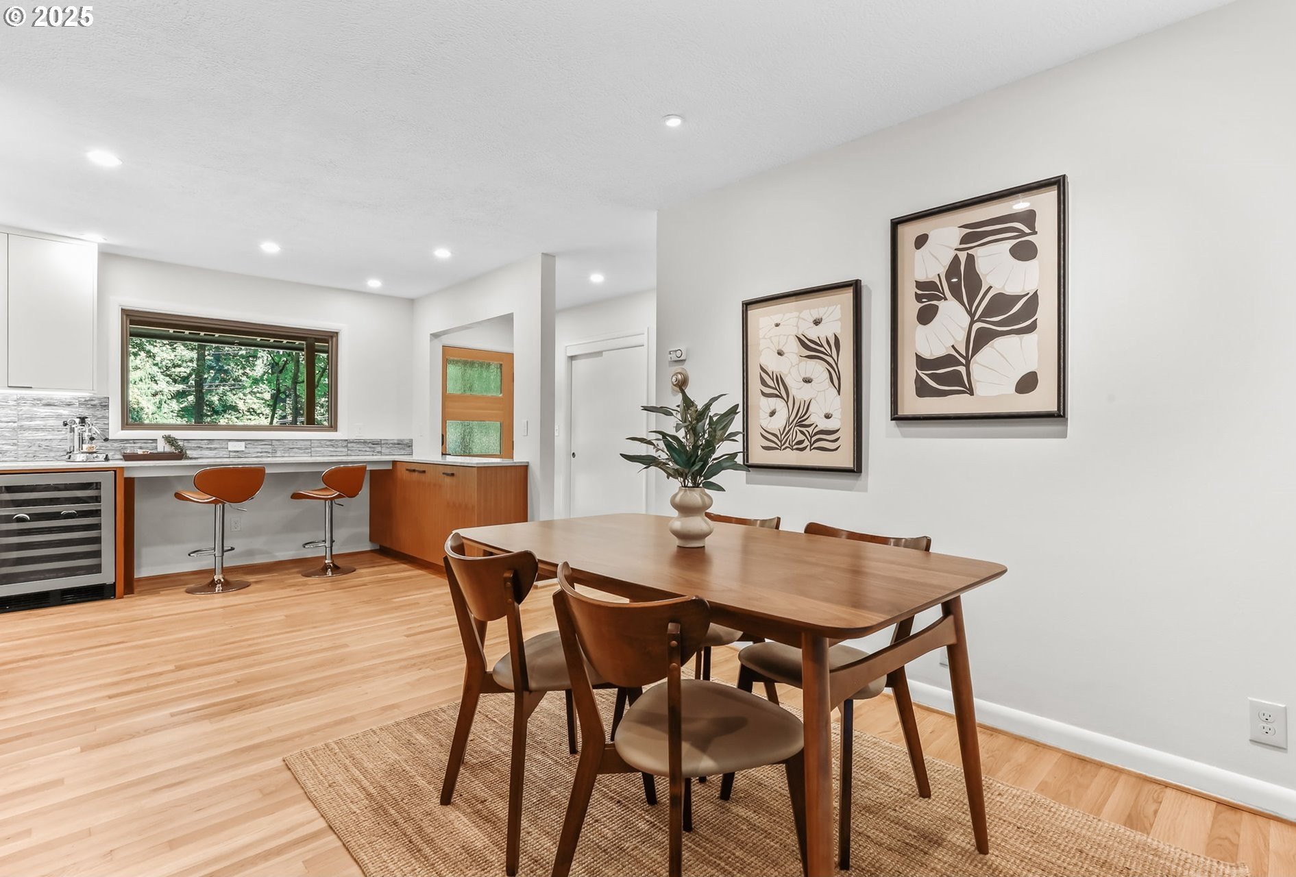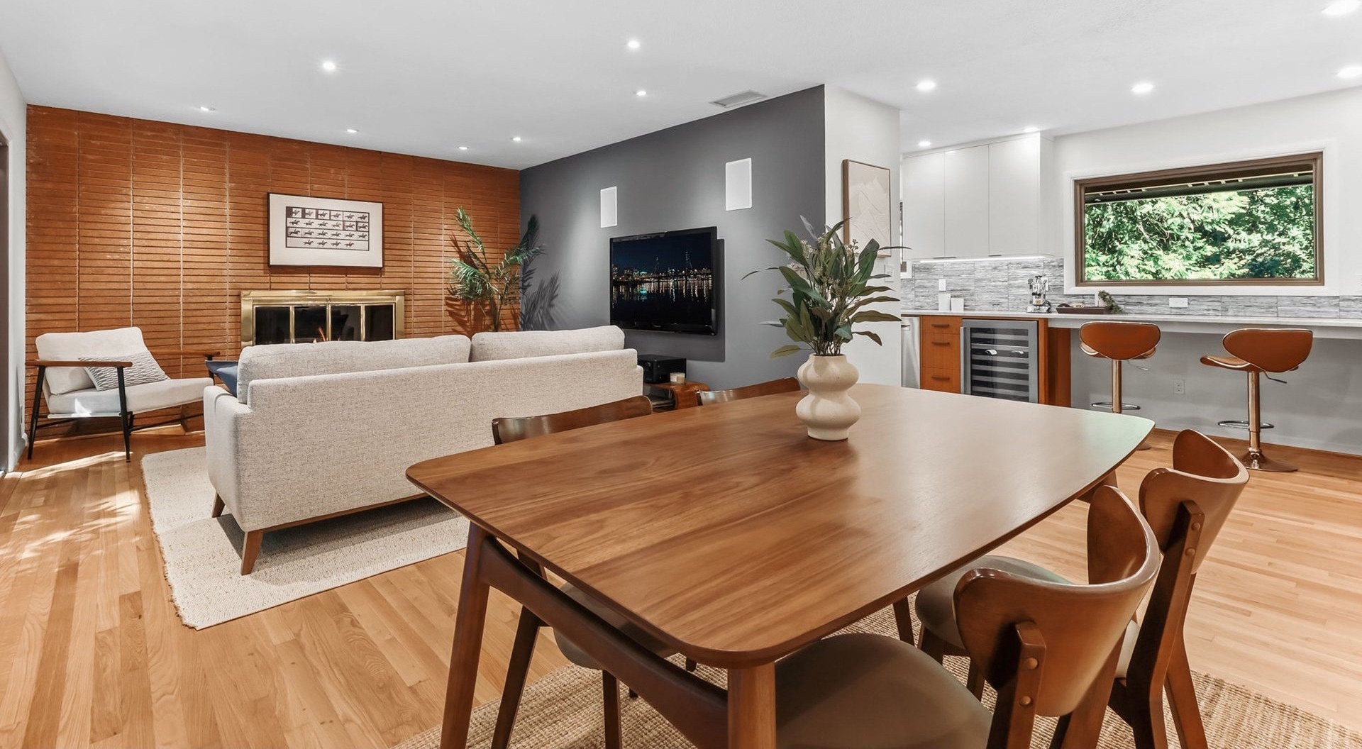 Mid-century modern character meets today’s upgrades in this single-level home on nearly half an acre in SW Portland’s Arnold Creek. At 11313 SW 33rd Ave, quality has been prioritized in every detail— making thoughtful design and craftsmanship the true measure, not square footage. Inside, newly refinished white oak hardwood floors extend through the main living and dining spaces, enhanced by recessed lighting and a classic wood-burning fireplace. A large sliding glass door connects the interior to the outdoors, filling the home with light and opening onto a beautiful stamped concrete patio — an extension of the living space perfect for gatherings or quiet mornings. The kitchen has been fully updated with marble countertops, custom cabinetry, stainless steel refrigerator, induction range with oven, and a built-in wine refrigerator. Every upgrade reflects an investment in durability and timeless appeal rather than trend. The entry features new copper slate flooring, while the updated bathroom includes custom cabinetry, tile work, and modern fixtures. Renewal by Andersen windows and a tankless water heater add efficiency to the home’s comfort. Set on a corner lot just under half an acre, the property offers ample privacy, mature landscaping, and generous off-street parking. The oversized two-car garage provides additional storage and workspace. This home embodies the best of mid-century modern living: single-level design, seamless indoor-outdoor connection, and a focus on materials that last. With updates that rival much larger homes, it delivers a rare combination of style, function, and lot size—all in a sought-after Portland location. [Home Energy Score = 2. HES Report at https://rpt.greenbuildingregistry.com/hes/OR10045171]