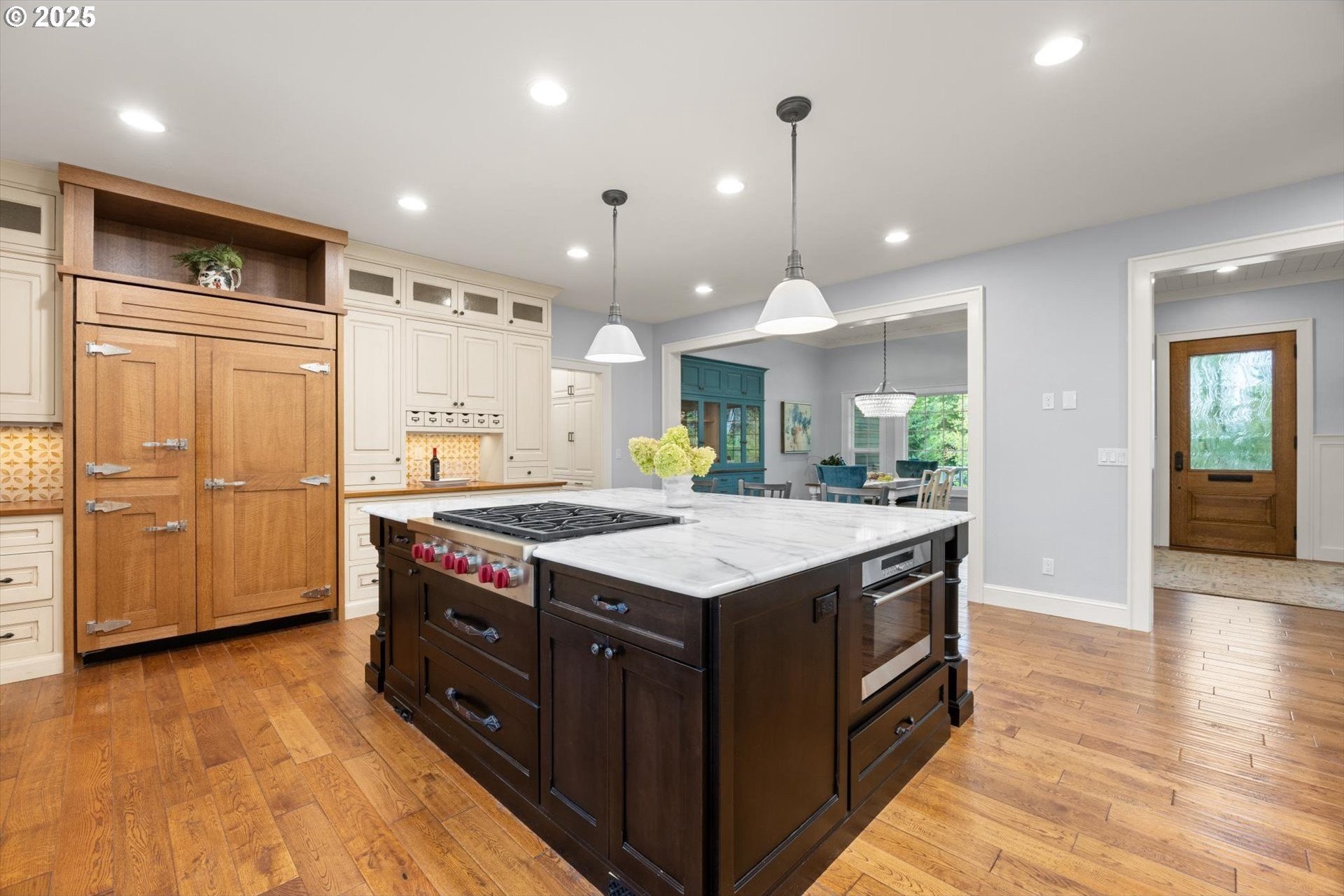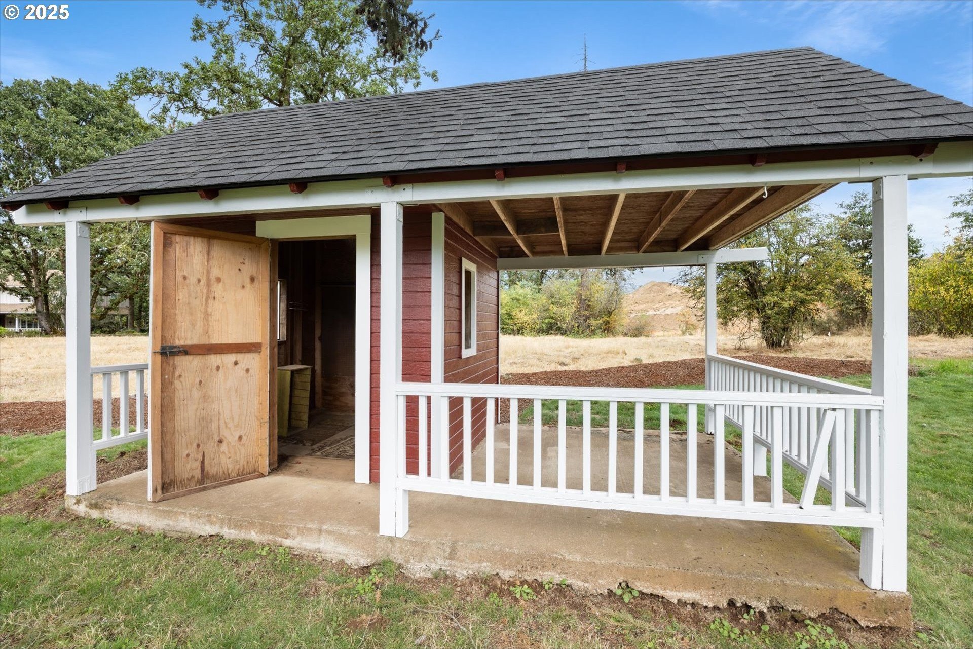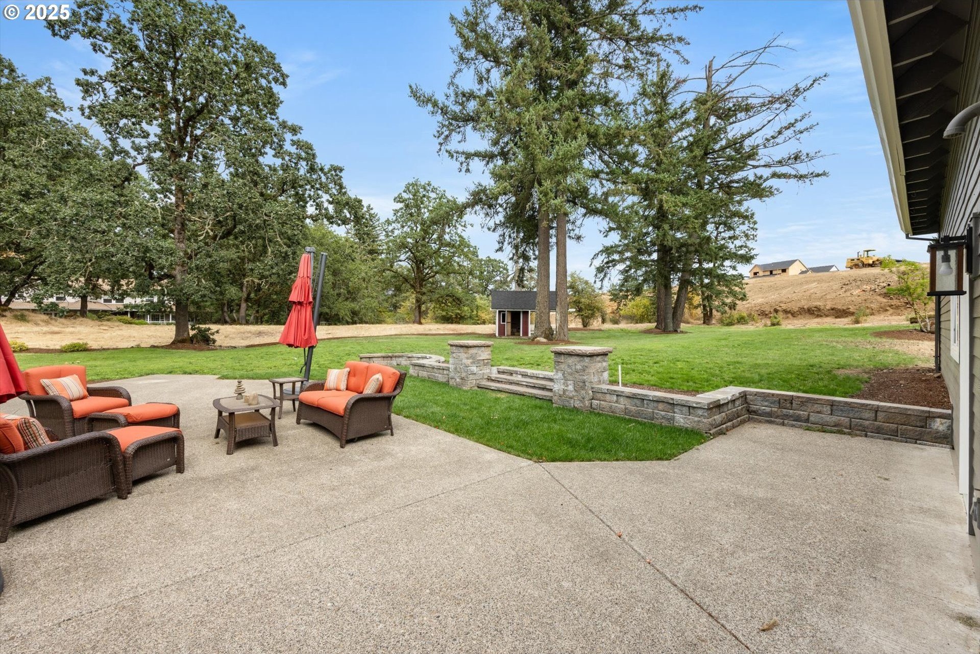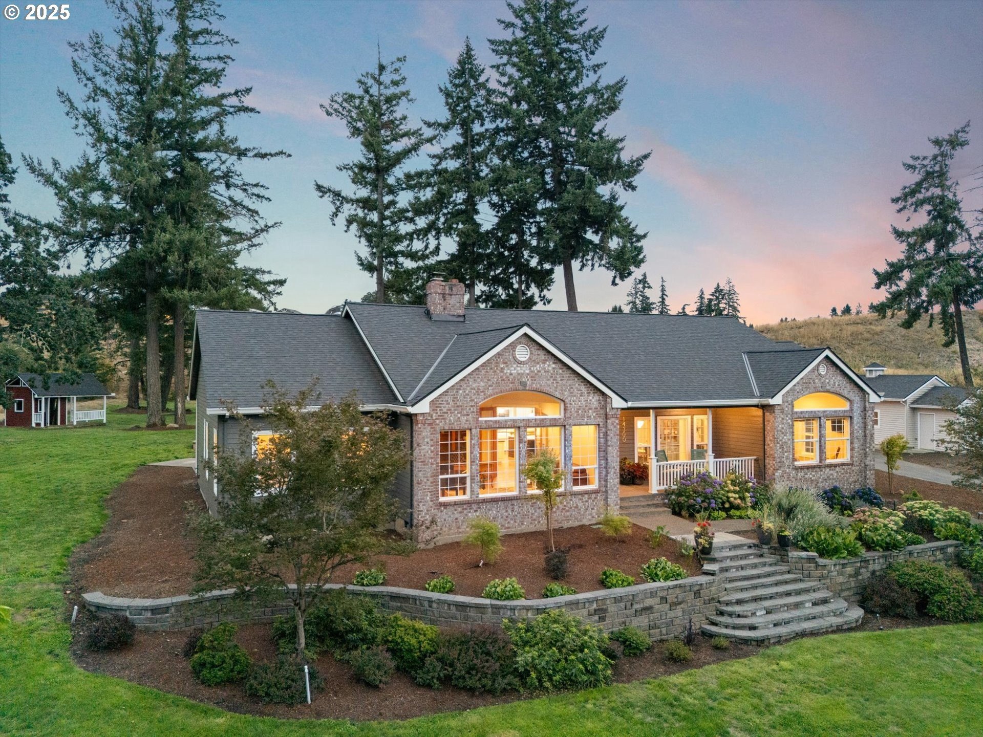 Open Sat 8/23 10AM-1PM. Attention to detail awaits in this gorgeous home! Cul-de-sac living on a 1-acre lot near Sherwood’s recent Street of Dreams. Amazing location near amenities and ideal for entertaining on the spacious back patio and yard. The gourmet kitchen features a 6-burner Wolf range atop an oversized marble island with ample bar seating. Enjoy two built-in ovens plus a steam oven, a Sub-Zero refrigerator, and more. The butler’s pantry doubles as a secondary kitchen and provides a lovely alternate entrance. The dining room commands a view of the street and trees below while housing an impressive chandelier and built-in hutch. All bedrooms and the primary are on the main level, which includes a freshly remodeled primary bathroom and new closet space. New exterior paint in 2025. Abundant hardwood floors throughout begin with a wainscoted entryway leading to a French-doored office. The upstairs bonus room and stairwell are freshly carpeted. The living room features a fireplace and vaulted ceilings. The exterior includes a detached workshop with a bay perfect for a riding mower, a play structure, a covered area, and wood storage. Newer roof and air conditioner, tankless water heater, central vacuum, and more round out a high-quality home in a much-desired location.