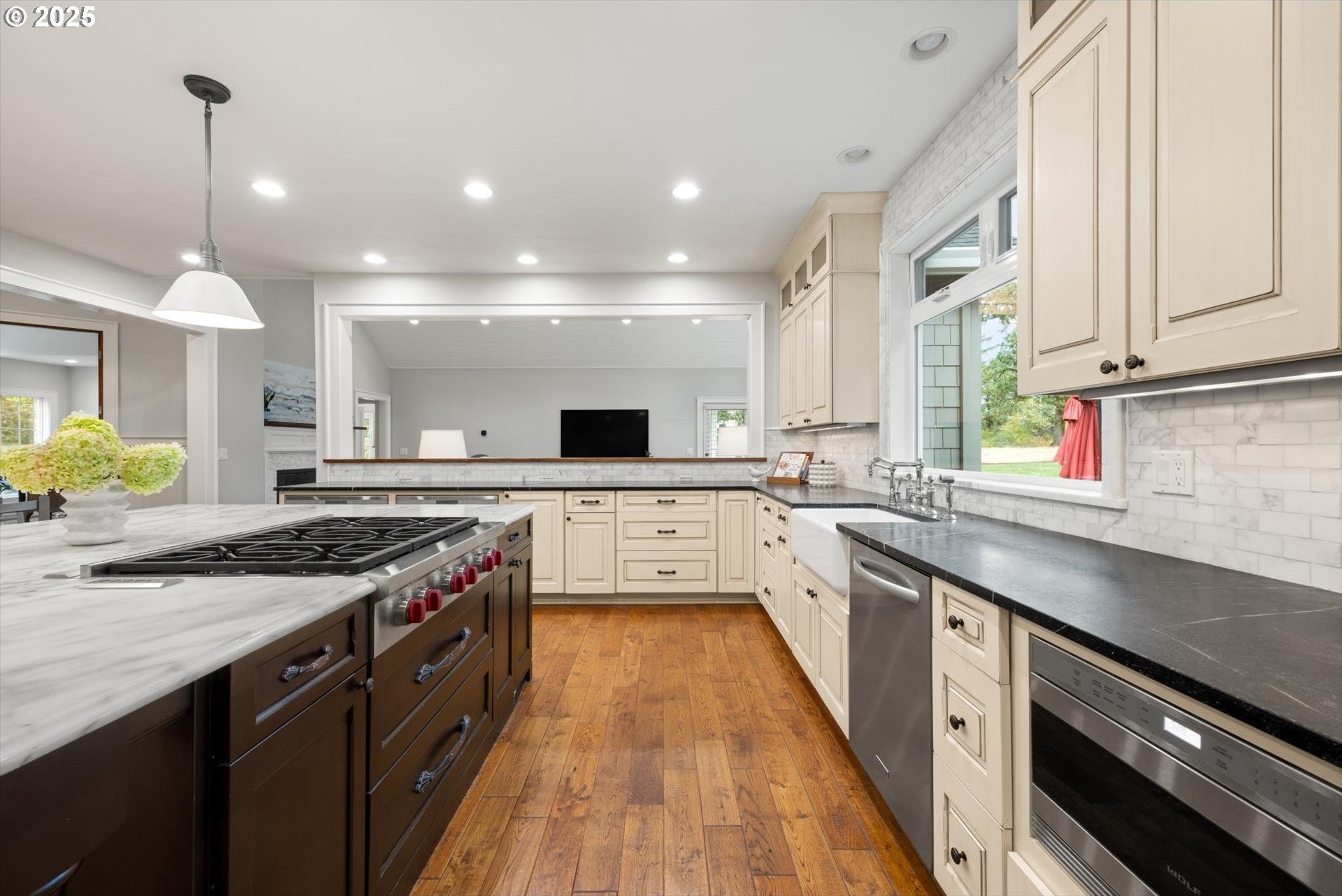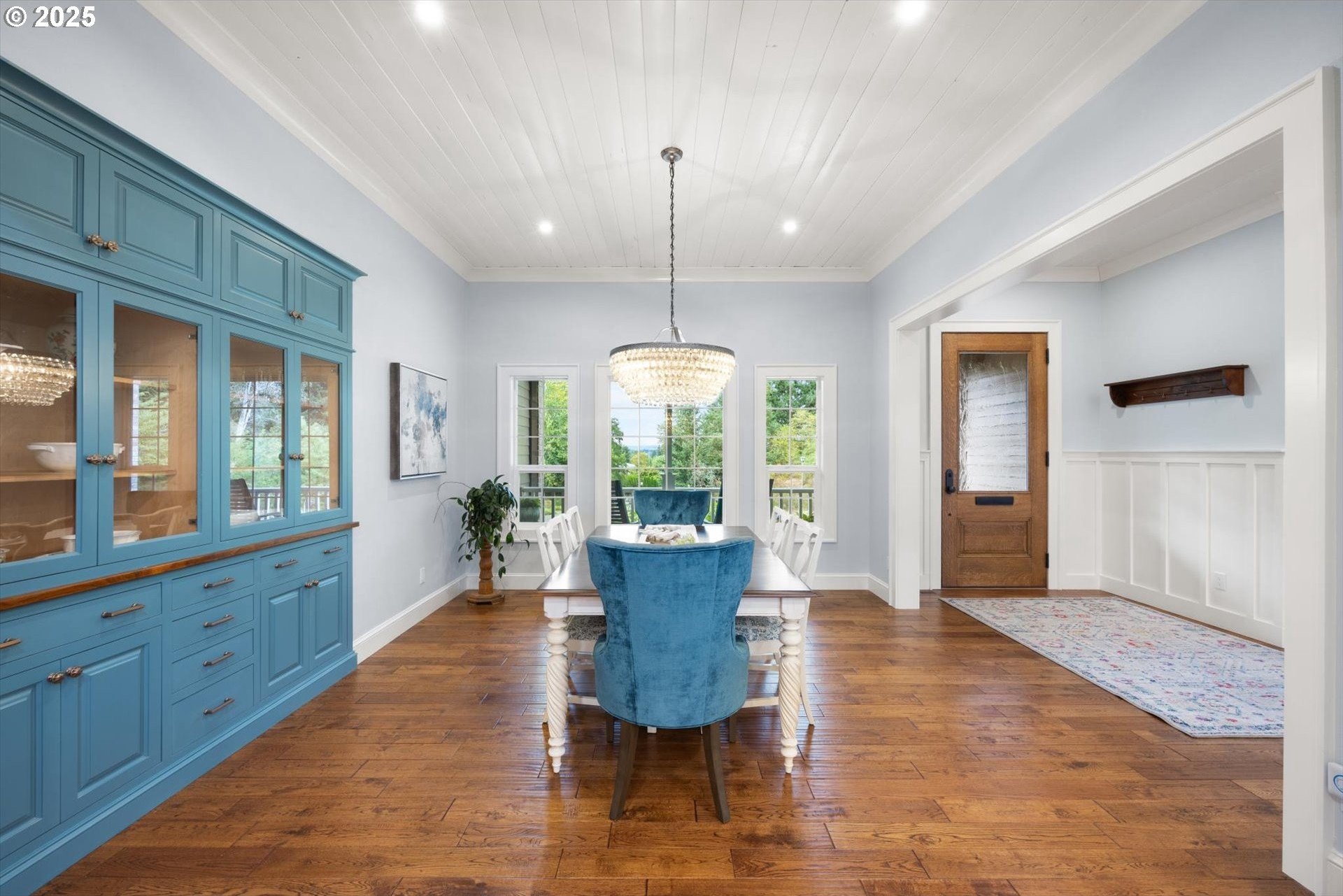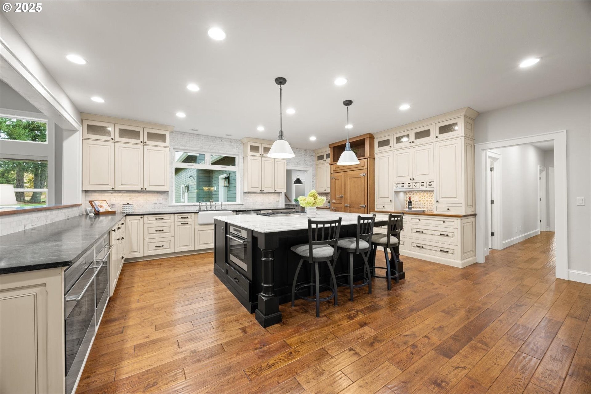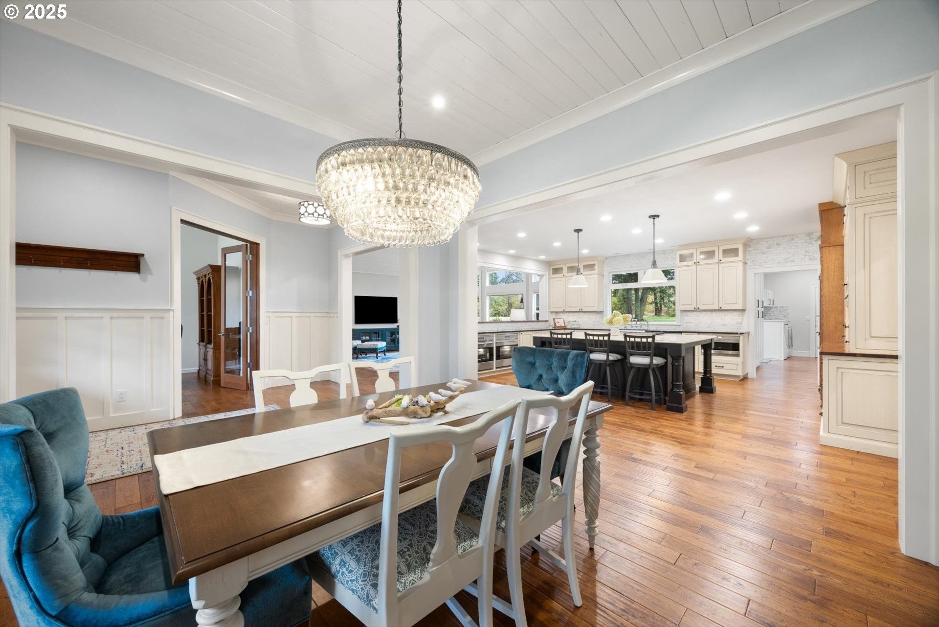 Open Sat 8/23 10AM-1PM. Attention to detail awaits in this gorgeous home! Cul-de-sac living on a 1-acre lot near Sherwood’s recent Street of Dreams. Amazing location near amenities and ideal for entertaining on the spacious back patio and yard. The gourmet kitchen features a 6-burner Wolf range atop an oversized marble island with ample bar seating. Enjoy two built-in ovens plus a steam oven, a Sub-Zero refrigerator, and more. The butler’s pantry doubles as a secondary kitchen and provides a lovely alternate entrance. The dining room commands a view of the street and trees below while housing an impressive chandelier and built-in hutch. All bedrooms and the primary are on the main level, which includes a freshly remodeled primary bathroom and new closet space. New exterior paint in 2025. Abundant hardwood floors throughout begin with a wainscoted entryway leading to a French-doored office. The upstairs bonus room and stairwell are freshly carpeted. The living room features a fireplace and vaulted ceilings. The exterior includes a detached workshop with a bay perfect for a riding mower, a play structure, a covered area, and wood storage. Newer roof and air conditioner, tankless water heater, central vacuum, and more round out a high-quality home in a much-desired location.