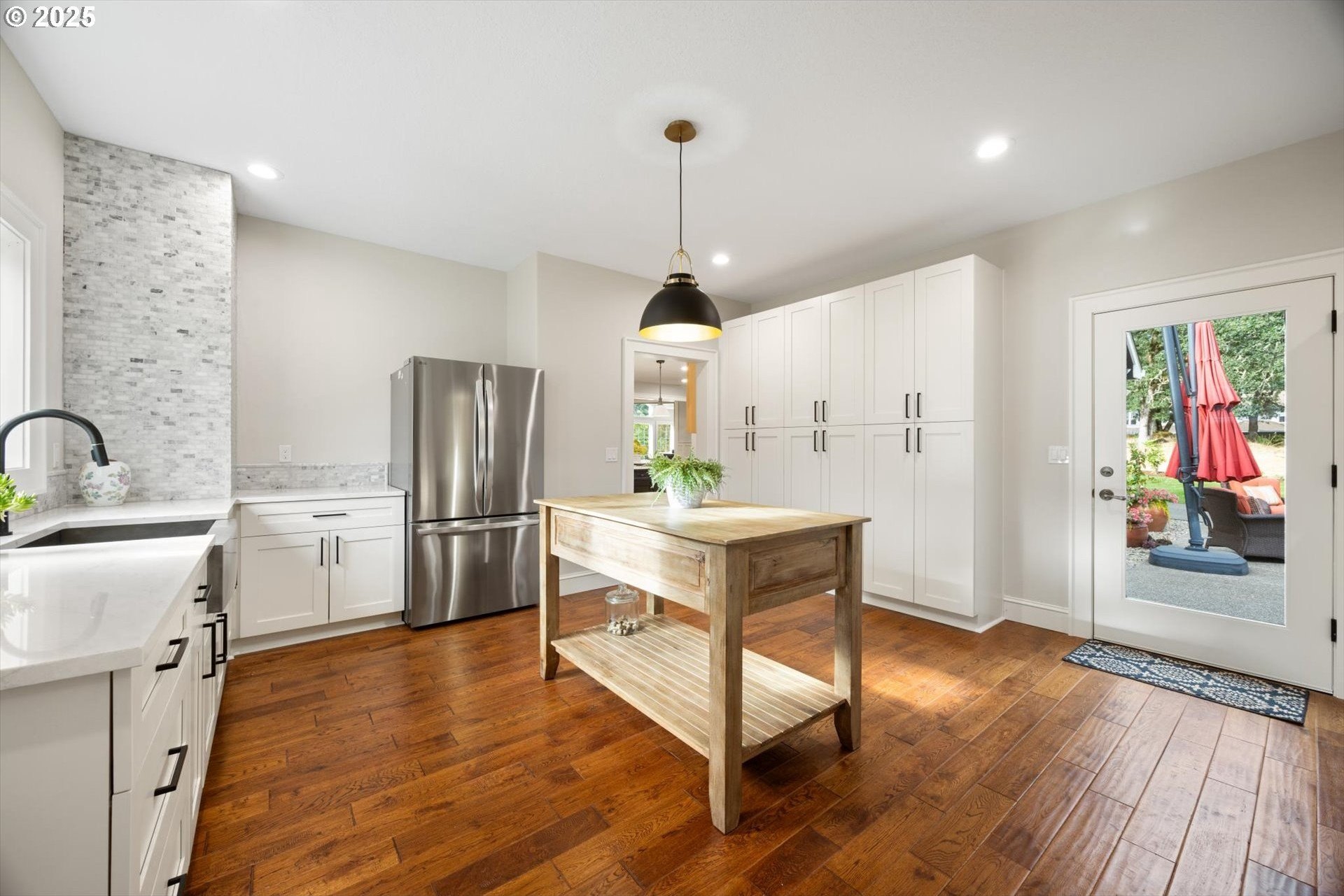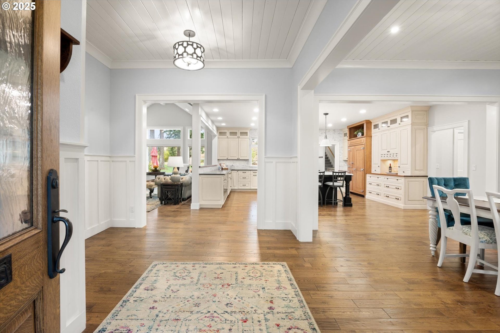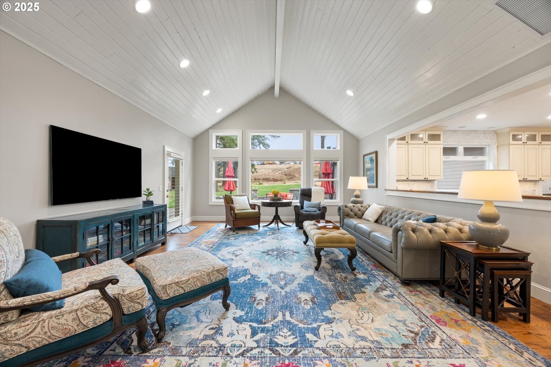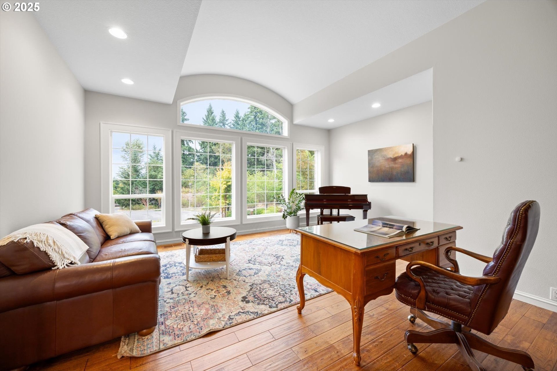 Open Sat 8/23 10AM-1PM. Attention to detail awaits in this gorgeous home! Cul-de-sac living on a 1-acre lot near Sherwood’s recent Street of Dreams. Amazing location near amenities and ideal for entertaining on the spacious back patio and yard. The gourmet kitchen features a 6-burner Wolf range atop an oversized marble island with ample bar seating. Enjoy two built-in ovens plus a steam oven, a Sub-Zero refrigerator, and more. The butler’s pantry doubles as a secondary kitchen and provides a lovely alternate entrance. The dining room commands a view of the street and trees below while housing an impressive chandelier and built-in hutch. All bedrooms and the primary are on the main level, which includes a freshly remodeled primary bathroom and new closet space. New exterior paint in 2025. Abundant hardwood floors throughout begin with a wainscoted entryway leading to a French-doored office. The upstairs bonus room and stairwell are freshly carpeted. The living room features a fireplace and vaulted ceilings. The exterior includes a detached workshop with a bay perfect for a riding mower, a play structure, a covered area, and wood storage. Newer roof and air conditioner, tankless water heater, central vacuum, and more round out a high-quality home in a much-desired location.