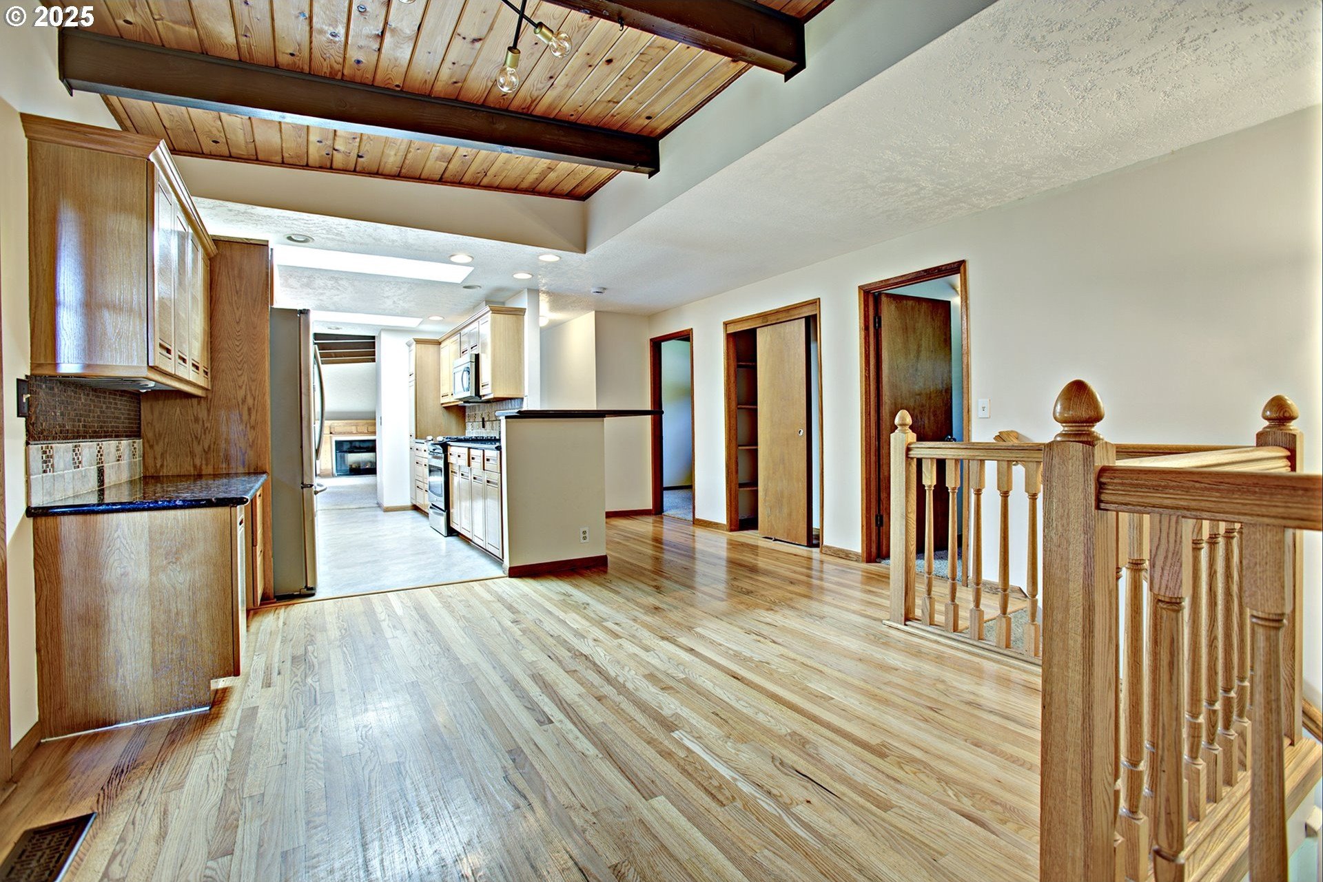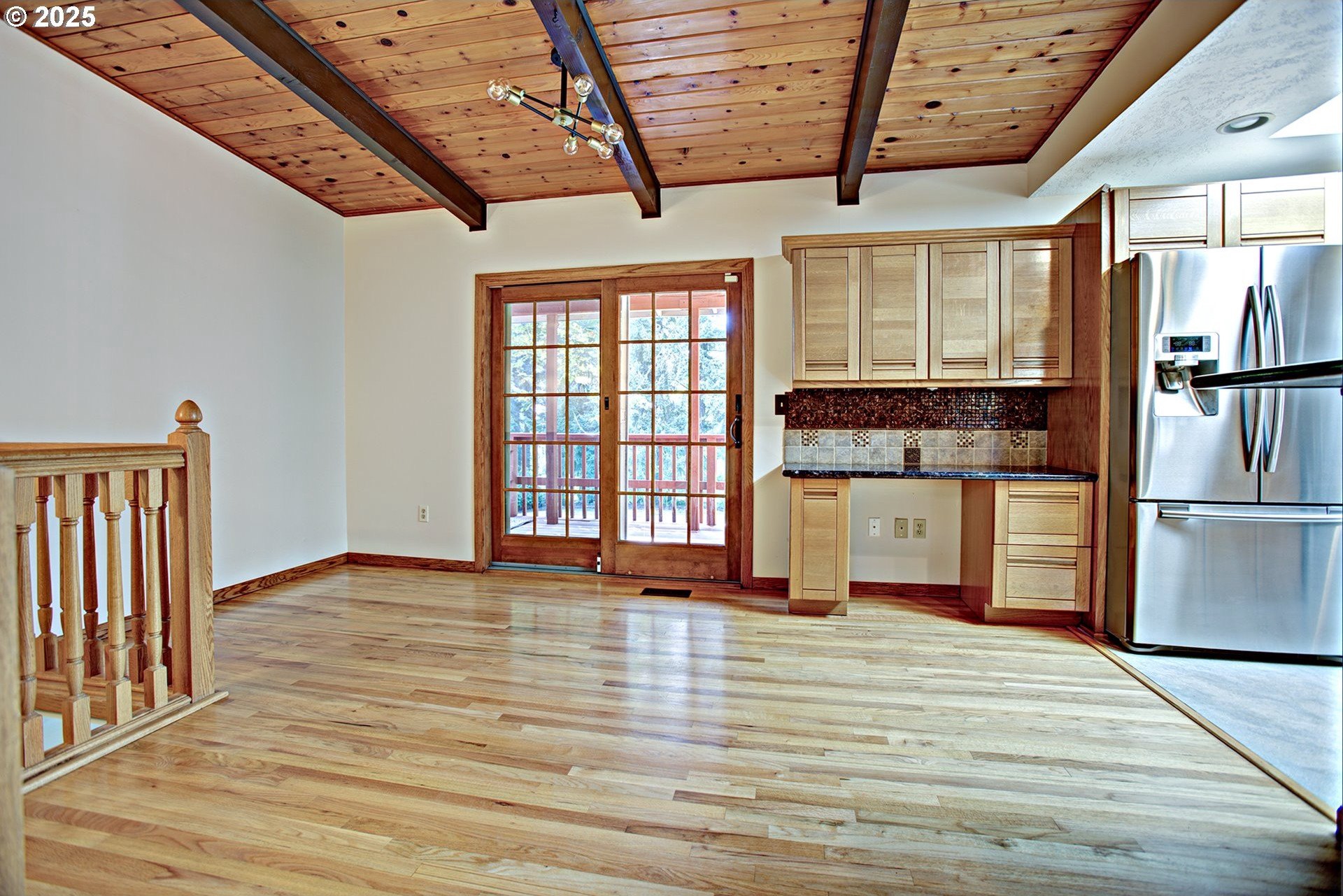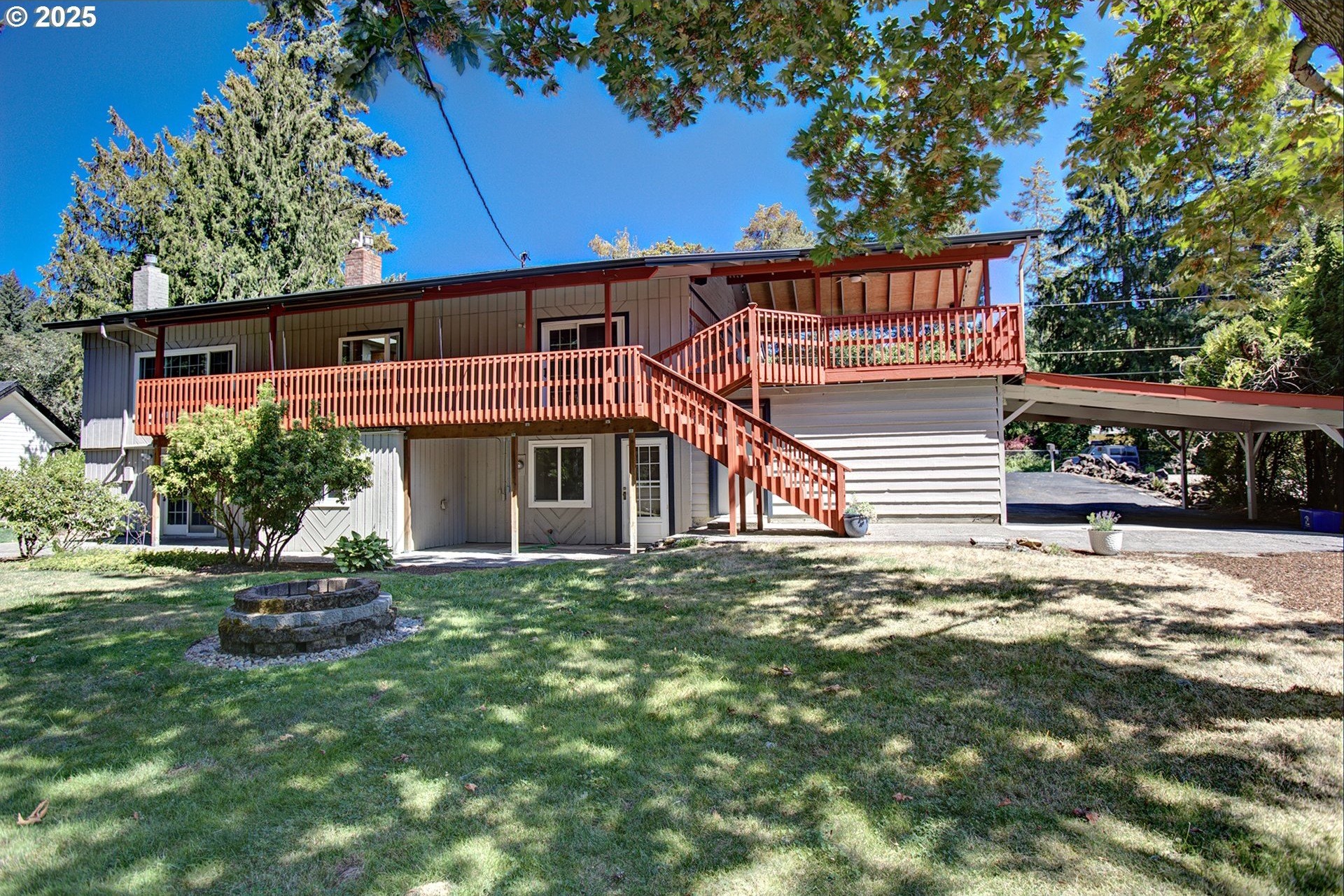The perfect blend of serenity and convenience. Spacious 2 level Damascus home, with mid-century vibes, on a 1/2 acre, just minutes from town. Beautiful kitchen, with custom cabinetry and granite counters, flows into soothing living space, complete with exposed beam ceilings. Skylights, intricate wood flooring, and vaulted wood ceilings enhance the natural feel. The highly versatile floorpan could easily accommodate multi-generational living. Huge wrapping covered deck promotes four season entertaining and picturesque relaxation. Newer roof, sand filter septic, and lower level carpet. Attached garage, carport, and huge lot, offer workshop and storage space for all the toys (RV, boat, ATV's, etc...). Community well offers affordable irrigation and delicious hydration. Come see for yourself at the OPEN HOUSE, Saturday 8/23 from 11am-1pm.