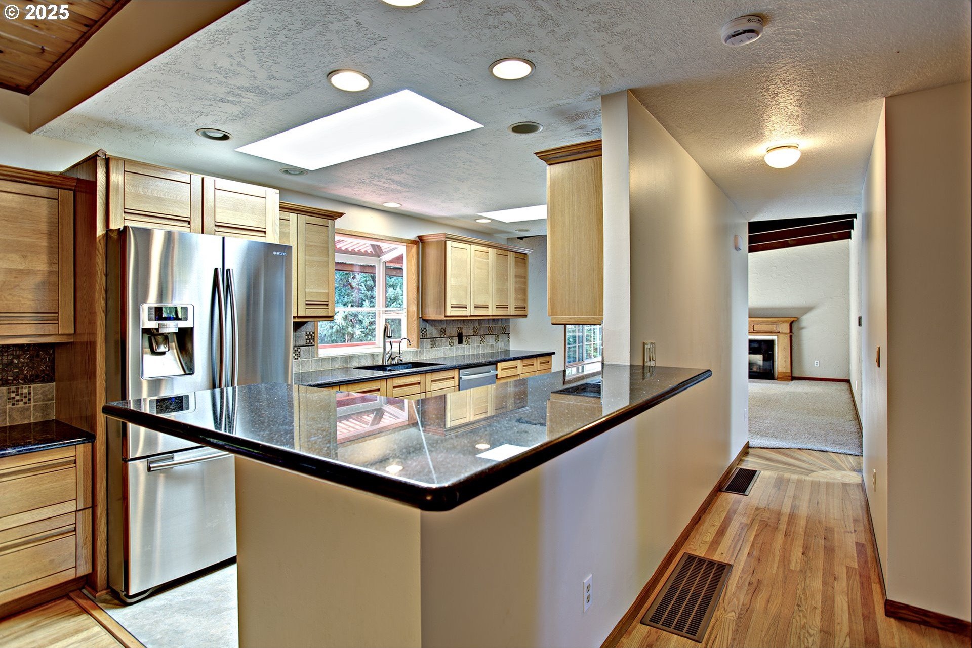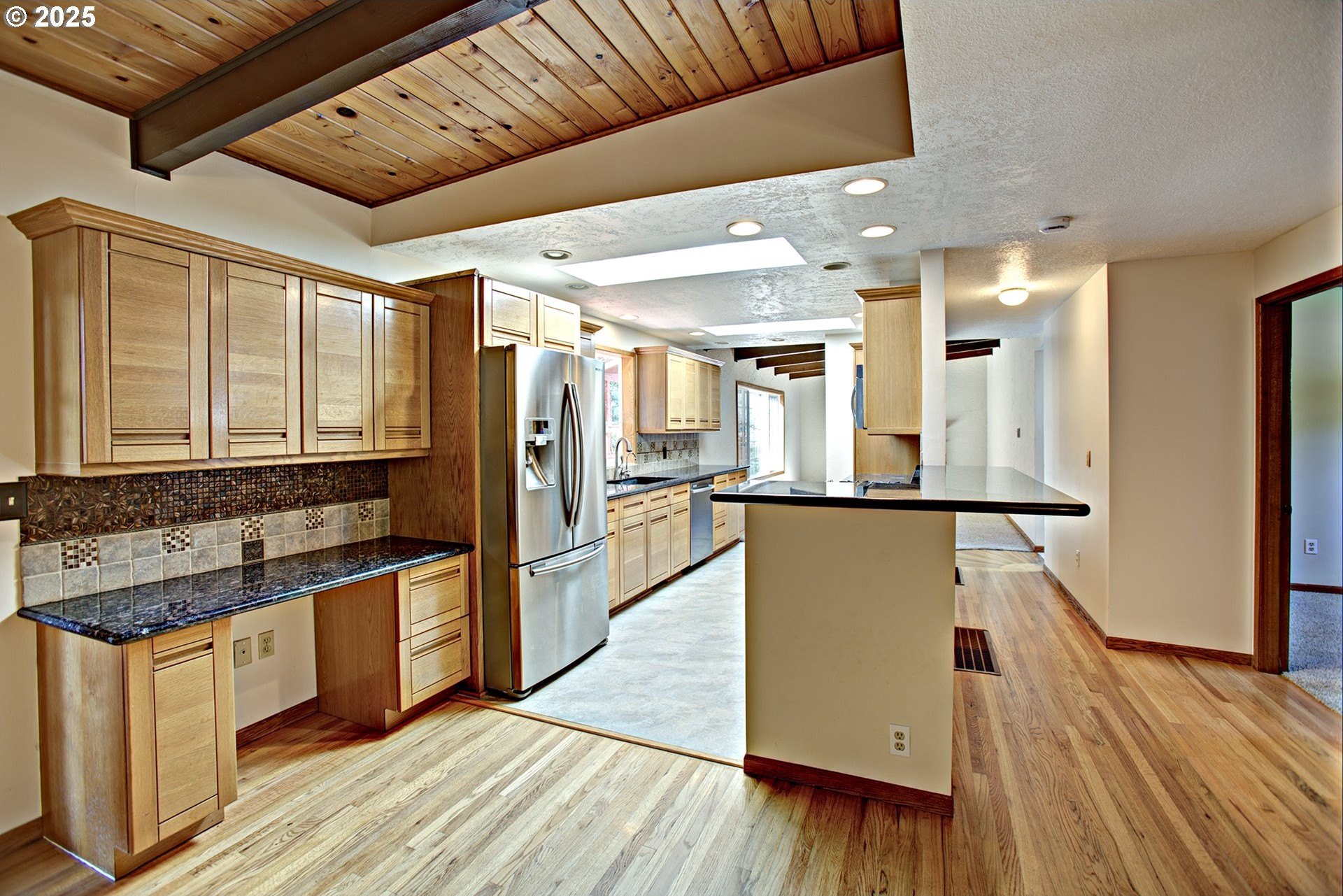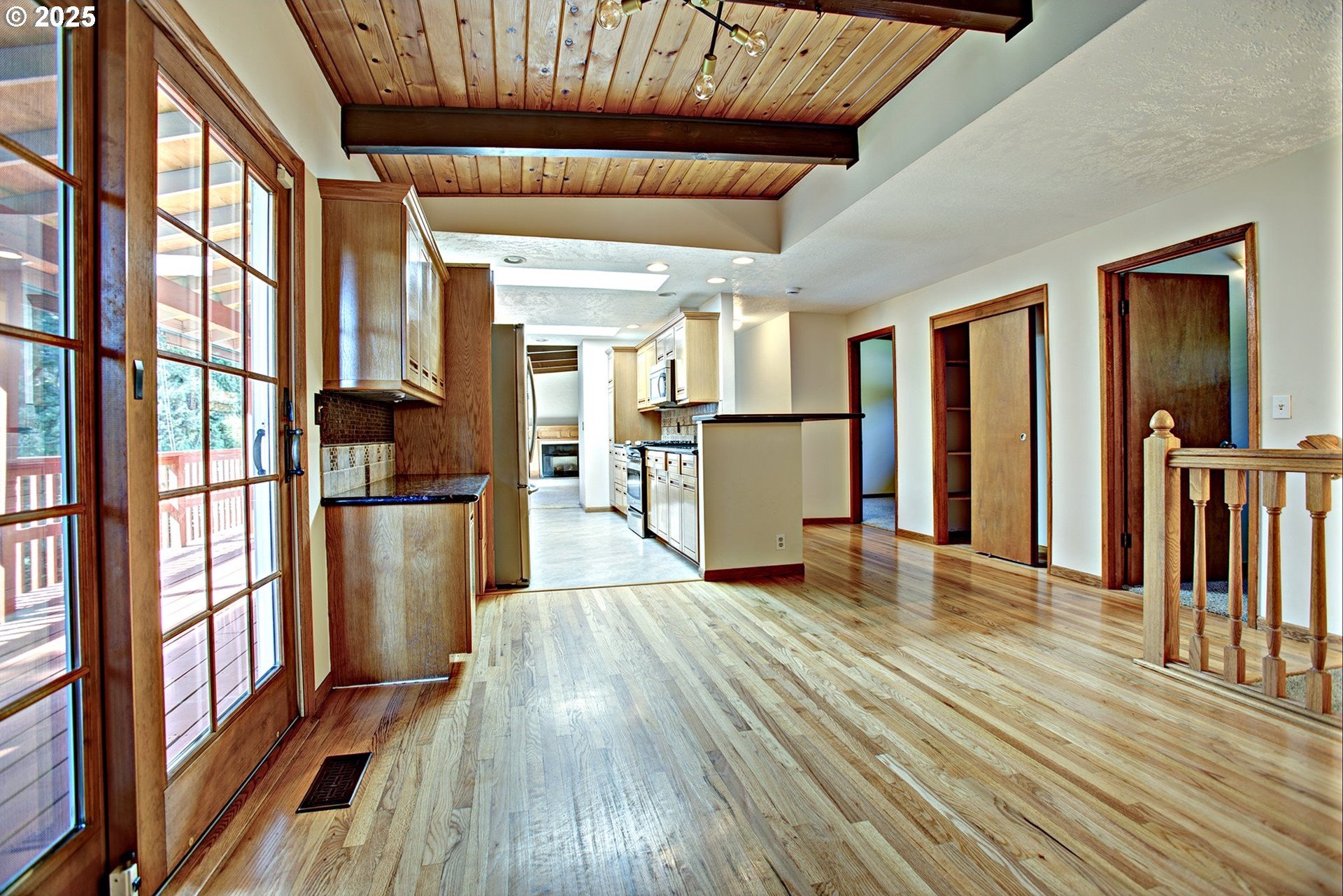 The perfect blend of serenity and convenience. Spacious 2 level Damascus home, with mid-century vibes, on a 1/2 acre, just minutes from town. Beautiful kitchen, with custom cabinetry and granite counters, flows into soothing living space, complete with exposed beam ceilings. Skylights, intricate wood flooring, and vaulted wood ceilings enhance the natural feel. The highly versatile floorpan could easily accommodate multi-generational living. Huge wrapping covered deck promotes four season entertaining and picturesque relaxation. Newer roof, sand filter septic, and lower level carpet. Attached garage, carport, and huge lot, offer workshop and storage space for all the toys (RV, boat, ATV's, etc...). Community well offers affordable irrigation and delicious hydration. Come see for yourself at the OPEN HOUSE, Saturday 8/23 from 11am-1pm.