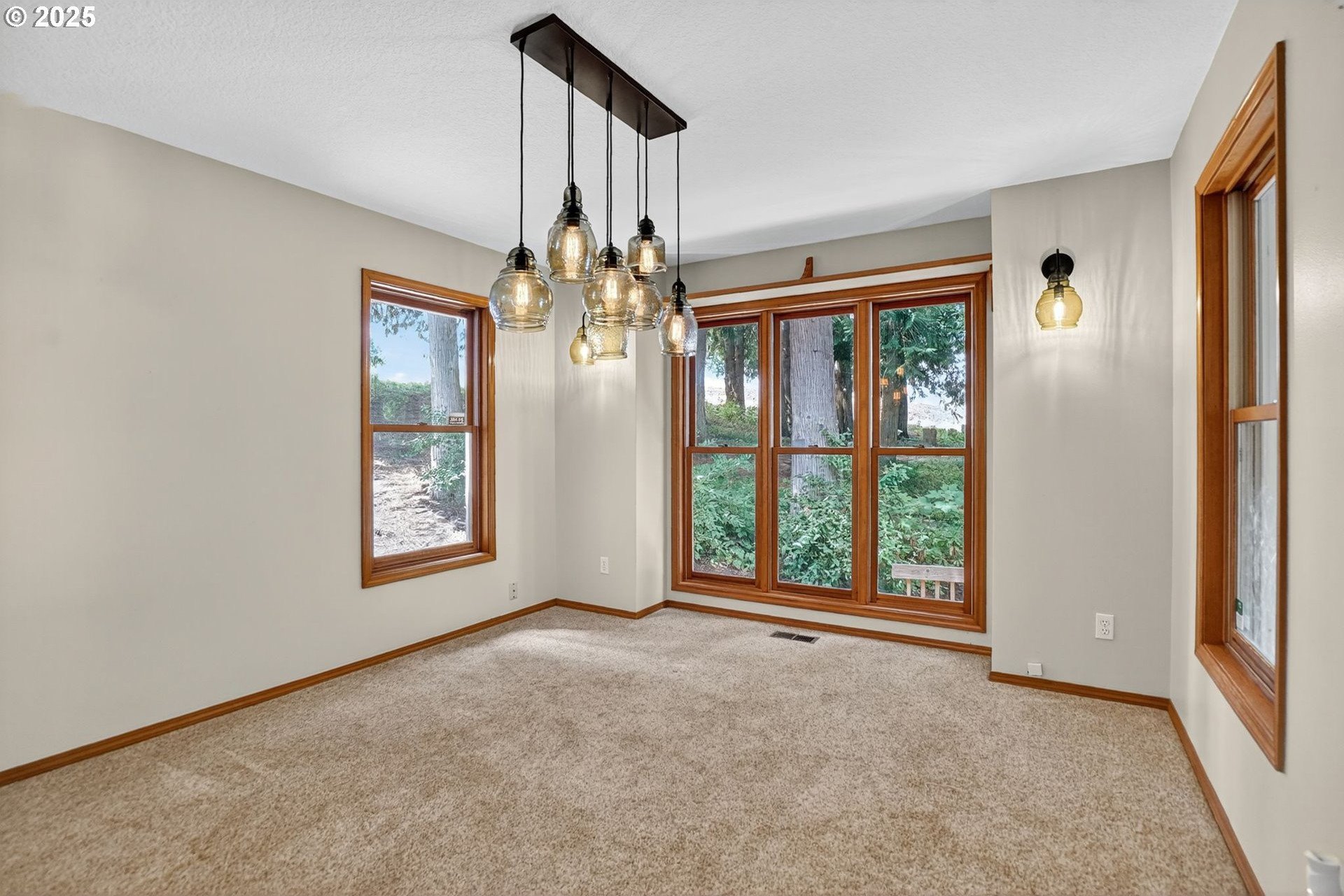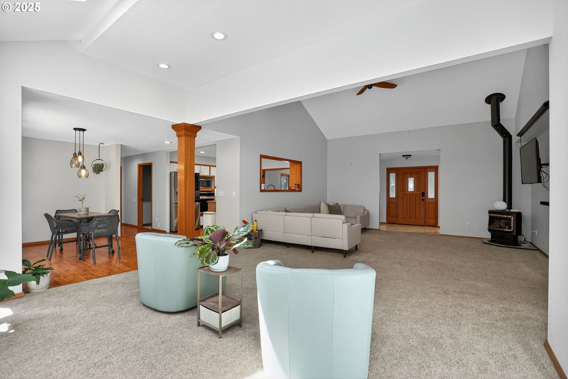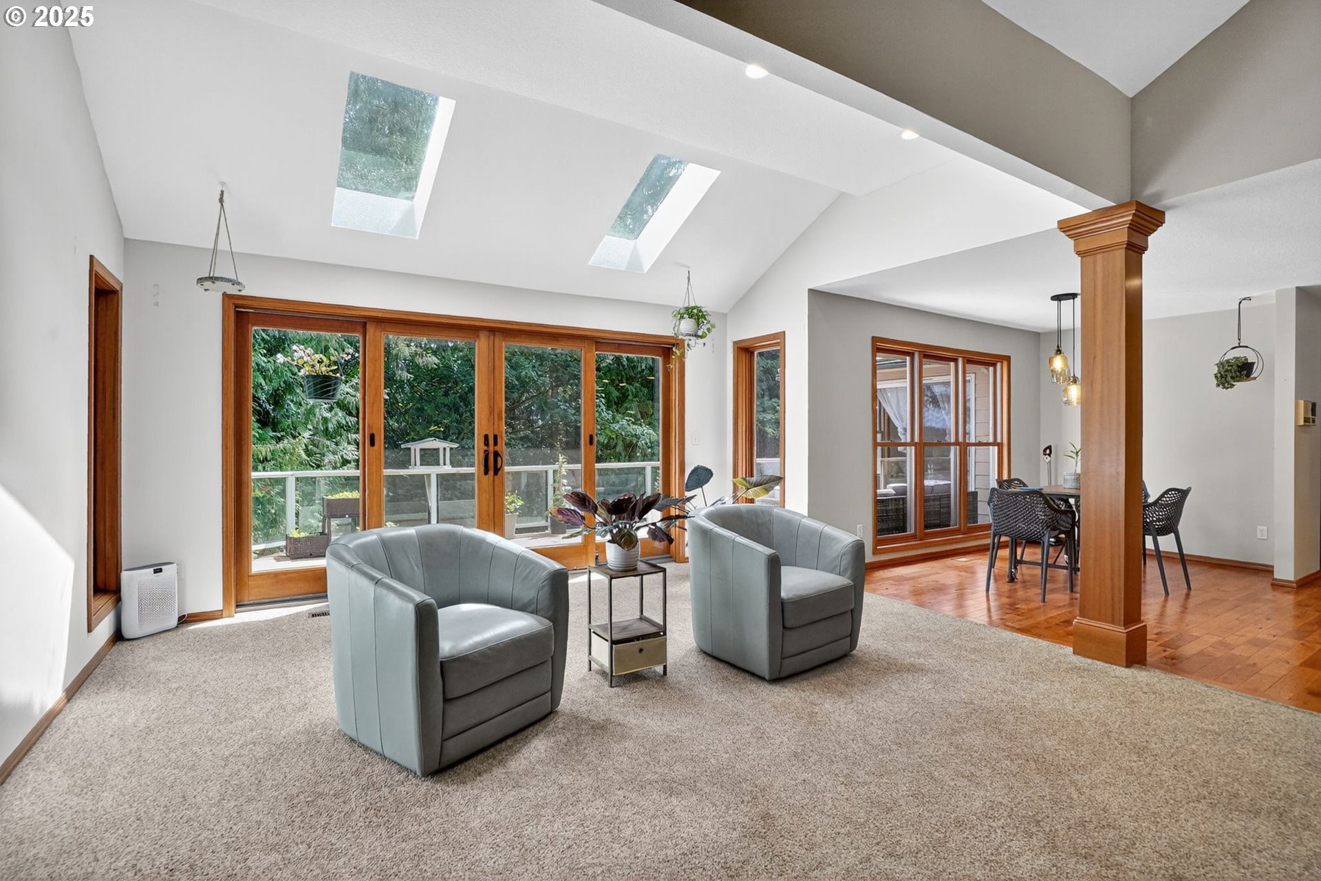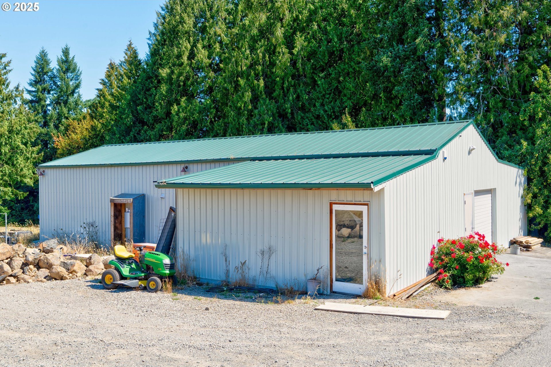 A gardener’s paradise awaits on 19.93 acres across 2 tax lots, offering peaceful seclusion with views of Mt. Hood, rolling hills, mature trees, and a private pond. This custom 4-bedroom, 4-bath home features vaulted ceilings, skylights, and large windows that fill the living spaces with natural light. The kitchen includes a center island, built-ins, and a nook with Mt. Hood views opening to a sunny multi-level deck. A daylight basement adds a second kitchen, gas fireplace, bonus room, and direct yard access. The full downstairs kitchen and separate entrance make it perfect for dual living. Outdoors, enjoy room to roam, garden, or keep animals with 2 stalls/structures. A newly remodeled 2,640 sq ft shop provides a kitchen, bathroom, storage, and polyurethane-coated floors, plus 800-amp power and a 5,000-gallon cistern. With AC, gas heat, tankless water heater, and updated septic line, this property offers unlimited potential—just minutes from town.