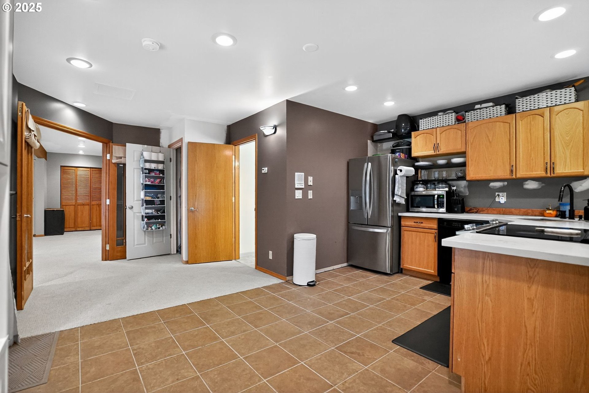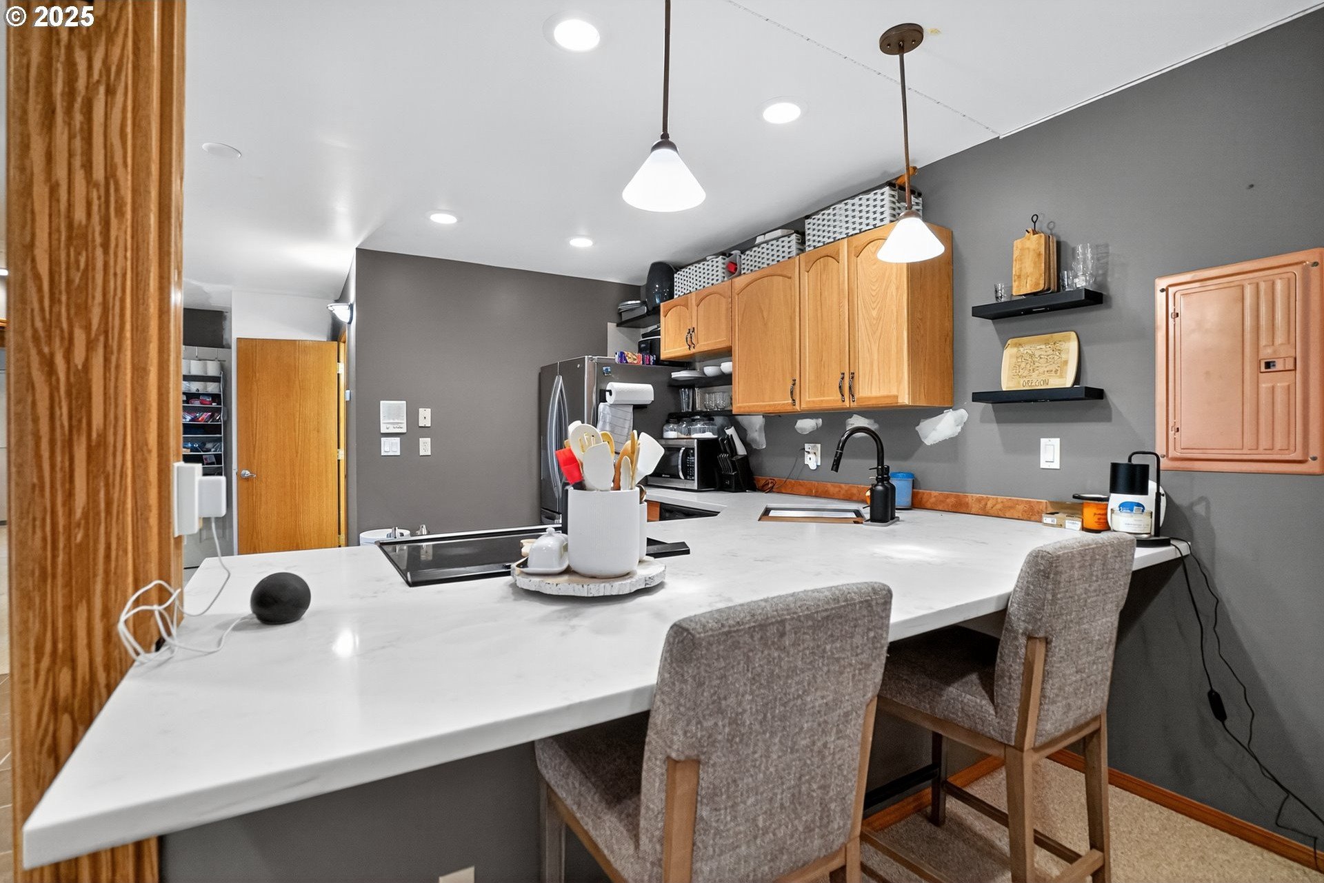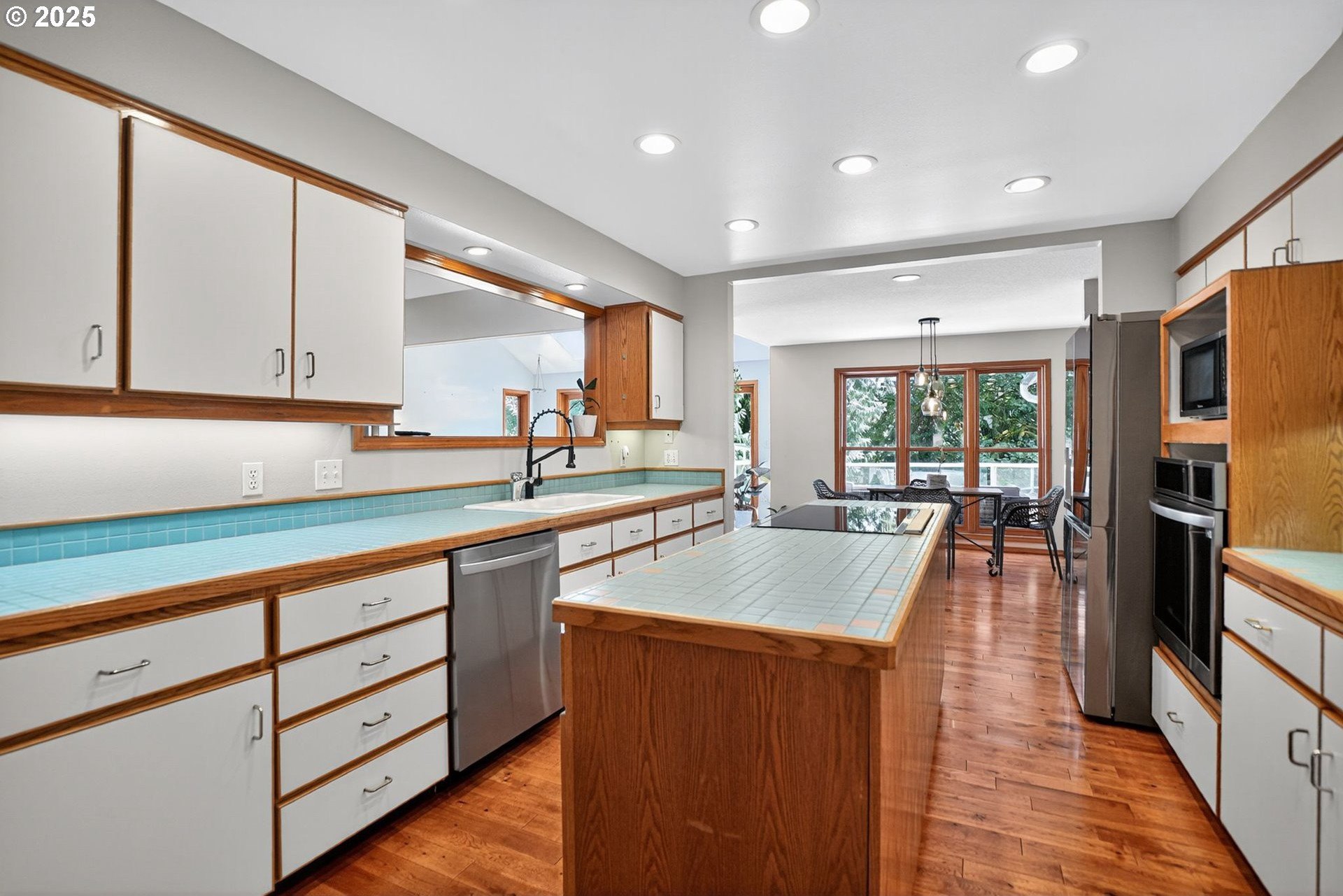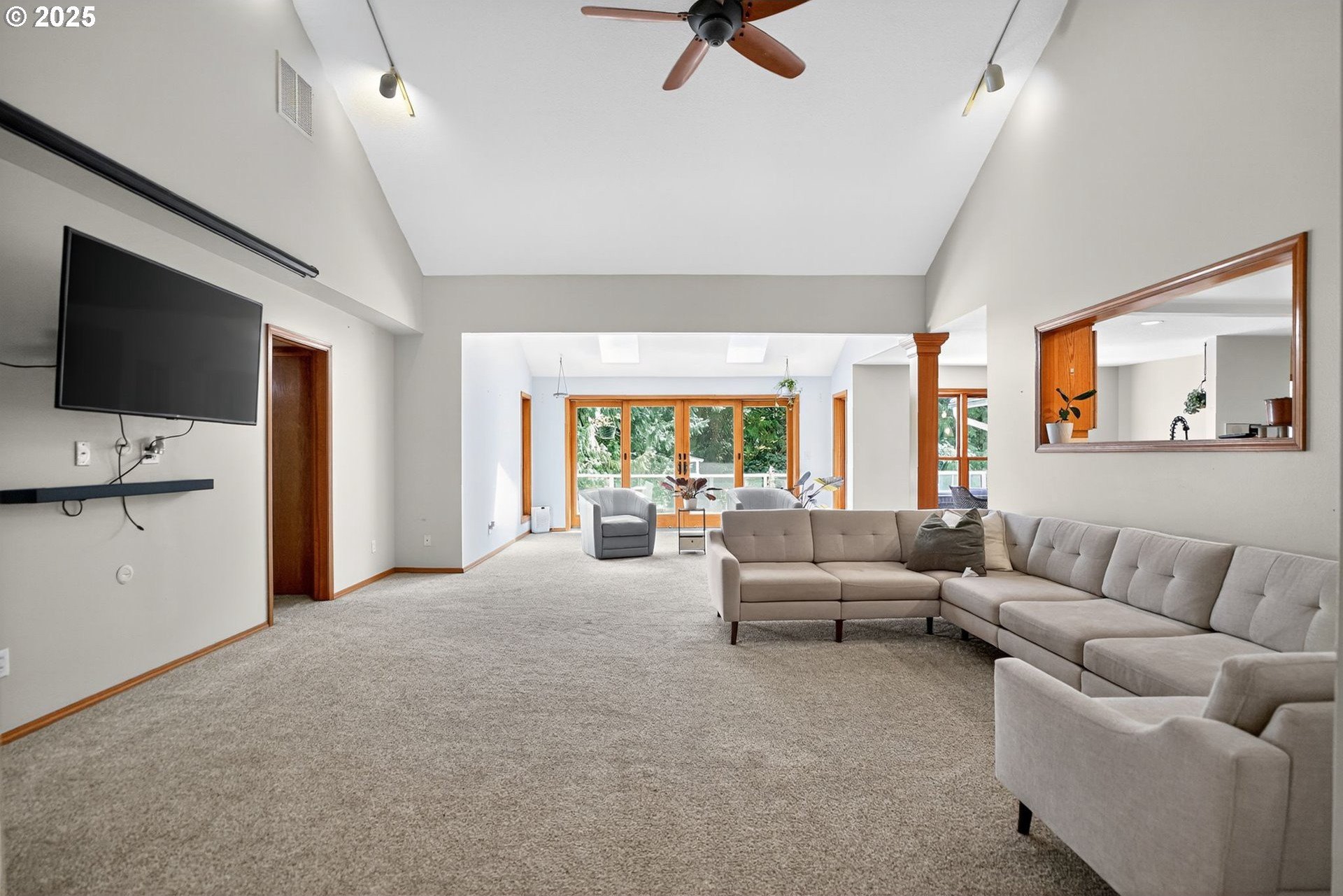 A gardener’s paradise awaits on 19.93 acres across 2 tax lots, offering peaceful seclusion with views of Mt. Hood, rolling hills, mature trees, and a private pond. This custom 4-bedroom, 4-bath home features vaulted ceilings, skylights, and large windows that fill the living spaces with natural light. The kitchen includes a center island, built-ins, and a nook with Mt. Hood views opening to a sunny multi-level deck. A daylight basement adds a second kitchen, gas fireplace, bonus room, and direct yard access. The full downstairs kitchen and separate entrance make it perfect for dual living. Outdoors, enjoy room to roam, garden, or keep animals with 2 stalls/structures. A newly remodeled 2,640 sq ft shop provides a kitchen, bathroom, storage, and polyurethane-coated floors, plus 800-amp power and a 5,000-gallon cistern. With AC, gas heat, tankless water heater, and updated septic line, this property offers unlimited potential—just minutes from town.