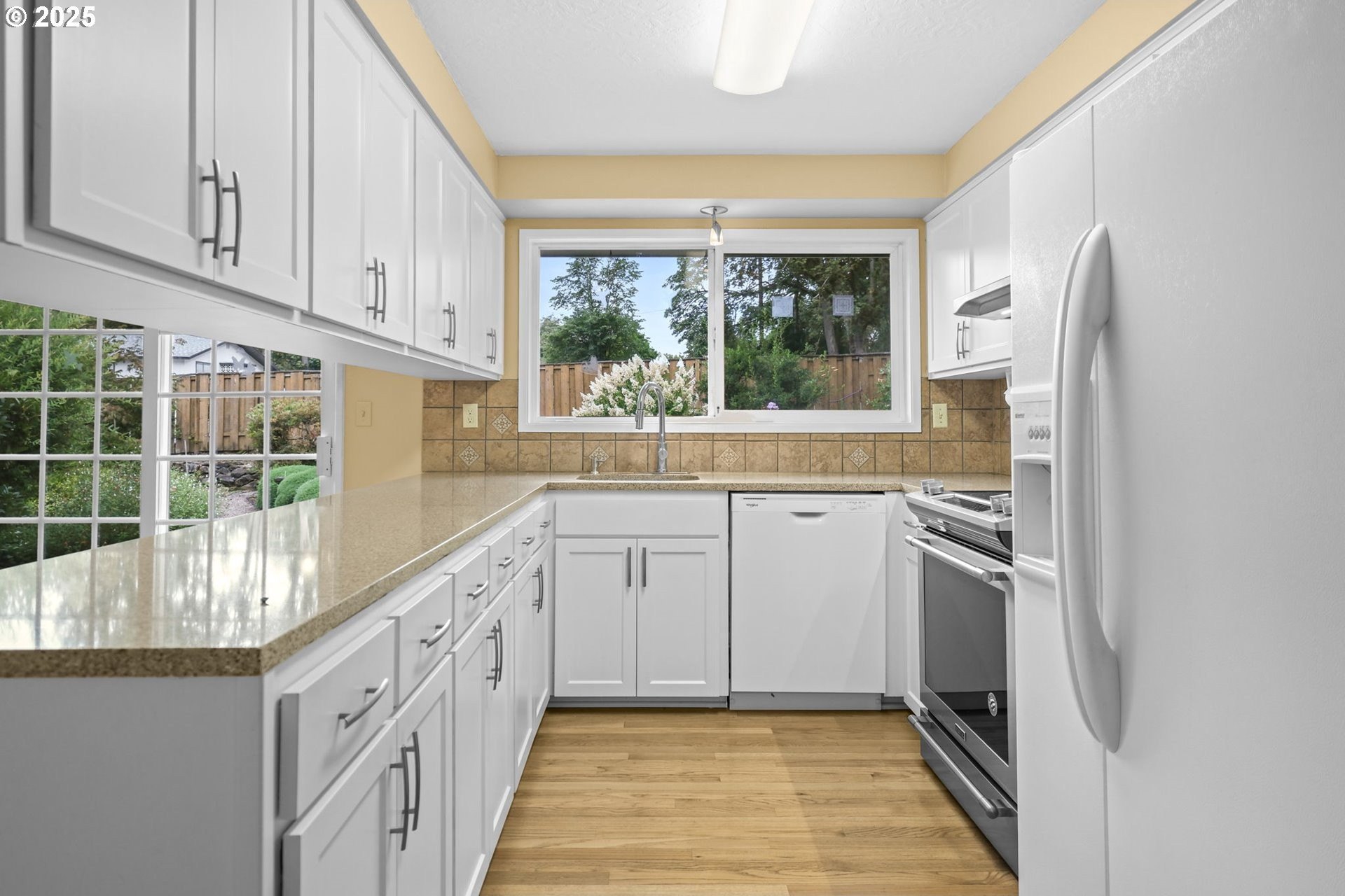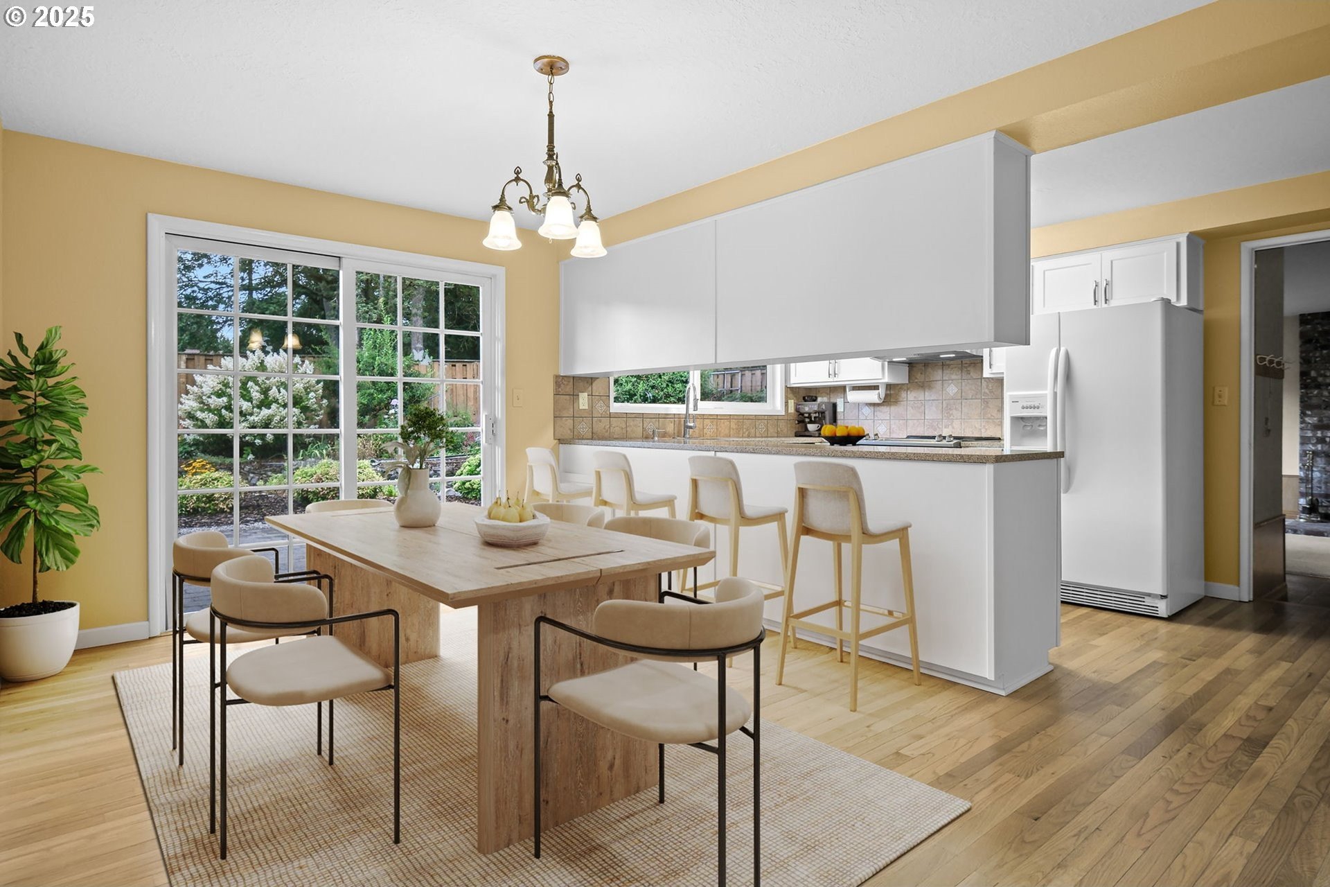 Step into comfort and tranquility in this beautifully maintained 1,517 sq ft, one-level home, built in 1962 and nestled on an expansive 8,120 sq ft lot. This delightful residence features 3 bedrooms, 2 bathrooms, a cozy brick fireplace, and the timeless elegance of original hardwood floors throughout. An additional bonus room offers flexible space for a home office, hobby area, or extra living space to suit your needs. Enjoy the convenience of a two-car attached garage and a private backyard oasis, a true gardener's dream situated on a peaceful dead-end road. This prime Milwaukie location offers a harmonious blend of small-town charm and easy access to the vibrant city life of Portland.