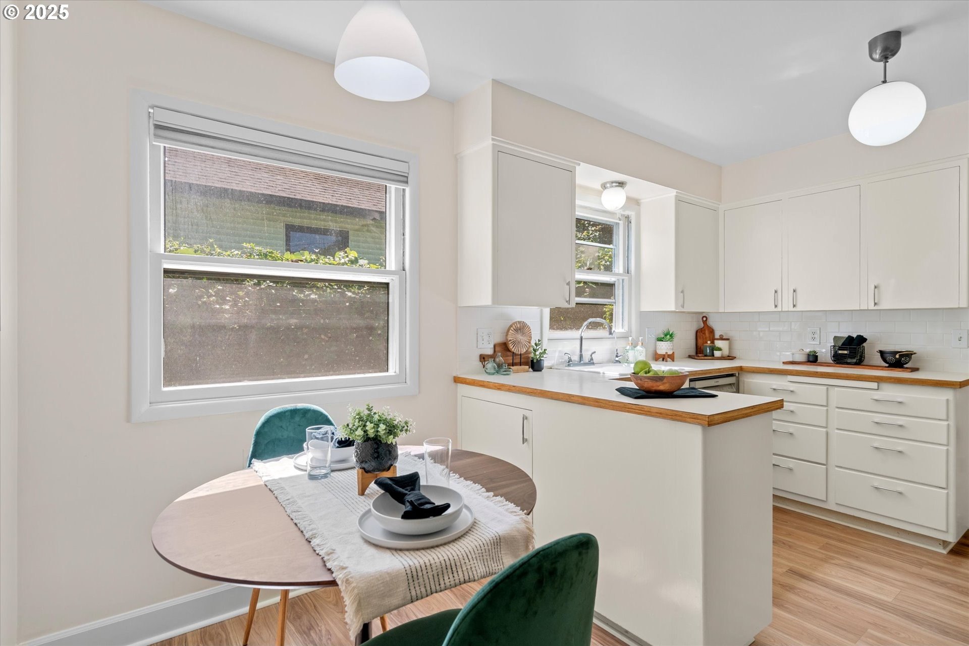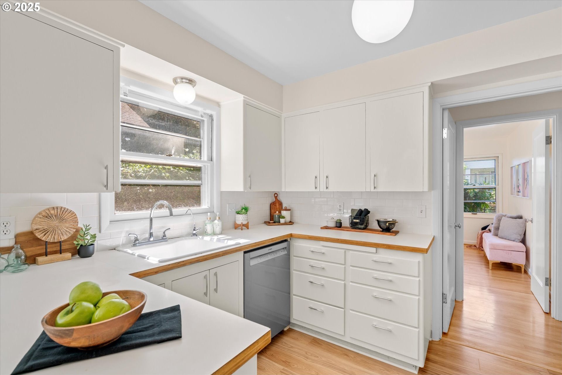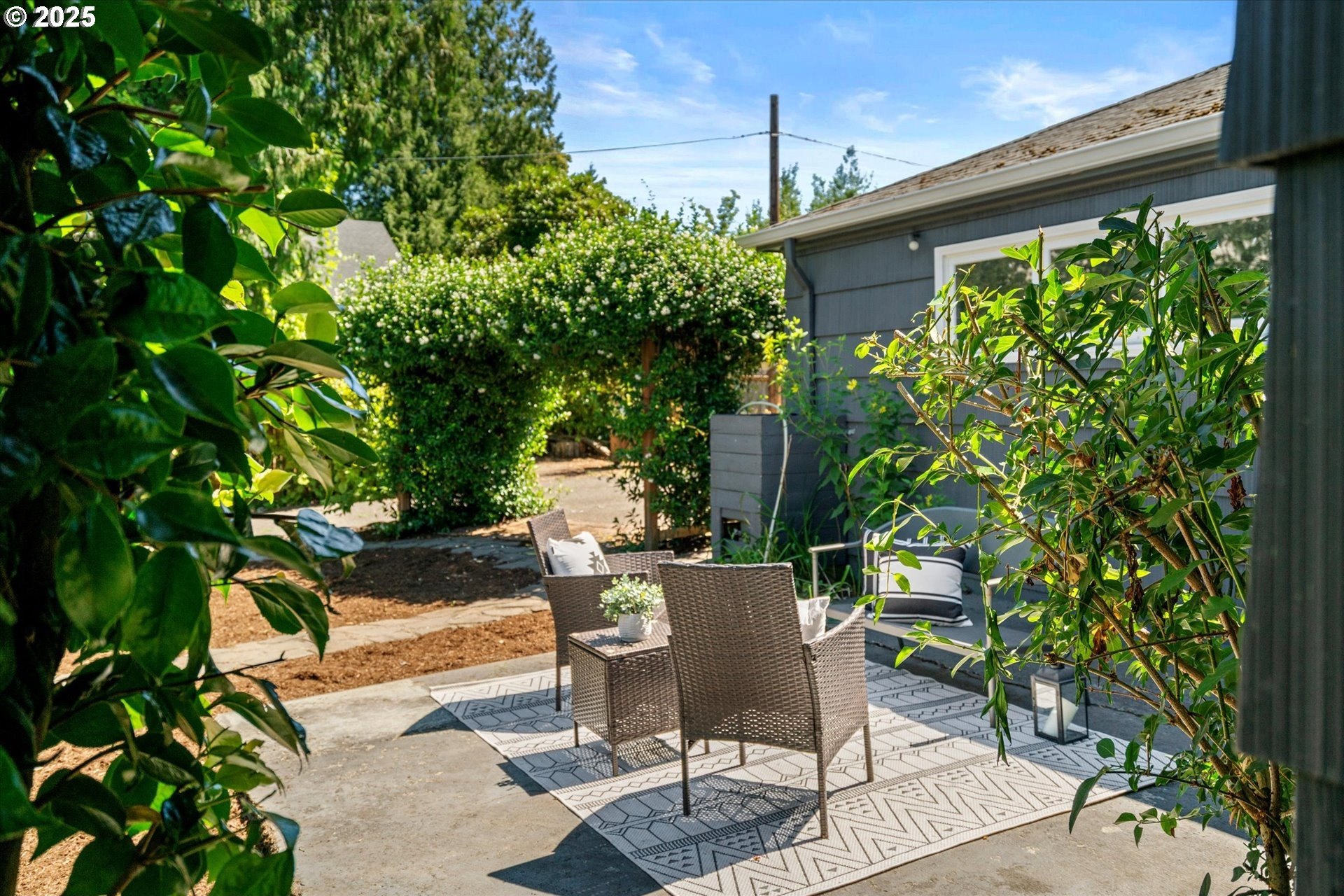 Welcome to this charming ranch/rambler in the heart of Concordia, that sits on an idyllic flat corner lot. This light and bright home features beautiful hardwood floors, restored original tub, cozy wood burning fireplace, and character rich built-ins. An attached garage plus driveway parking adds security and convenience on an off-street alley. Step out to a private yard with multiple areas to relax. A quaint front patio and two different greenery covered trellis's. Beautiful mature hedges and Azalea bushes that explode with color in the spring along the property perimeter. Fruit trees, bountiful blueberry bushes and raised garden beds. Walking distance to Alberta Park, The Kennedy School and New Seasons Market. Great option for first time buyers or savvy investors seeking charm, functionality, and outdoor appeal all in one.