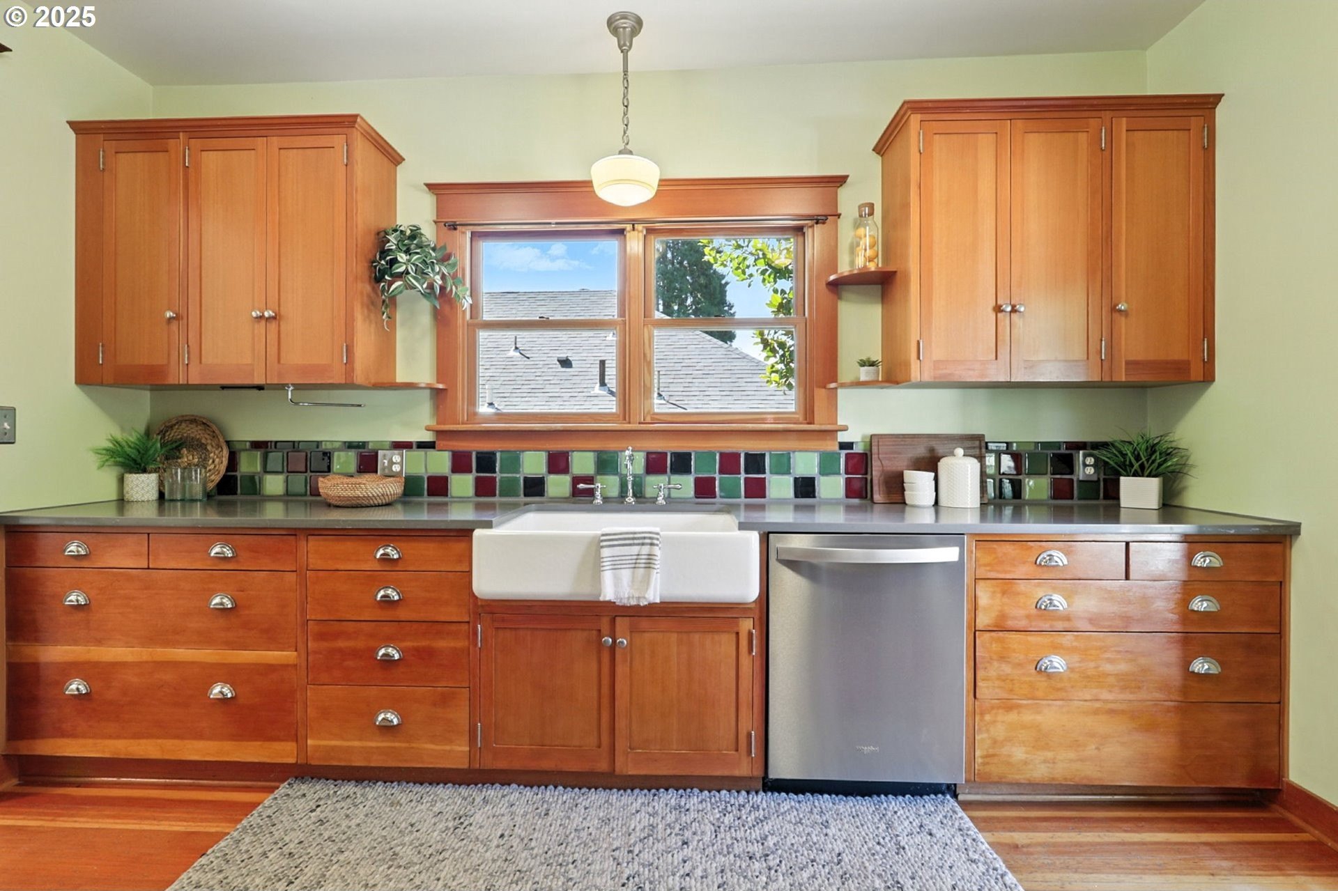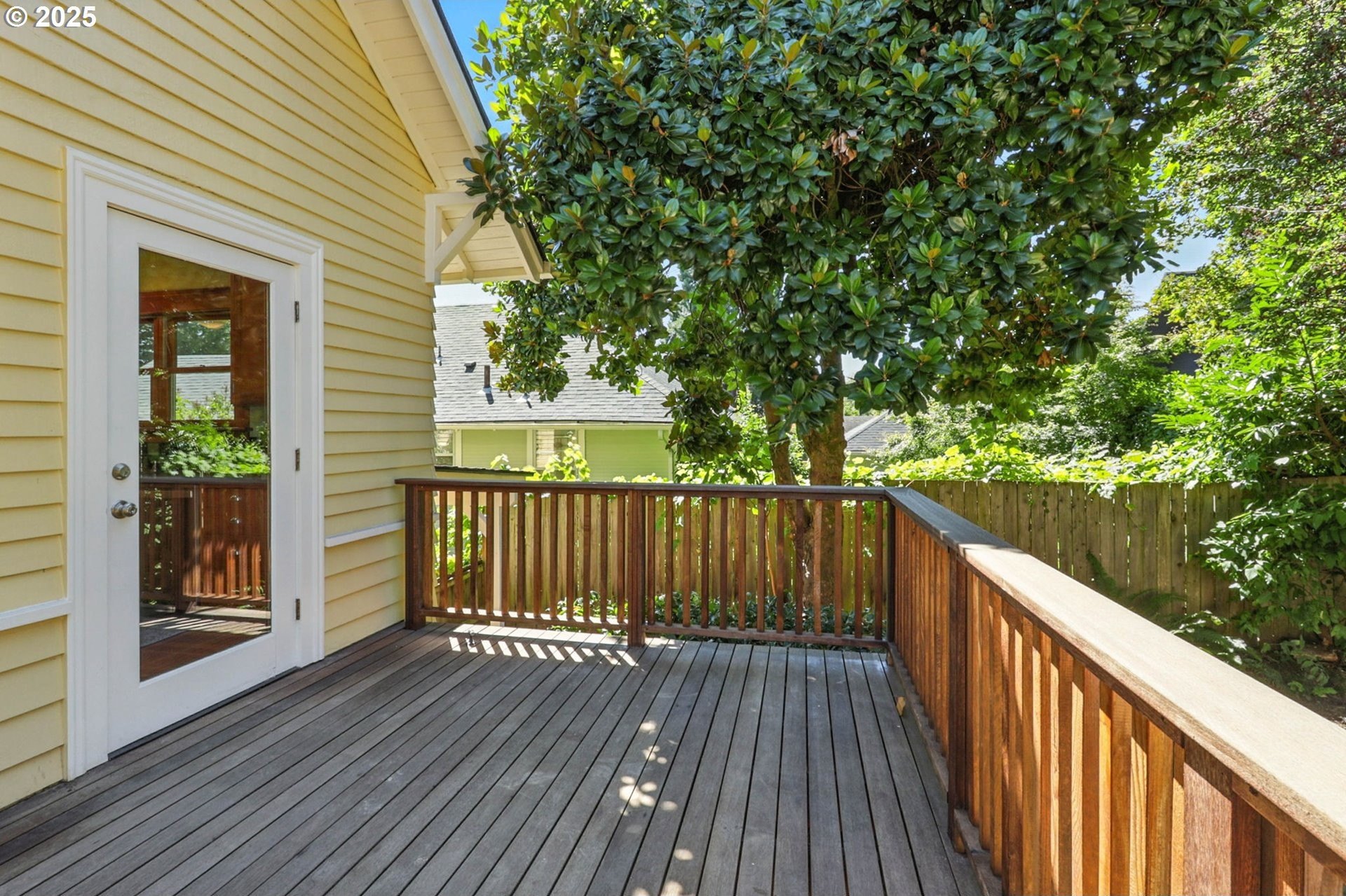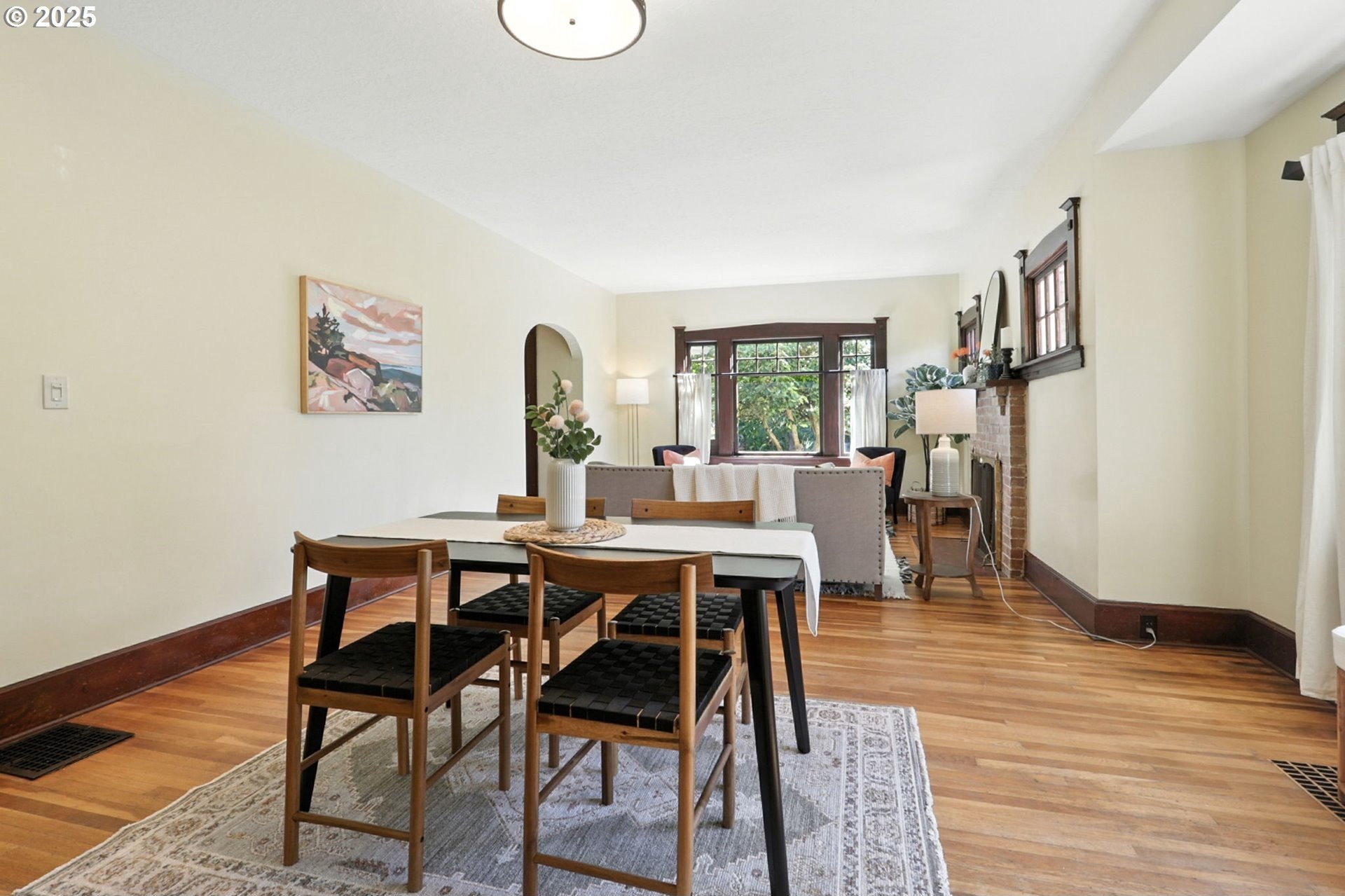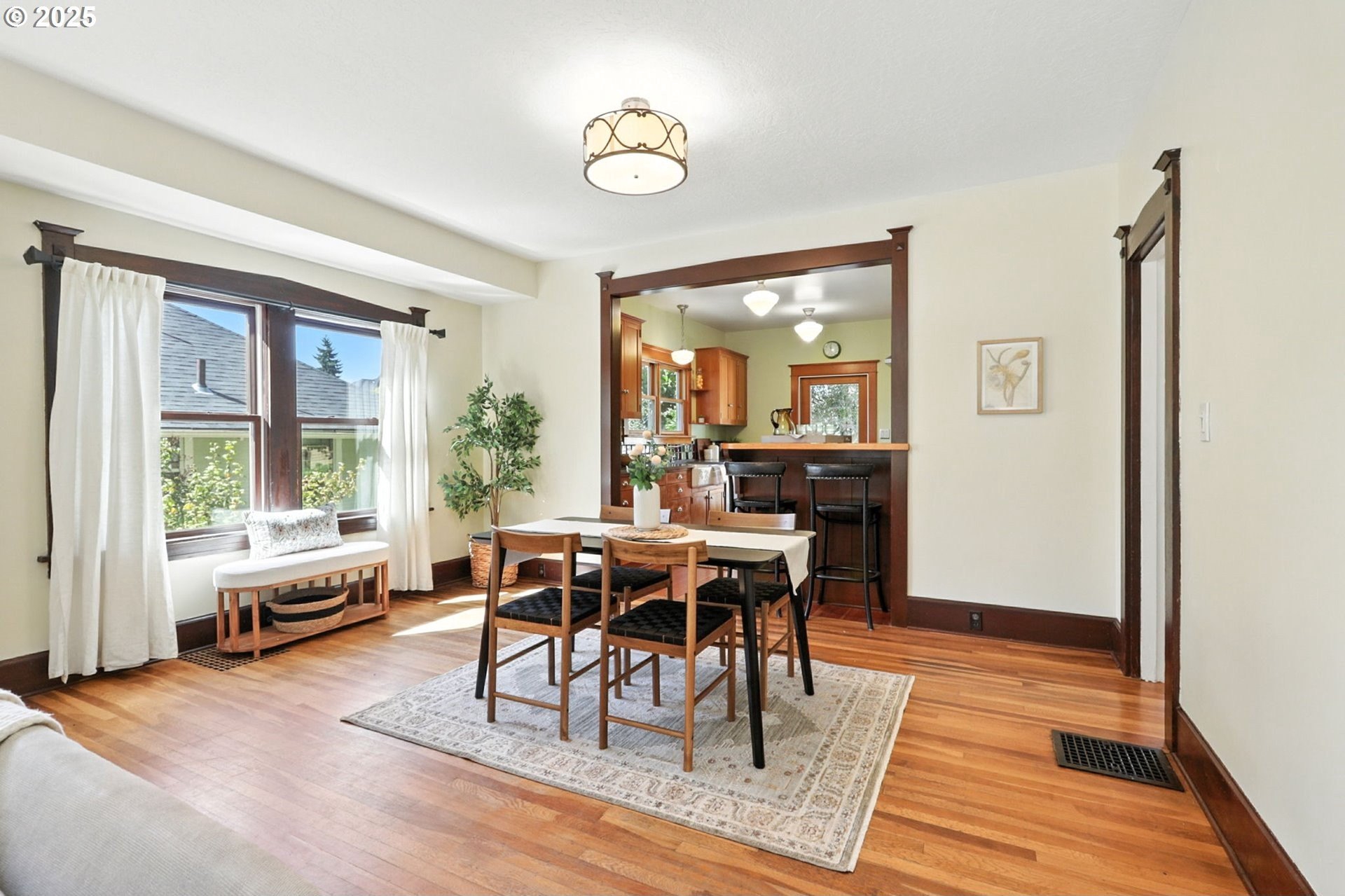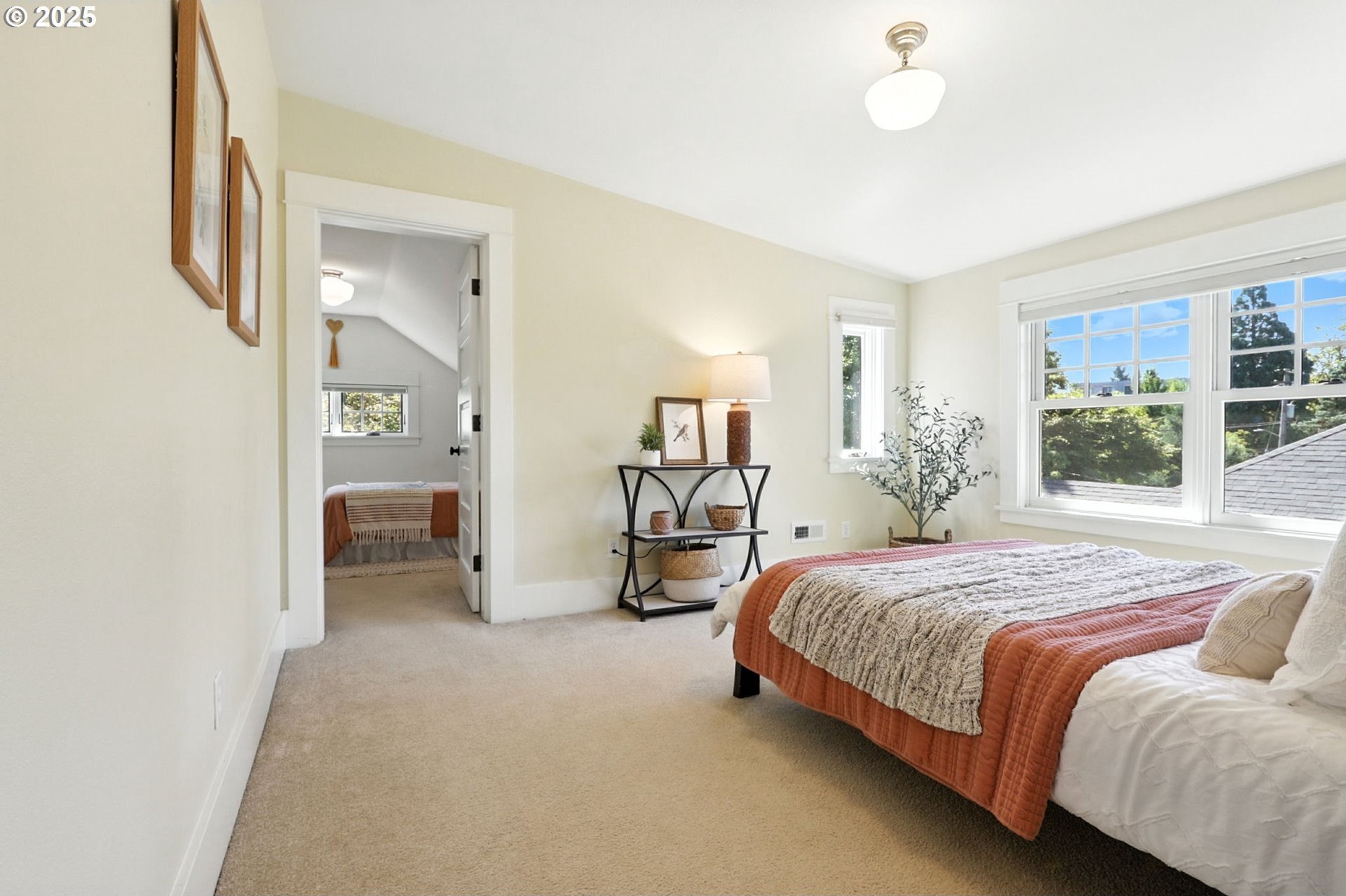 This fully updated and remodeled Craftsman Bungalow combines timeless charm with modern efficiency—including paid-off solar panels, EV charging ready, updated plumbing and electrical (2008), earthquake retrofit, and radon mitigation system. Nestled at the base of Alameda Ridge in the highly sought-after Rose City Park neighborhood, this home blends classic character with contemporary convenience.Step inside to find gorgeous oak floors throughout the main level and fir floors in the kitchen. The spacious living and dining rooms showcase rare unpainted woodwork, a stunning wood-burning fireplace, and abundant natural light. The remodeled kitchen pairs vintage charm with modern finishes, featuring solid wood cabinets, quartz and butcher block countertops, stainless steel appliances, and a stylish tile backsplash. A generous back deck—just off the kitchen—is perfect for morning coffee or entertaining.The main level includes two large bedrooms and a full bath with a clawfoot tub and elegant tile flooring. Upstairs, the primary suite offers a full bath, tranquil ambiance, and its own deck overlooking the backyard. A second upstairs bedroom makes a great nursery or home office.The finished lower level offers a flexible family room or fourth bedroom with a closet and egress window, a third full bath, spacious laundry/utility room with cabinetry and sink, and a cozy nook ideal for a second office. With a separate exterior entrance, this level has strong ADU potential.Enjoy a fenced yard- that has received it's Backyard Habitat Certificate, and a detached single-car garage—all just minutes from parks, shops, restaurants, and the Hollywood Farmers Market.