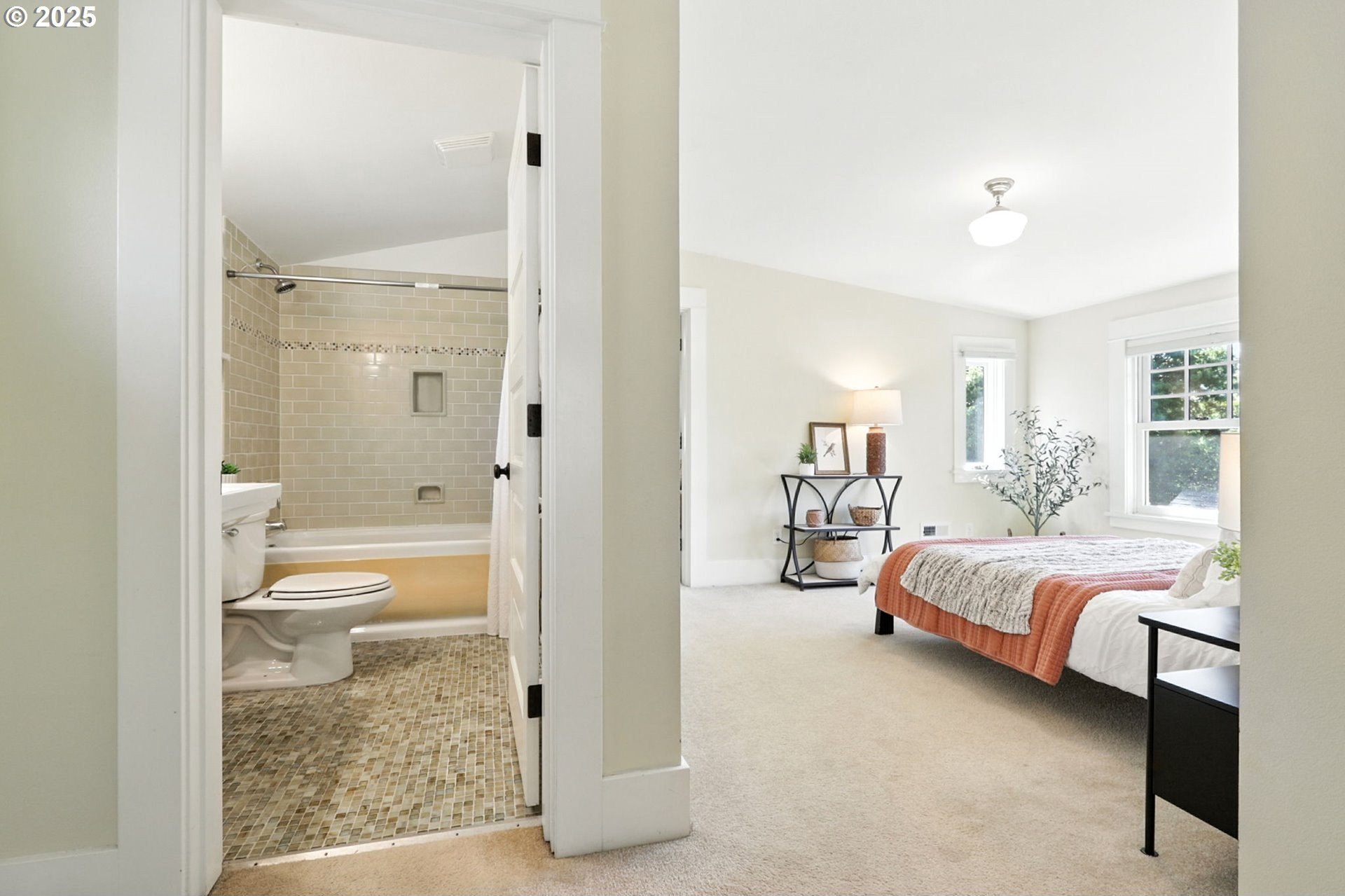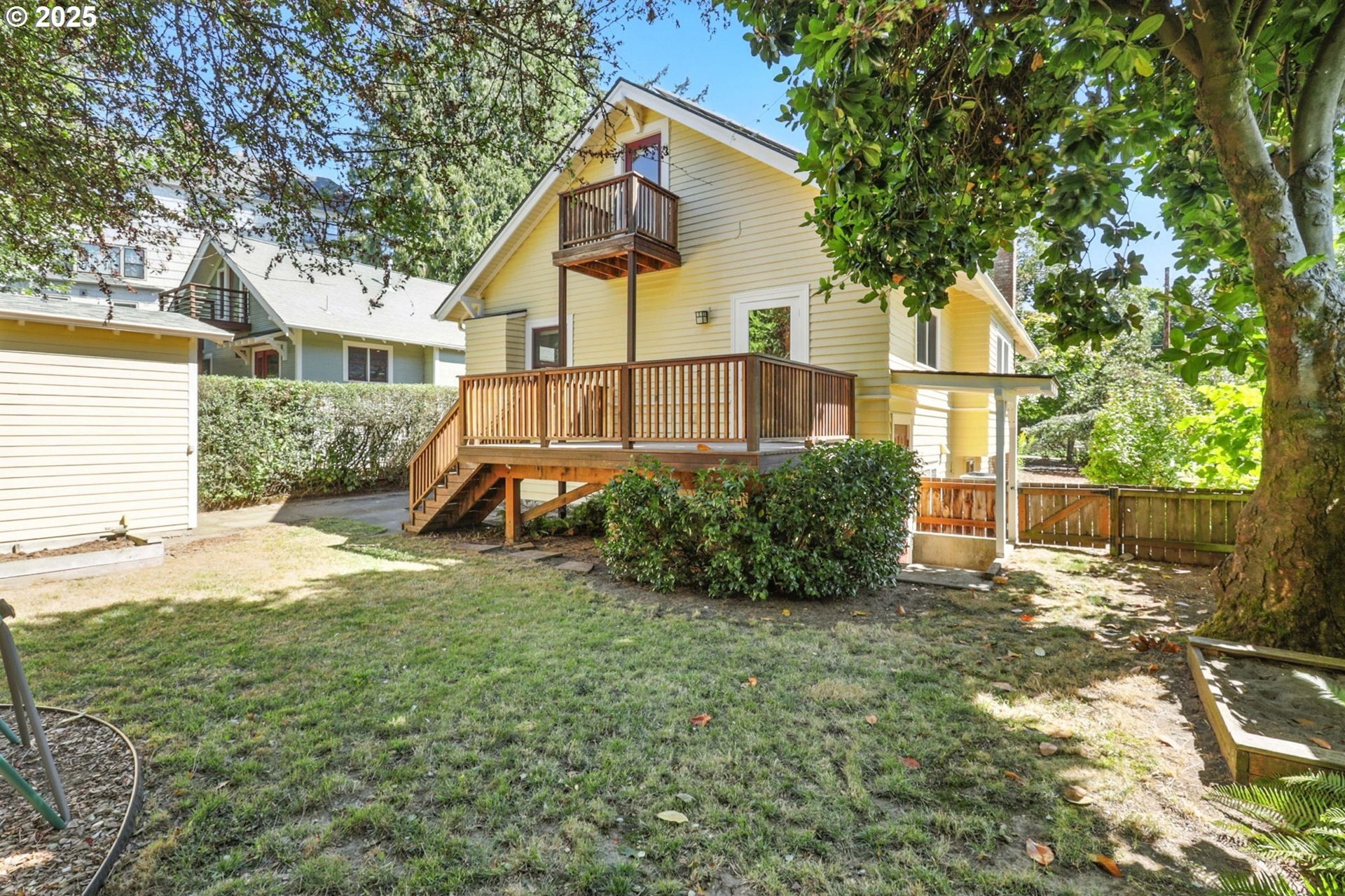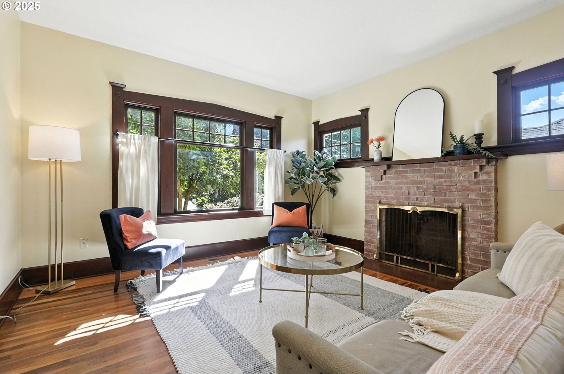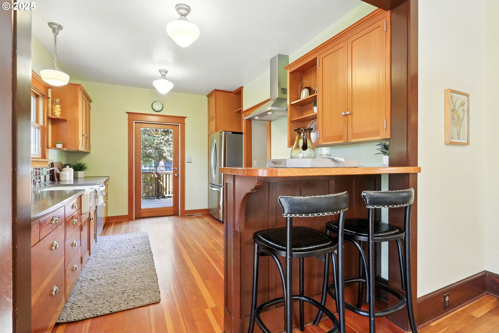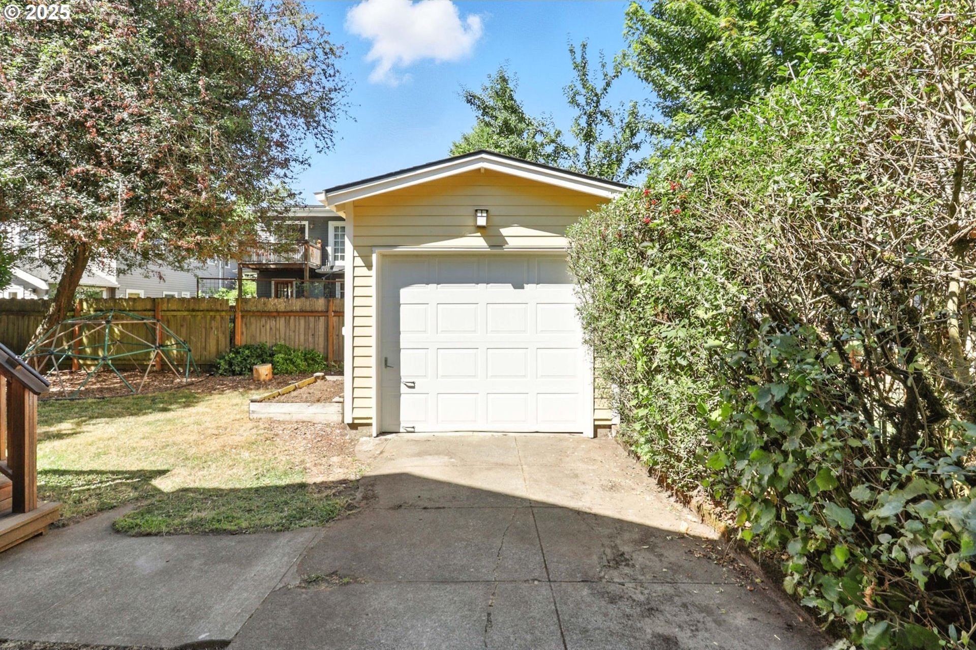 This fully updated and remodeled Craftsman Bungalow combines timeless charm with modern efficiency—including paid-off solar panels, EV charging ready, updated plumbing and electrical (2008), earthquake retrofit, and radon mitigation system. Nestled at the base of Alameda Ridge in the highly sought-after Rose City Park neighborhood, this home blends classic character with contemporary convenience.Step inside to find gorgeous oak floors throughout the main level and fir floors in the kitchen. The spacious living and dining rooms showcase rare unpainted woodwork, a stunning wood-burning fireplace, and abundant natural light. The remodeled kitchen pairs vintage charm with modern finishes, featuring solid wood cabinets, quartz and butcher block countertops, stainless steel appliances, and a stylish tile backsplash. A generous back deck—just off the kitchen—is perfect for morning coffee or entertaining.The main level includes two large bedrooms and a full bath with a clawfoot tub and elegant tile flooring. Upstairs, the primary suite offers a full bath, tranquil ambiance, and its own deck overlooking the backyard. A second upstairs bedroom makes a great nursery or home office.The finished lower level offers a flexible family room or fourth bedroom with a closet and egress window, a third full bath, spacious laundry/utility room with cabinetry and sink, and a cozy nook ideal for a second office. With a separate exterior entrance, this level has strong ADU potential.Enjoy a fenced yard- that has received it's Backyard Habitat Certificate, and a detached single-car garage—all just minutes from parks, shops, restaurants, and the Hollywood Farmers Market.