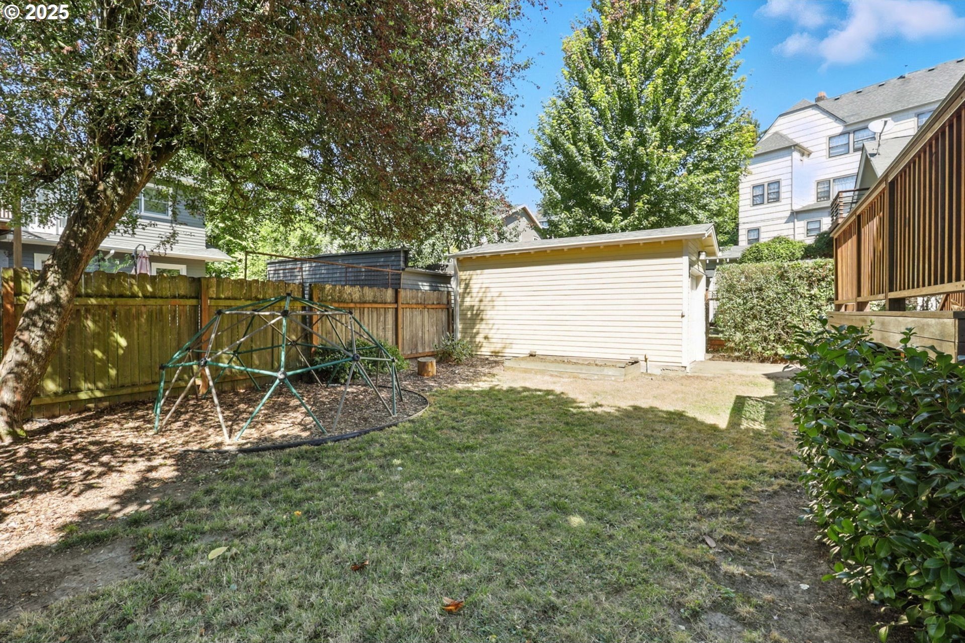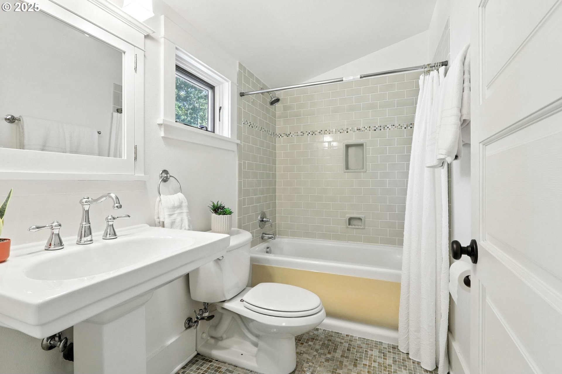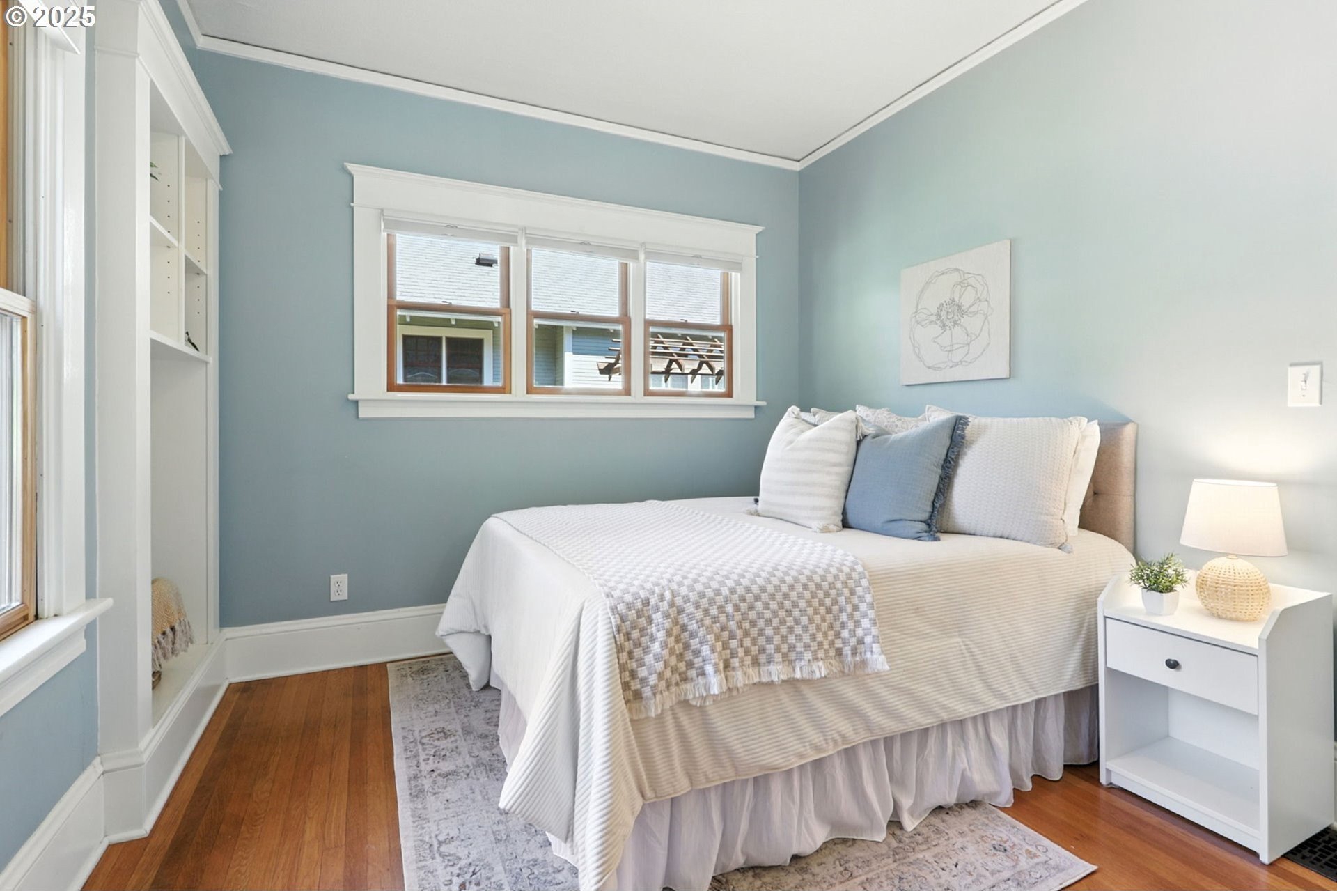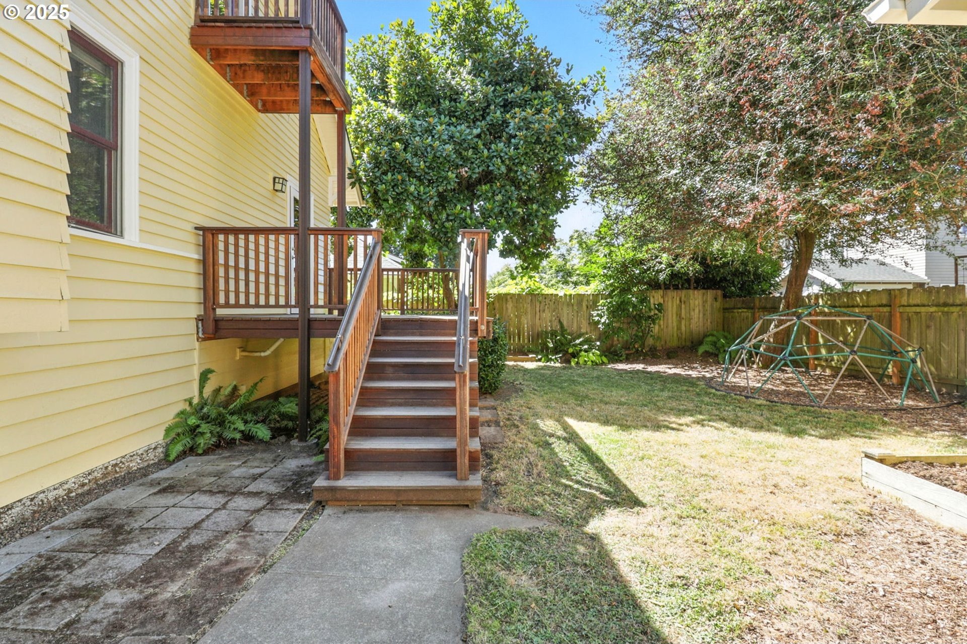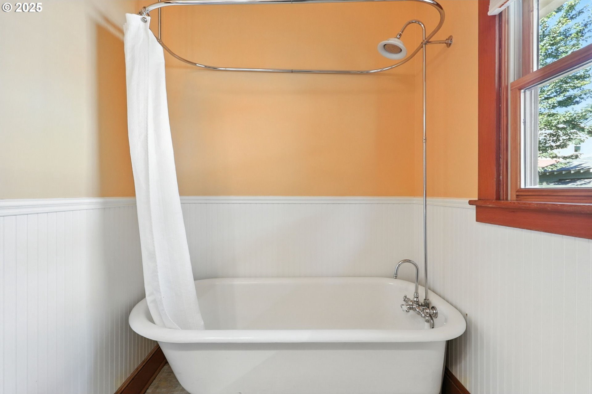 This fully updated and remodeled Craftsman Bungalow combines timeless charm with modern efficiency—including paid-off solar panels, EV charging ready, updated plumbing and electrical (2008), earthquake retrofit, and radon mitigation system. Nestled at the base of Alameda Ridge in the highly sought-after Rose City Park neighborhood, this home blends classic character with contemporary convenience.Step inside to find gorgeous oak floors throughout the main level and fir floors in the kitchen. The spacious living and dining rooms showcase rare unpainted woodwork, a stunning wood-burning fireplace, and abundant natural light. The remodeled kitchen pairs vintage charm with modern finishes, featuring solid wood cabinets, quartz and butcher block countertops, stainless steel appliances, and a stylish tile backsplash. A generous back deck—just off the kitchen—is perfect for morning coffee or entertaining.The main level includes two large bedrooms and a full bath with a clawfoot tub and elegant tile flooring. Upstairs, the primary suite offers a full bath, tranquil ambiance, and its own deck overlooking the backyard. A second upstairs bedroom makes a great nursery or home office.The finished lower level offers a flexible family room or fourth bedroom with a closet and egress window, a third full bath, spacious laundry/utility room with cabinetry and sink, and a cozy nook ideal for a second office. With a separate exterior entrance, this level has strong ADU potential.Enjoy a fenced yard- that has received it's Backyard Habitat Certificate, and a detached single-car garage—all just minutes from parks, shops, restaurants, and the Hollywood Farmers Market.