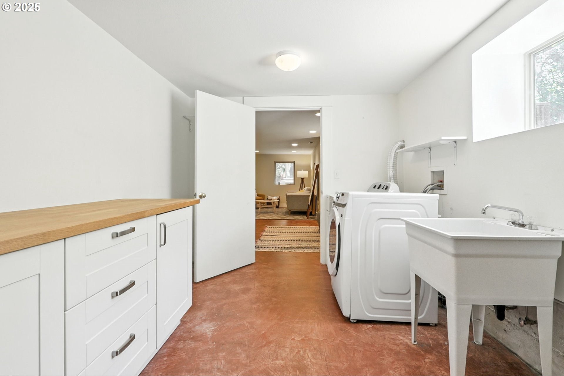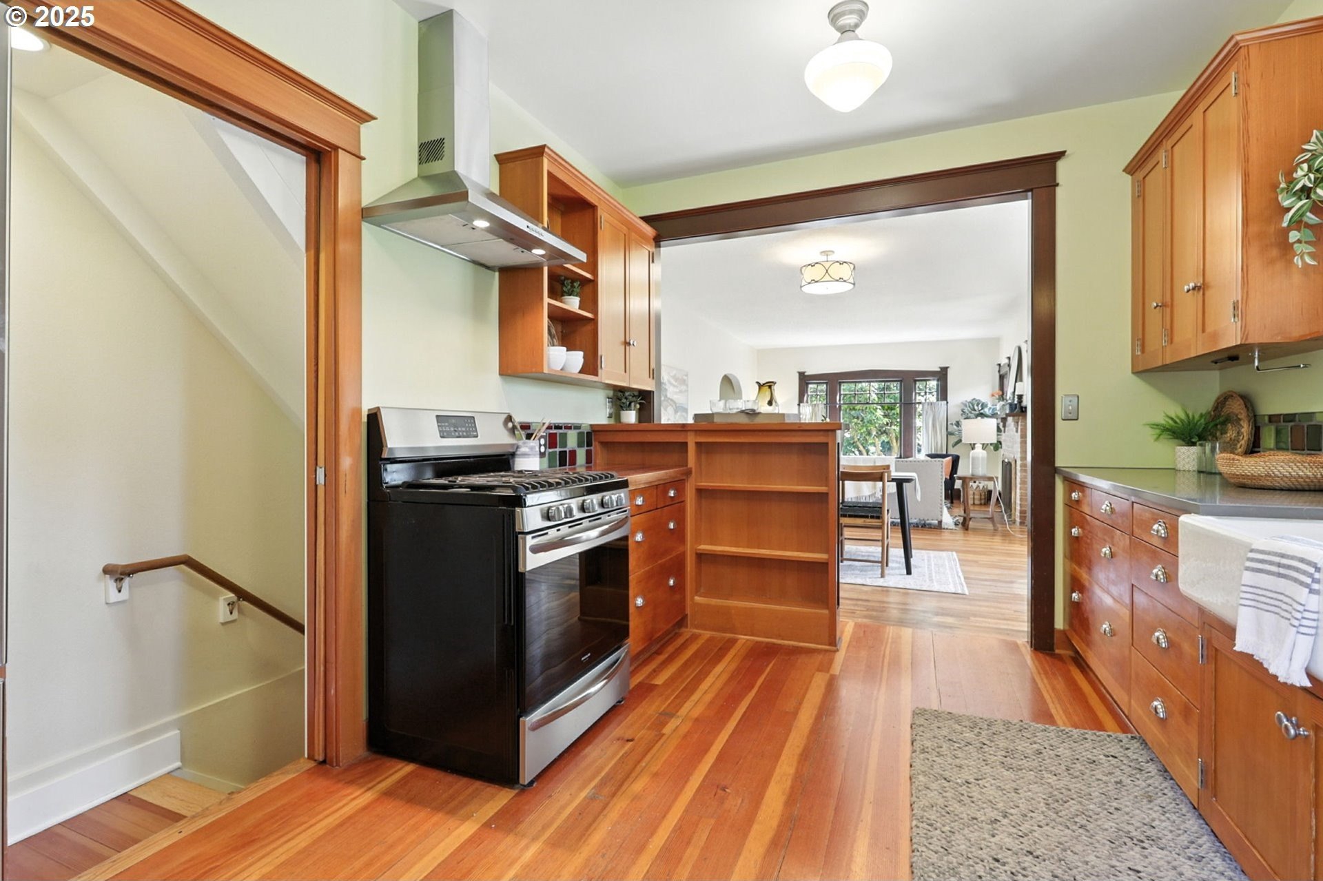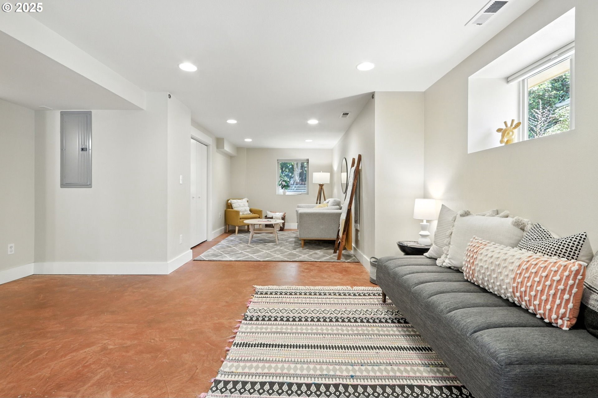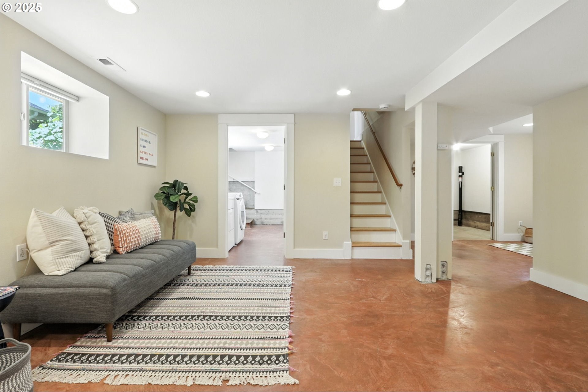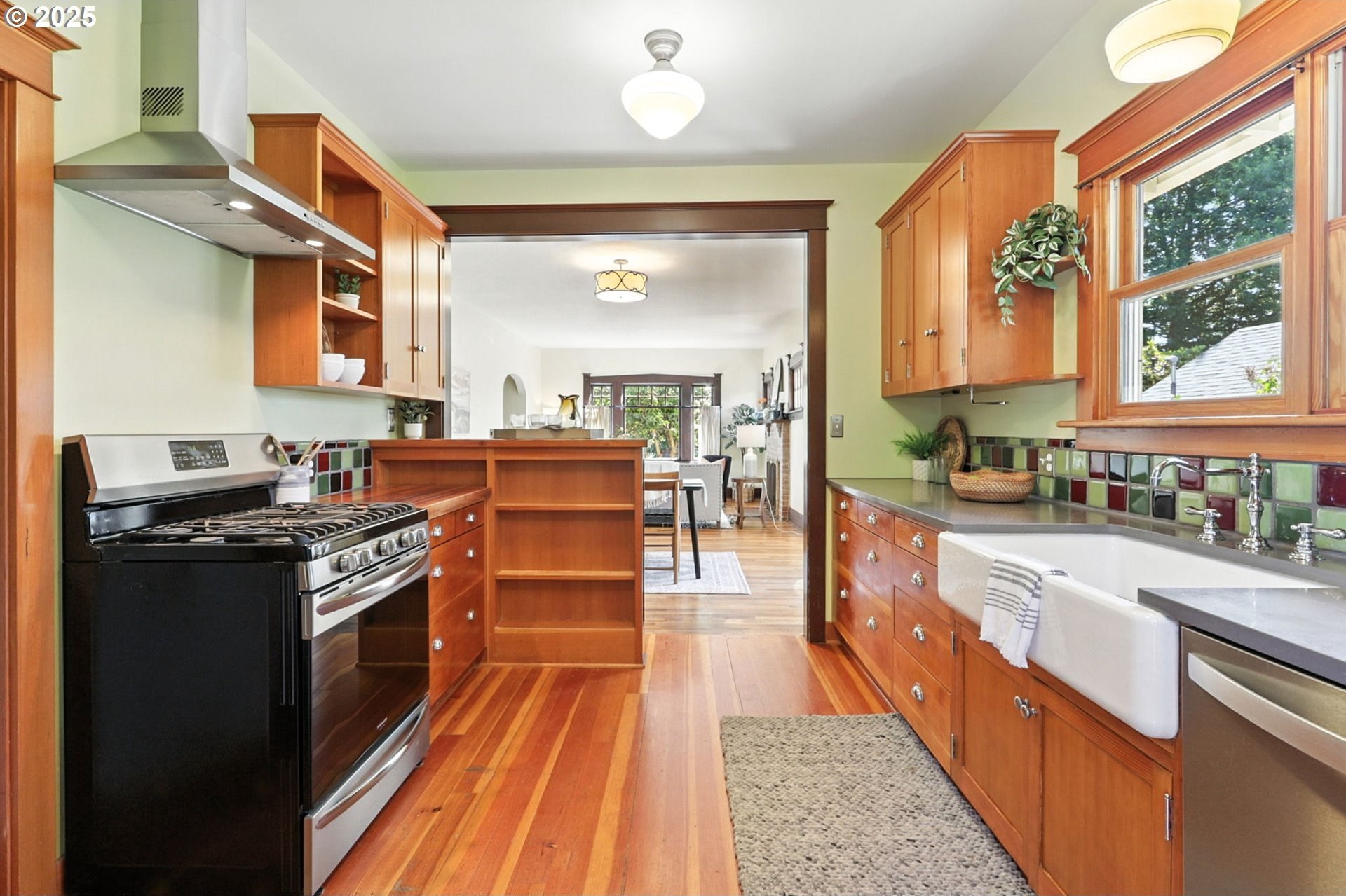 This fully updated and remodeled Craftsman Bungalow combines timeless charm with modern efficiency—including paid-off solar panels, EV charging ready, updated plumbing and electrical (2008), earthquake retrofit, and radon mitigation system. Nestled at the base of Alameda Ridge in the highly sought-after Rose City Park neighborhood, this home blends classic character with contemporary convenience.Step inside to find gorgeous oak floors throughout the main level and fir floors in the kitchen. The spacious living and dining rooms showcase rare unpainted woodwork, a stunning wood-burning fireplace, and abundant natural light. The remodeled kitchen pairs vintage charm with modern finishes, featuring solid wood cabinets, quartz and butcher block countertops, stainless steel appliances, and a stylish tile backsplash. A generous back deck—just off the kitchen—is perfect for morning coffee or entertaining.The main level includes two large bedrooms and a full bath with a clawfoot tub and elegant tile flooring. Upstairs, the primary suite offers a full bath, tranquil ambiance, and its own deck overlooking the backyard. A second upstairs bedroom makes a great nursery or home office.The finished lower level offers a flexible family room or fourth bedroom with a closet and egress window, a third full bath, spacious laundry/utility room with cabinetry and sink, and a cozy nook ideal for a second office. With a separate exterior entrance, this level has strong ADU potential.Enjoy a fenced yard- that has received it's Backyard Habitat Certificate, and a detached single-car garage—all just minutes from parks, shops, restaurants, and the Hollywood Farmers Market.