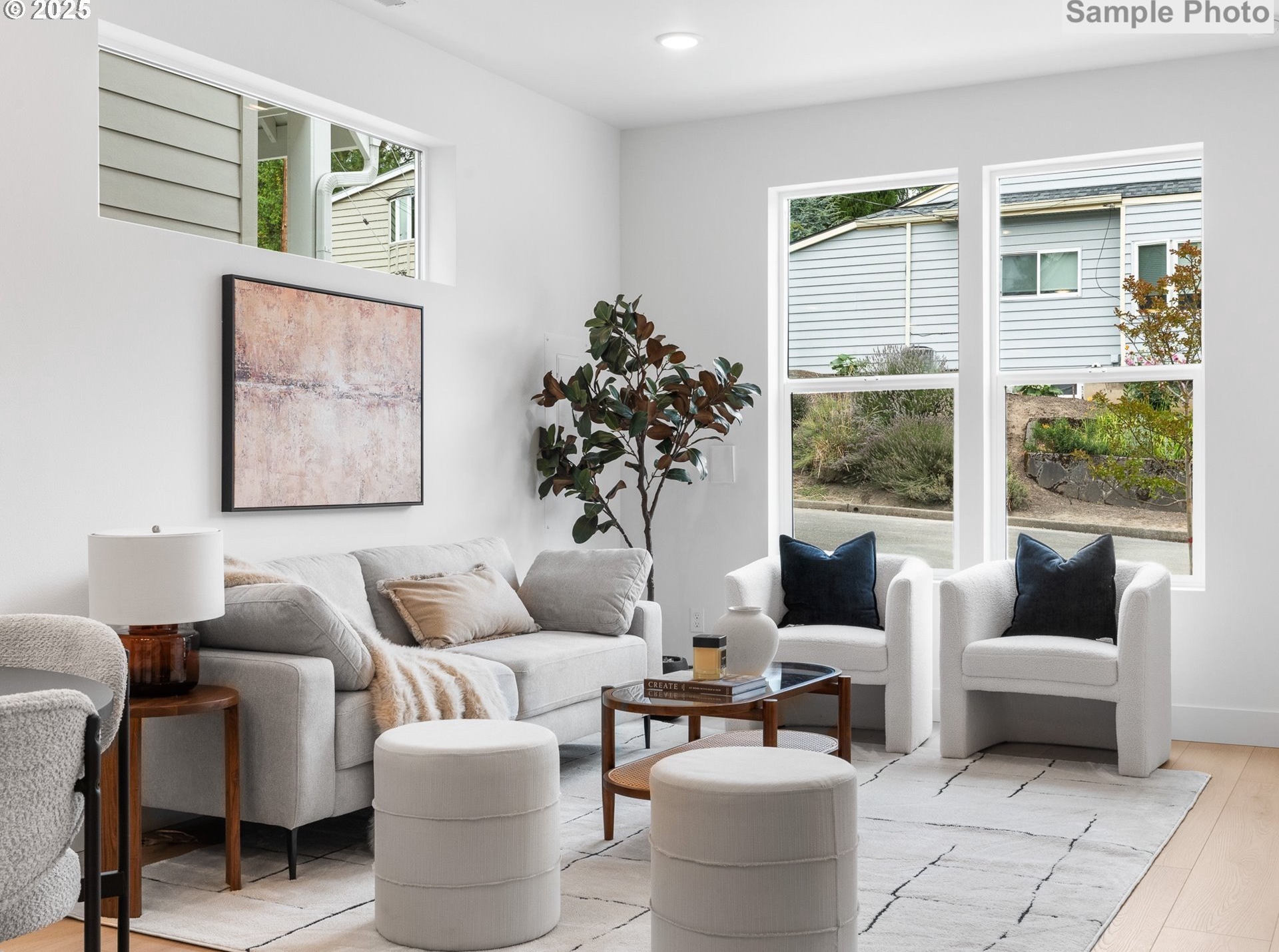Welcome the Next Chapter of Portland Luxury Living! This modern masterpiece blends design-forward living with the warmth of a truly livable home. Perfectly located in Southwest Portland—just moments from the heart of Multnomah Village and the lush trails of Gabriel Park—this 2-bedroom, 2.1-bath residence offers a rare opportunity to live luxuriously in one of the city's most walkable and charming neighborhoods. Step into the light-filled great room where soaring ceilings and expansive picture windows create an uplifting sense of space. The open-concept layout is ideal for everything from lively dinner parties to lazy Sundays. In the kitchen, quartz countertops, custom cabinetry, and stainless appliances offer both beauty and function. The large eat bar invites conversation while cooking or casual weeknight meals. Upstairs, the primary suite serves as a peaceful retreat with a spa-inspired ensuite bathroom and coffered ceilings, while an additional bedroom provides space for guests, work, or creativity. Every inch of the home is elevated with custom tilework, designer hardware and lighting, and Milgard windows. A private patio with pavers extends your living space outdoors, ideal for summer meals, morning coffee, or container gardening. And when you step beyond your front door, daily life feels even more special. Pick up a fresh bouquet at Sage Flowers, enjoy vibrant Mediterranean flavors at Yalla, or explore the expansive craft beer selection at John’s Market—all just minutes away in Multnomah Village. Here, you’re not just buying a home—you’re stepping into a community known for its charm, walkability, and connection.