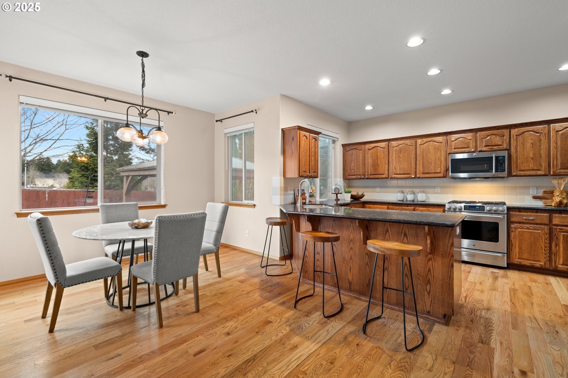 Bright and spacious, this beautiful 5 bedroom home is located on a quiet cul-de-sac in the desirable Bethany Area. Open floor plan on main with high ceilings, gleaming hardwood floors, and tons of natural light. Kitchen, dining, eating nook, and family room with gas fireplace flow together, ideal for entertaining. Kitchen boasts slab granite countertops, stainless steel appliances including a brand new refrigerator and dishwasher, and a walk-in pantry. Bedroom/office on main level. Primary suite upstairs with walk-in closet and luxurious whirlpool/jacuzzi tub. Bonus room upstairs complete with a projection system and integrated speakers. Upgraded, modern bathrooms with slab granite countertops. Plenty of built-in storage throughout, including utility room, garage, and wall-to-wall mirrored closets in primary bedroom. Private, fully paved backyard with gazebo. Smart sprinkler system with drip irrigation. Solar panel system is fully paid and transferable. High-speed Tesla charging point in garage. Additional extra deep freezer. Great location minutes from top-rated Jacob Wismer Elementary and Stoller Middle Schools, Bethany Village shops and restaurants, walking trails, parks, and more!Please remove shoes or wear shoe covers. Pictures from old listing and house is not staged