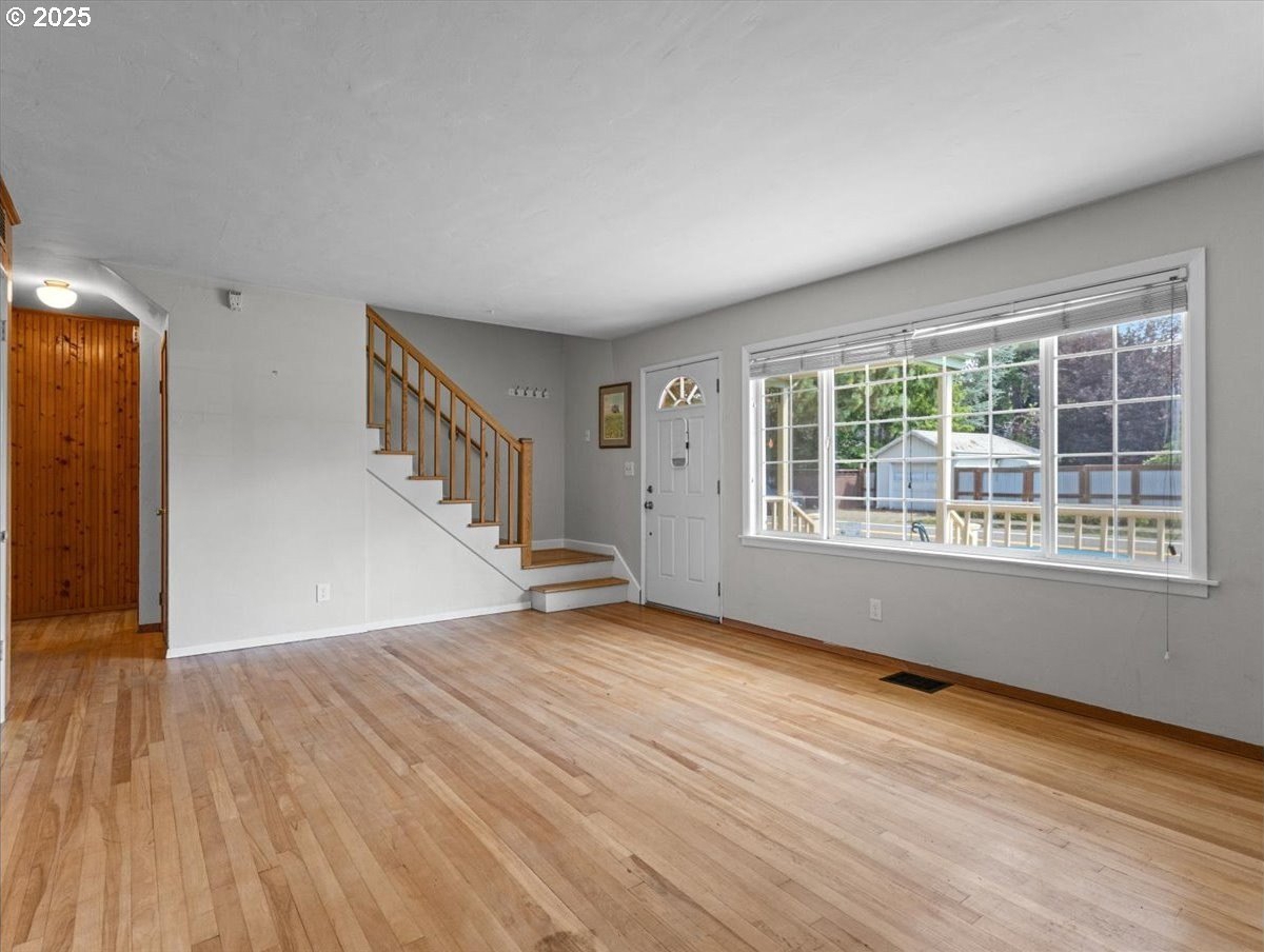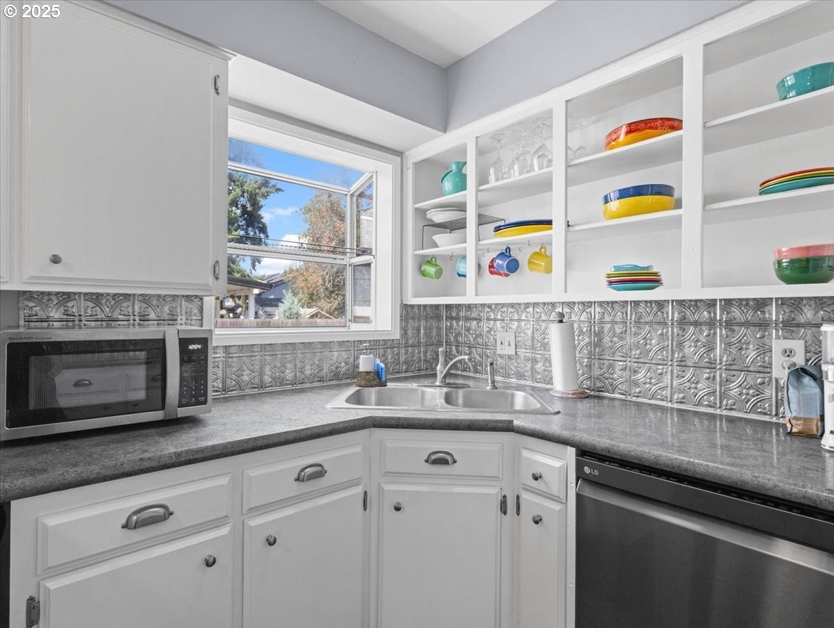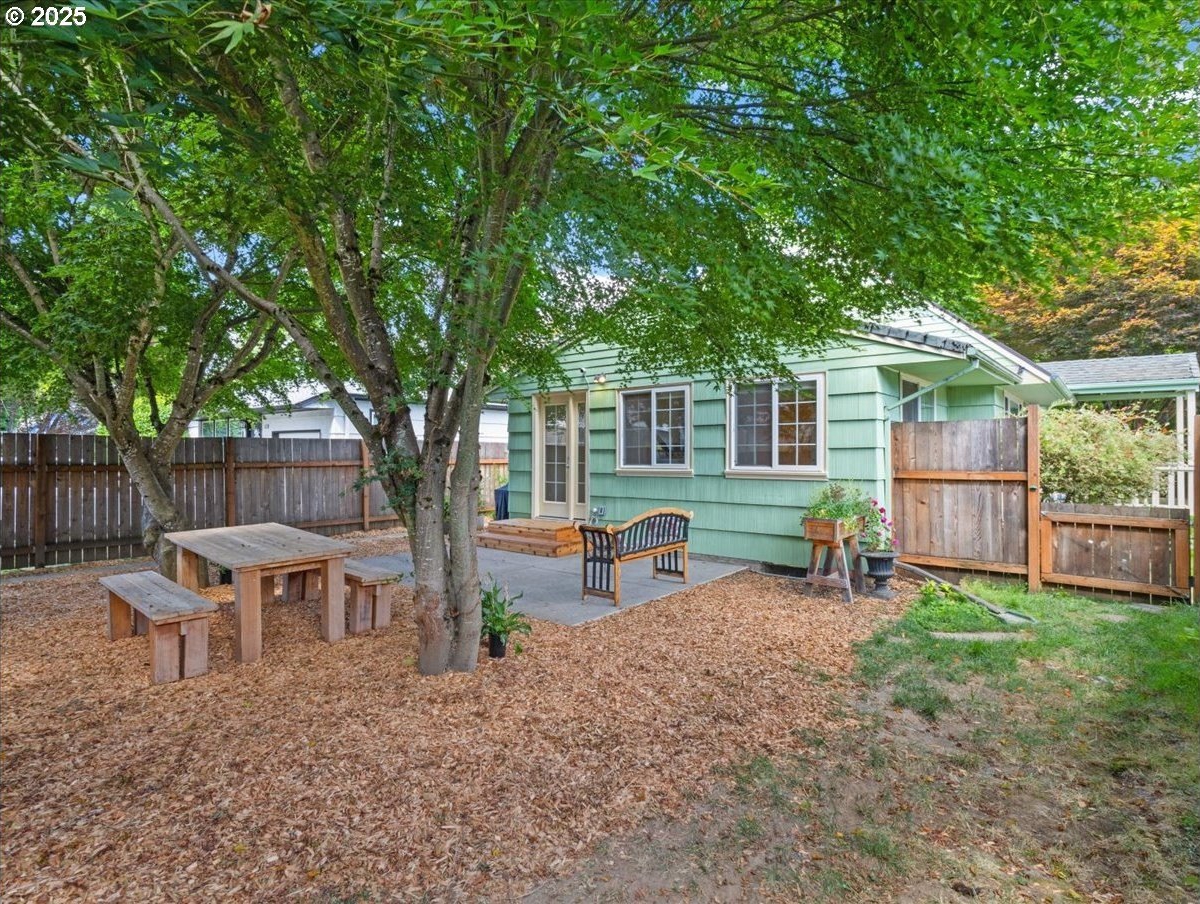 Step into a truly special home bursting with charm, character, and an abundance of natural light. Nestled on a beautifully landscaped, fenced corner lot, this 4-bedroom, 1.5-bath vintage gem is filled with sunshine, soul, and smart updates throughout. Step into a cheerful living room where sunlight streams through large picture-framed windows, bouncing off warm beech hardwood floors and highlighting the vintage knotty pine paneling. High ceilings and newer paint make the space feel open, airy, and welcoming. The dining room is just as delightful, glowing with light from three windows and a glass door that opens to the side yard. With updated lighting, a charming picture-framed ceiling, and beautiful hardwoods, it's the perfect place for cozy meals or joyful gatherings. The kitchen shines with personality and function: a garden window lets in even more sunshine, while updated appliances (Frigidaire fridge, LG dishwasher, and GE oven), a decorative backsplash, and plentiful cabinetry make everyday cooking feel like a treat. Fresh paint and new hardware keep it feeling crisp and clean. Two bright main-floor bedrooms feature beech hardwood floors, newer windows, fresh paint, and one with custom wainscoting. The main bath has been thoughtfull updated with slate tile flooring, a cast-iron tub, a dual-flush toilet, and modern fixtures.Upstairs, the spacious primary bedroom features a large picture window with treetop and garden views, wall-to-wall carpet, and a charming half bath with newer flooring, fixtures, and wainscoting. A fourth bedroom includes built-ins, a newer Hunter ceiling fan, and lots of natural light. The sunny yard is a gardener’s dream—brimming with blueberries, huckleberries, rhubarb, tomatoes, and fruit trees. Enjoy raised beds, a newer patio (2025), BBQ pad, compost bins, storage shed with power, and a carport.With newer Hardiplank siding upper level, newer cedar shake backside lower portion of the home, and newer window casings south side of the home.
