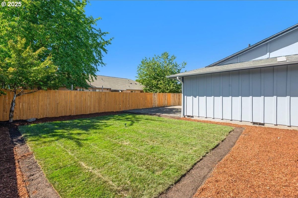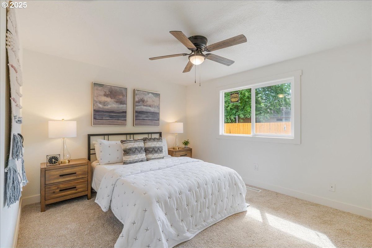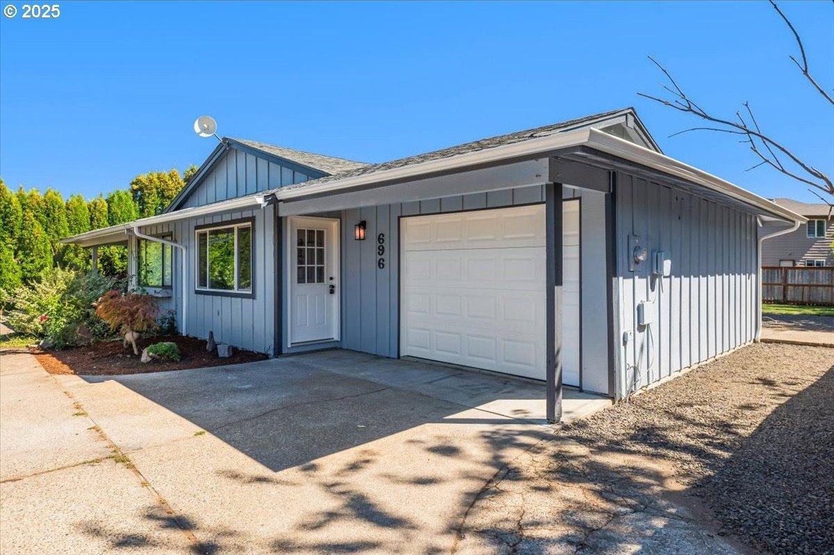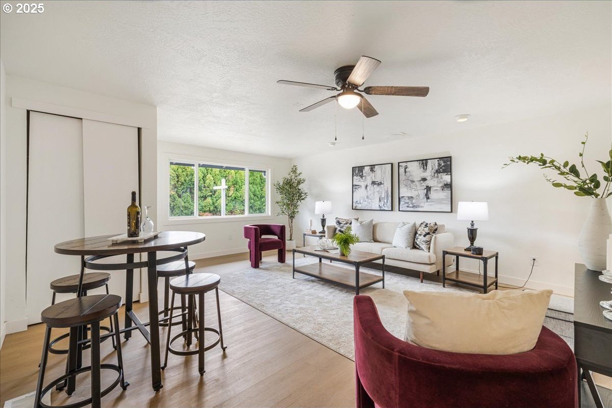 Updated townhouse with tasteful new features near schools, parks and close to Downtown McMinnville. This single-level home has been recently renovated with new LVP flooring, interior and exterior paint, trimwork, carpet, bathrooms, and a beautiful kitchen remodel. The large living area has excellent natural light with ample room for couches, chairs, and gathering. The kitchen boasts quartz countertops, new cabinetry, and a stainless steel appliance package. The rooms are carpeted with ceiling fans and well-sized closets. This townhome is unique due to the half bathroom in the hallway, plus you have a full bath near the bedrooms with new vanities, mirrors, and fixtures. There is additional parking on this lot, with space for small trailers or boats. The backyard is sizeable, and features a large concrete patio, ideal for hosting.