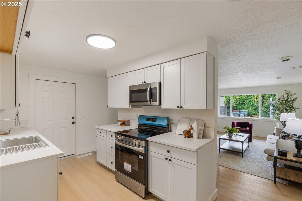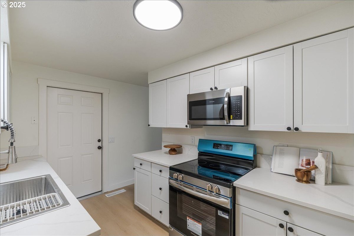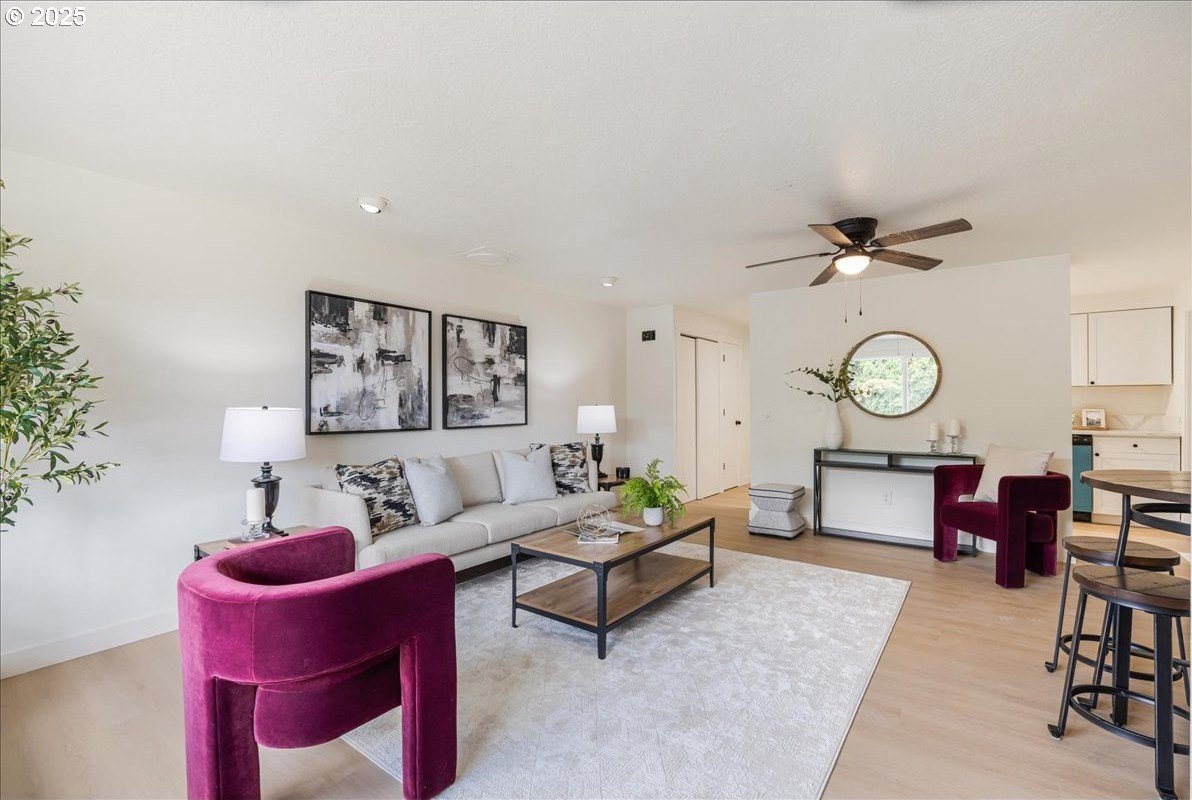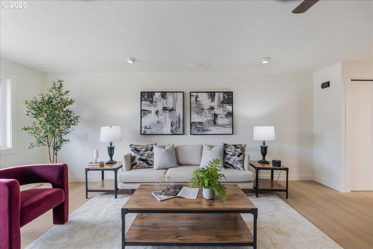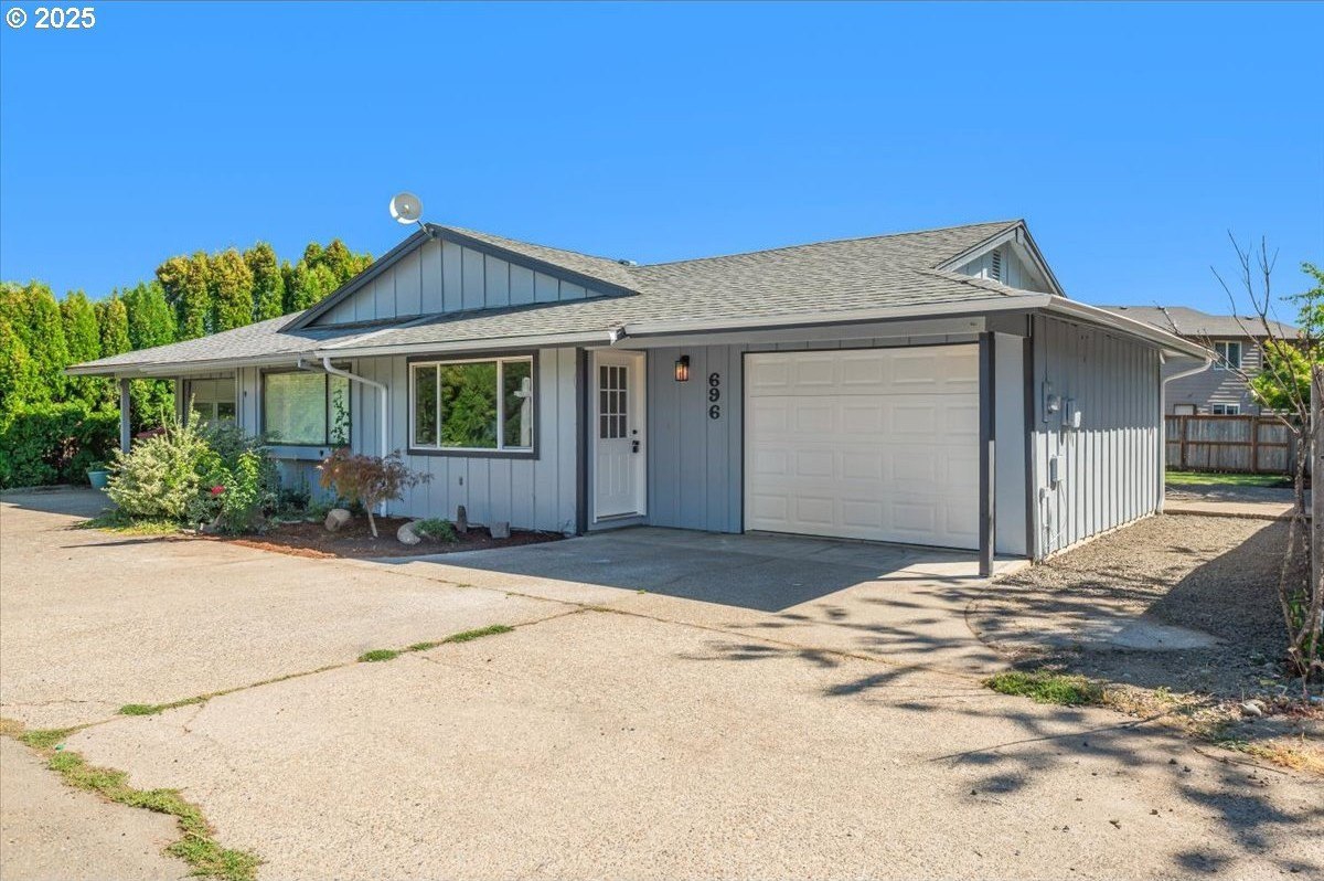 Updated townhouse with tasteful new features near schools, parks and close to Downtown McMinnville. This single-level home has been recently renovated with new LVP flooring, interior and exterior paint, trimwork, carpet, bathrooms, and a beautiful kitchen remodel. The large living area has excellent natural light with ample room for couches, chairs, and gathering. The kitchen boasts quartz countertops, new cabinetry, and a stainless steel appliance package. The rooms are carpeted with ceiling fans and well-sized closets. This townhome is unique due to the half bathroom in the hallway, plus you have a full bath near the bedrooms with new vanities, mirrors, and fixtures. There is additional parking on this lot, with space for small trailers or boats. The backyard is sizeable, and features a large concrete patio, ideal for hosting.