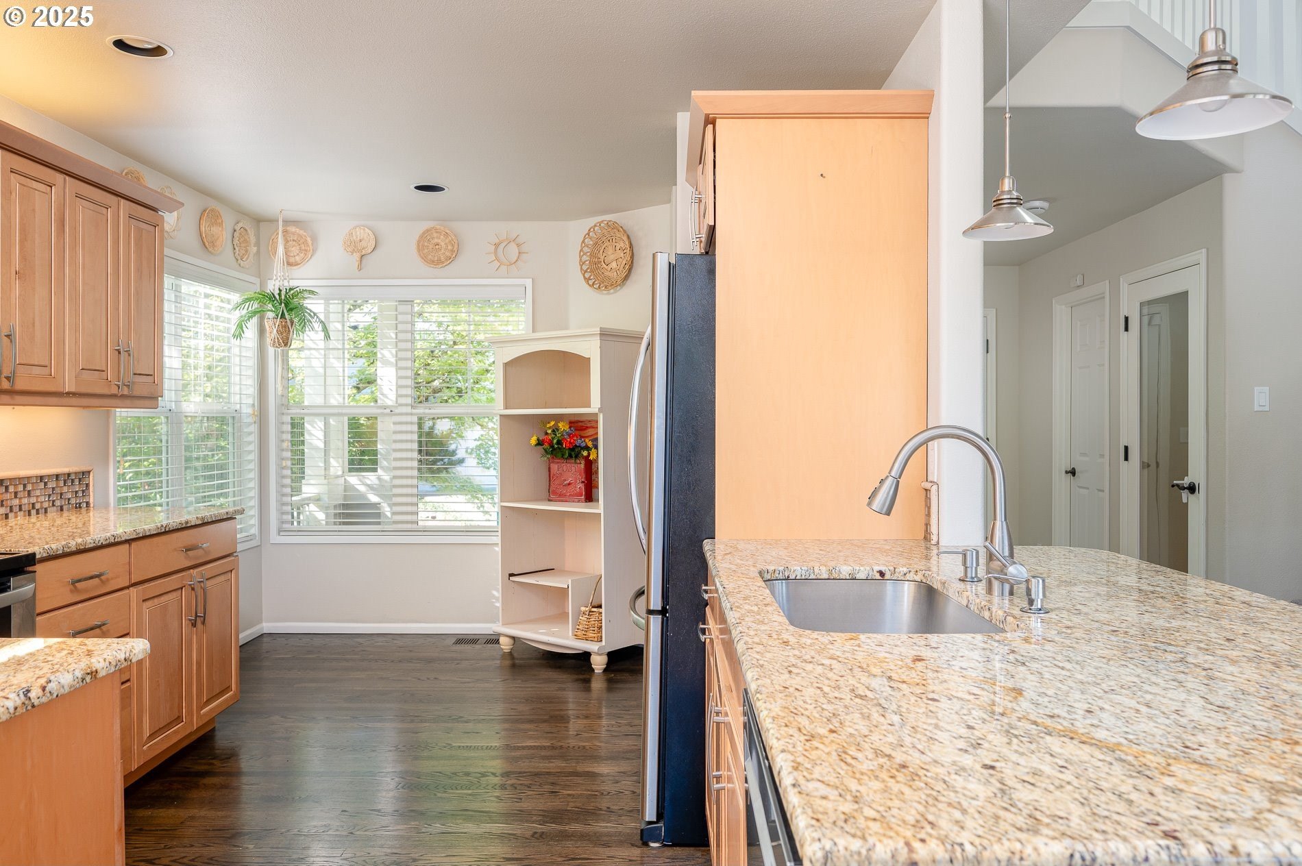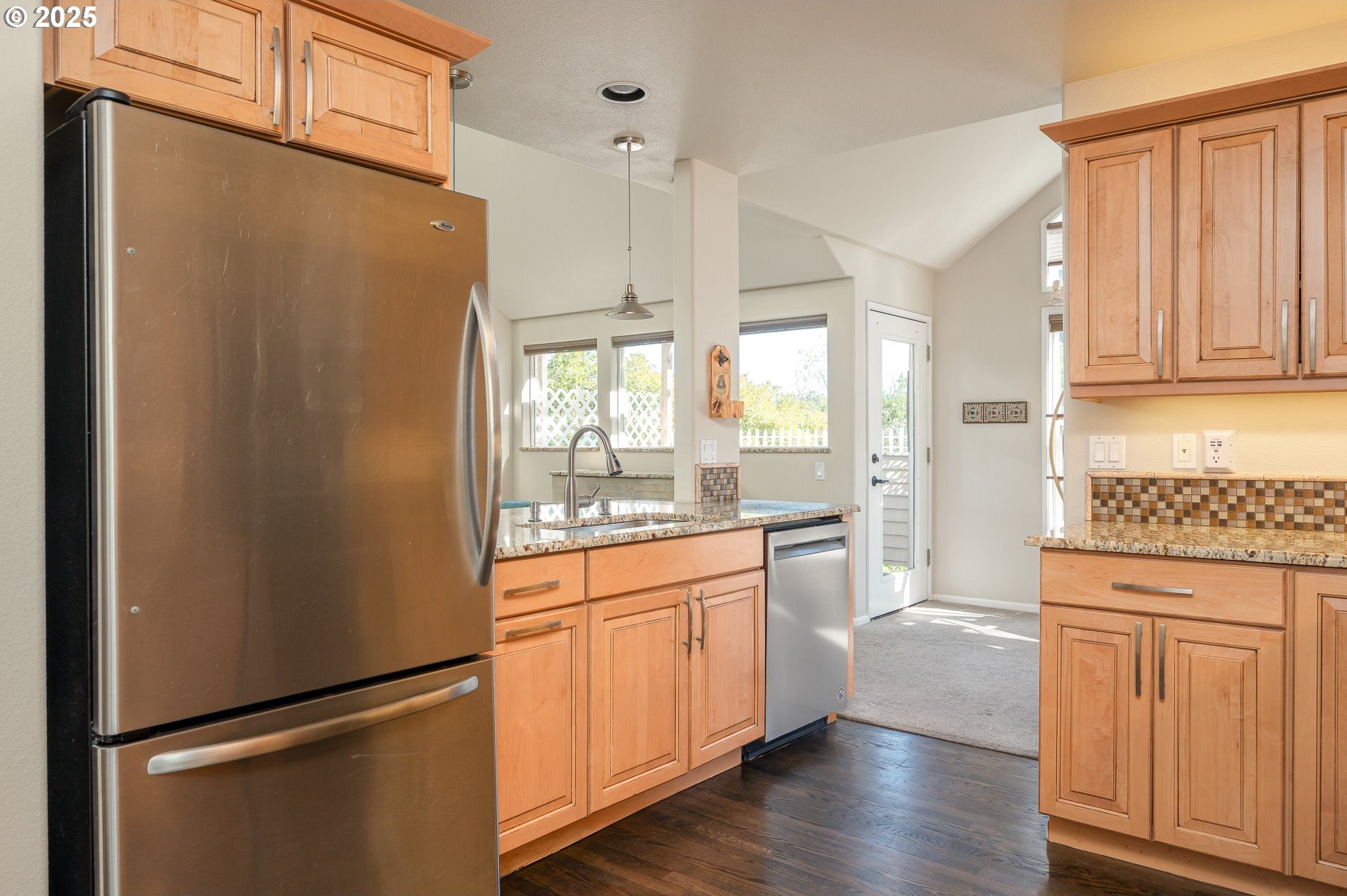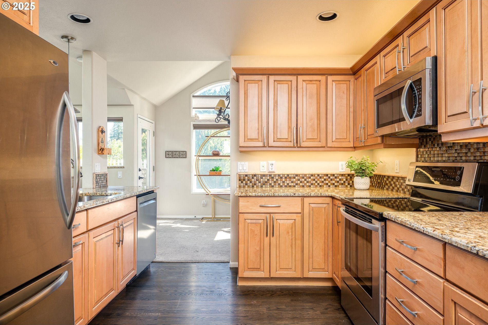 Welcome to this beautiful end-unit townhome in the highly sought-after Murrayhill neighborhood. This home features 4 bedrooms (3 of them suites) and 3-1/2 baths offering the perfect blend of space, comfort, and flexibility for multi-generational living, guests, or those seeking a flexible layout. The great room with vaulted ceilings, skylight above the open staircase, and 3 windows above the fireplace, offering views of trees in the distance, fills the space with light. The beautiful remodeled kitchen with wood cabinets and slab granite countertops, hardwood floors, and breakfast nook flows easily into the dining room and great room – ideal for everyday living or entertaining. Just off the dining room, step out onto the private deck, perfect for enjoying your morning coffee or hosting guests. Upstairs you’ll find two generous primary suites with walk-in closets. A 3rd suite is located on the lower level along with a 4th bedroom featuring a slider out to the covered patio, perfect to enjoy anytime with the new patio heater. The fully fenced backyard includes a back gate, and offers a great space for growing veggies, herbs, or flowers. There is a large storage room on the lower level as well as shelving and ample parking in the 2-car attached garage. Recent updates include a new furnace, upgraded thermostat, central air, and new blinds in GR and DR in 2021. Murrayhill Rec Center offers 3 swim pools, hot tub, tennis and pickleball courts, basketball court, t-ball field and picnic areas. This home combines the space of a single-family residence with the convenience of townhome living, all set in a highly desirable location with easy access to shopping, restaurants and more!