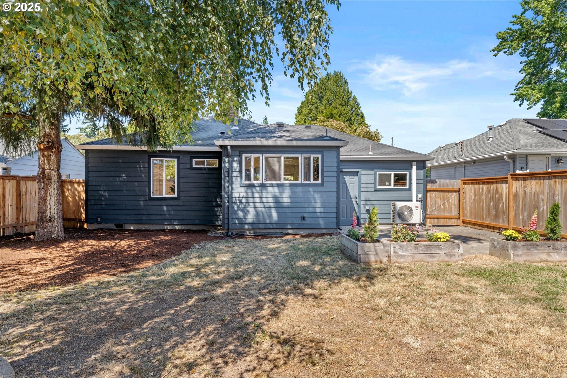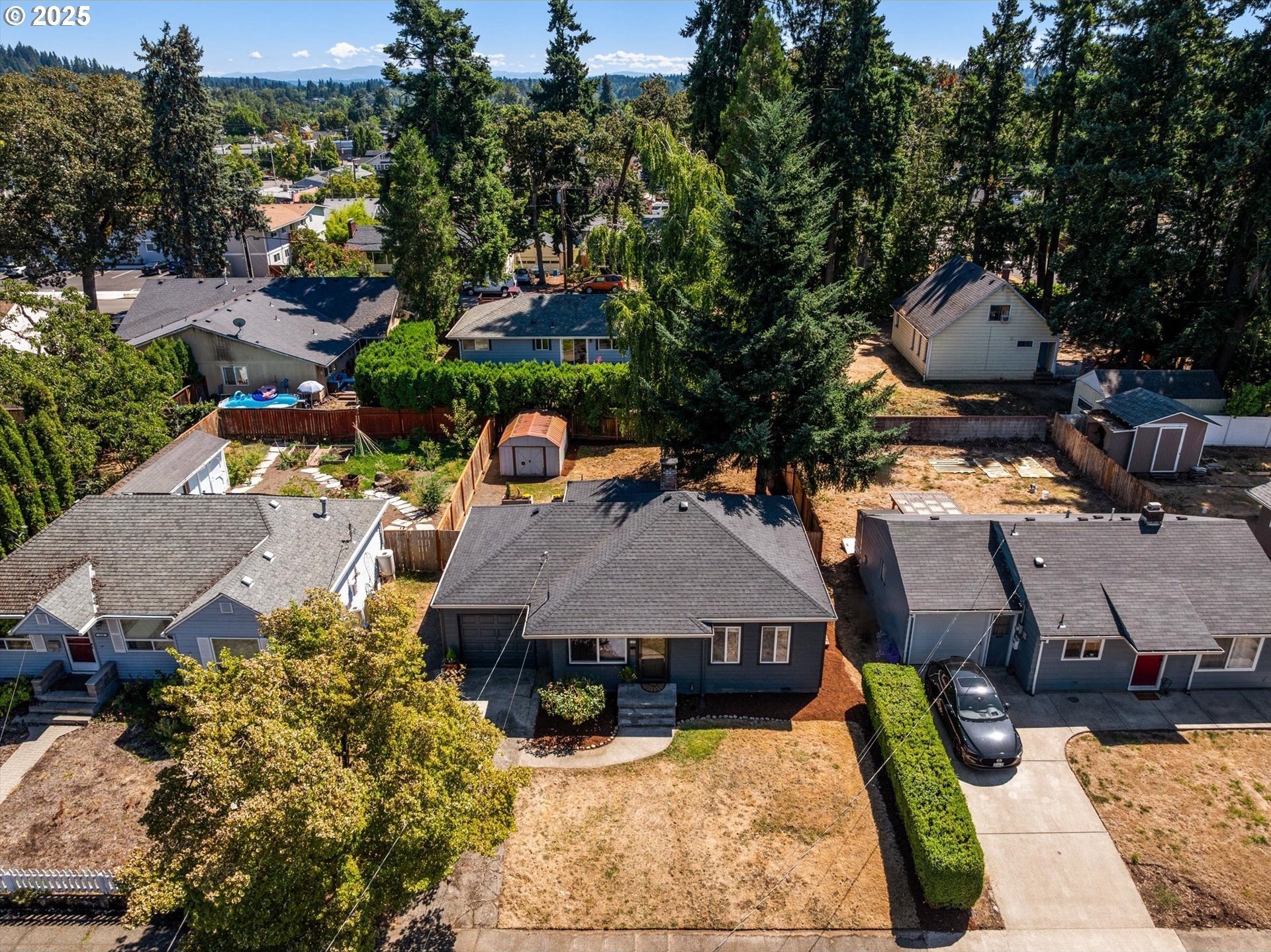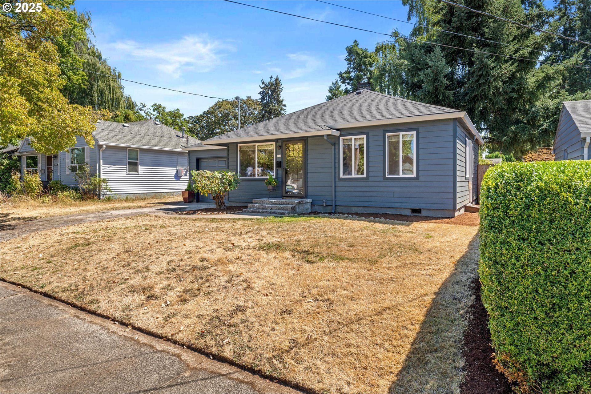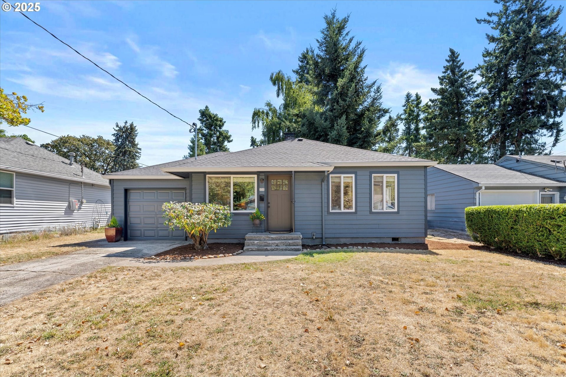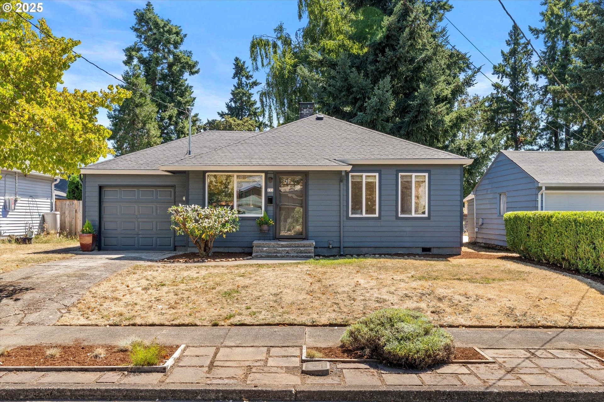 Step into this simply adorable mid-century ranch, full of character and modern updates. Whether you're just starting out or looking to downsize in style, this bright and cheerful home offers comfort, space, and unbeatable convenience. Inside, you'll find original hardwood floors, generously sized rooms, and a large kitchen with abundant counter space—ideal for cooking, entertaining, or simply enjoying your morning coffee in the sun-filled space. Natural light pours in throughout the home, creating a warm, inviting atmosphere year-round. Major updates have already been done for you: new roof, gutters, siding, exterior paint, and a brand-new back patio perfect for relaxing or hosting friends. Newer mini-splits keep the home comfortable in any season. Enjoy the outdoors in the spacious backyard featuring raised garden beds, a large shed, and newer fencing on both sides. There’s even garage space for your tools or toys. Set in a walkable, friendly neighborhood near parks, schools, the river, and great local dining spots. Nestled right between I-205 and 99E, this home makes commuting a breeze. You’re just minutes from where the Clackamas and Willamette Rivers meet, and a stone’s throw from historic downtown Oregon City.