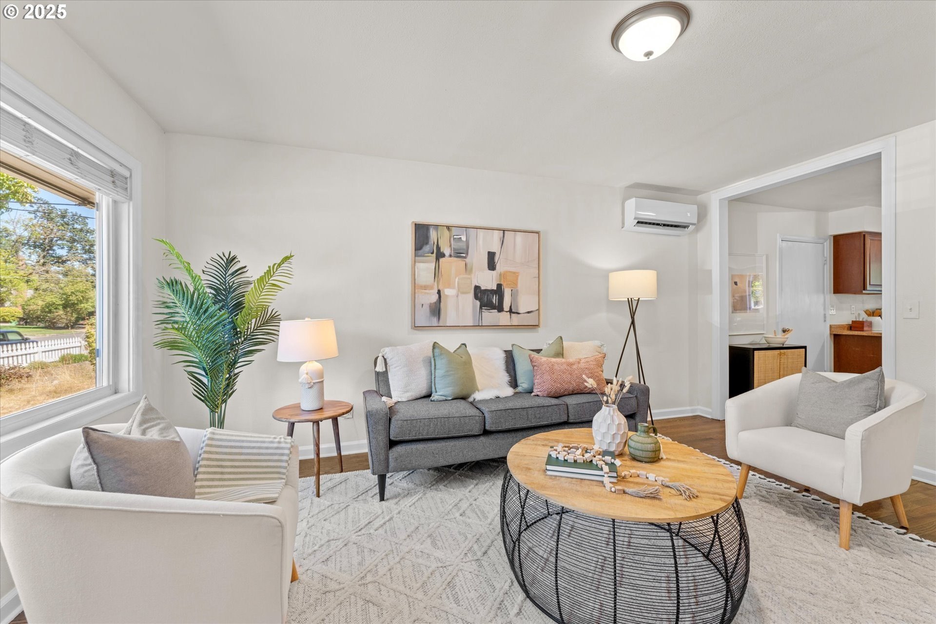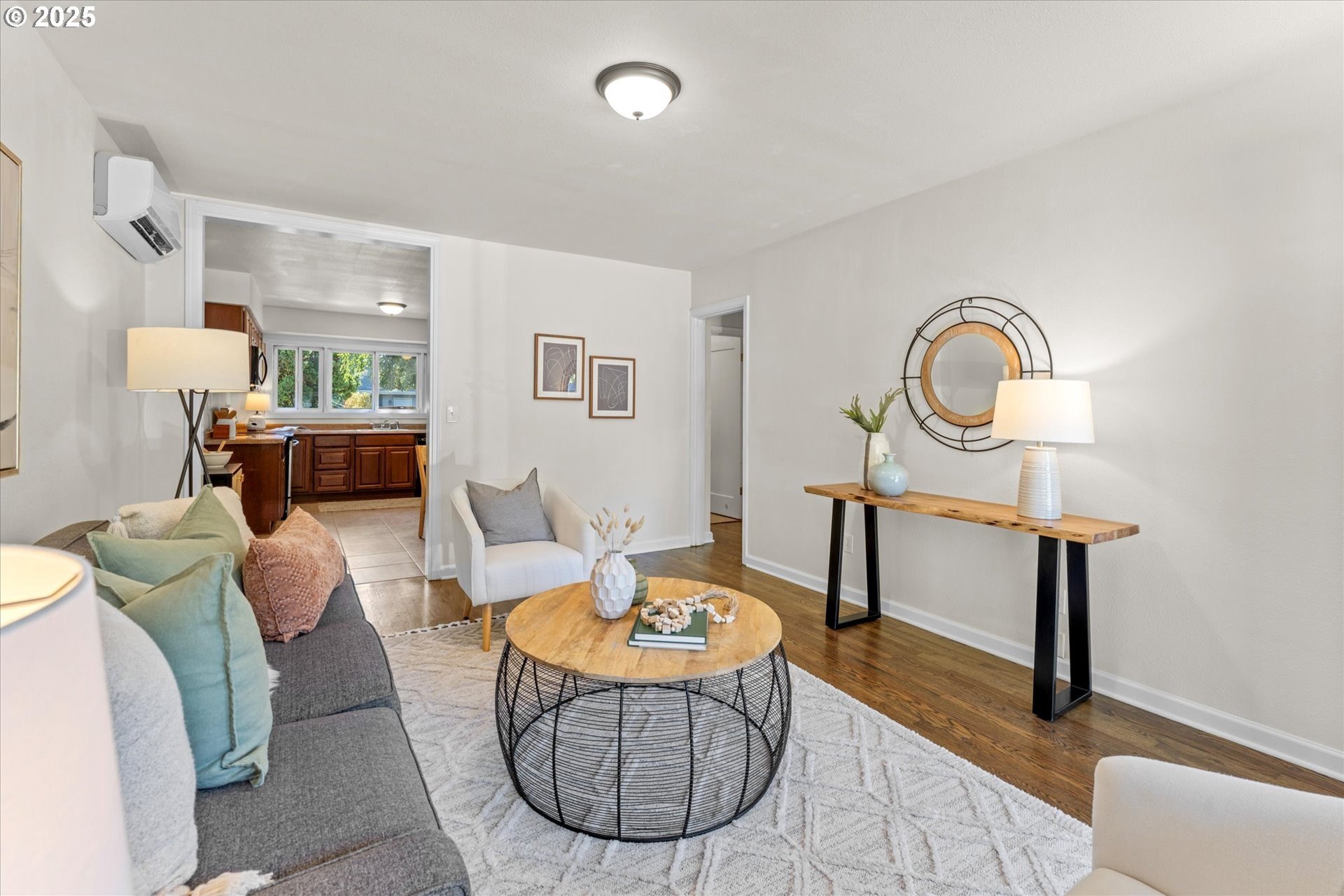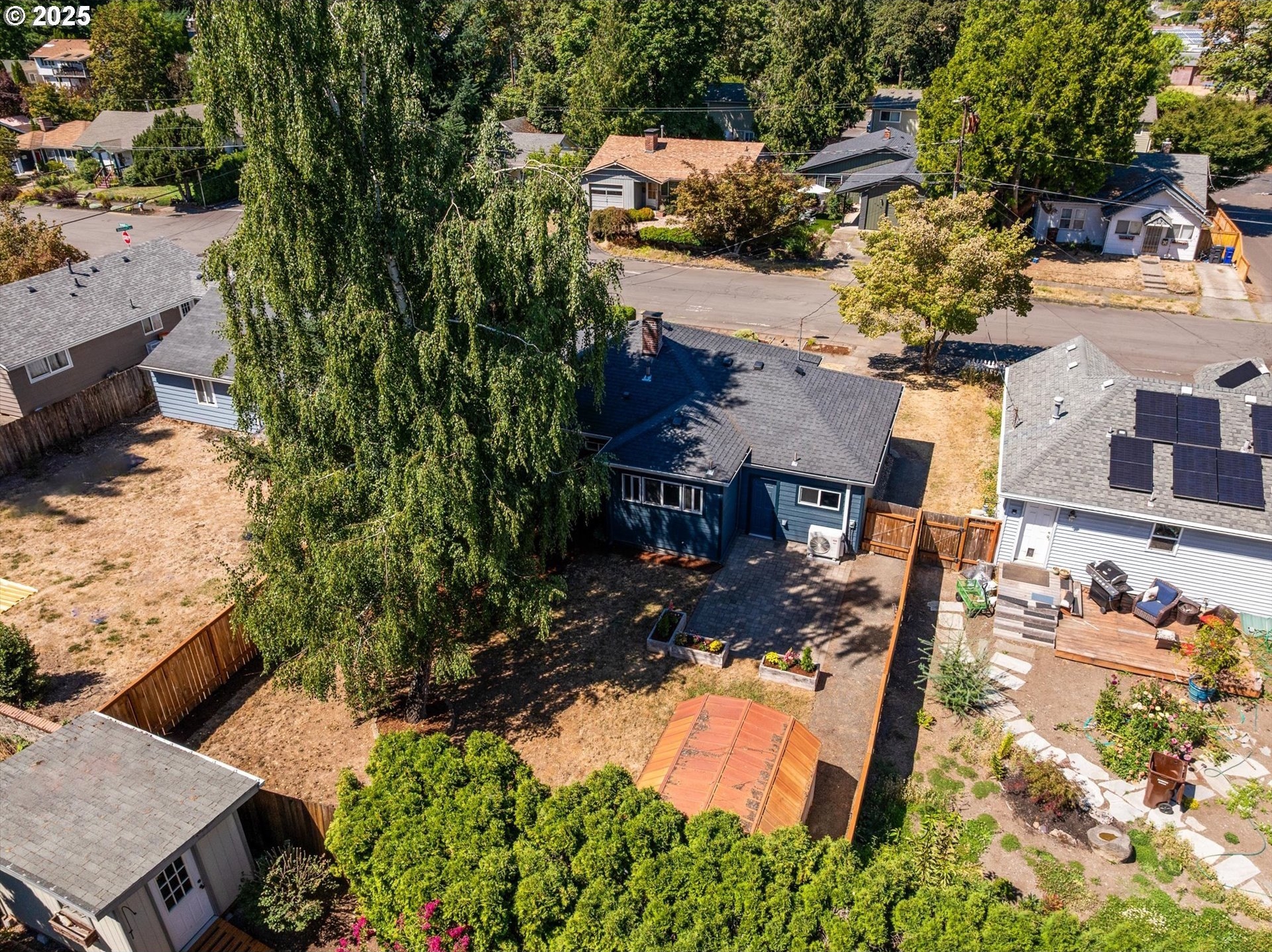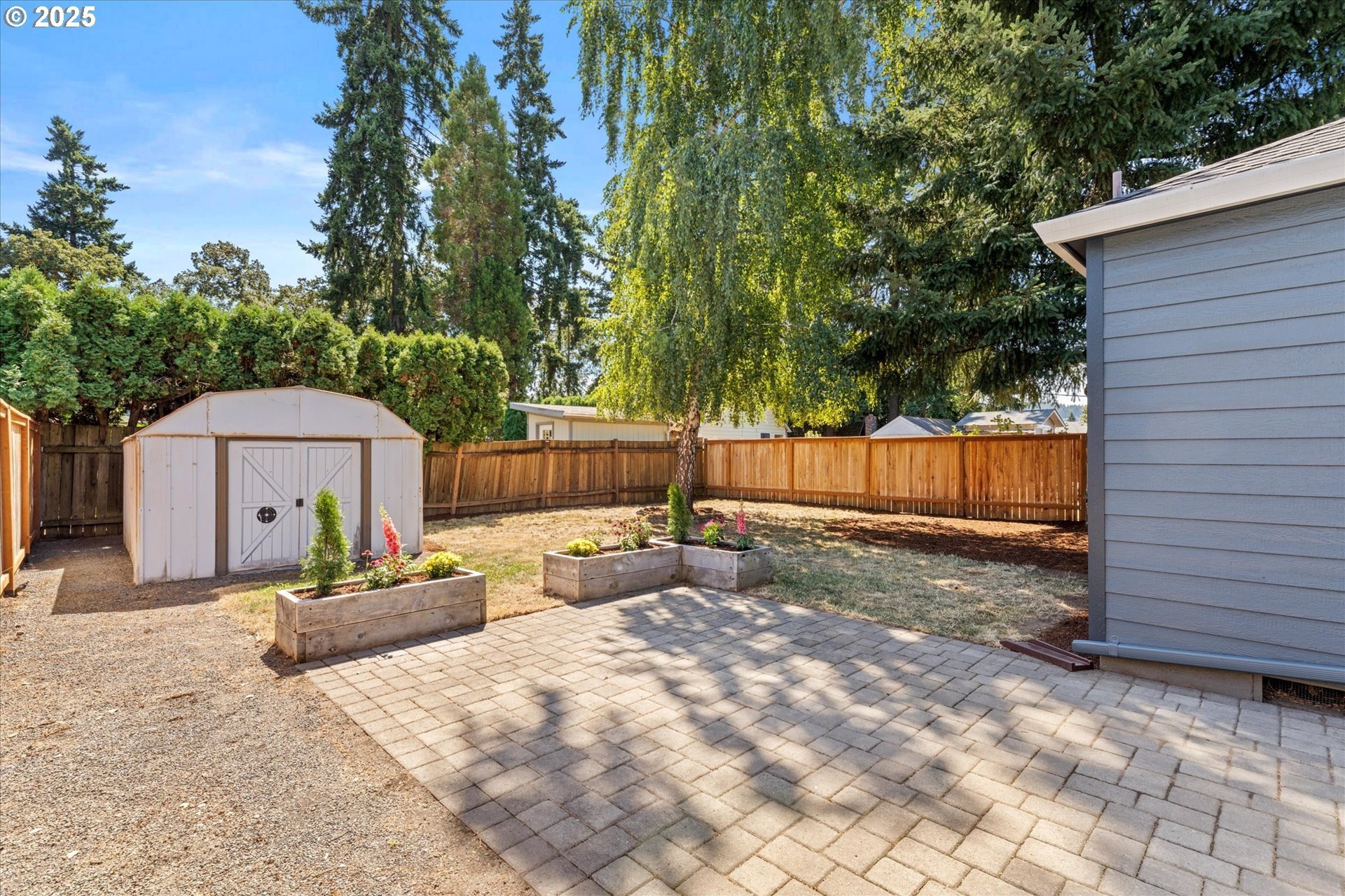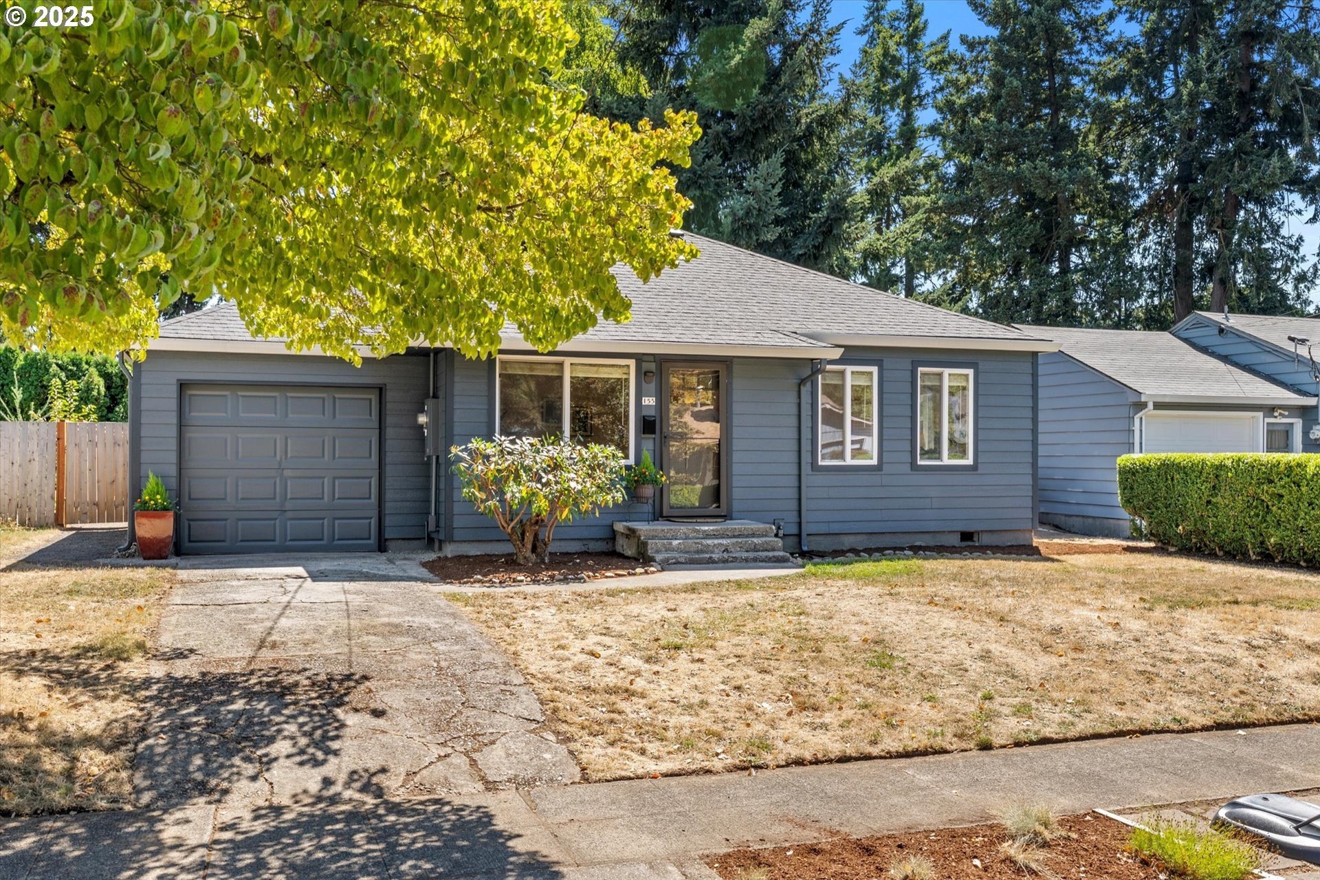Step into this simply adorable mid-century ranch, full of character and modern updates. Whether you're just starting out or looking to downsize in style, this bright and cheerful home offers comfort, space, and unbeatable convenience. Inside, you'll find original hardwood floors, generously sized rooms, and a large kitchen with abundant counter space—ideal for cooking, entertaining, or simply enjoying your morning coffee in the sun-filled space. Natural light pours in throughout the home, creating a warm, inviting atmosphere year-round. Major updates have already been done for you: new roof, gutters, siding, exterior paint, and a brand-new back patio perfect for relaxing or hosting friends. Newer mini-splits keep the home comfortable in any season. Enjoy the outdoors in the spacious backyard featuring raised garden beds, a large shed, and newer fencing on both sides. There’s even garage space for your tools or toys. Set in a walkable, friendly neighborhood near parks, schools, the river, and great local dining spots. Nestled right between I-205 and 99E, this home makes commuting a breeze. You’re just minutes from where the Clackamas and Willamette Rivers meet, and a stone’s throw from historic downtown Oregon City.
