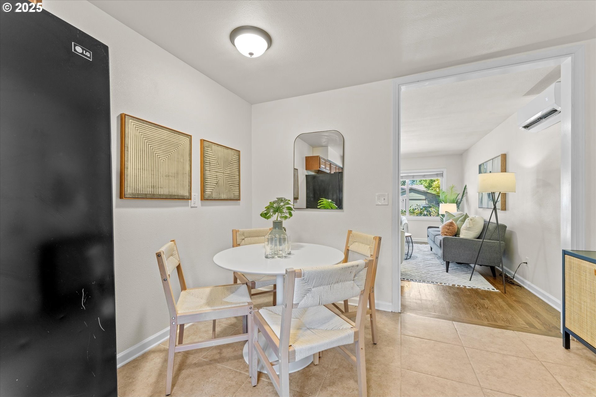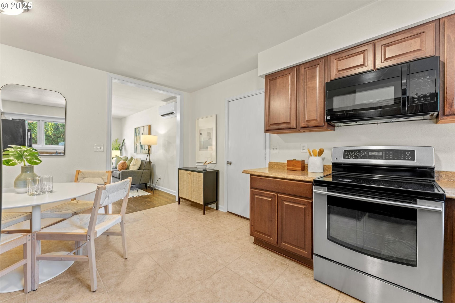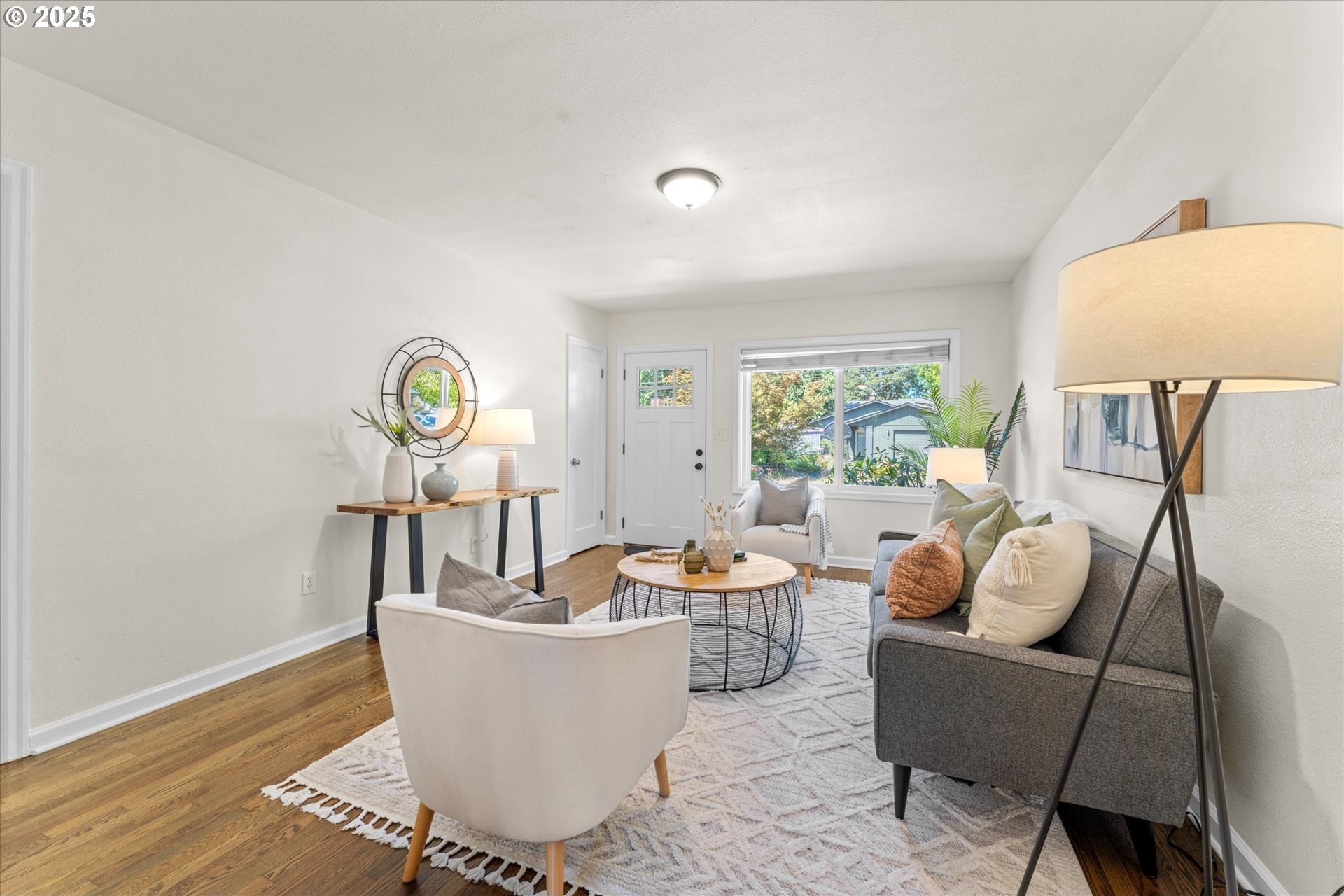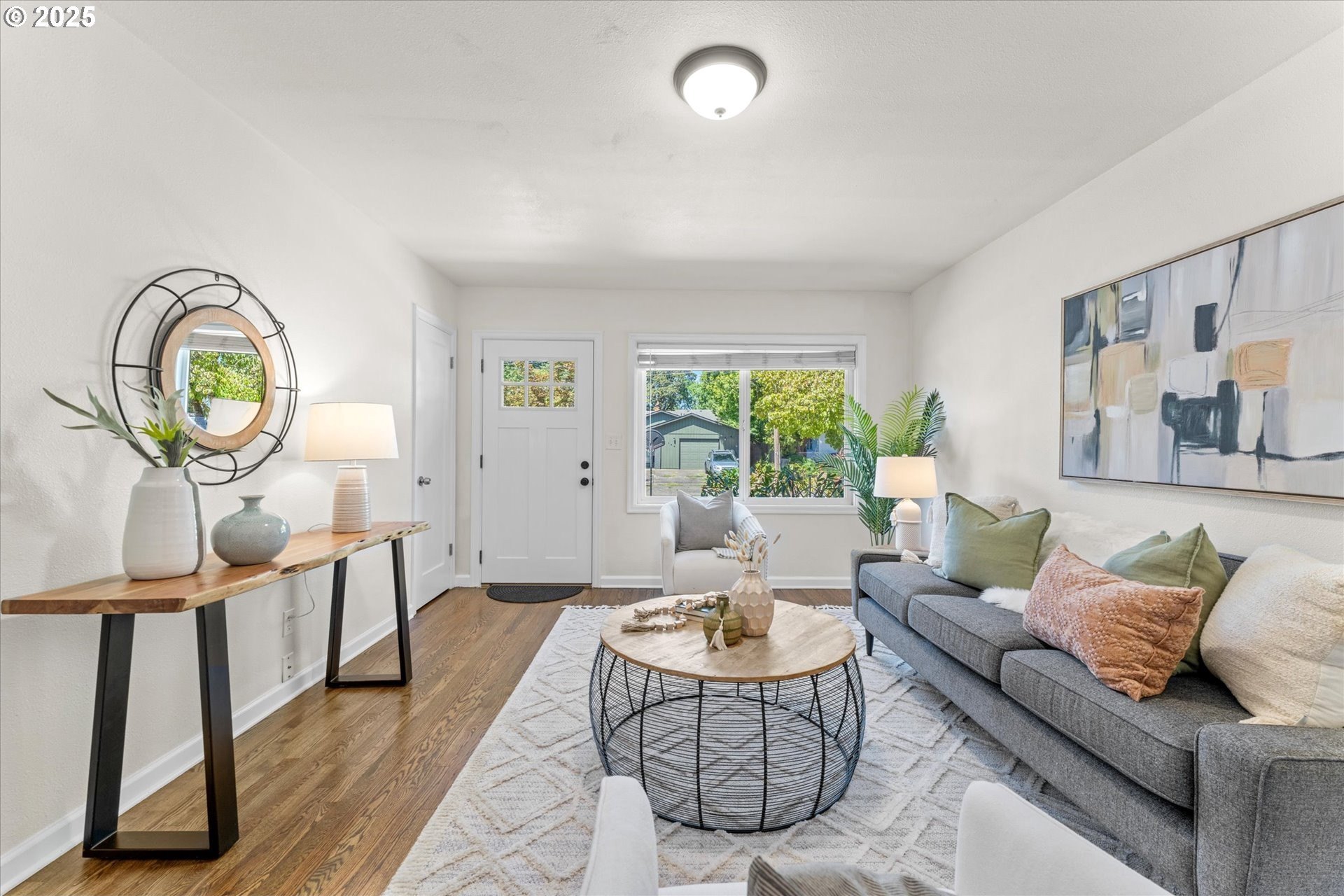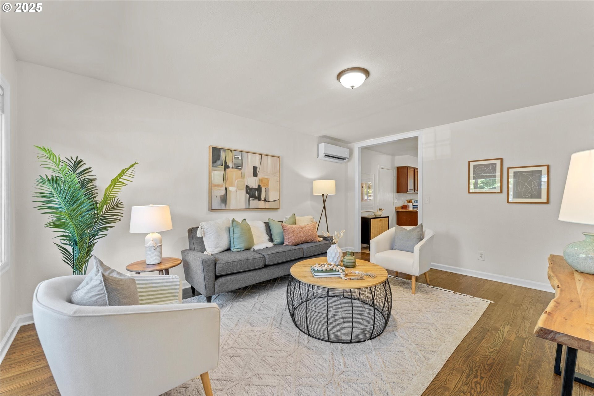 Step into this simply adorable mid-century ranch, full of character and modern updates. Whether you're just starting out or looking to downsize in style, this bright and cheerful home offers comfort, space, and unbeatable convenience. Inside, you'll find original hardwood floors, generously sized rooms, and a large kitchen with abundant counter space—ideal for cooking, entertaining, or simply enjoying your morning coffee in the sun-filled space. Natural light pours in throughout the home, creating a warm, inviting atmosphere year-round. Major updates have already been done for you: new roof, gutters, siding, exterior paint, and a brand-new back patio perfect for relaxing or hosting friends. Newer mini-splits keep the home comfortable in any season. Enjoy the outdoors in the spacious backyard featuring raised garden beds, a large shed, and newer fencing on both sides. There’s even garage space for your tools or toys. Set in a walkable, friendly neighborhood near parks, schools, the river, and great local dining spots. Nestled right between I-205 and 99E, this home makes commuting a breeze. You’re just minutes from where the Clackamas and Willamette Rivers meet, and a stone’s throw from historic downtown Oregon City.