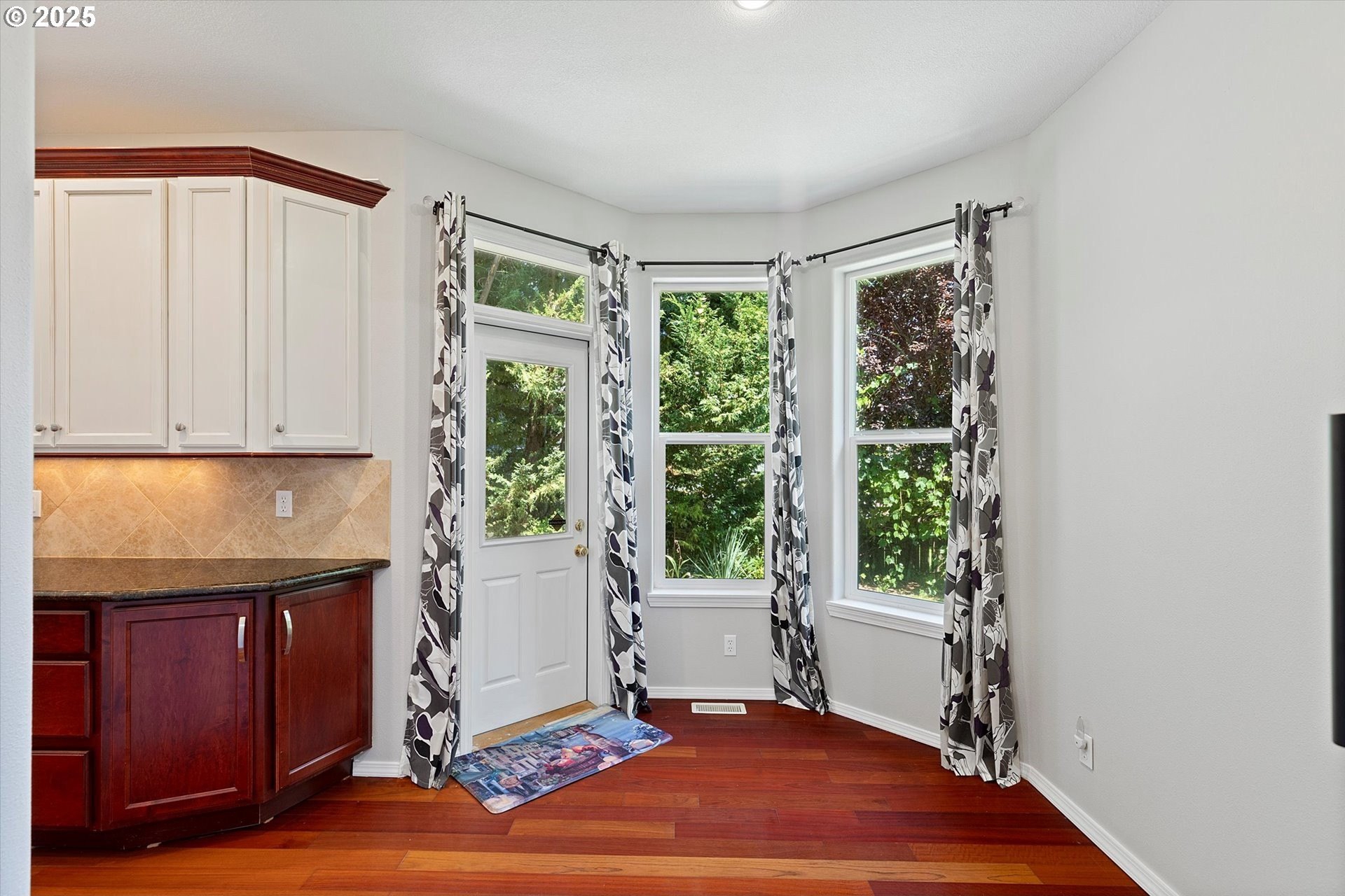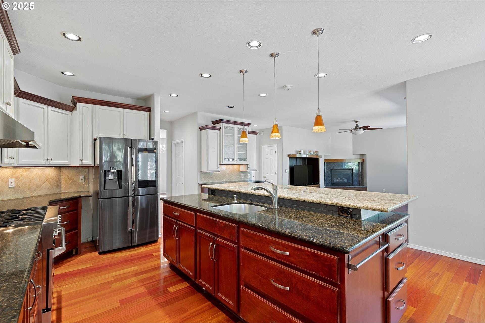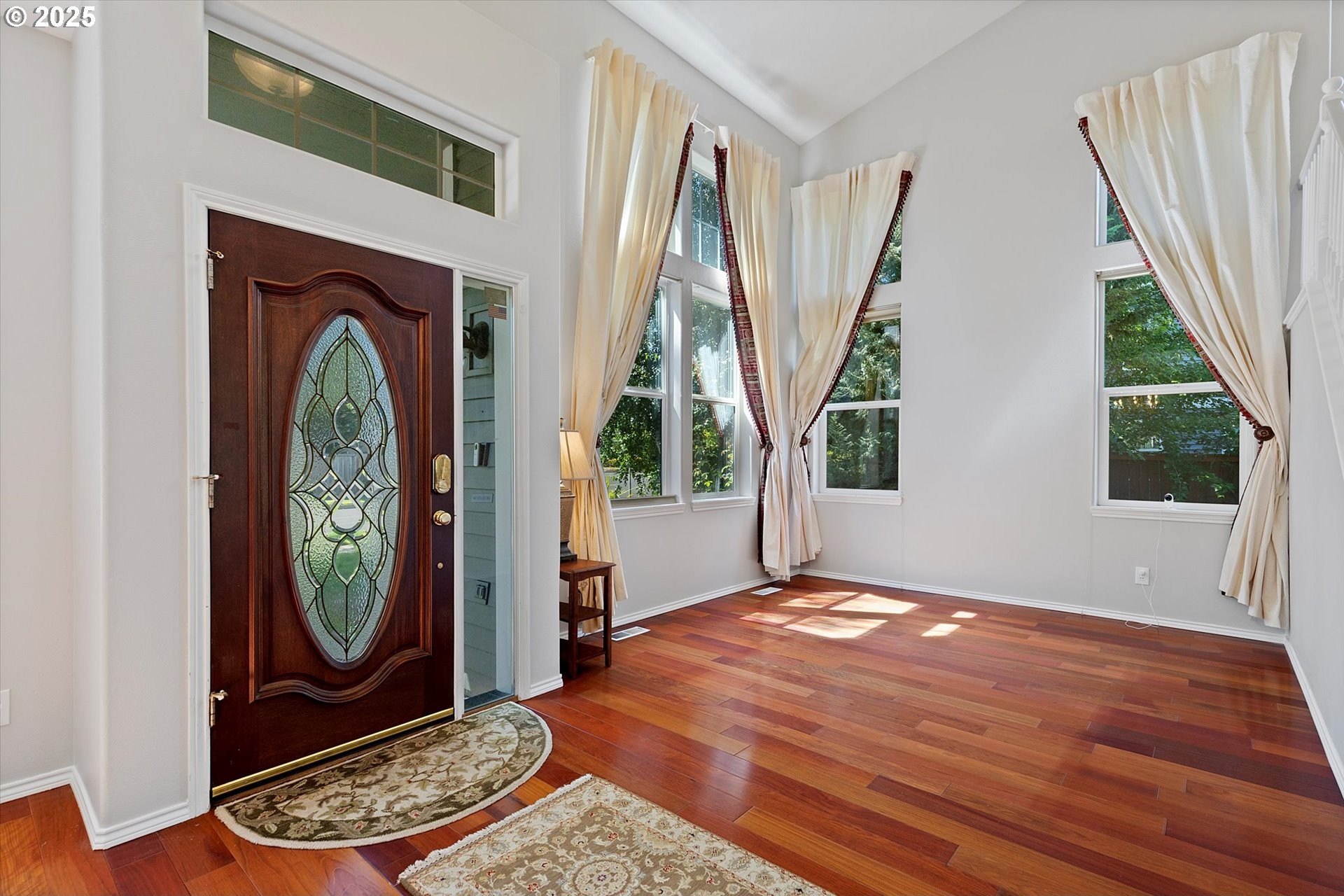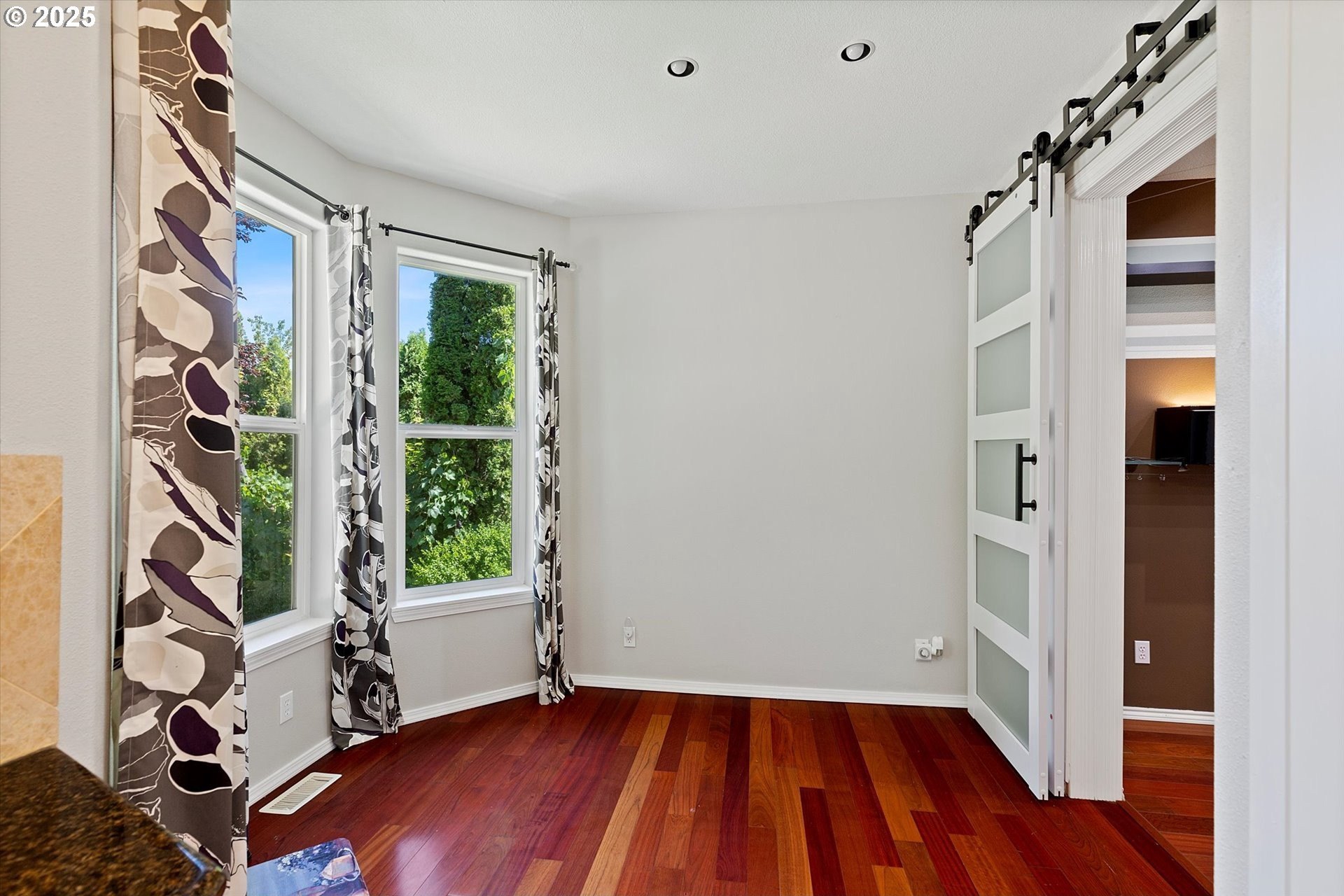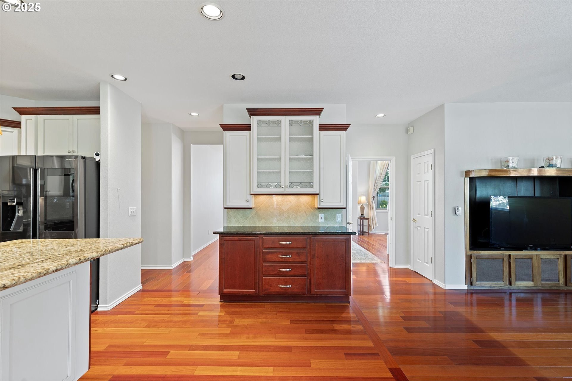 This beautifully updated 2,943 sq. ft. home in the sought-after Jones Farm neighborhood offers five bedrooms and 3.5 bathrooms, providing exceptional space and flexibility for comfortable living and entertaining. The upgraded mahogany entry door with decorative glass sets the tone as you step into the main level, which features solid ¾-inch Brazilian Cherry hardwood floors throughout the living areas. A spacious living room centers around a custom granite slab fireplace hearth and opens to a gourmet kitchen fully remodeled in 2009, complete with tall custom cabinetry, granite countertops, marble backsplash, a 36” professional range with stainless hood, two dishwashers, two sinks, a large pantry, and a charming bay-style breakfast nook. The thoughtful floor plan includes a main-level bedroom with a full bath, along with a remodeled powder room featuring a quartz vanity, glass vessel sink, and walls finished in travertine and Venetian plaster. Upstairs, the primary suite includes a walk-in closet and updated en-suite with quartz vanity, while four additional bedrooms provide versatility for family, guests, or office use. Backyard access from both the living room/kitchen and the breakfast nook creates easy indoor-outdoor living, with the private yard offering room to entertain, relax, or play. Recent updates ensure peace of mind and value, including an exterior repaint in 2023, new roof and water heater in June 2025, new gas furnace in July 2025, new carpet on the second level and stairs in June 2025, and fresh interior paint on most walls in July 2025. Ideally located close to schools, parks, shopping, and major commuting routes, this home combines timeless craftsmanship, thoughtful updates, and modern convenience in one of the area’s most desirable neighborhoods.