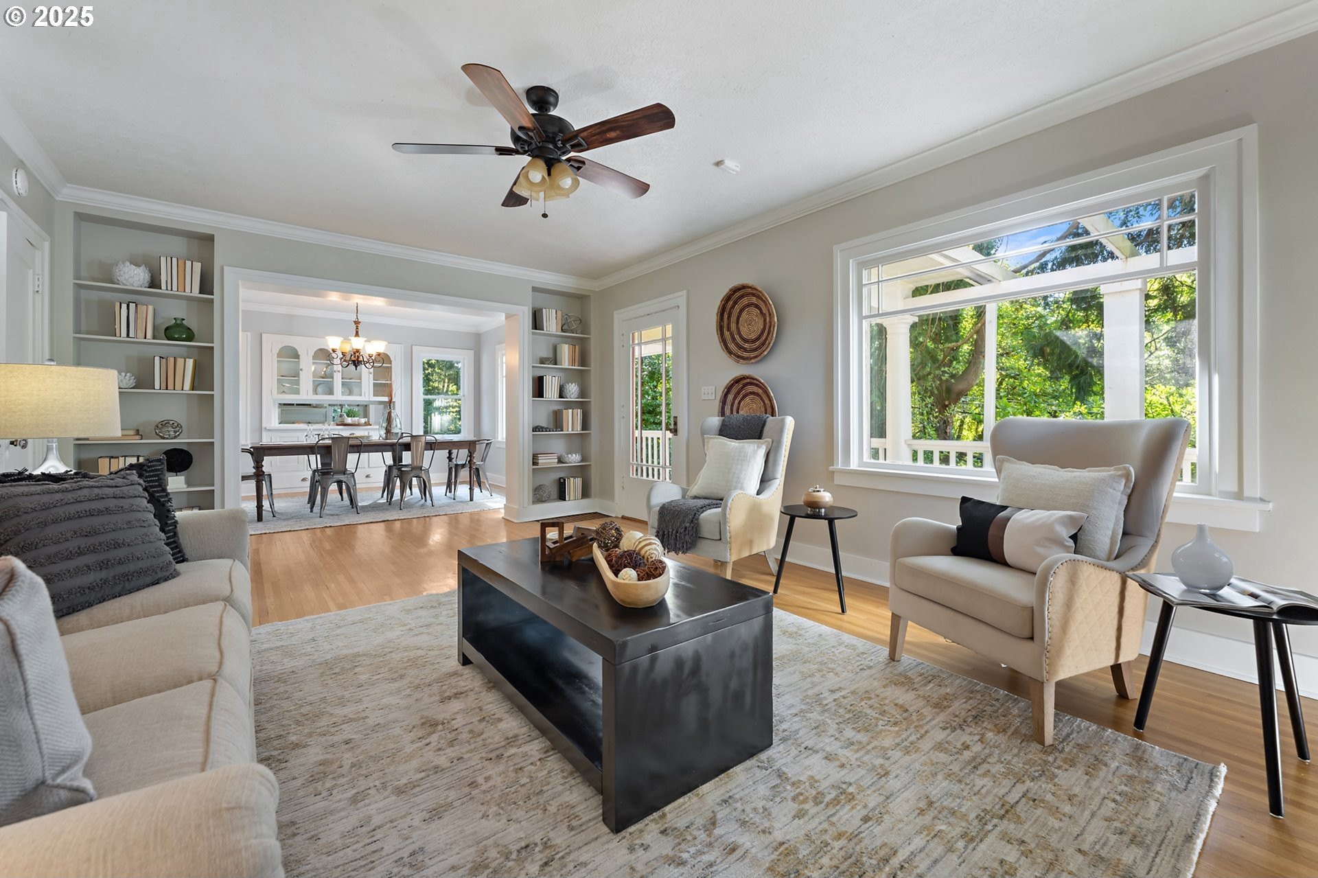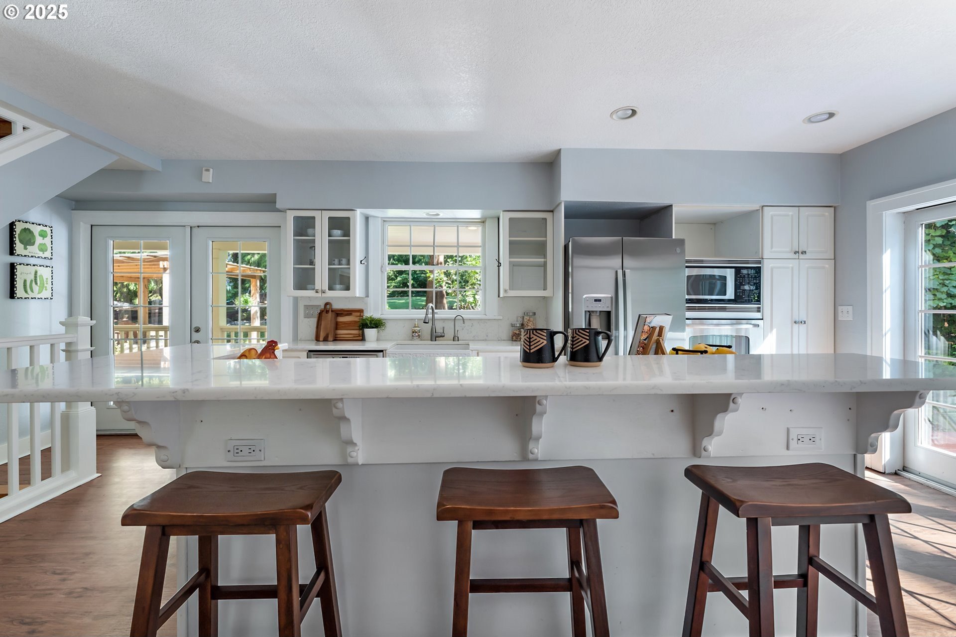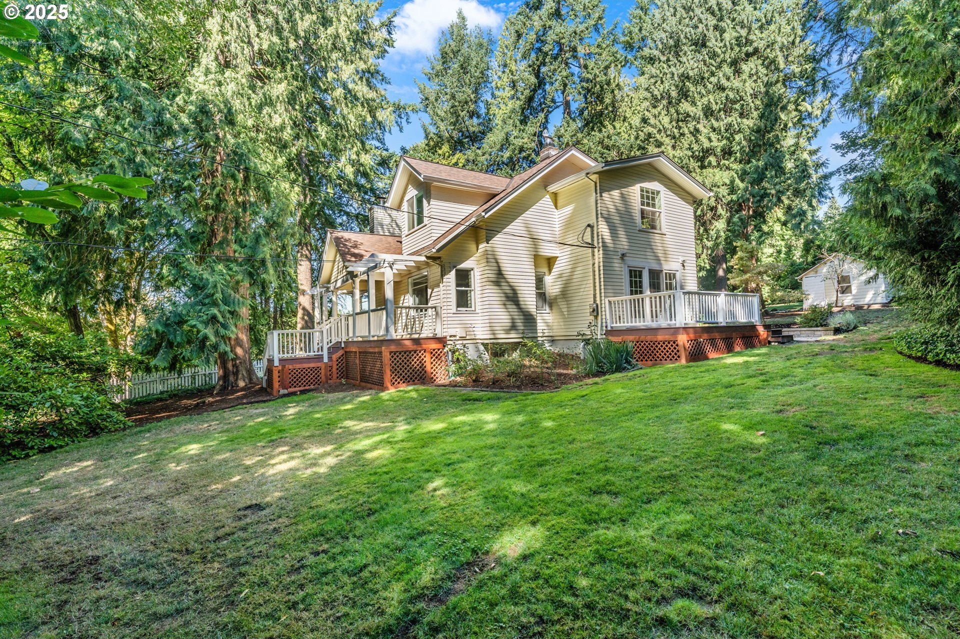 This 1928 Farmhouse delivers a bevy of comforts, tranquility and features galore! Imagine living in your own park (0.68 acres) with picturesque beauty to behold from every vantage point... NOW schedule your in-person viewing of this amazing property and come see for yourself what exceptional living feels like. This home sets a high bar for lifestyle with truly too many features to mention: generous 3,072 sqft layout over 3 floors, Brand New 30 year comp roof, hardwood floors, built-ins, 4 bedrooms, 3 full bathrooms, sun deck(s) & covered porches with durable low maintenance composite decking, covered firepit, SS appliances, gas cooktop in kitchen island, skylight in primary, large primary bathroom with shower & soaking tub, loads of storage space, wood burning fireplace, ceiling fan in living room, dual sinks in 2nd upper bathroom, air conditioning, high efficiency furnace. The detached outbuilding(s) provide additional charm to the yard while offering functionality too. [Home Energy Score = 3. HES Report at https://rpt.greenbuildingregistry.com/hes/OR10241383]
