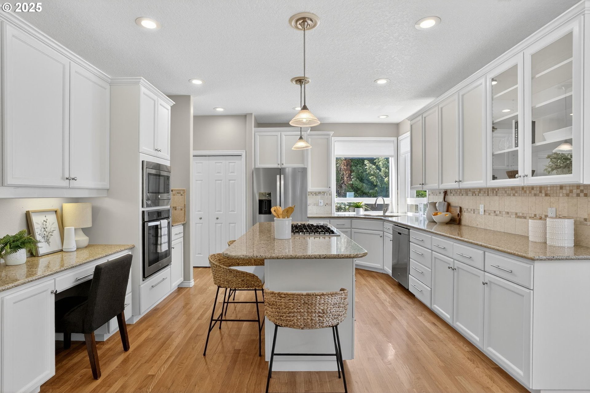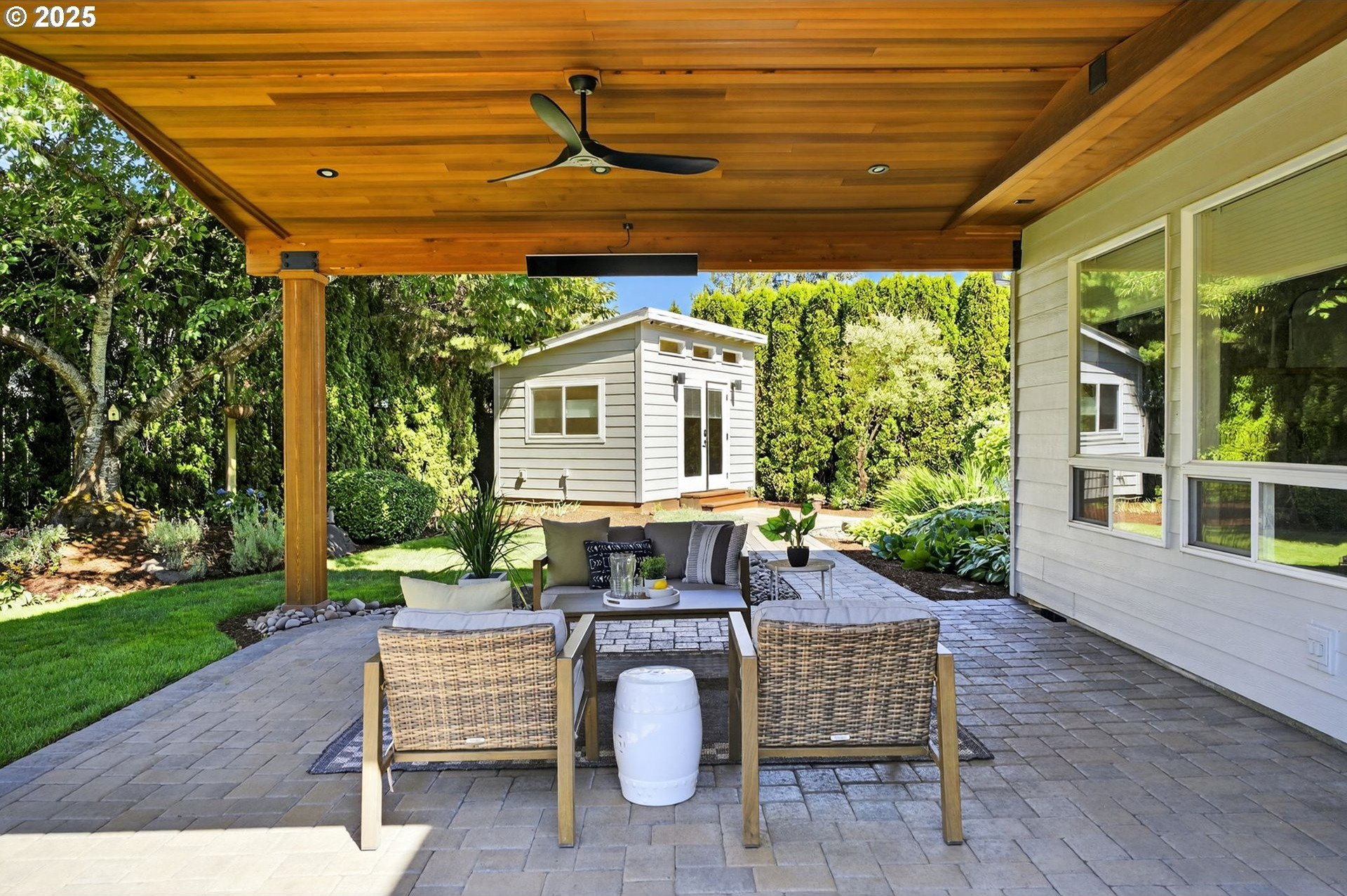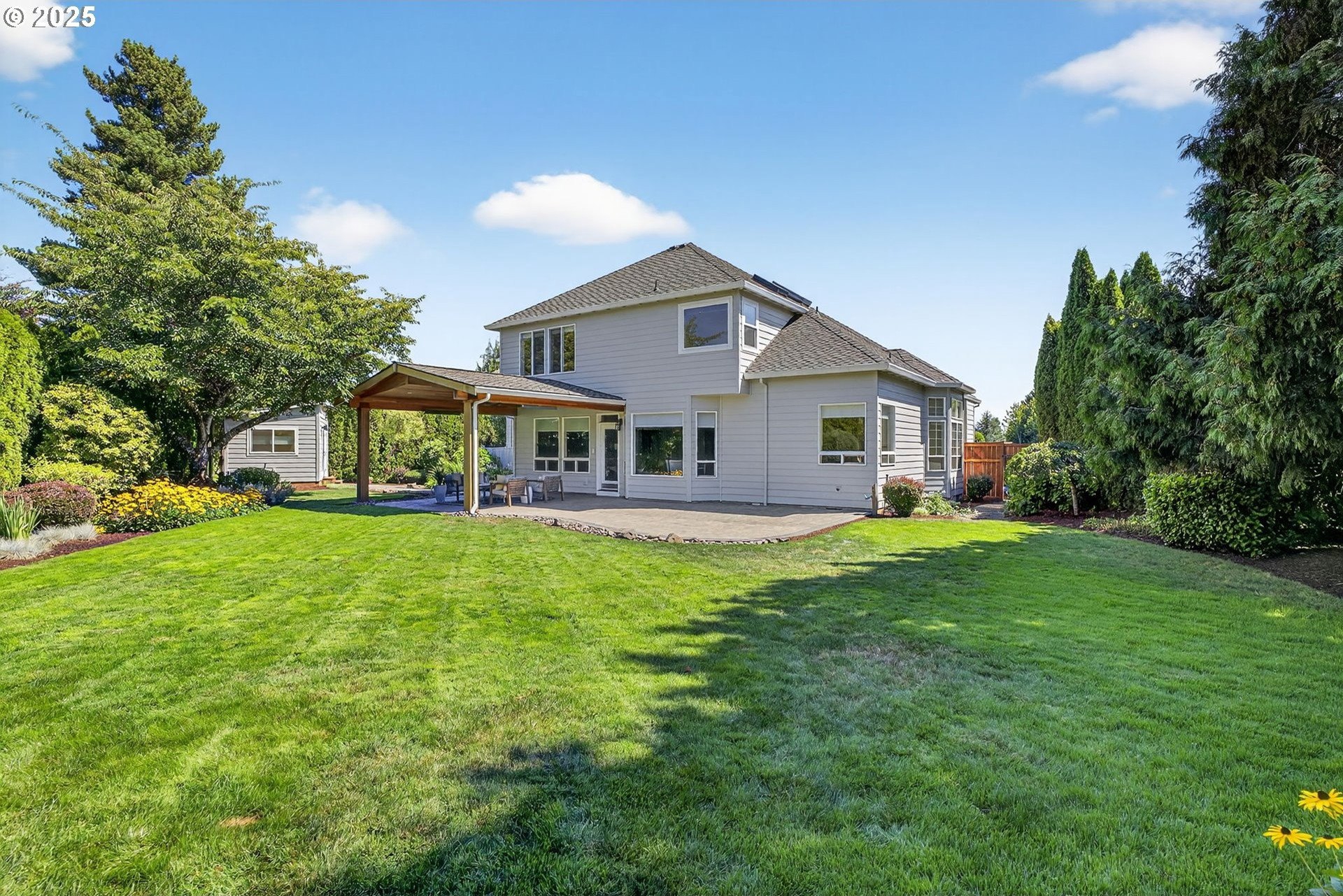 Beautifully maintained home on a quiet cul-de-sac perched on top of the coveted Bull Mountain. Timeless comfort and modern elegance throughout. Over $125k in recent upgrades/updates. Soaring vaulted ceilings with natural light in grand formal living room. Main floor bedroom with closet and access to full bathroom, could also serve as an office. Large kitchen with island opens to family room and views of private, expansive backyard on a flat .28 acre lot. Raised garden beds & storage shed. Custom built covered patio with tongue and groove cedar, built-in heating, and cooling ceiling fan for all year round comfort and utility. Detached office/studio with 140 square feet of flex space. Cat5 ethernet connection, a dedicated outlet, and climate controlled mini split. Upstairs boasts a large primary suite with spa-like bathroom, two additional bedrooms and a large bonus room. Newer presidential roof installed approx 2017/2018, along with other system updates make this home move-in ready. *Ask for a list of full updates and info* Welcome home!