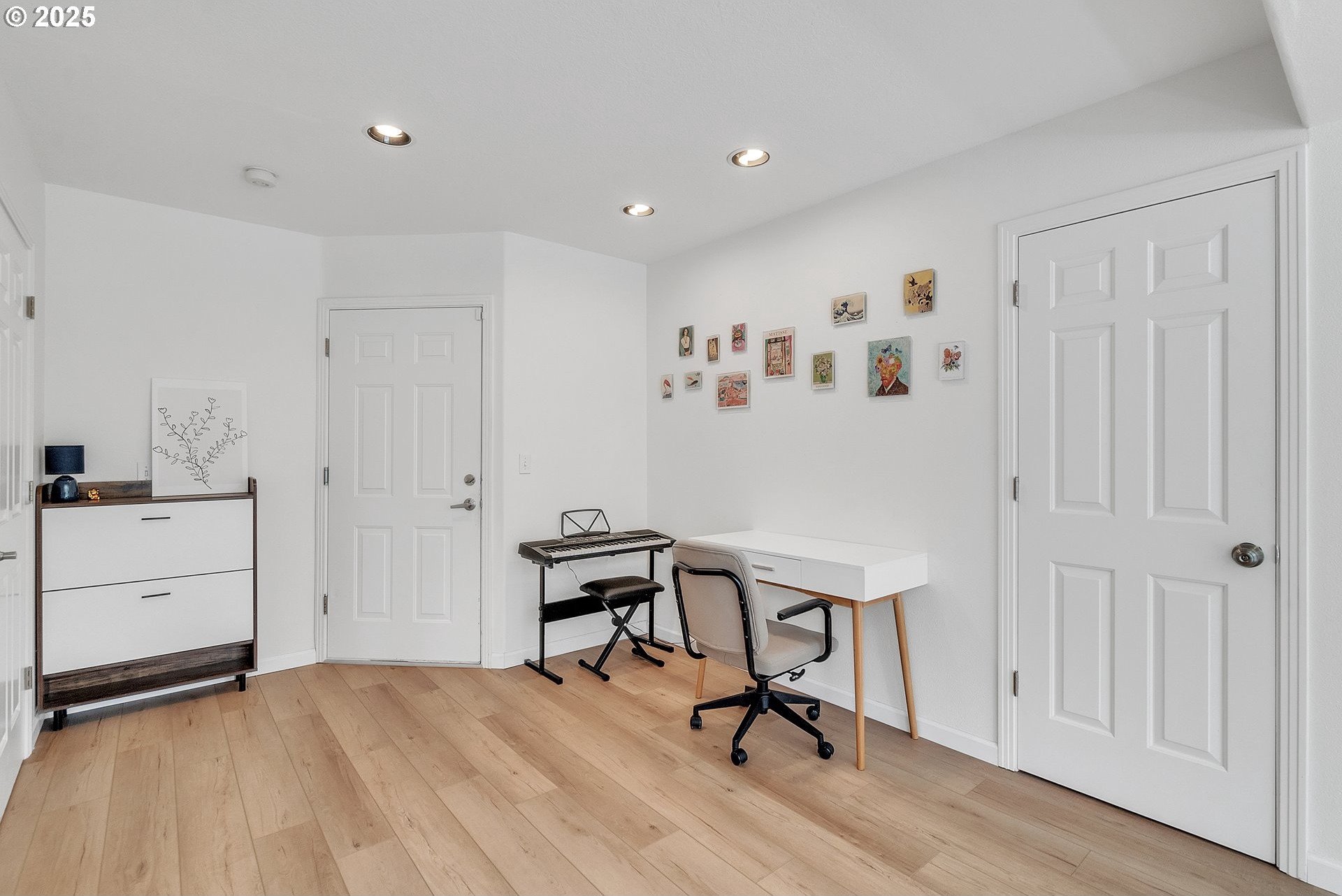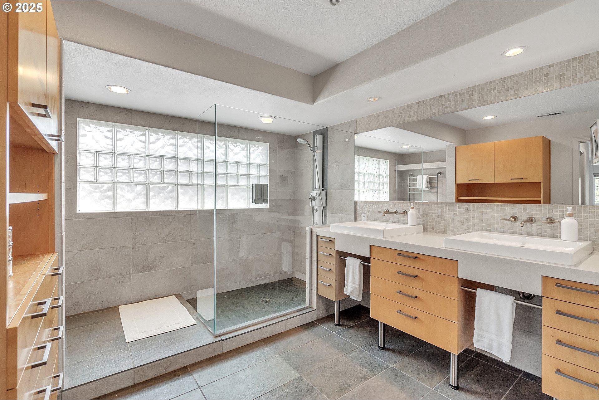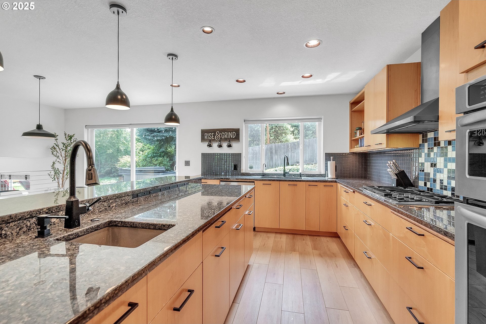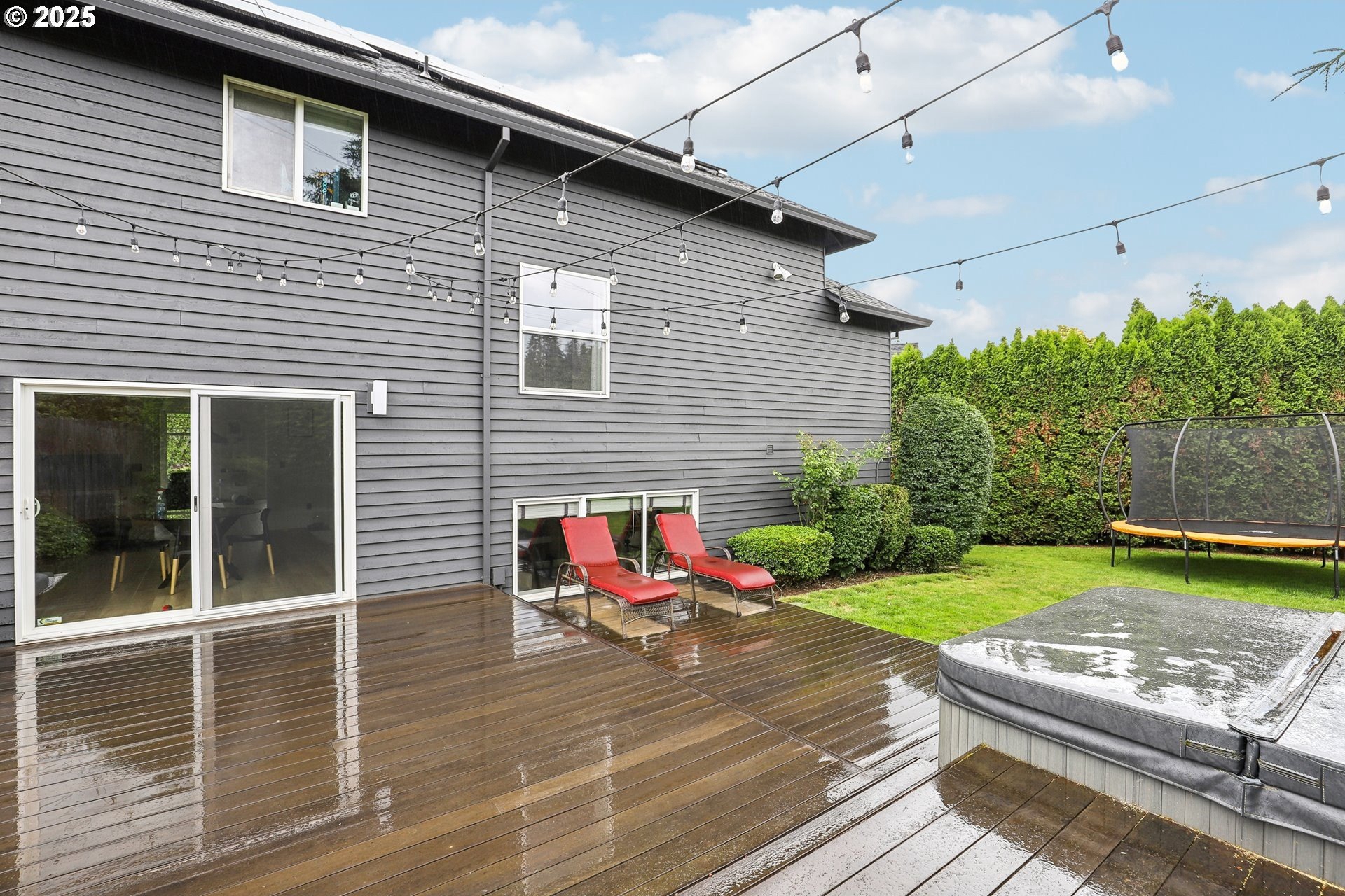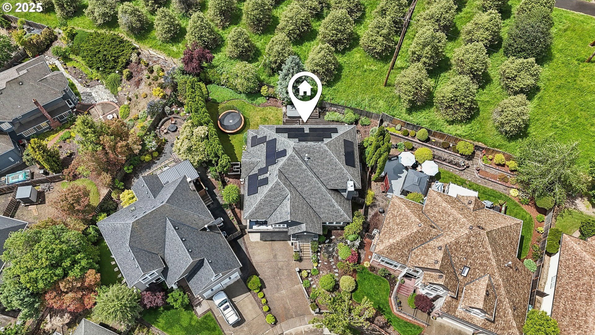 Experience luxury and functionality in this stunning 4-bedroom, 3-bath home spanning 3,551 sq. ft. Thoughtfully designed for comfort and convenience, this home boasts a bonus room with a wet bar, dedicated office space, and abundant storage. The beautifully manicured backyard features a luxurious Ipe wood deck and a relaxing hot tub, perfect for unwinding. The primary suite offers a private deck, a Japanese soaking tub, and a spa-like bathroom with heated floors and a towel rack for ultimate comfort. Upstairs, a loft with built-in bookshelves provides a cozy retreat, while the spacious bonus room with a kitchenette is ideal for entertaining. This home is as efficient as it is elegant, featuring owned solar panels that ensure net-zero power costs—even during summer—along with two HVAC systems and two water heaters for year-round comfort. Expansive windows fill the home with natural light and showcase breathtaking sunrises and sunsets as well as a partial view of Mt. Hood. Backing to a scenic walking trail, the property offers direct access to nature, with serene ponds in both the front and back—perfect for birdwatching. The versatile floor plan is ideal for work-from-home families or those needing separate spaces for hobbies. A true blend of sustainability, luxury, and thoughtful design, this exceptional home is a must-see!