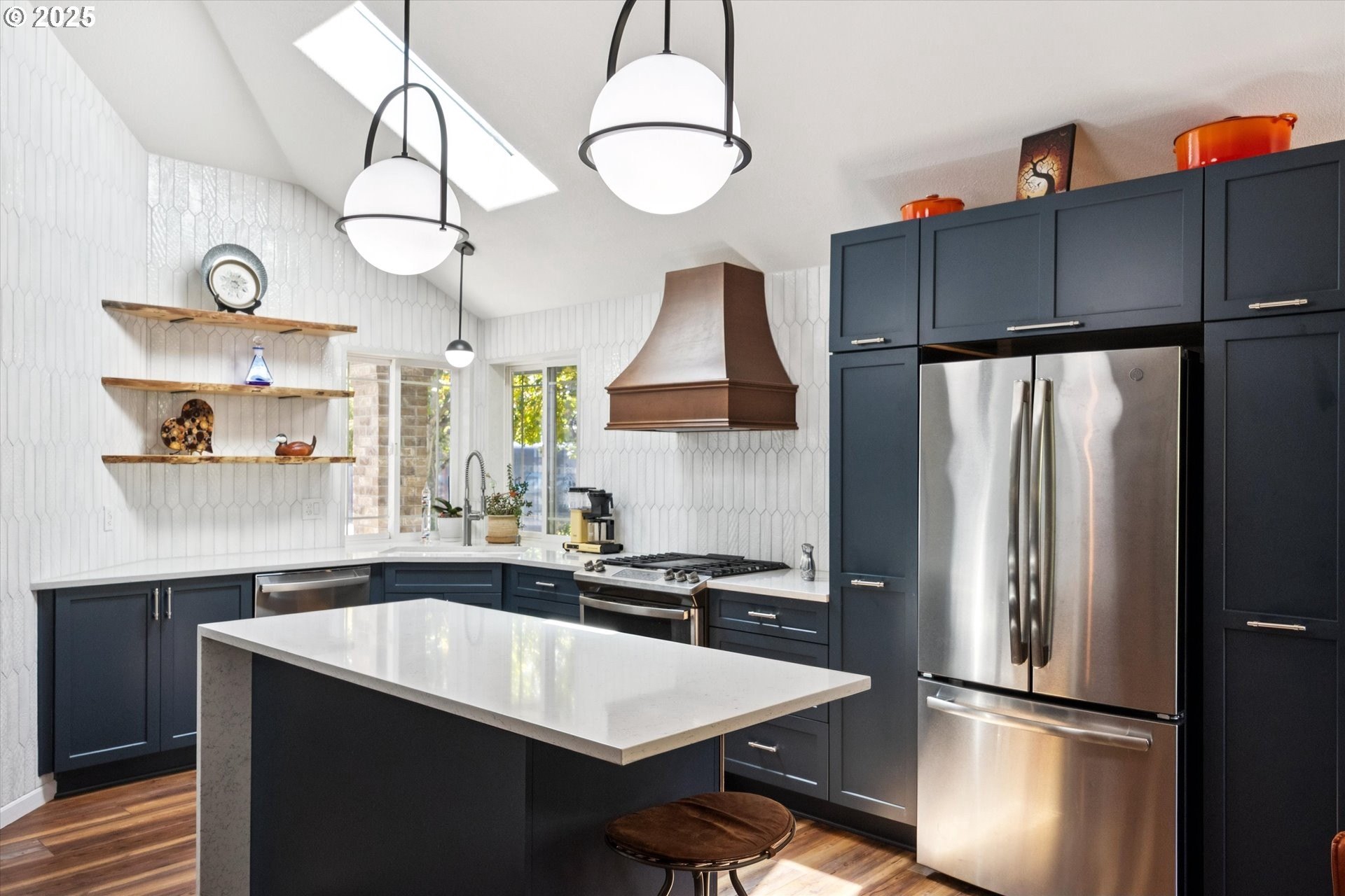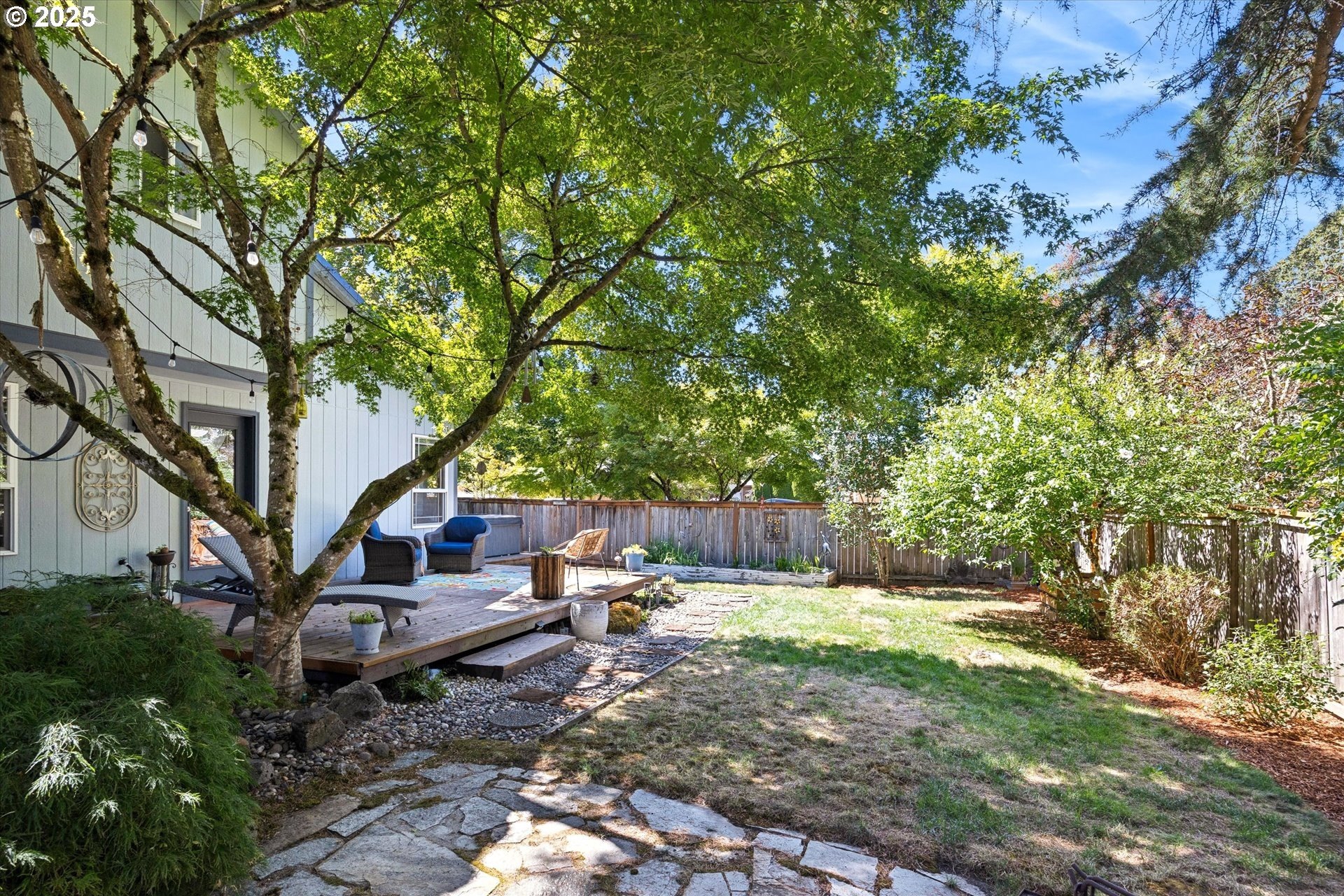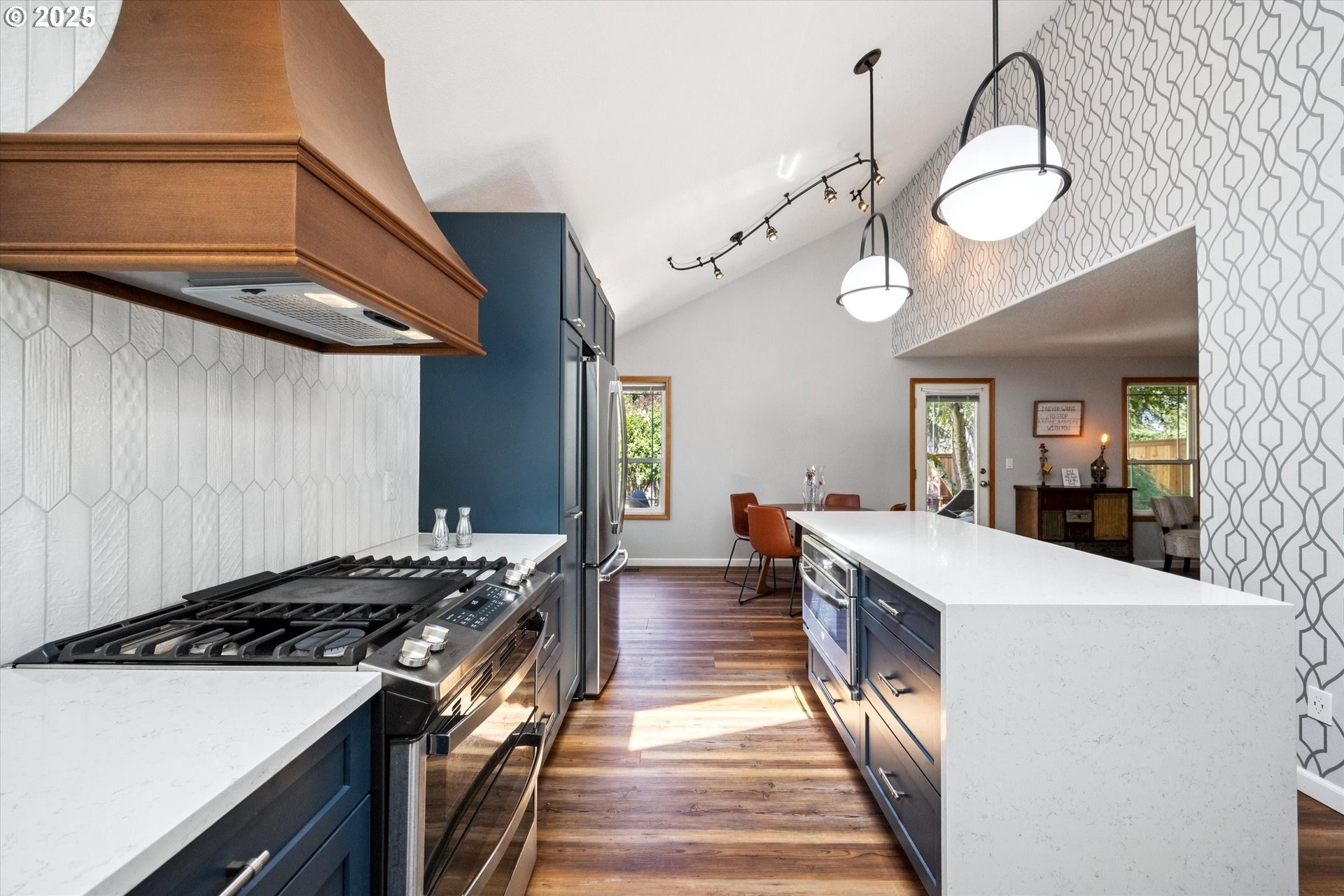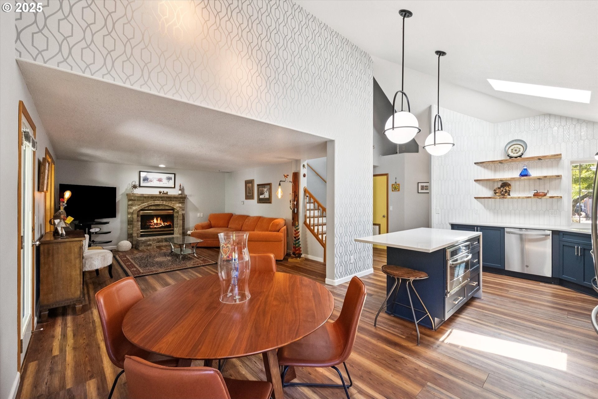 First impressions are everything—so take your time to enjoy the oversized corner lot, with beautifully landscaped grounds and whimsical touches. Step inside and you'll be instantly "WOWED!" by the openness, vaulted ceilings, and a modern gourmet kitchen that rivals those found in multi-million-dollar homes. ••• The kitchen is truly the heart of the home, and this heart is strong! Top-quality cabinets, gas appliances, a spacious pantry, and quartz countertops with a waterfall island. There are 3 ovens as the microwave is also a double convection oven (like a built-in air fryer). The stylish wallpaper pairs perfectly with the designer full wall tile, adding a contemporary flair. Four high efficiency skylight brighten the home. ••• Open floor plan with direct access to the living room, dining, and the backyard. ••• Beautiful LVP floors are also practical since they are waterproof and scratch-resistant. ••• The spacious primary suite easily accommodates a king-sized bed, furniture, and there is still plenty of room for an office, crib, or exercise equipment here. The beautifully tiled walk-in shower completes this private ensuite. ••• The backyard is big, private, sunny, and yet offers plenty of shade. An outdoor rec room makes a great private man-cave/she-shed or sauna. And enjoy relaxing in the modern 6-seat hot tub. ••• The fundamentals are just as impressive: the roof is under 5 years old, and the newer water heater and appliances provide peace of mind, the furnace has been serviced and certified. There is a dog door, and lots of easy to access storage in the attic and garage, top rated schools. Of course, the most important fundamental is that you will love living here! [Home Energy Score = 7. HES Report at https://rpt.greenbuildingregistry.com/hes/OR10241389]