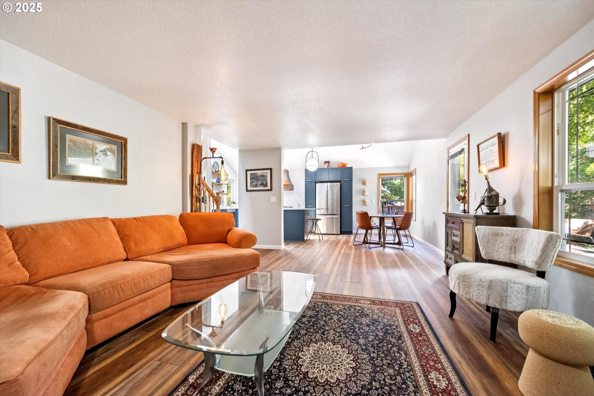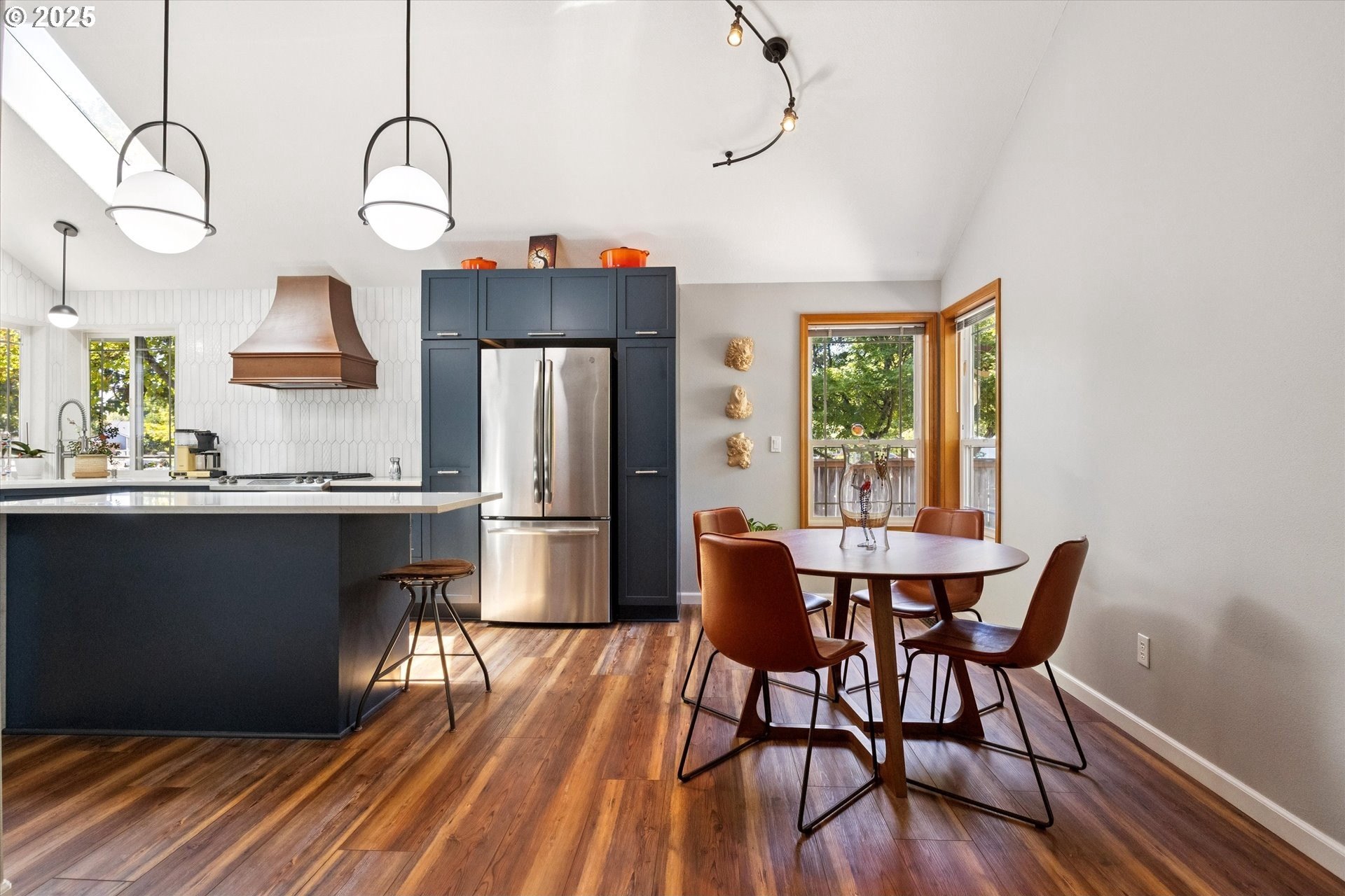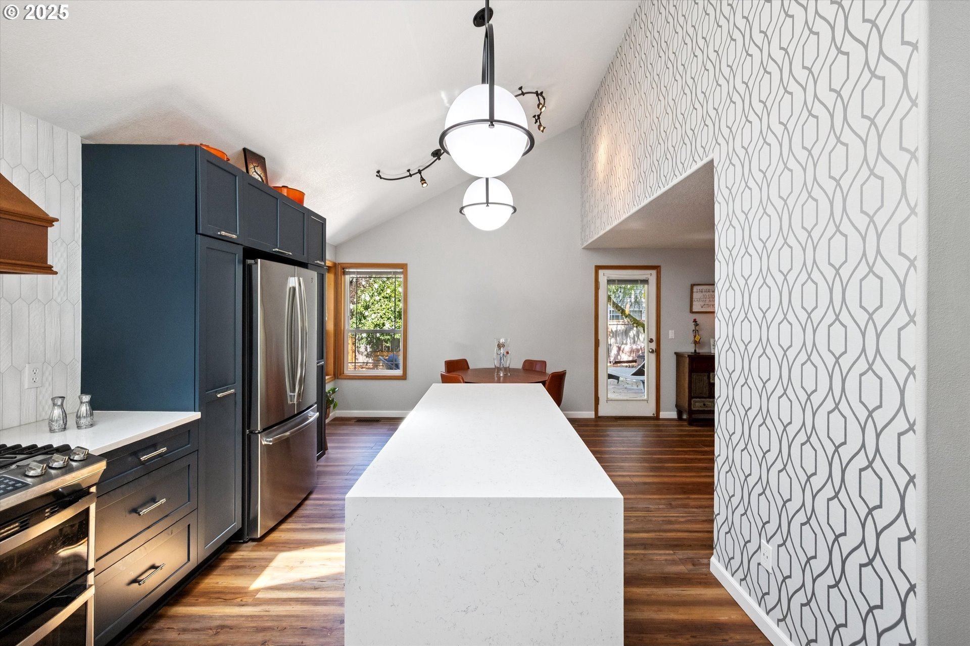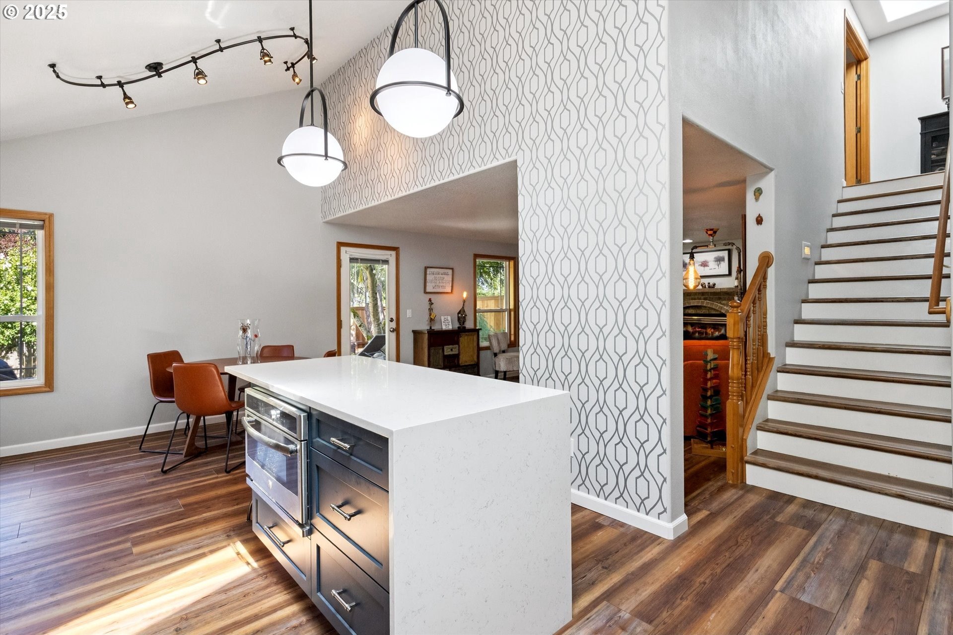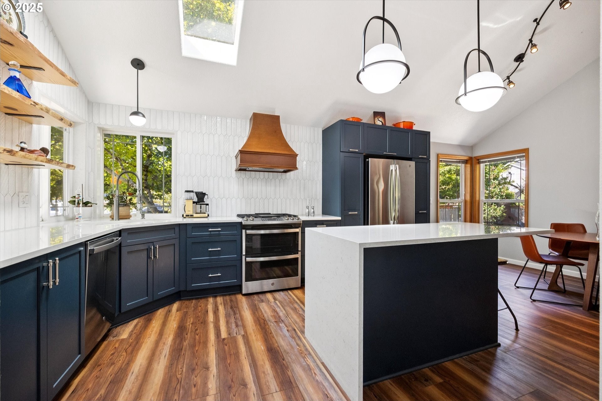 First impressions are everything—so take your time to enjoy the oversized corner lot, with beautifully landscaped grounds and whimsical touches. Step inside and you'll be instantly "WOWED!" by the openness, vaulted ceilings, and a modern gourmet kitchen that rivals those found in multi-million-dollar homes. ••• The kitchen is truly the heart of the home, and this heart is strong! Top-quality cabinets, gas appliances, a spacious pantry, and quartz countertops with a waterfall island. There are 3 ovens as the microwave is also a double convection oven (like a built-in air fryer). The stylish wallpaper pairs perfectly with the designer full wall tile, adding a contemporary flair. Four high efficiency skylight brighten the home. ••• Open floor plan with direct access to the living room, dining, and the backyard. ••• Beautiful LVP floors are also practical since they are waterproof and scratch-resistant. ••• The spacious primary suite easily accommodates a king-sized bed, furniture, and there is still plenty of room for an office, crib, or exercise equipment here. The beautifully tiled walk-in shower completes this private ensuite. ••• The backyard is big, private, sunny, and yet offers plenty of shade. An outdoor rec room makes a great private man-cave/she-shed or sauna. And enjoy relaxing in the modern 6-seat hot tub. ••• The fundamentals are just as impressive: the roof is under 5 years old, and the newer water heater and appliances provide peace of mind, the furnace has been serviced and certified. There is a dog door, and lots of easy to access storage in the attic and garage, top rated schools. Of course, the most important fundamental is that you will love living here! [Home Energy Score = 7. HES Report at https://rpt.greenbuildingregistry.com/hes/OR10241389]