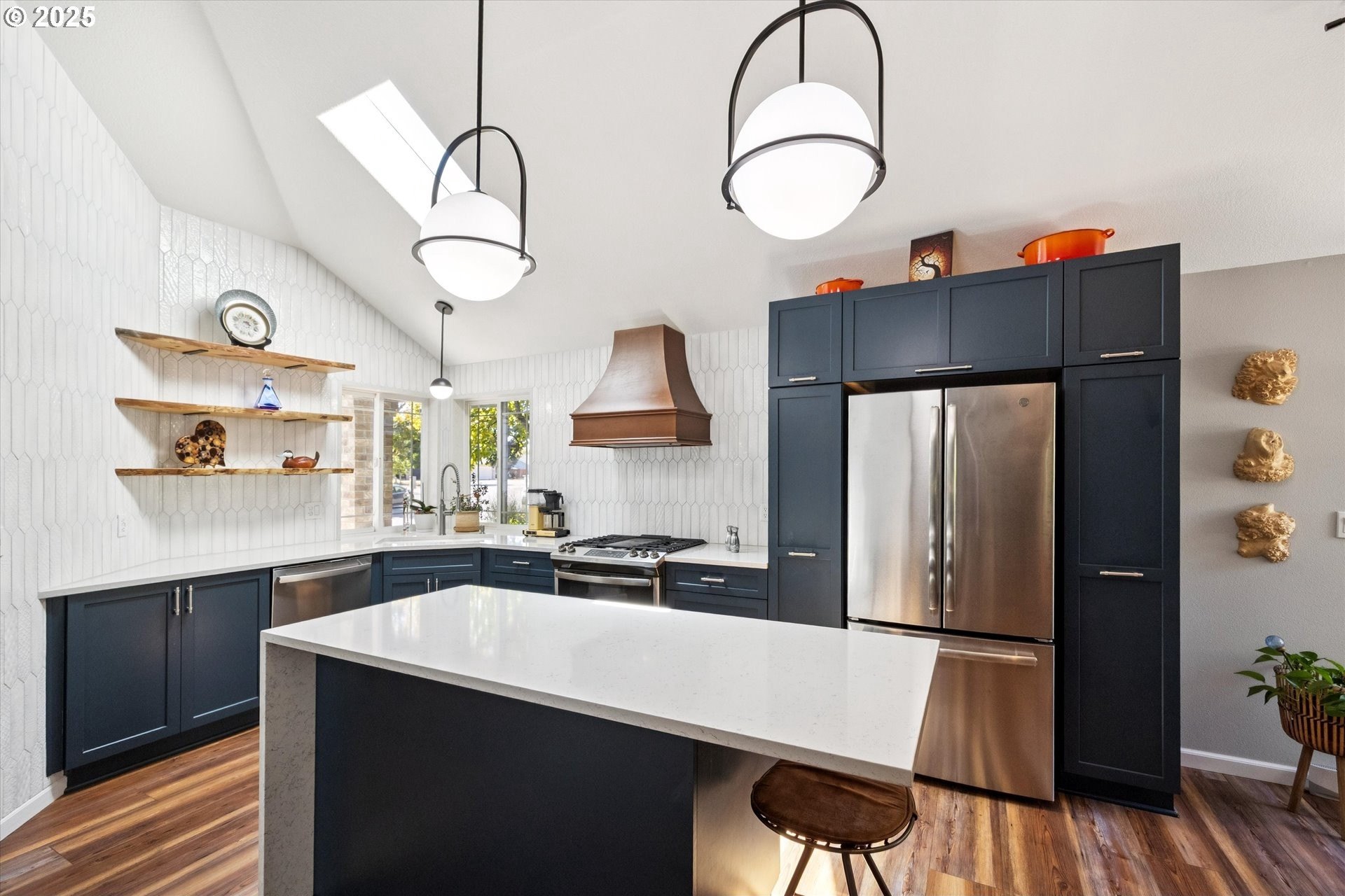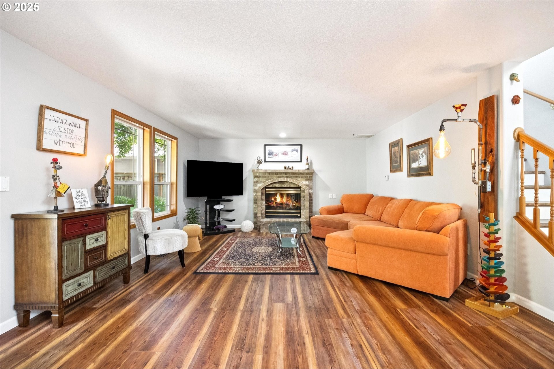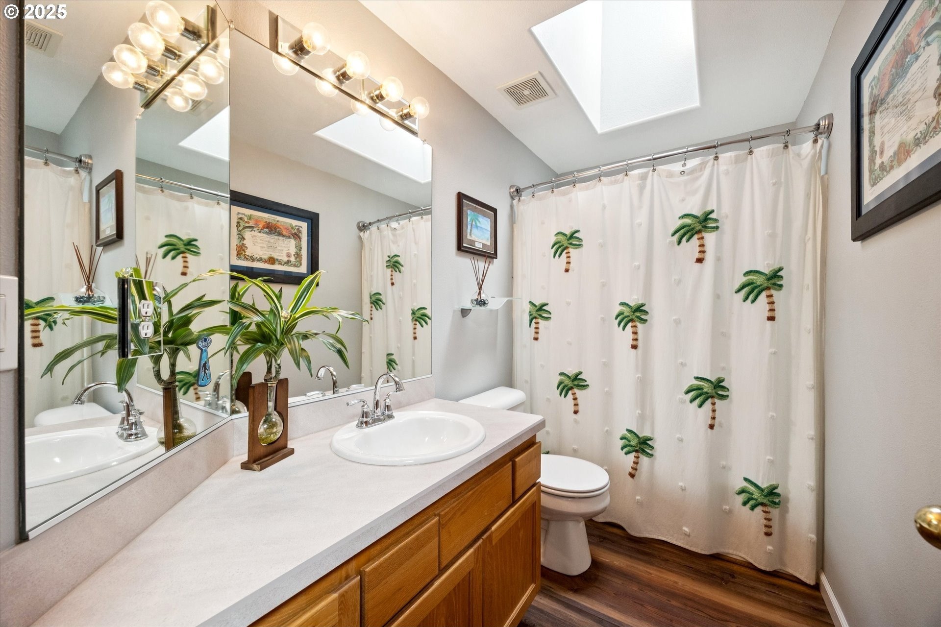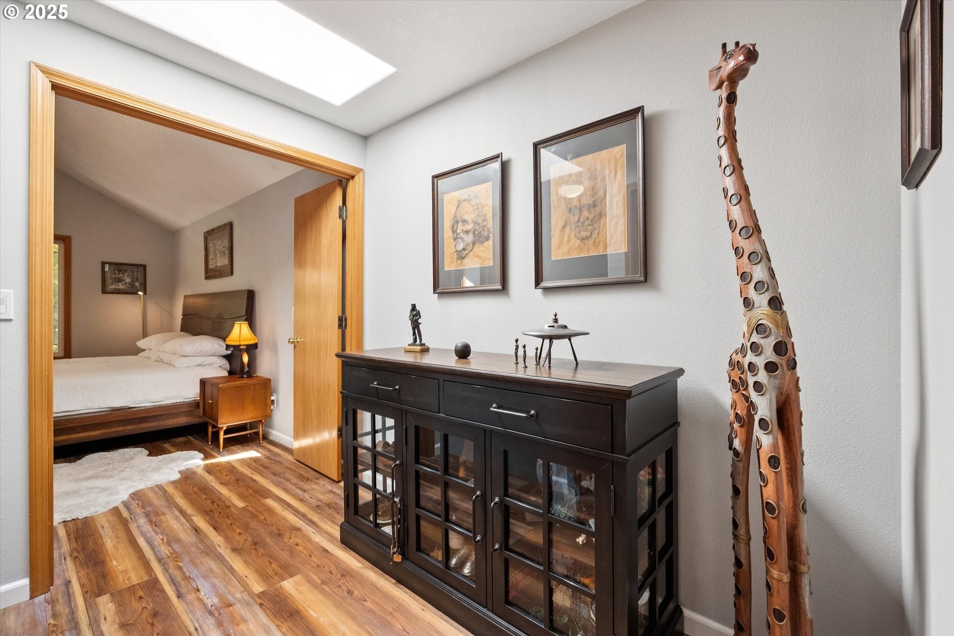 First impressions are everything—so take your time to enjoy the oversized corner lot, with beautifully landscaped grounds and whimsical touches. Step inside and you'll be instantly "WOWED!" by the openness, vaulted ceilings, and a modern gourmet kitchen that rivals those found in multi-million-dollar homes. ••• The kitchen is truly the heart of the home, and this heart is strong! Top-quality cabinets, gas appliances, a spacious pantry, and quartz countertops with a waterfall island. There are 3 ovens as the microwave is also a double convection oven (like a built-in air fryer). The stylish wallpaper pairs perfectly with the designer full wall tile, adding a contemporary flair. Four high efficiency skylight brighten the home. ••• Open floor plan with direct access to the living room, dining, and the backyard. ••• Beautiful LVP floors are also practical since they are waterproof and scratch-resistant. ••• The spacious primary suite easily accommodates a king-sized bed, furniture, and there is still plenty of room for an office, crib, or exercise equipment here. The beautifully tiled walk-in shower completes this private ensuite. ••• The backyard is big, private, sunny, and yet offers plenty of shade. An outdoor rec room makes a great private man-cave/she-shed or sauna. And enjoy relaxing in the modern 6-seat hot tub. ••• The fundamentals are just as impressive: the roof is under 5 years old, and the newer water heater and appliances provide peace of mind, the furnace has been serviced and certified. There is a dog door, and lots of easy to access storage in the attic and garage, top rated schools. Of course, the most important fundamental is that you will love living here! [Home Energy Score = 7. HES Report at https://rpt.greenbuildingregistry.com/hes/OR10241389]