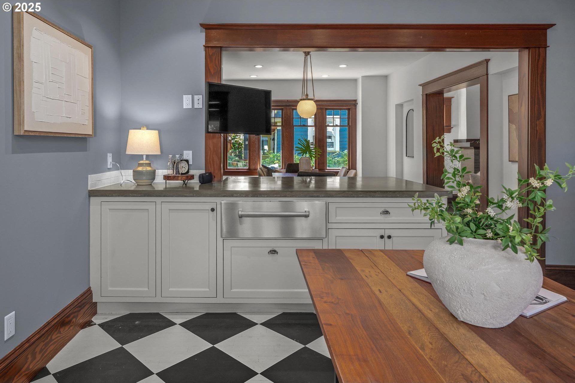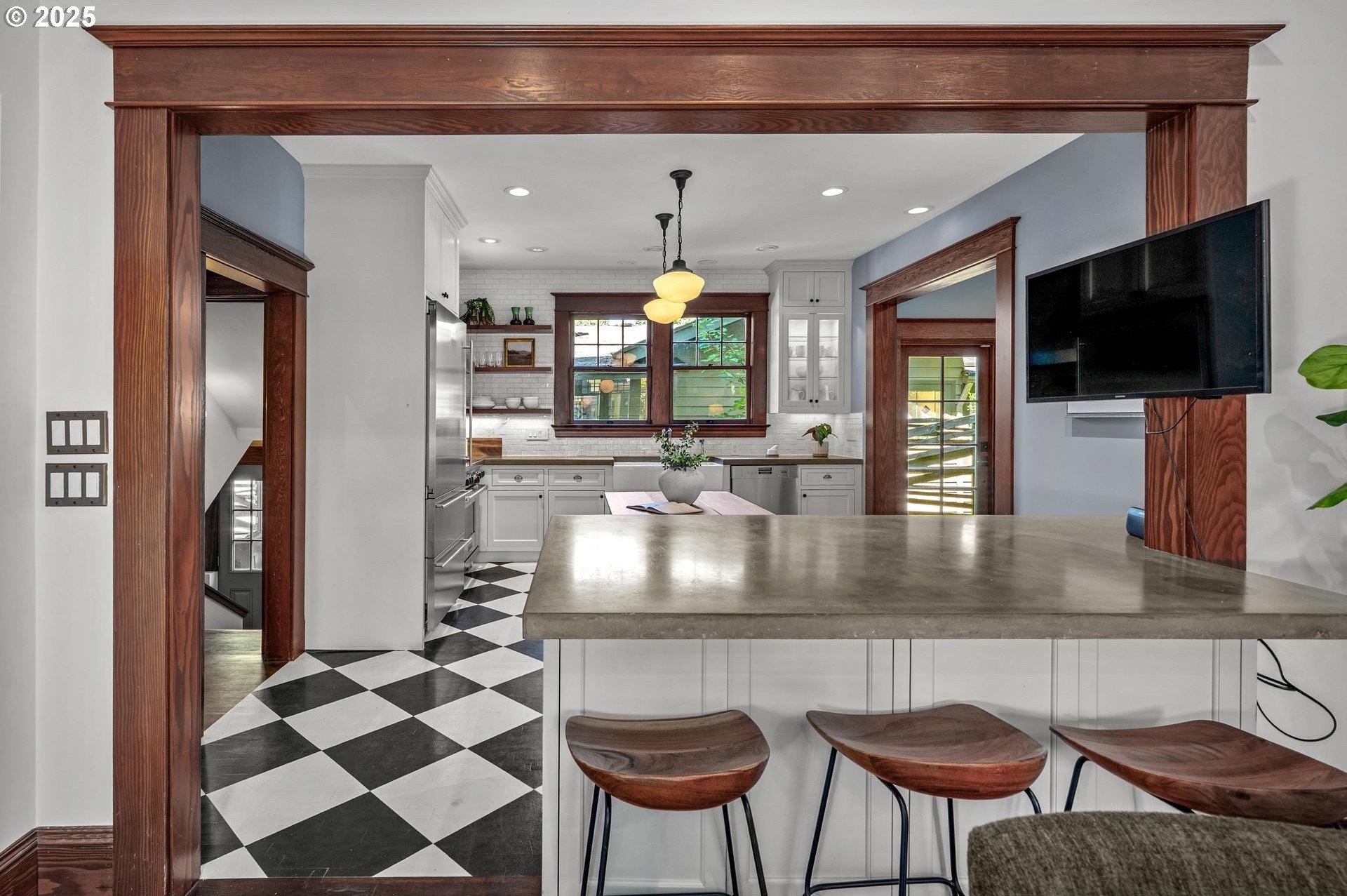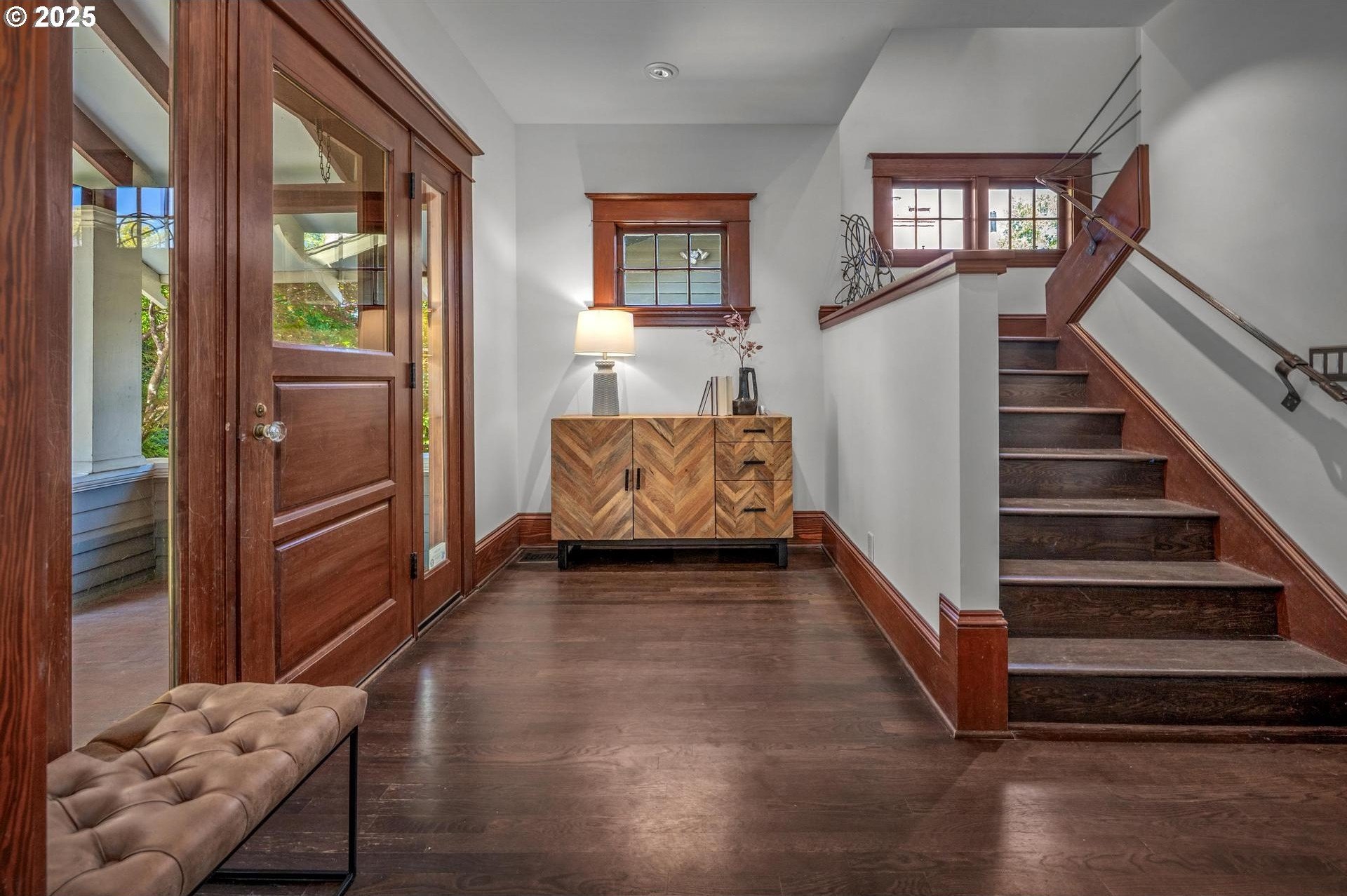 A rare Irvington gem, fully restored to the studs with no detail overlooked. This one-of-a-kind Craftsman blends historic character with modern luxury. The coveted circular floor plan offers multiple living spaces on the main—an exceptional feature in historic homes. At the heart, a stunning chef’s kitchen opens to a large, light-filled family room, creating the perfect gathering space rarely found in these homes. Gleaming hardwoods, custom millwork, and natural light highlight every detail. A custom built-in bar with its own dishwasher adds a touch of sophistication, offering ample space to showcase your treasures. Upstairs, the luxurious primary suite boasts a spa-like bath with soaking tub, steam shower, and walk-in closet. Additional bedrooms are generously sized. The lower level offers a media or fitness room, custom wine cellar, and full dog-wash station. A detached studio completes the package—all on one of Irvington’s most coveted tree-lined streets. [Home Energy Score = 4. HES Report at https://rpt.greenbuildingregistry.com/hes/OR10235976]