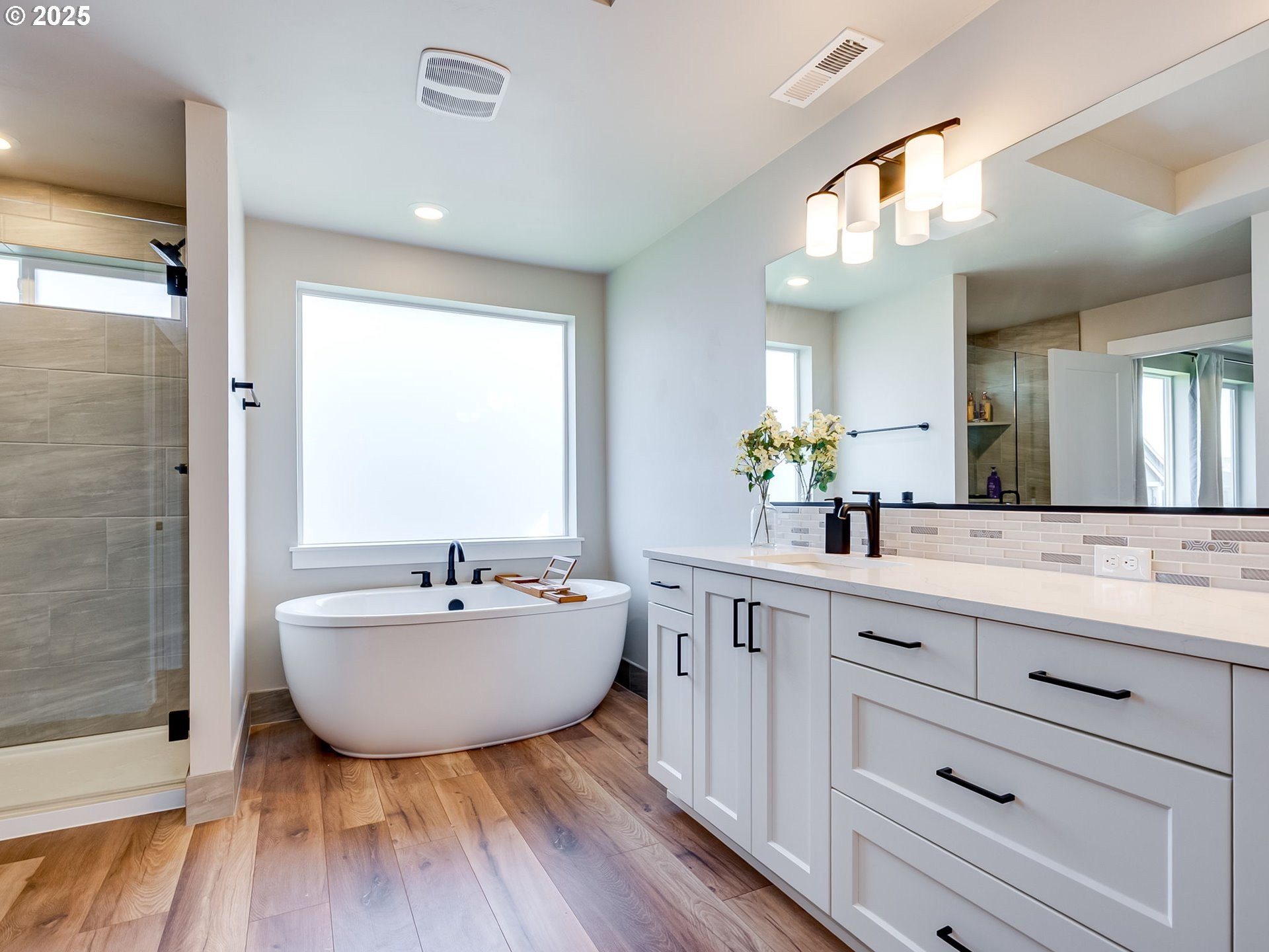 Incentive available. Full bed and bath on the main level. Appliances and over 46k in upgrades over standard builds with this builder. Blocks to the Reserve Gold Course. Located in the heart of South Hillsboro’s desirable Butternut Creek community, this spacious 5-bedroom home offers exceptional value and thoughtful design. Built less than a year ago by a respected local builder known for award-winning craftsmanship, it includes over $46,000 in upgrades—offering abundant savings compared to building new. The flexible layout features a full bedroom and bathroom on the main level, ideal for guests or multi-generational living, plus a large upstairs bonus room perfect for a media space, playroom, or home office. Enjoy a 3-car garage, covered patio, and a tranquil interior location within the neighborhood. Butternut Creek offers a vibrant lifestyle with dog parks, a splash pad, basketball courts, and outdoor fitness stations along a scenic greenbelt that connects to Reed’s Crossing—home to the new Market of Choice and a variety of restaurants and shops. Commute to Nike, high-tech campuses, and everyday amenities. A rare opportunity to own a nearly new home in a thriving community—without the wait. **Contact agent for a list of upgrades in this home** [Home Energy Score = 10. HES Report at https://rpt.greenbuildingregistry.com/hes/OR10225293]