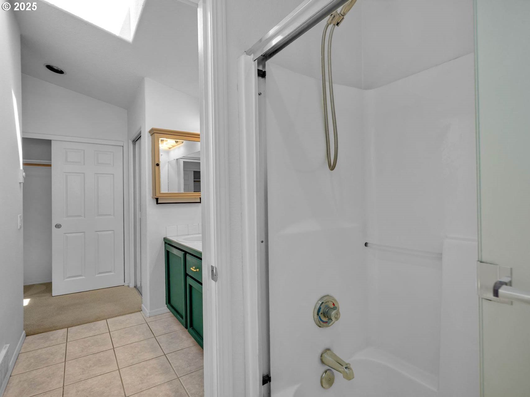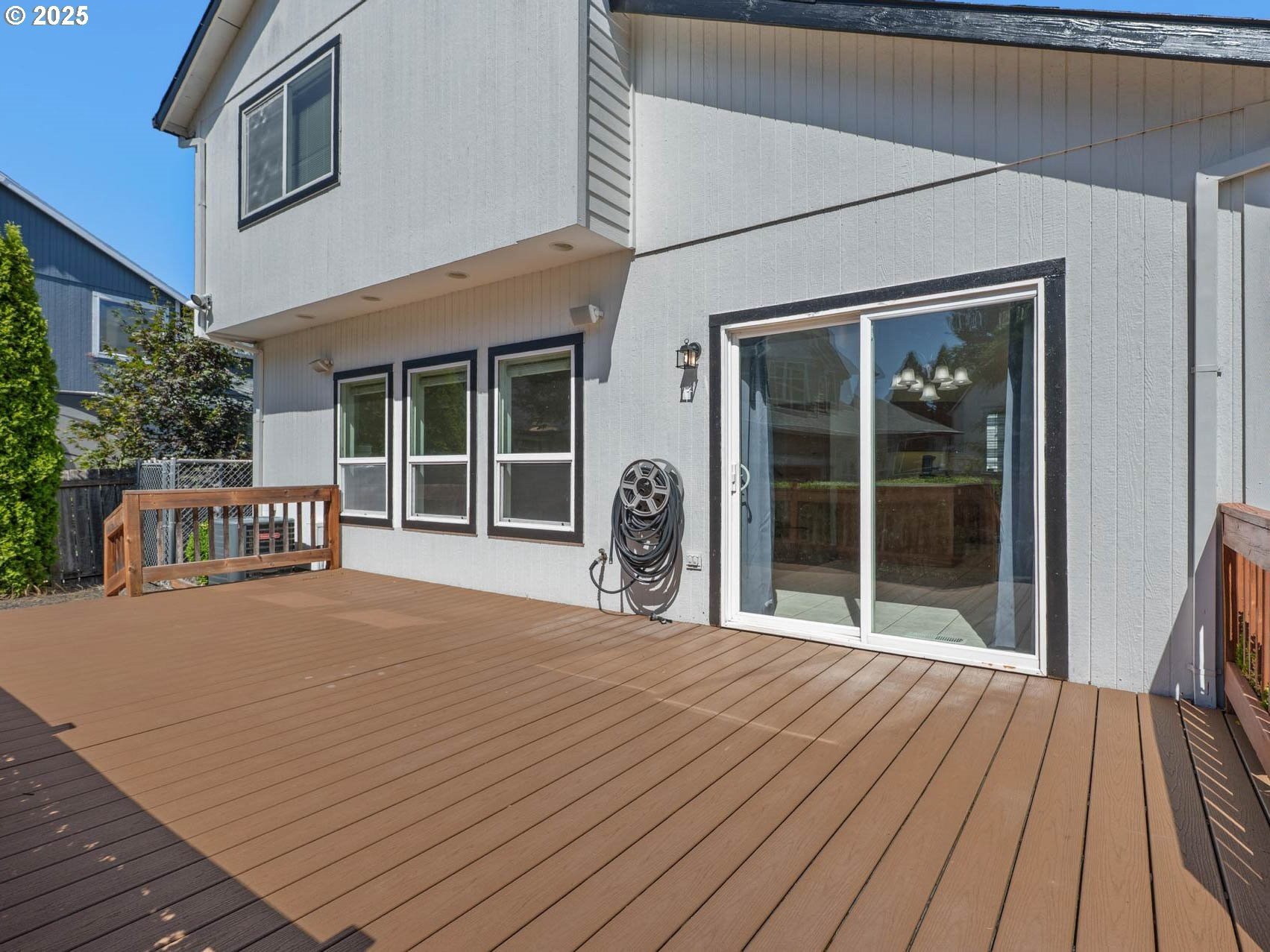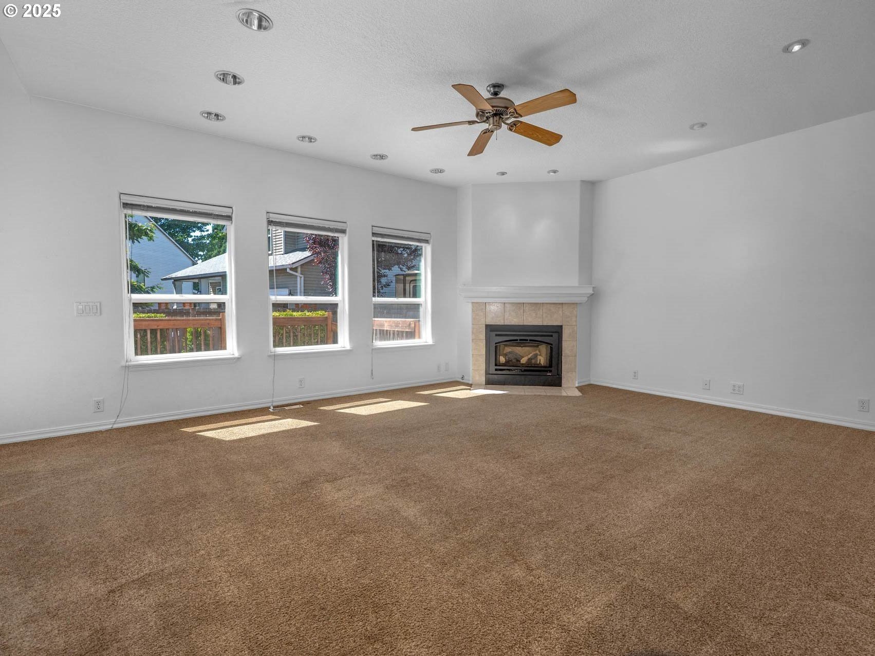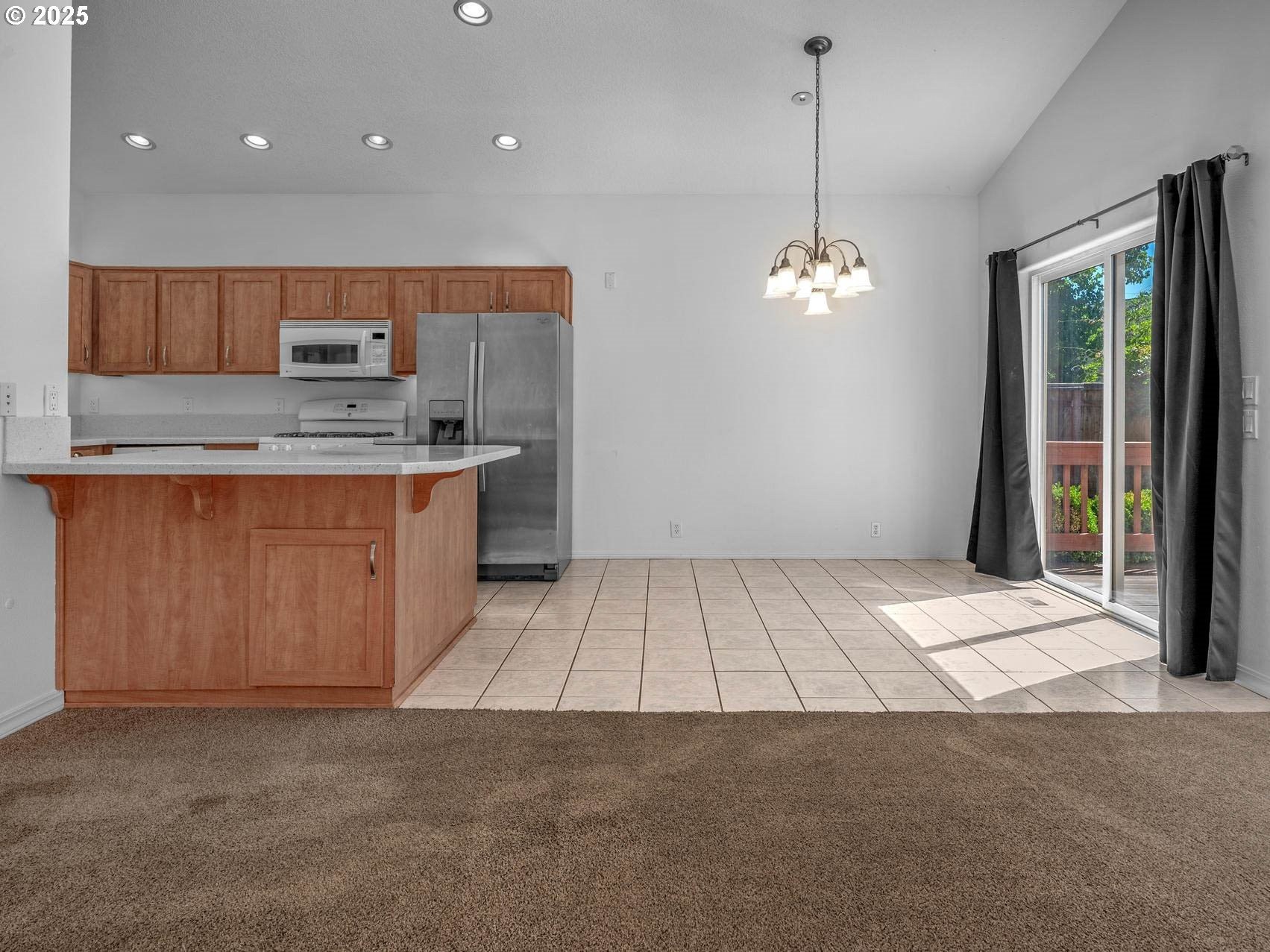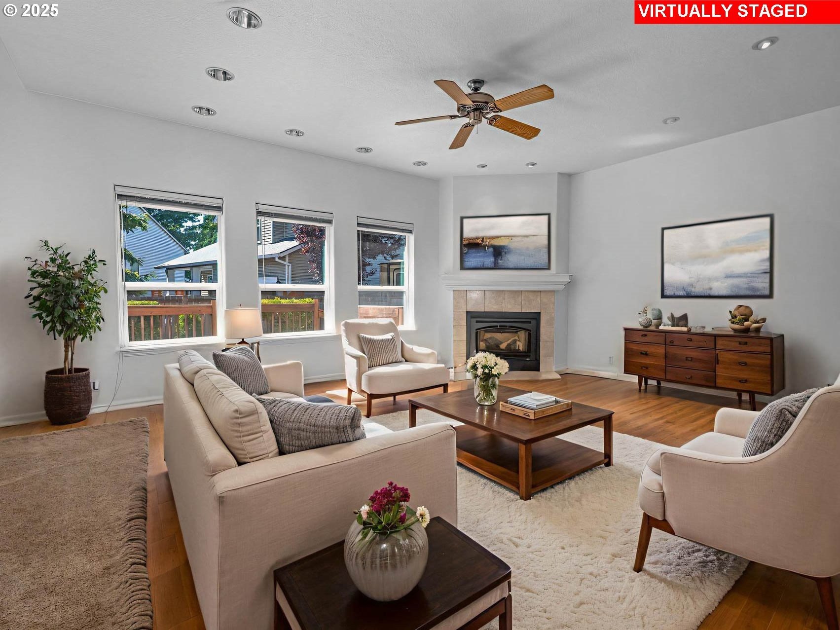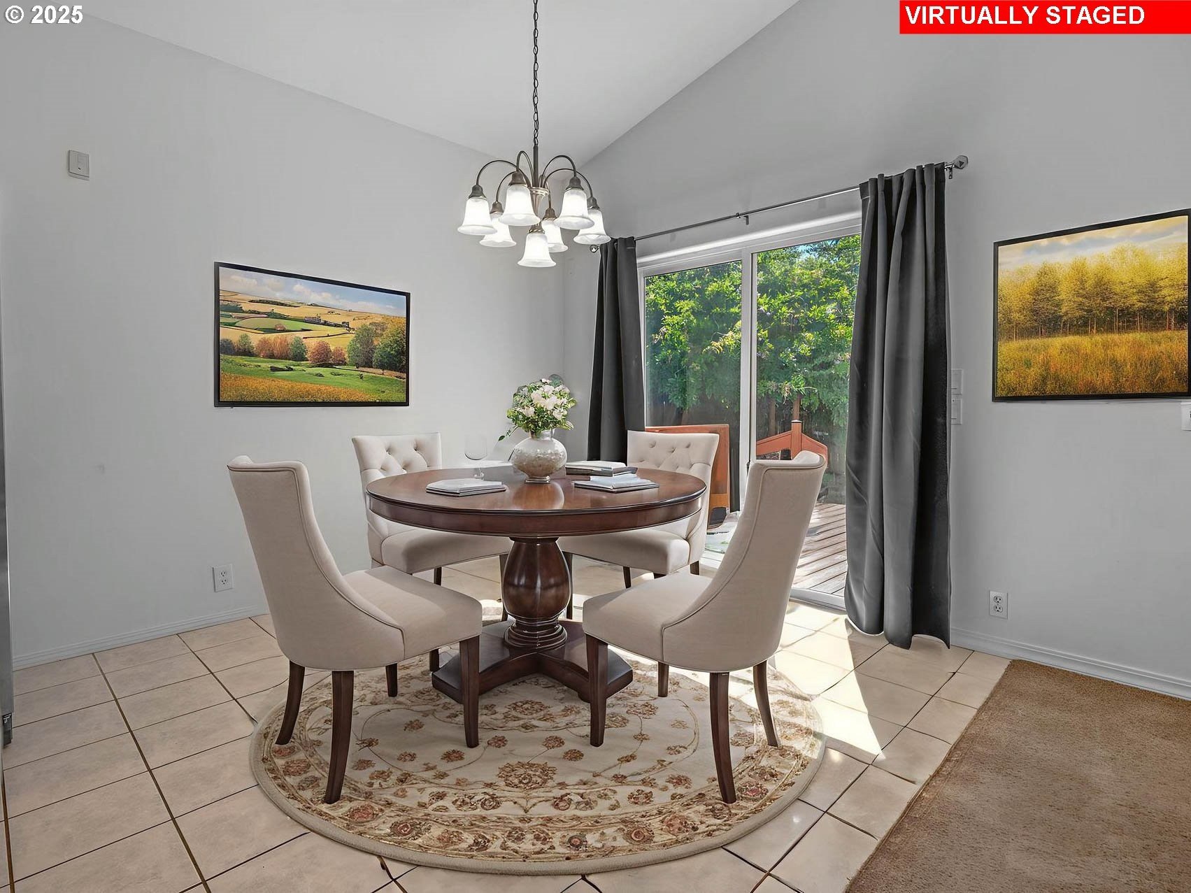This inviting home features a bright, open floor plan with high ceilings in both the kitchen and living areas. The great room, centered around a cozy gas fireplace, flows seamlessly into the spacious kitchen with tiled flooring, abundant cabinetry, and plenty of counter space for cooking and entertaining. The vaulted primary suite offers generous storage, ample closet space, and a skylight in the bathroom, creating a bright and airy retreat. Two additional carpeted bedrooms upstairs provide flexibility for guests, family, or a home office. Perfectly situated on a peaceful street away from heavy traffic, the property is just minutes from Target, Home Depot, Starbucks, and the bus line, offering both convenience and tranquility. The fenced backyard includes a deck, a tool shed, and a dog run, providing versatile spaces for outdoor enjoyment, relaxing, or entertaining guests. [Home Energy Score = 7. HES Report at https://rpt.greenbuildingregistry.com/hes/OR10241449]