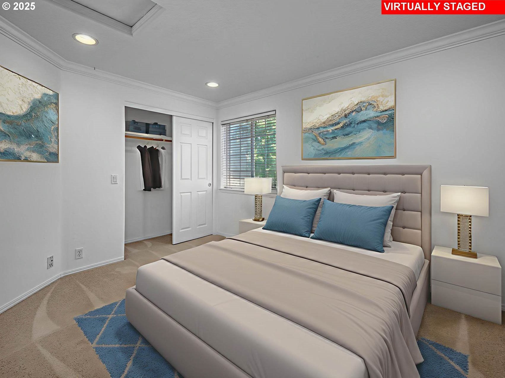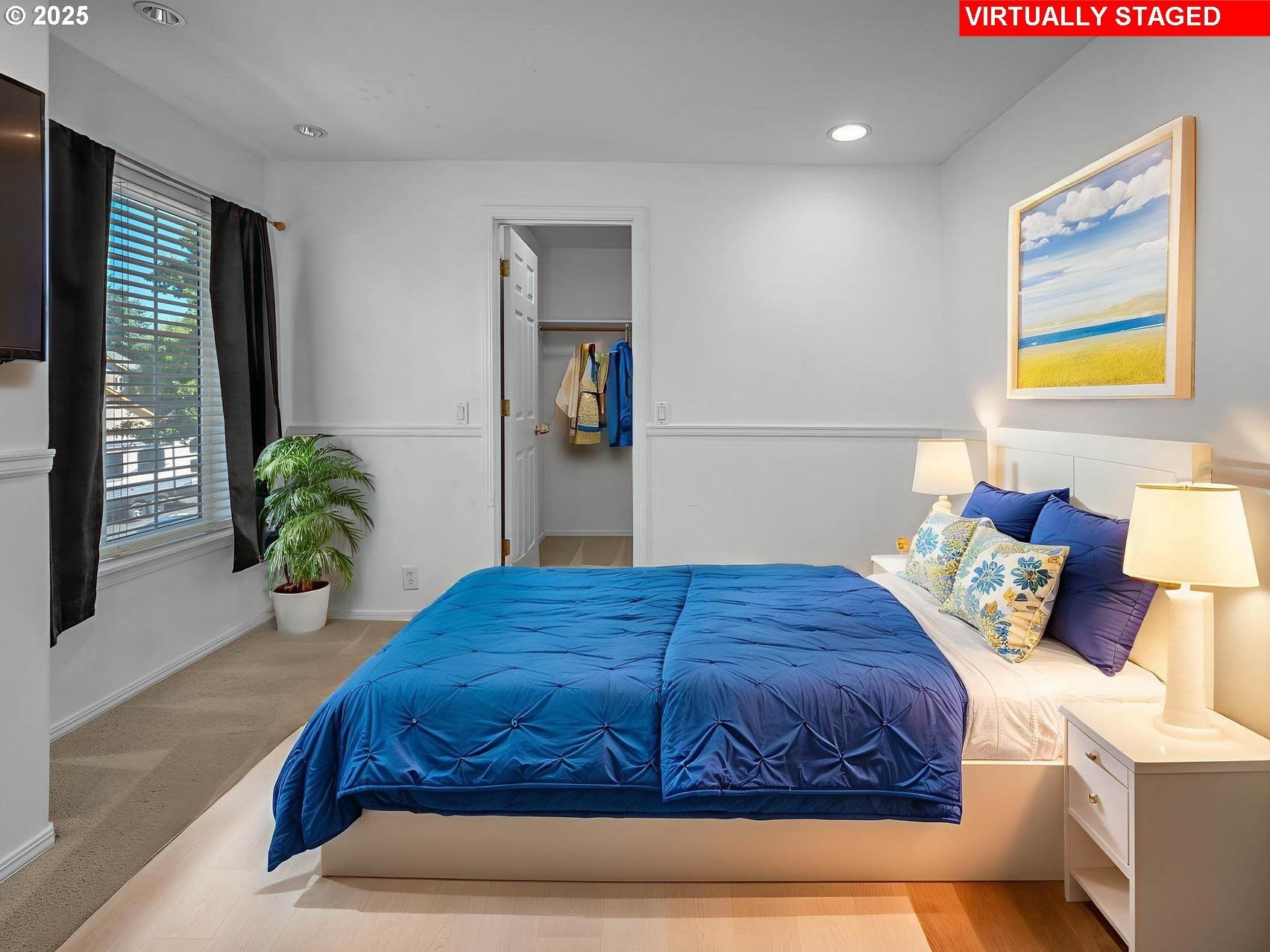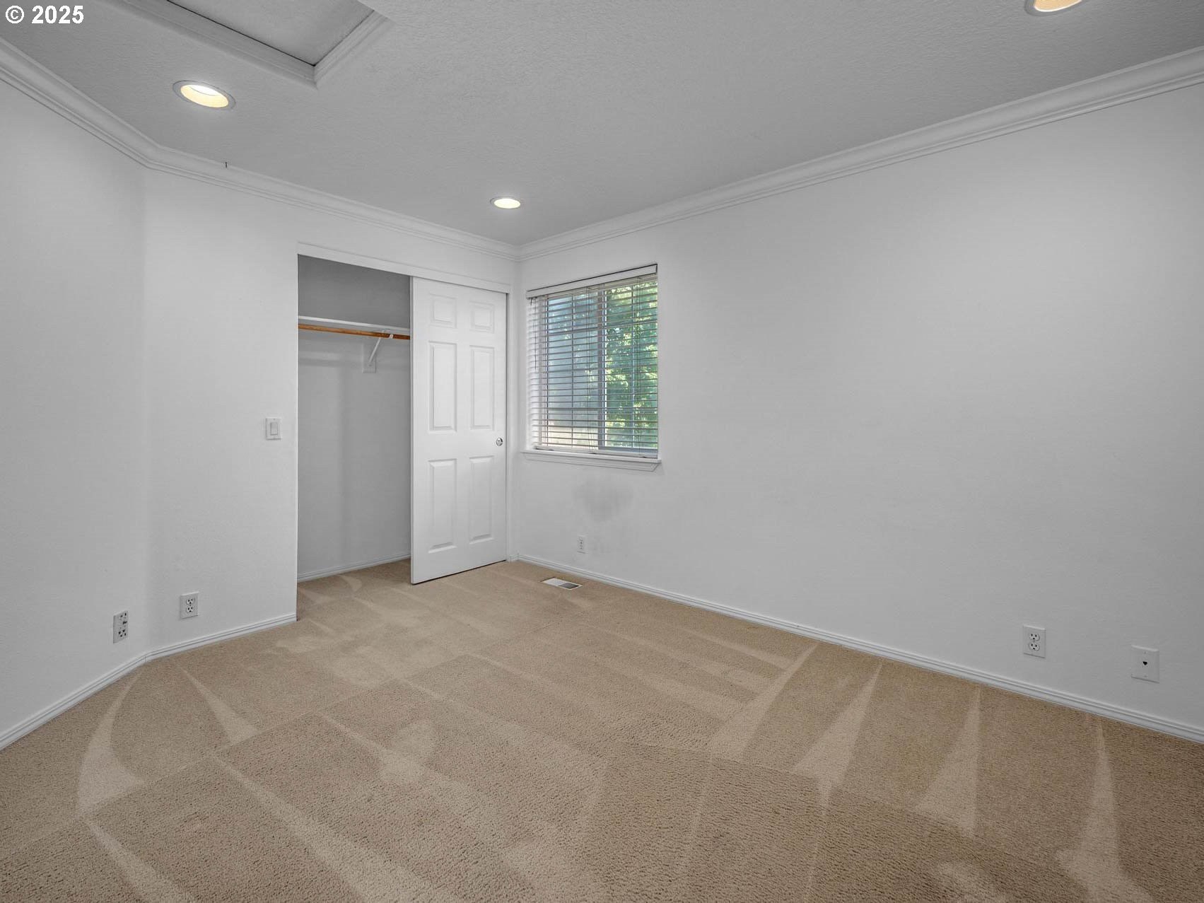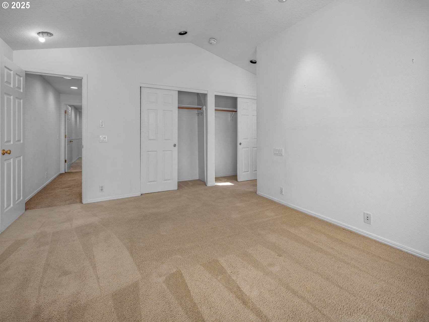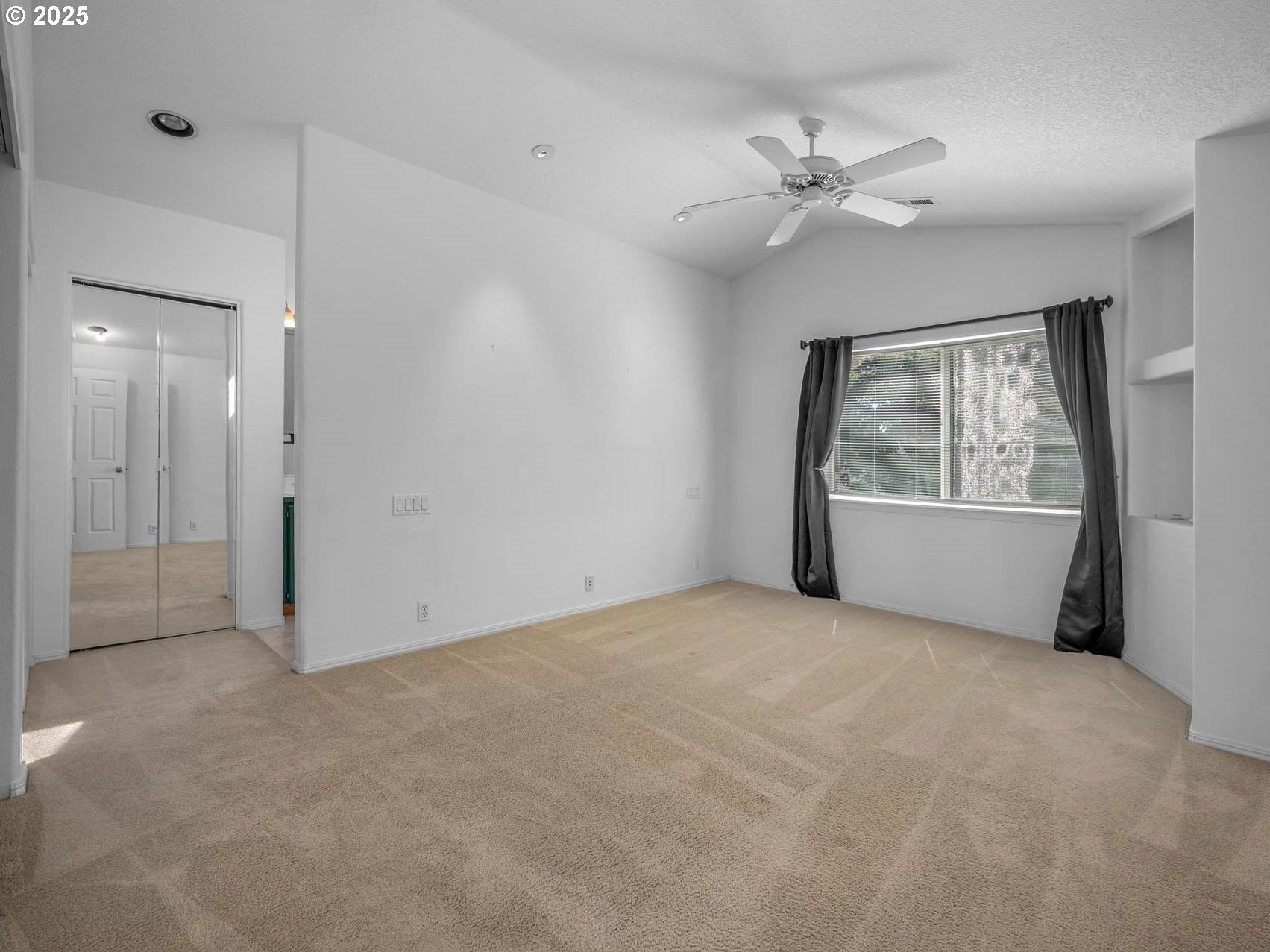 This inviting home features a bright, open floor plan with high ceilings in both the kitchen and living areas. The great room, centered around a cozy gas fireplace, flows seamlessly into the spacious kitchen with tiled flooring, abundant cabinetry, and plenty of counter space for cooking and entertaining. The vaulted primary suite offers generous storage, ample closet space, and a skylight in the bathroom, creating a bright and airy retreat. Two additional carpeted bedrooms upstairs provide flexibility for guests, family, or a home office. Perfectly situated on a peaceful street away from heavy traffic, the property is just minutes from Target, Home Depot, Starbucks, and the bus line, offering both convenience and tranquility. The fenced backyard includes a deck, a tool shed, and a dog run, providing versatile spaces for outdoor enjoyment, relaxing, or entertaining guests. [Home Energy Score = 7. HES Report at https://rpt.greenbuildingregistry.com/hes/OR10241449]
