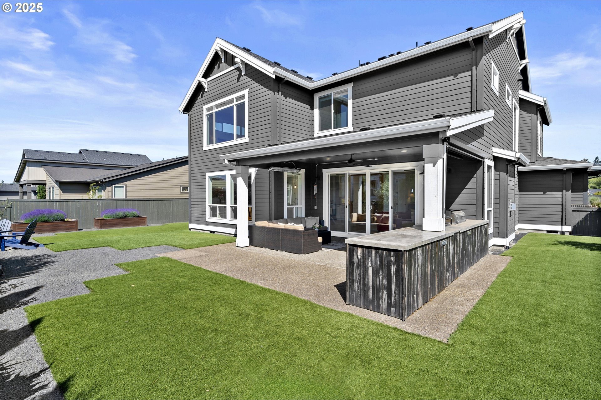 Coveted 5-bedroom gem in Vendage at The Reserve, site of the 2018 Street of Dreams! This thoughtfully designed 3,373 sq. ft. home offers sophistication, functionality, and comfort. The open-concept layout features a light-filled great room with vaulted ceilings, cozy gas fireplace, and show stopping chef’s kitchen with an oversized island, quartz countertops, 48” gas Dacor range, double ovens and walk-in pantry—perfect for today’s busy lifestyle and ideal for entertaining. The main-level bedroom and full bath offers flexibility for guests, teens, or a home office. The open-concept main level connects effortlessly to the covered patio, with gourmet outdoor kitchen, heaters, ceiling fan, and roll-down shades—ideal for morning coffee, evening wine or year round outdoor entertaining. The beautifully landscaped and meticulously maintained backyard offers turf, raised garden beds, a drip irrigation system, landscape lighting and fire pit. There’s ample storage or plenty of space for a workshop in the extra deep, 3 car garage. Upstairs, the light-drenched primary suite offers a fireplace, spa-like bath with soaking tub, walk-in shower, dual vanities, and large walk-in closet. The second level media room is pre-wired for sound, perfect for movie nights or game days. Direct access to The Reserve golf course makes sneaking in a quick round effortless, and the deluxe HOA amenities include pool, hot tub, fitness center, splash pad, walking trails and more. Just 1.5 miles from Reed’s Crossing Town Center, Market of Choice, restaurants, and minutes to wine country, this home blends luxury, comfort, and convenience.