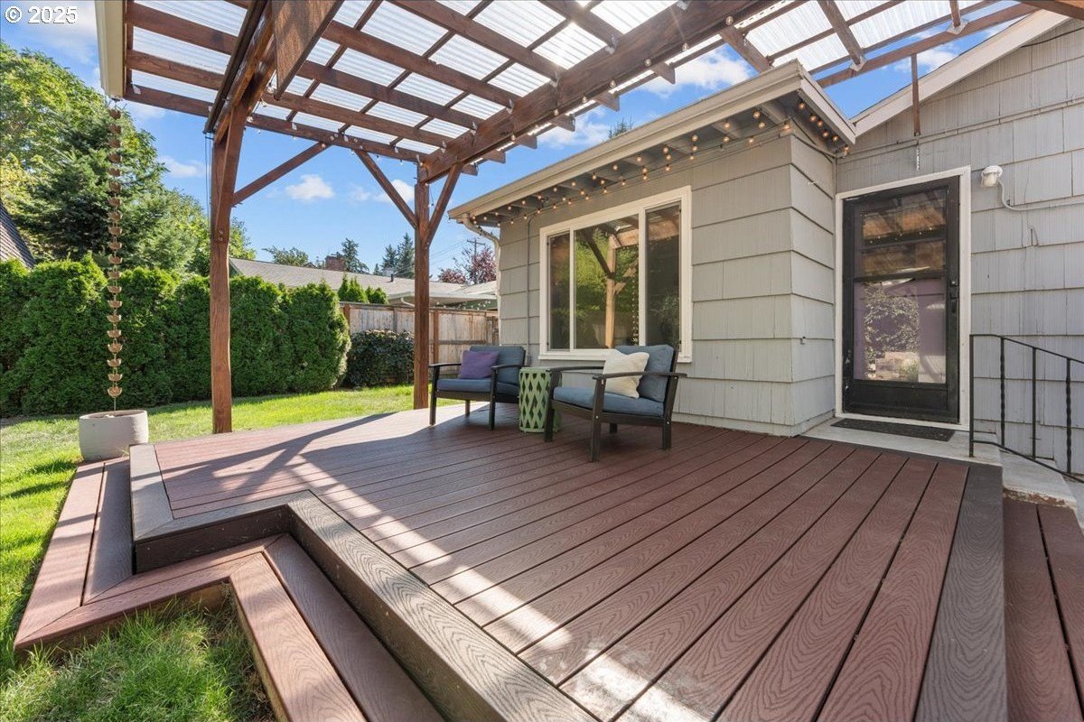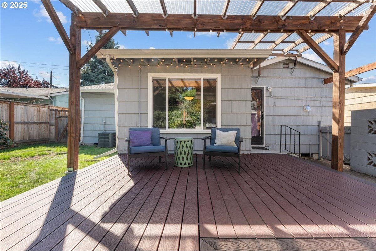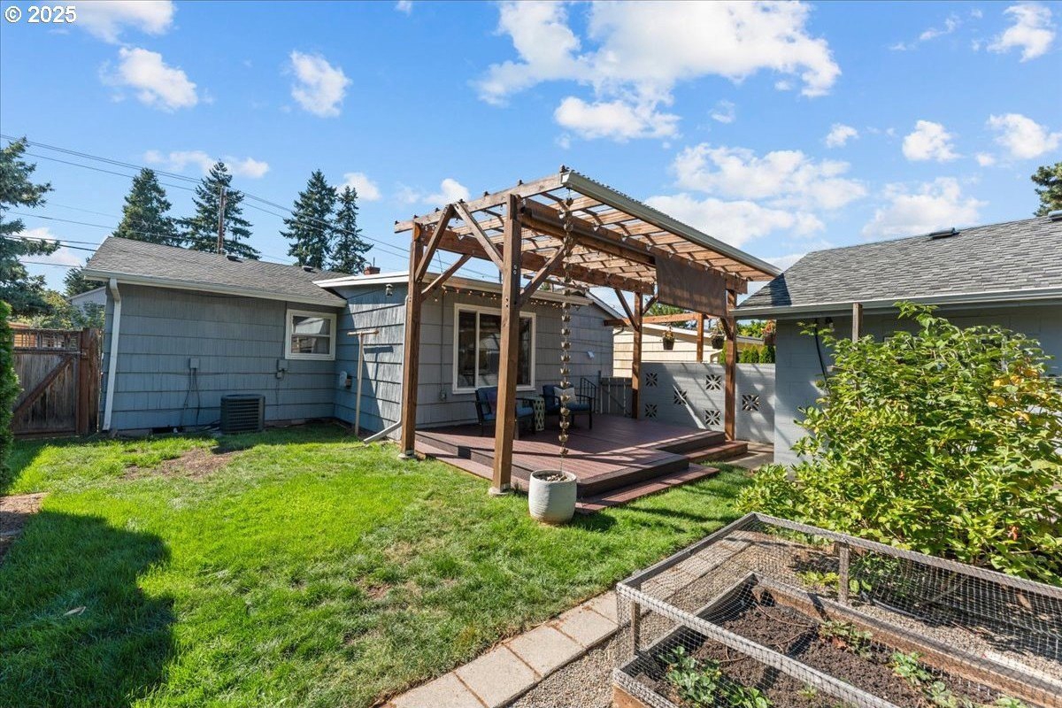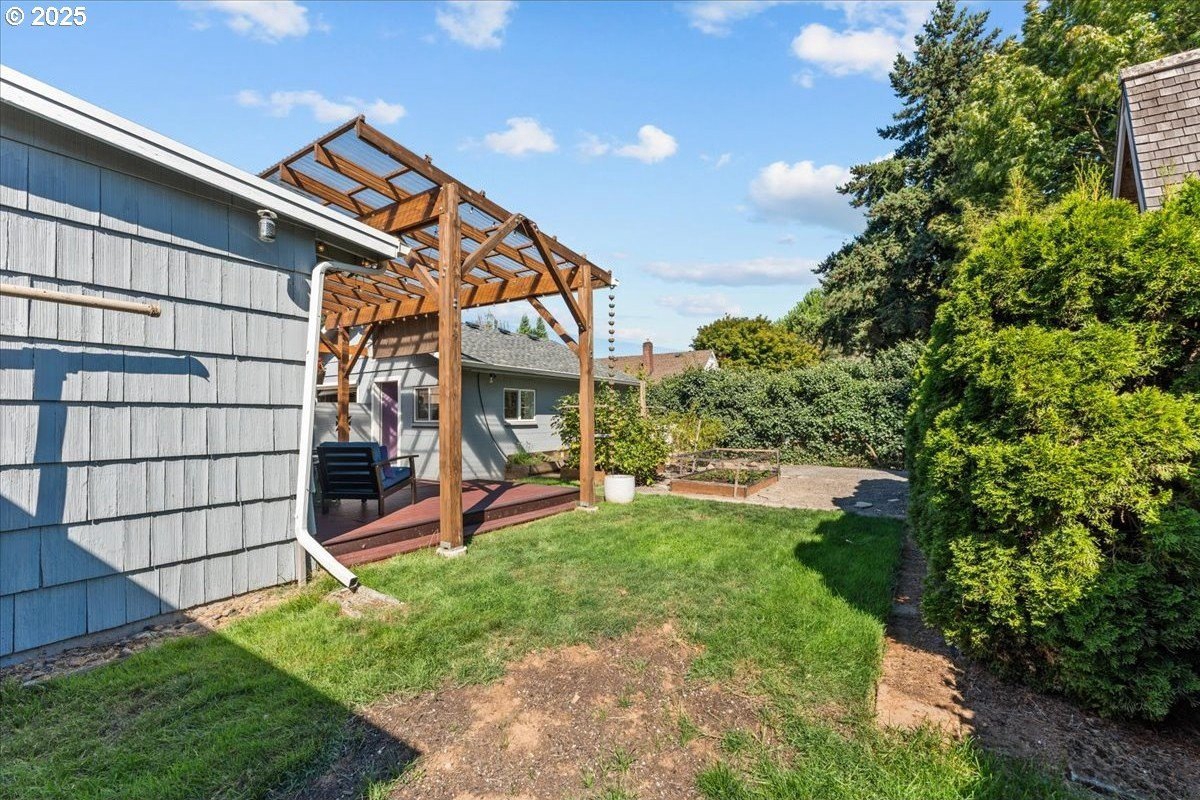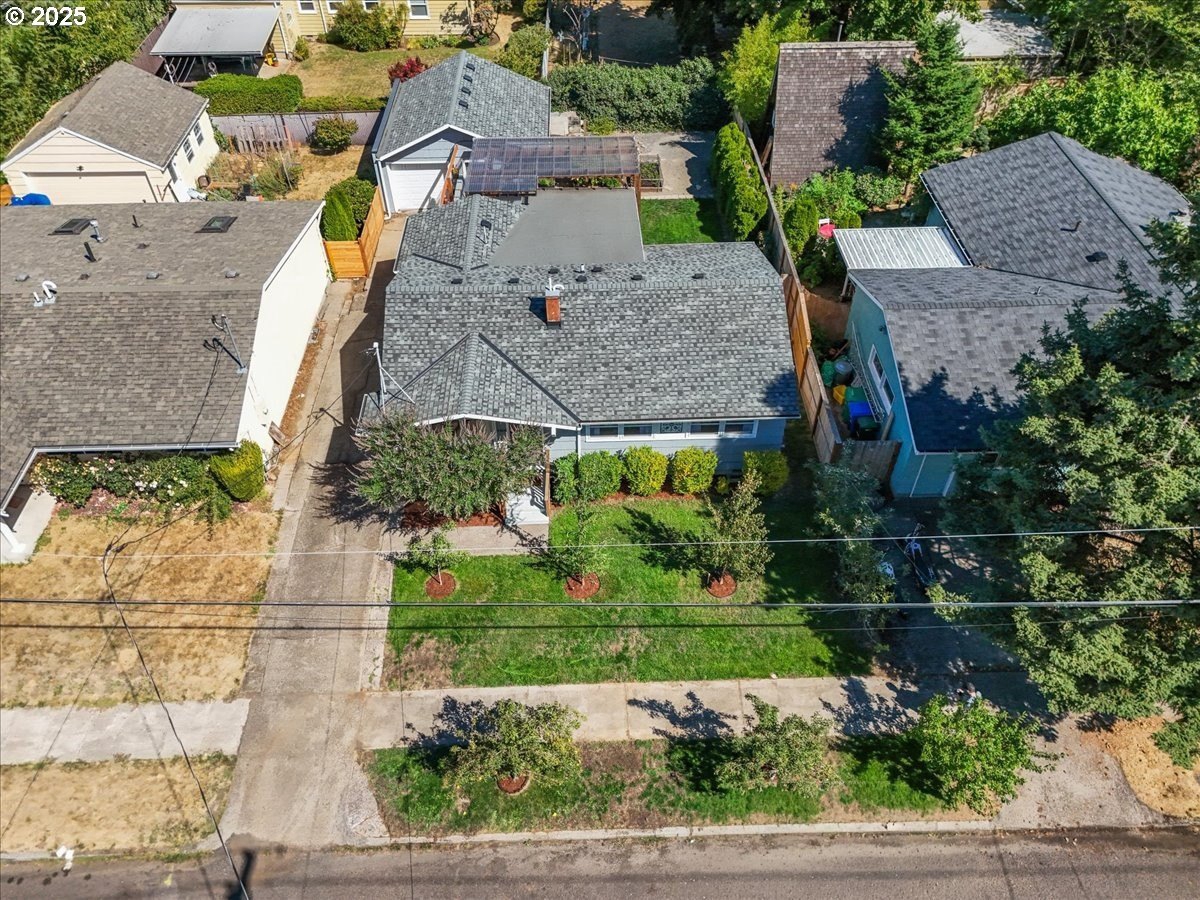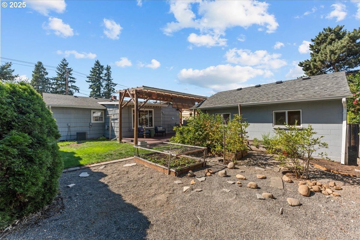 Charming & move-in ready 3-bedroom, 1-bath home offers 1,104 sq. ft. of comfortable living space. Inside you'll find beautiful hardwood floors and an updated kitchen with stainless steel appliances, perfect for everyday living and entertaining. An energy efficient gas furnace, AC, and new water heater keeps the home comfortable year-round, while seismic updates (bolted to the foundation) provide added peace of mind.The detached garage includes a finished bonus room, giving you a flexible space for a home office, gym, studio, or hobby room. Step outside to enjoy a covered Trex deck, perfect for relaxing or hosting friends. The backyard features raised garden beds, thriving blueberry and raspberry bushes, and a fire pit area—ideal for cozy evenings. Out front, mature pear trees welcome you home with seasonal fruit and charm. Located just blocks from the bus line, local stores, and restaurants, this home blends convenience with neighborhood charm. It’s truly move-in ready and waiting for its next chapter. [Home Energy Score = 6. HES Report at https://rpt.greenbuildingregistry.com/hes/OR10241418]