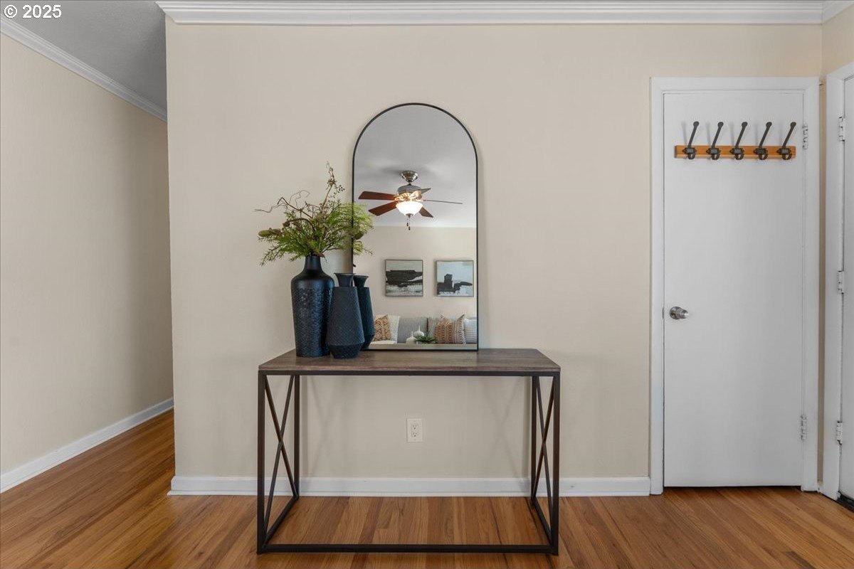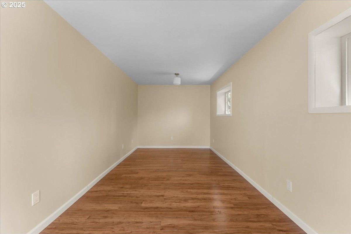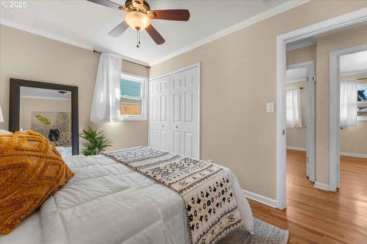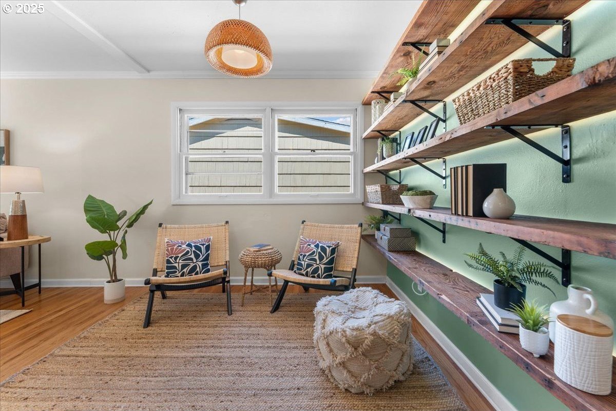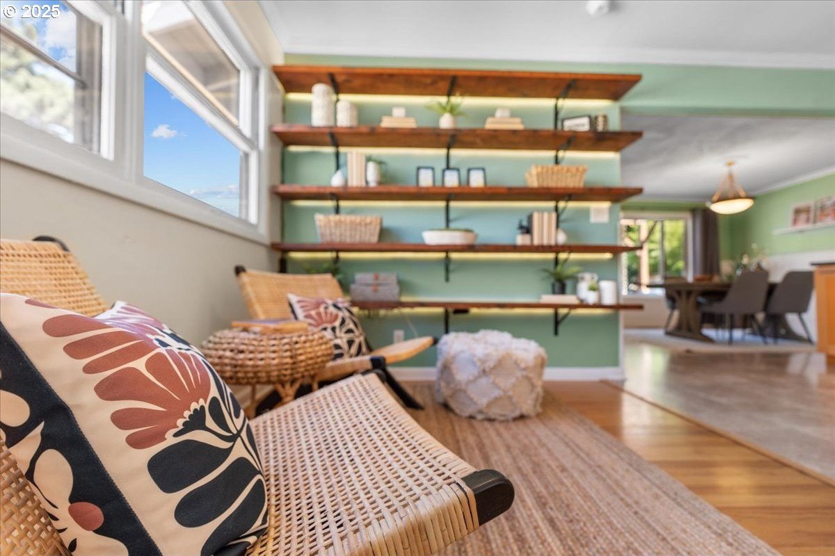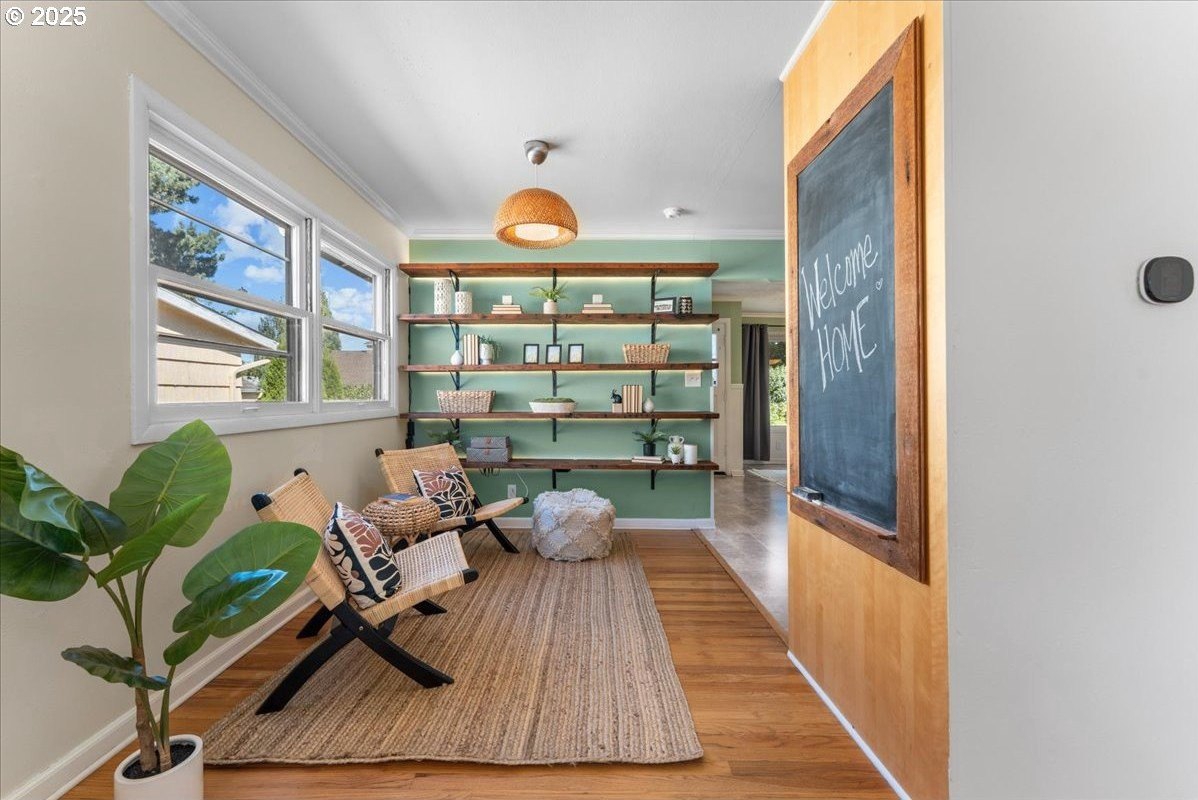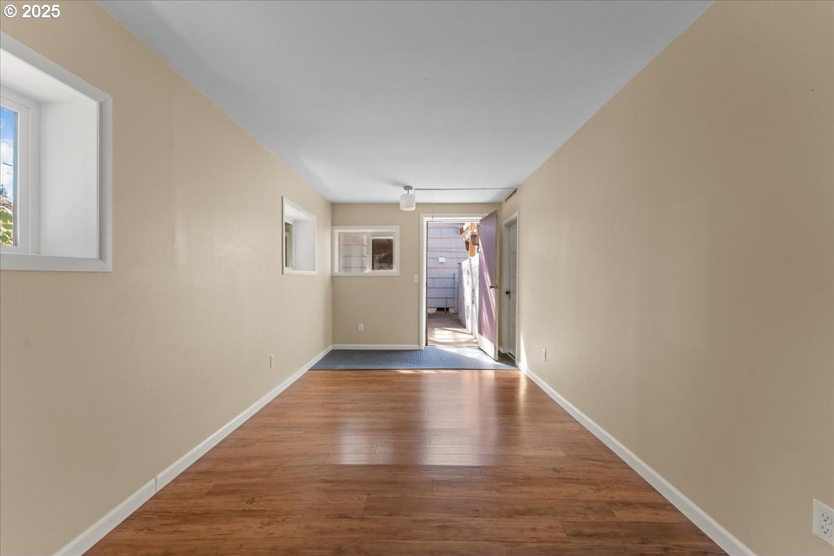 Charming & move-in ready 3-bedroom, 1-bath home offers 1,104 sq. ft. of comfortable living space. Inside you'll find beautiful hardwood floors and an updated kitchen with stainless steel appliances, perfect for everyday living and entertaining. An energy efficient gas furnace, AC, and new water heater keeps the home comfortable year-round, while seismic updates (bolted to the foundation) provide added peace of mind.The detached garage includes a finished bonus room, giving you a flexible space for a home office, gym, studio, or hobby room. Step outside to enjoy a covered Trex deck, perfect for relaxing or hosting friends. The backyard features raised garden beds, thriving blueberry and raspberry bushes, and a fire pit area—ideal for cozy evenings. Out front, mature pear trees welcome you home with seasonal fruit and charm. Located just blocks from the bus line, local stores, and restaurants, this home blends convenience with neighborhood charm. It’s truly move-in ready and waiting for its next chapter. [Home Energy Score = 6. HES Report at https://rpt.greenbuildingregistry.com/hes/OR10241418]